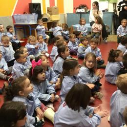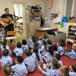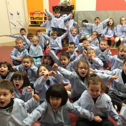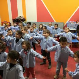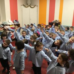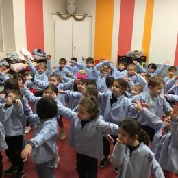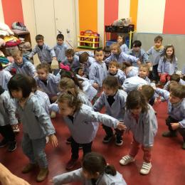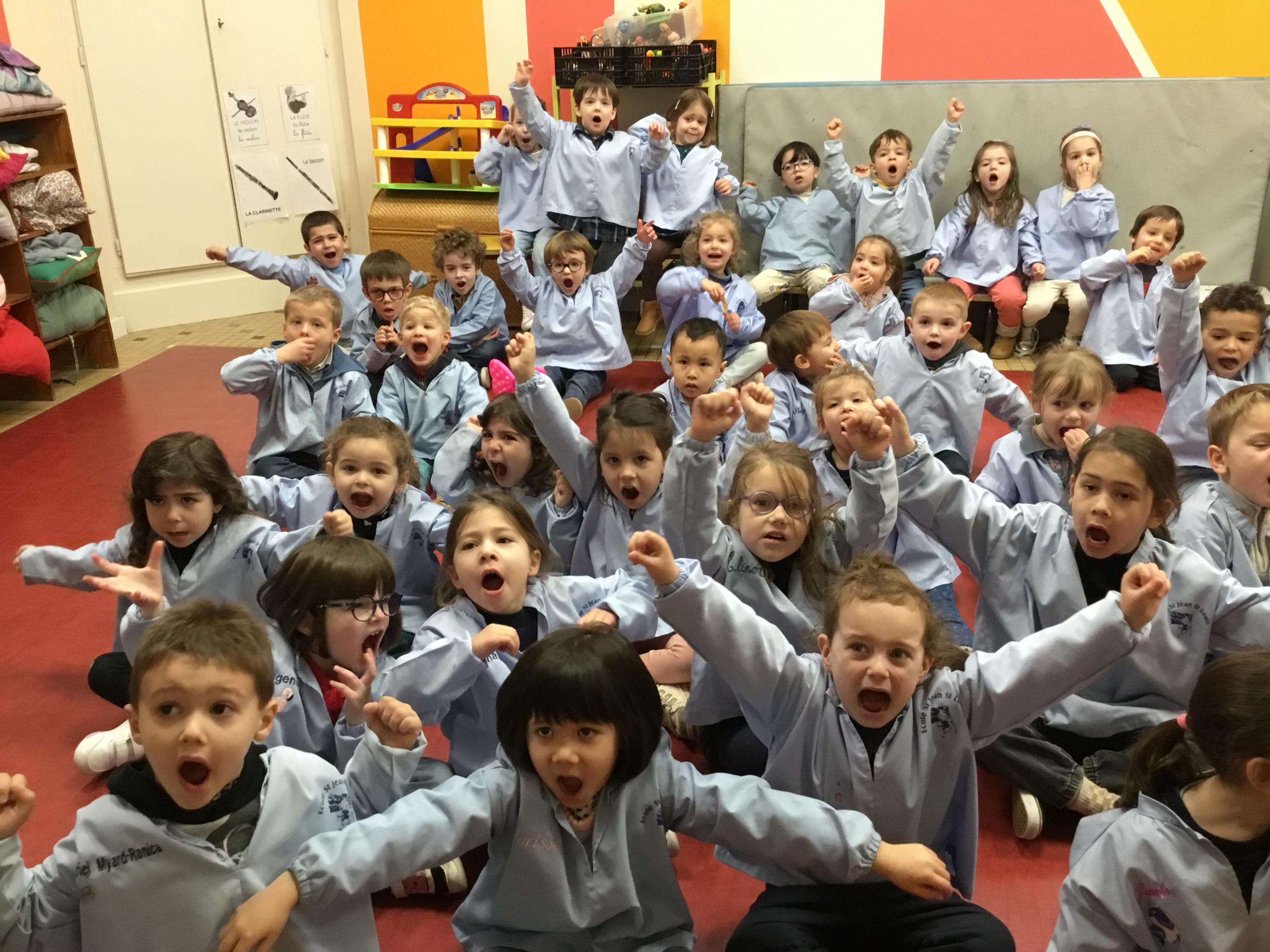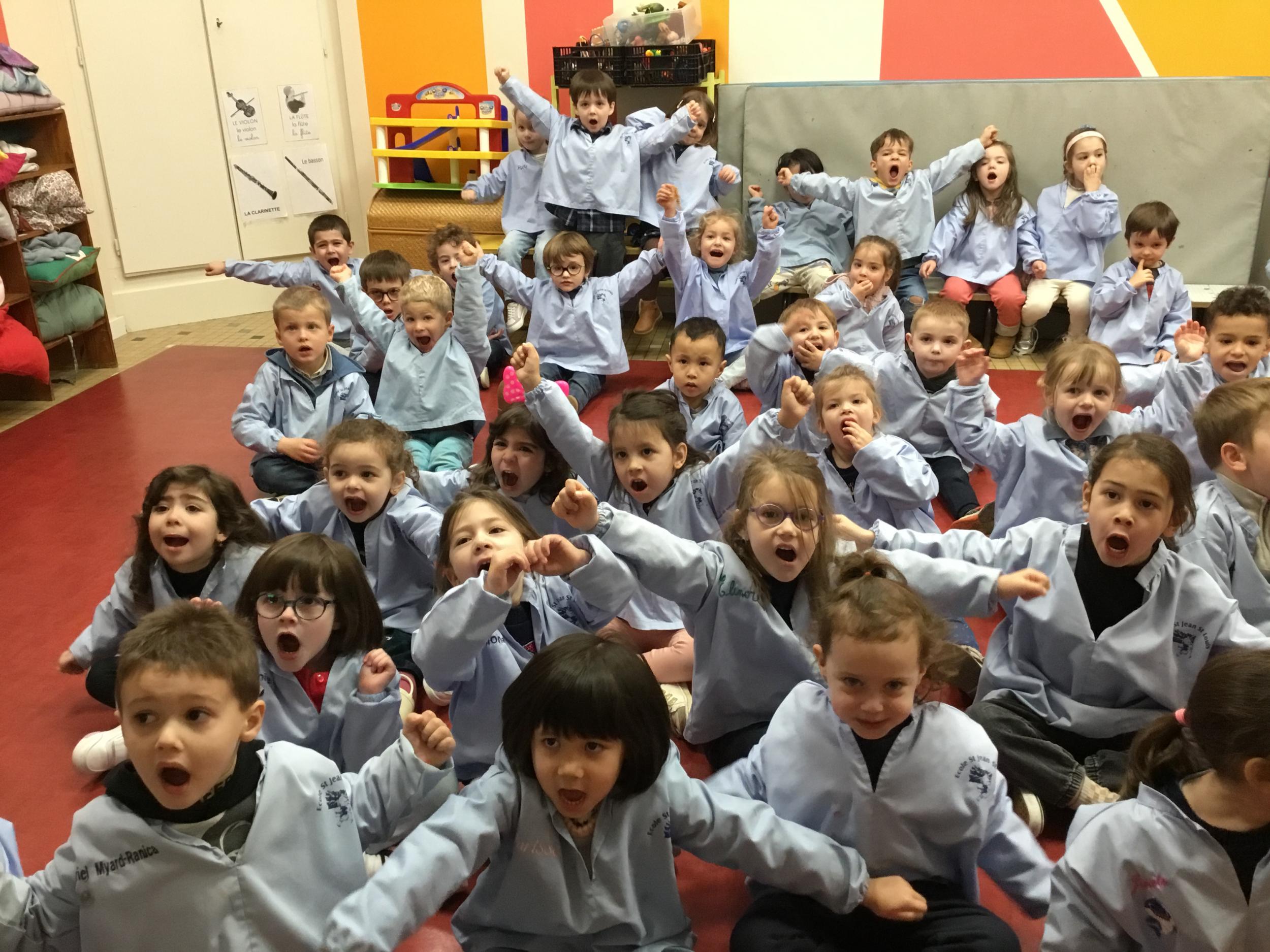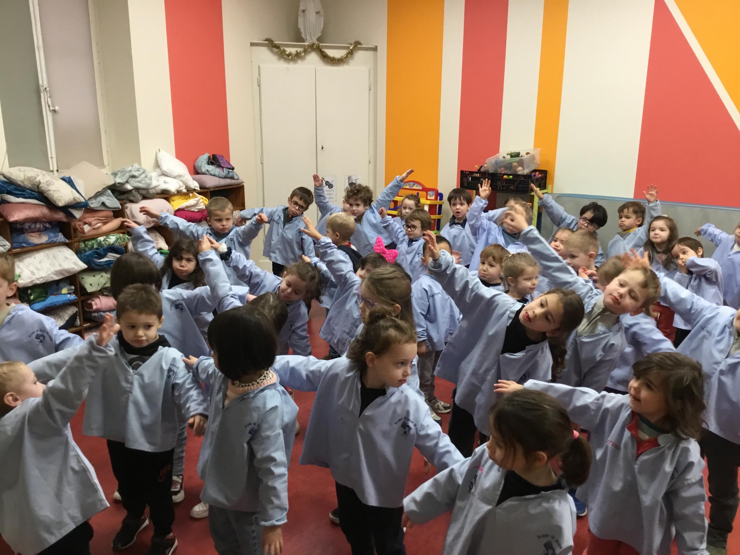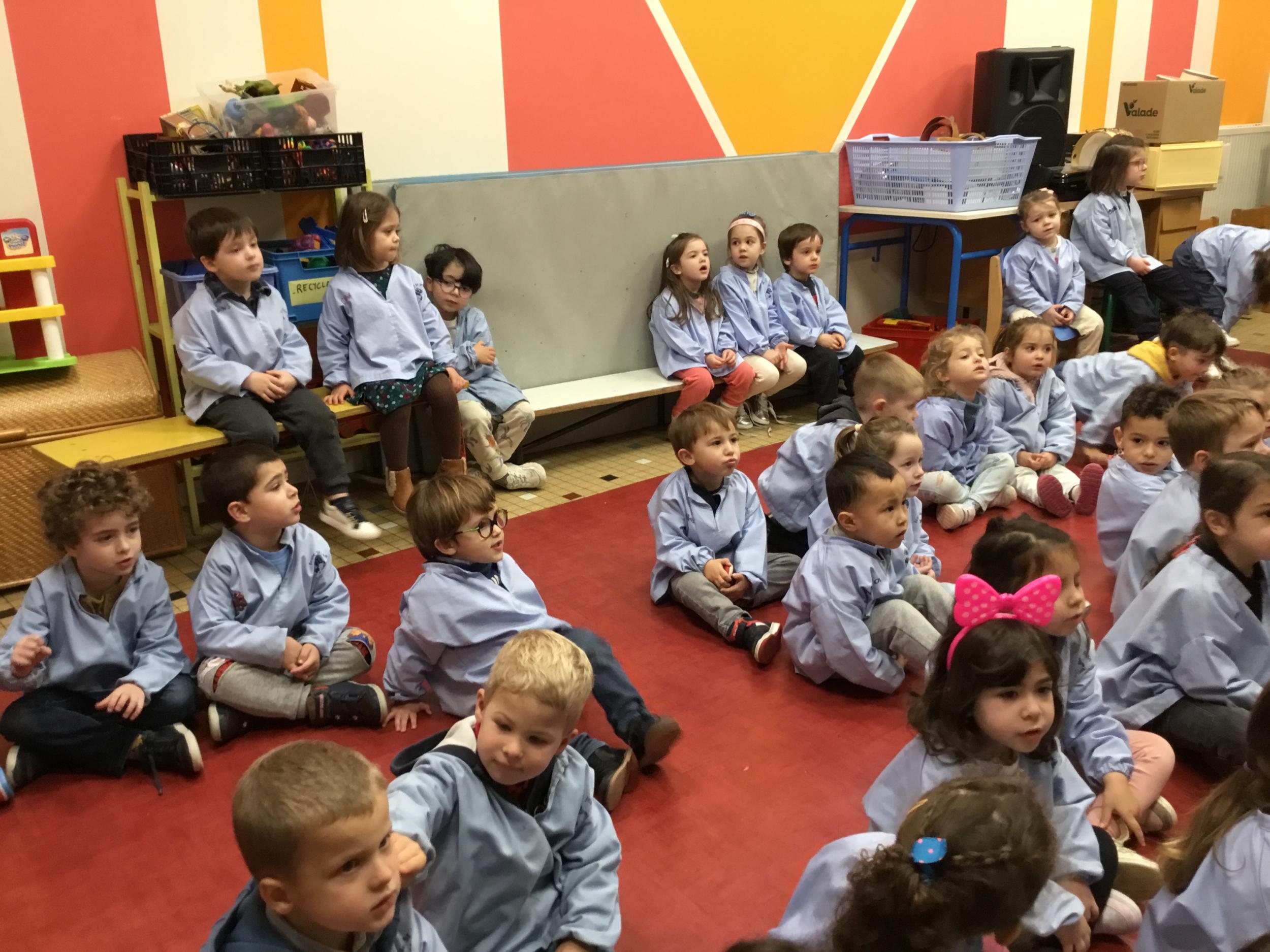 Tous les vendredis les PS et les MS se regroupent pour la chorale. D’abord nous chauffons notre voix , puis nous passons à des exercices de rythmes et enfin nous chantons en français et en anglais accompagnés de maître Chappuis à la guitare.