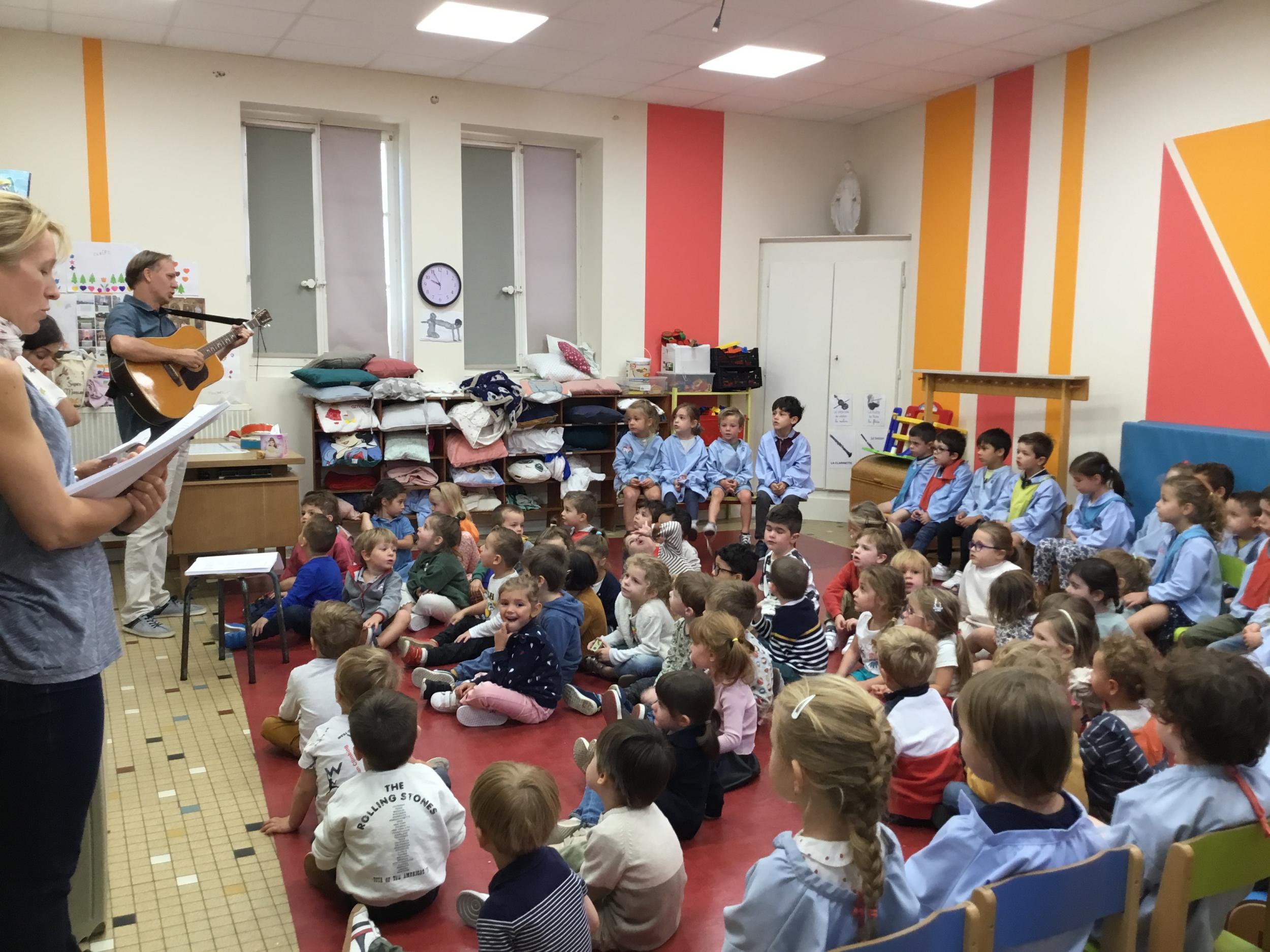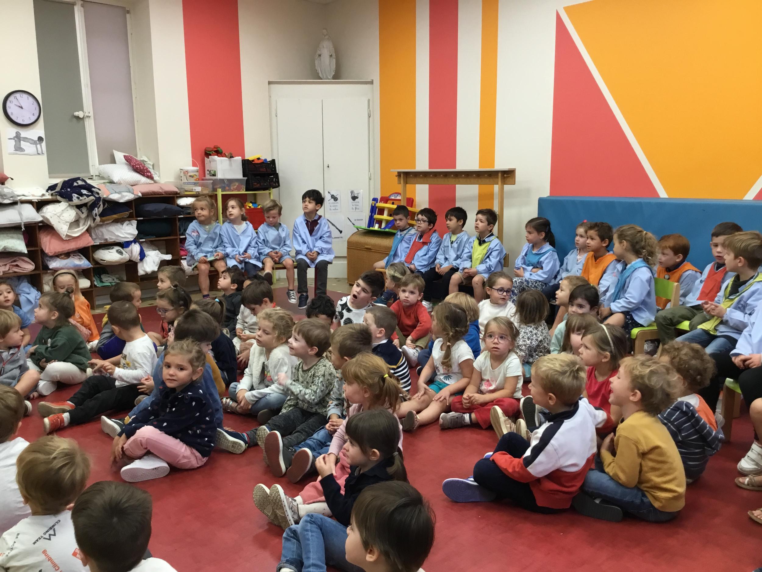 Petite et moyenne section 28/09/2022 La chorale de la maternelle a commencé. Tous les élèves de la petite section à la grande section inclue se retrouvent tous les Vendredis à 9 h00 pour chanter des chansons en français et en Anglais .