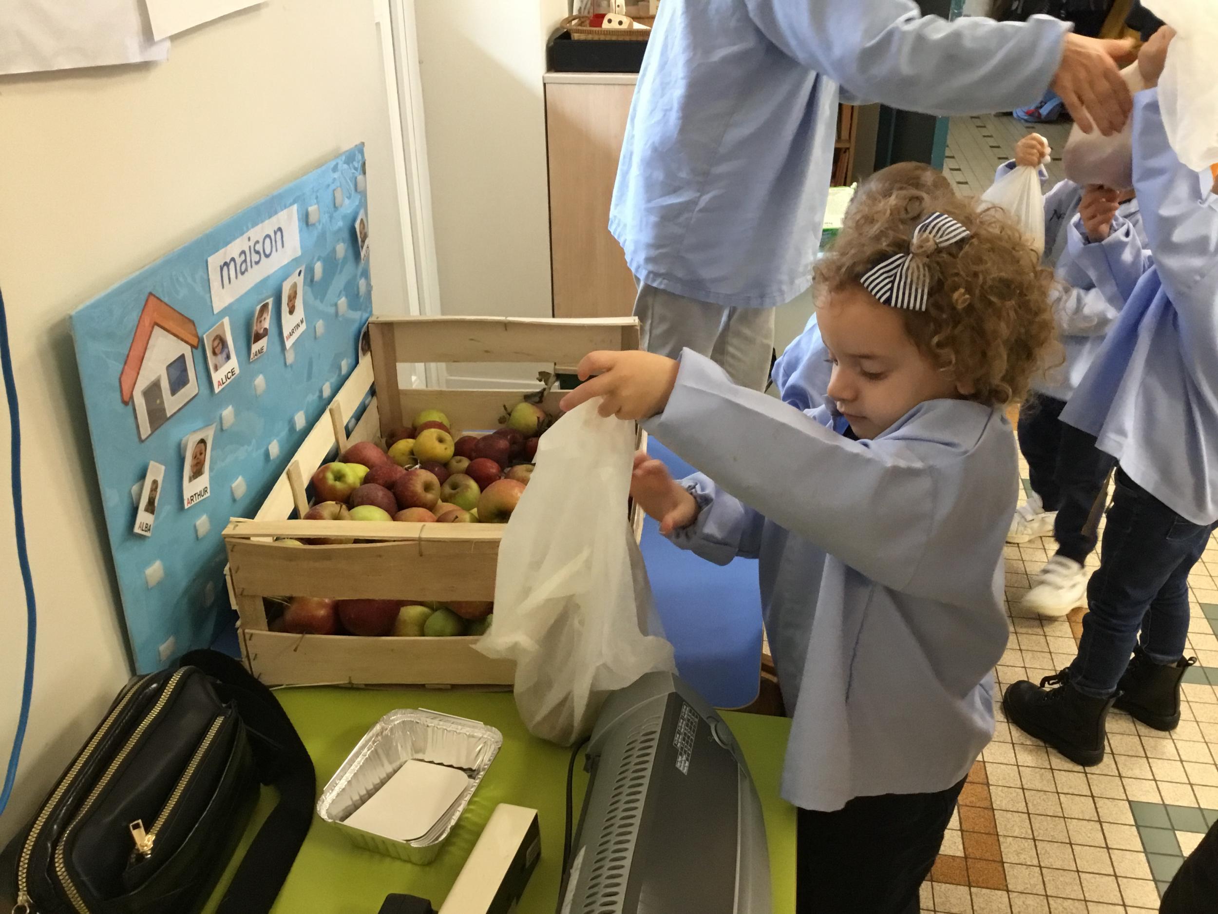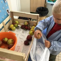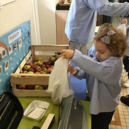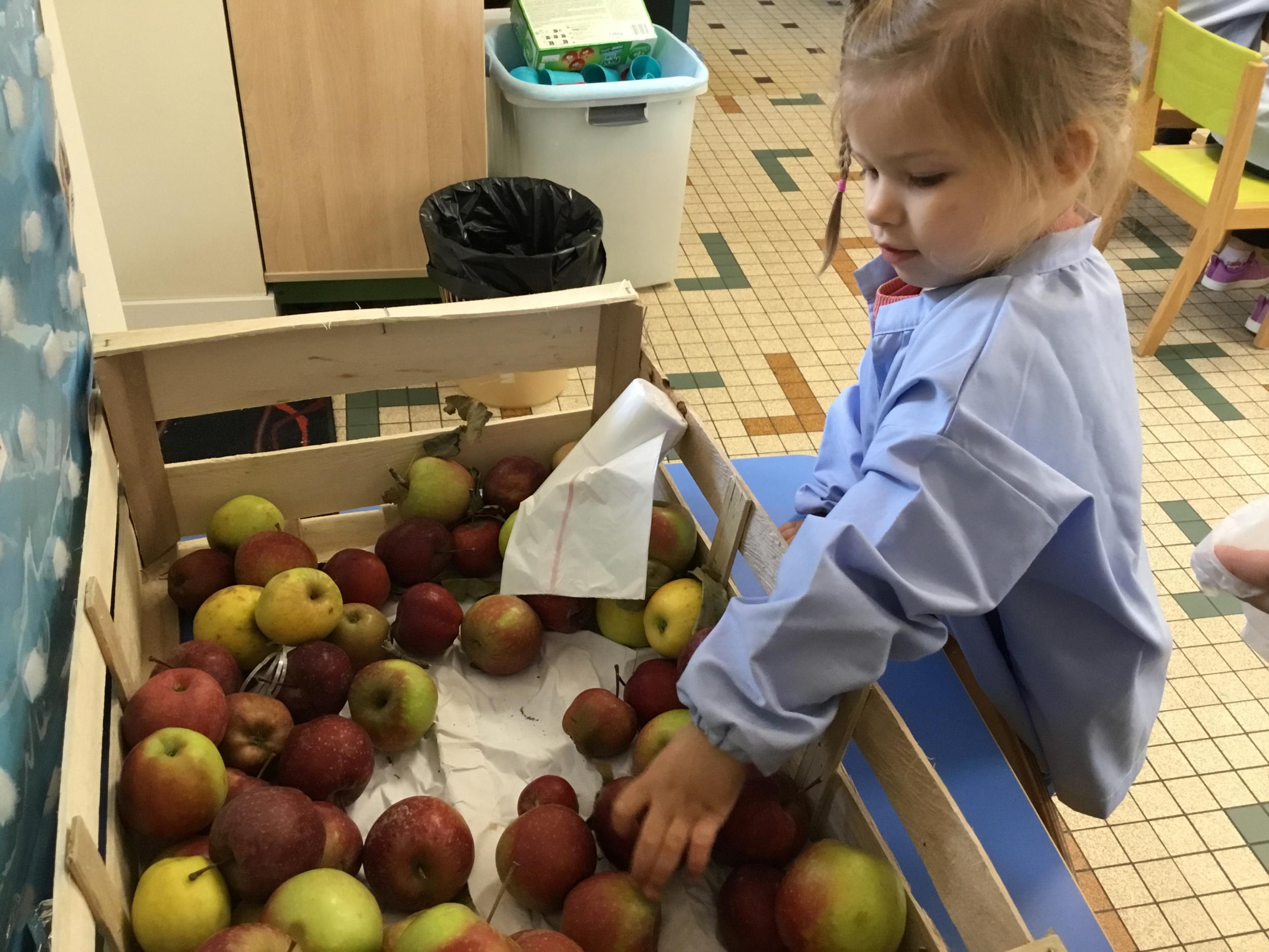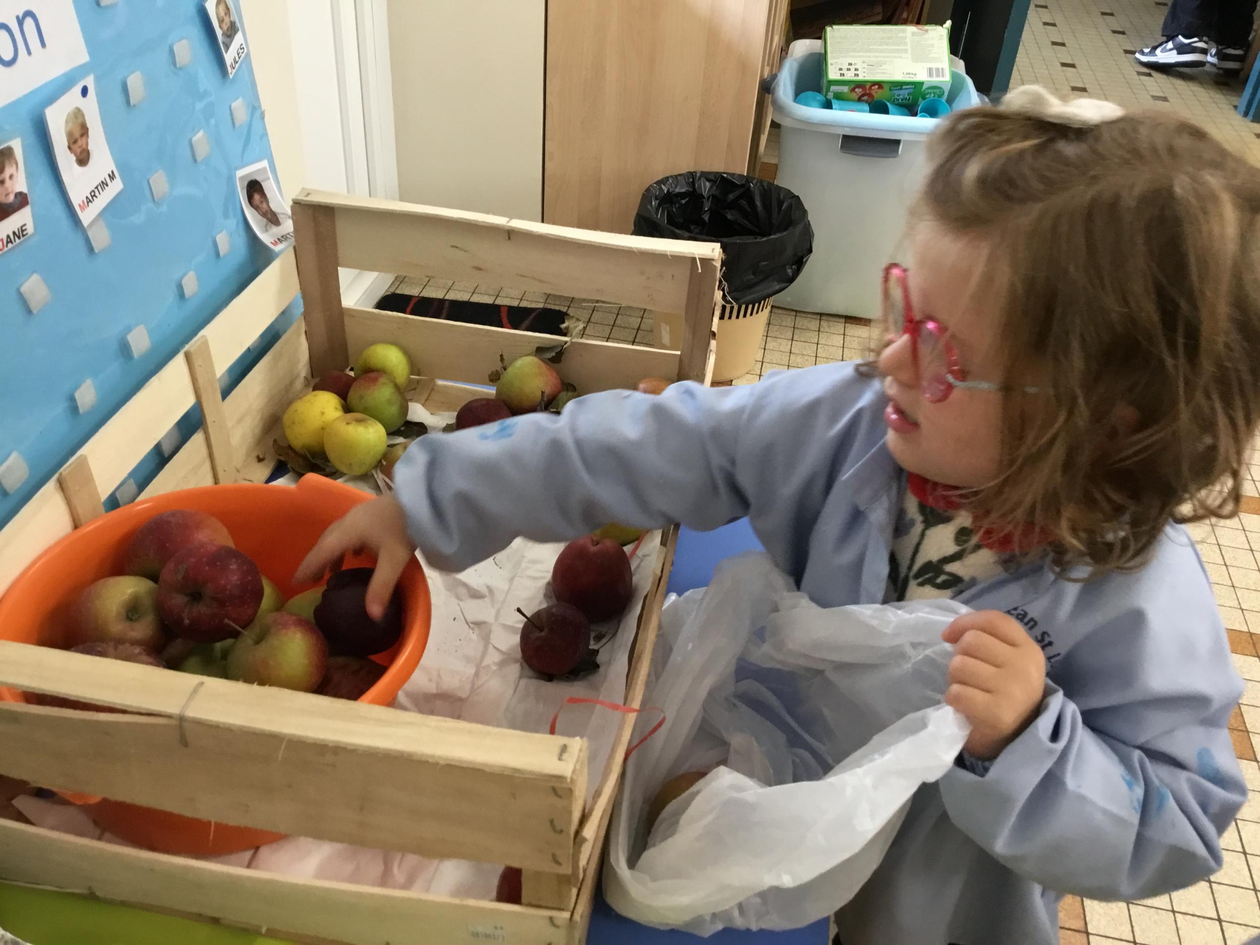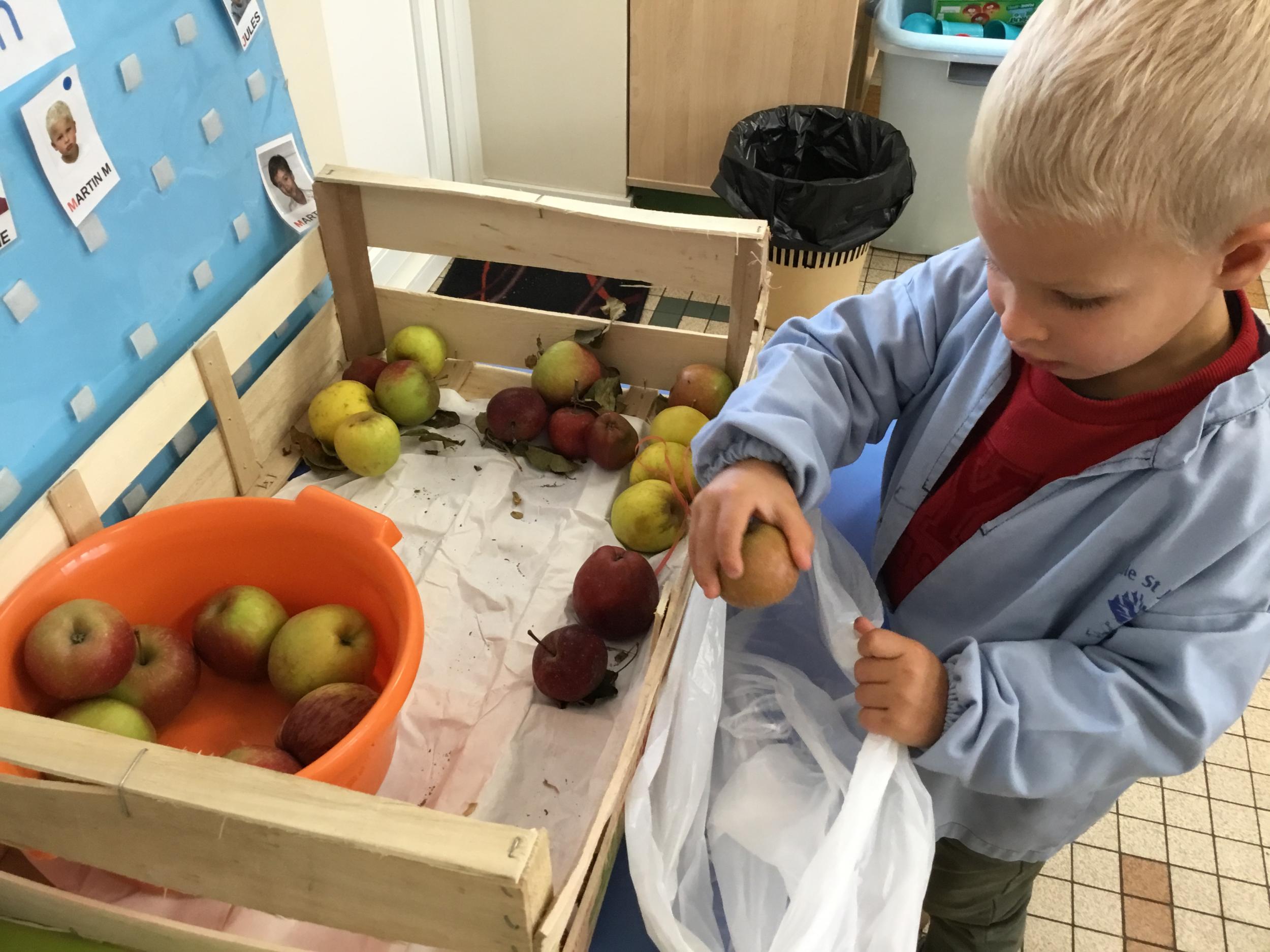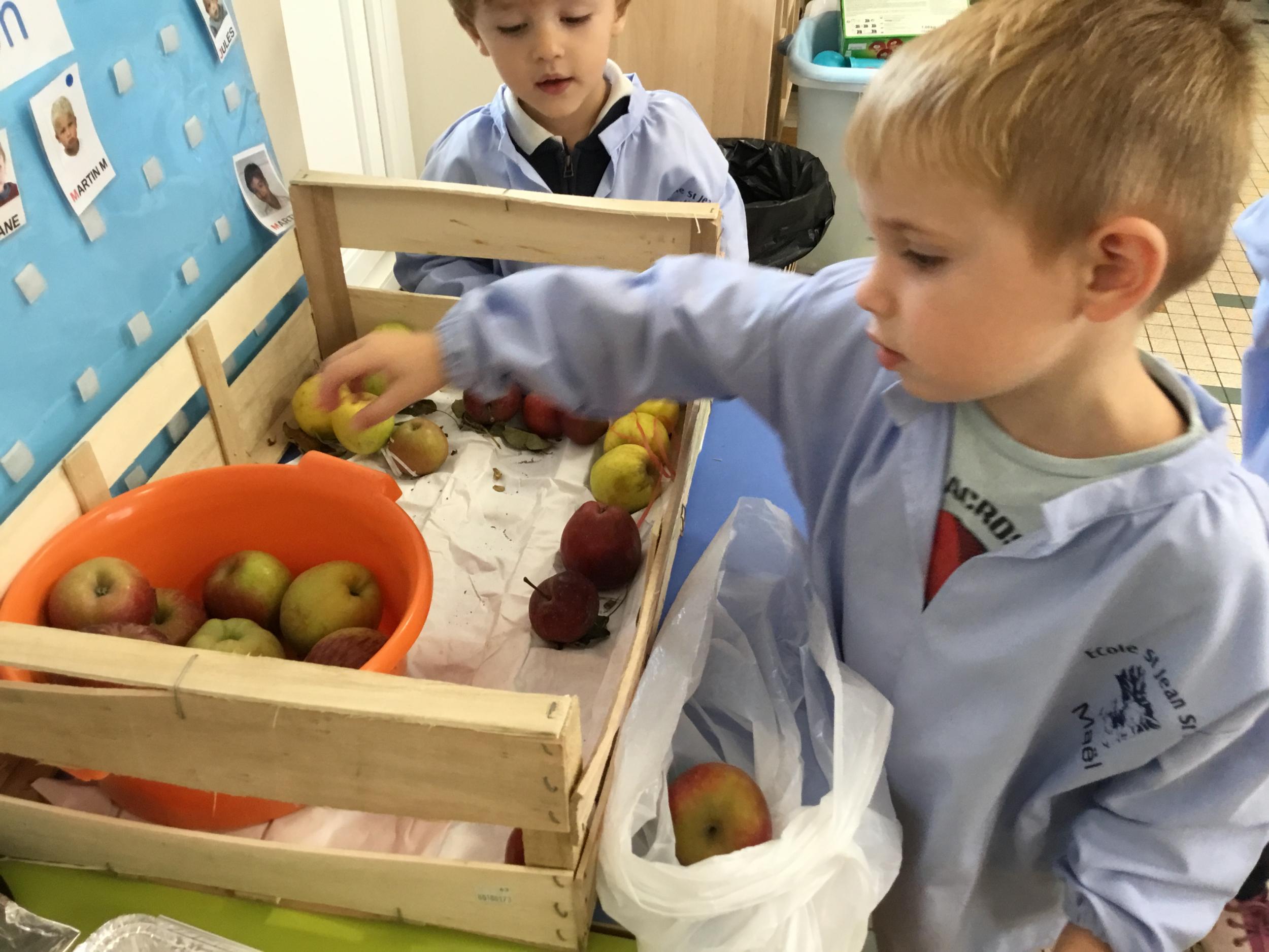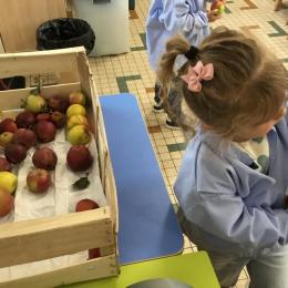 Pendant que Domi , raconte une histoire à un petit groupe, les autres ont compté le nombre de pommes dont chacun avait besoin.