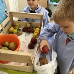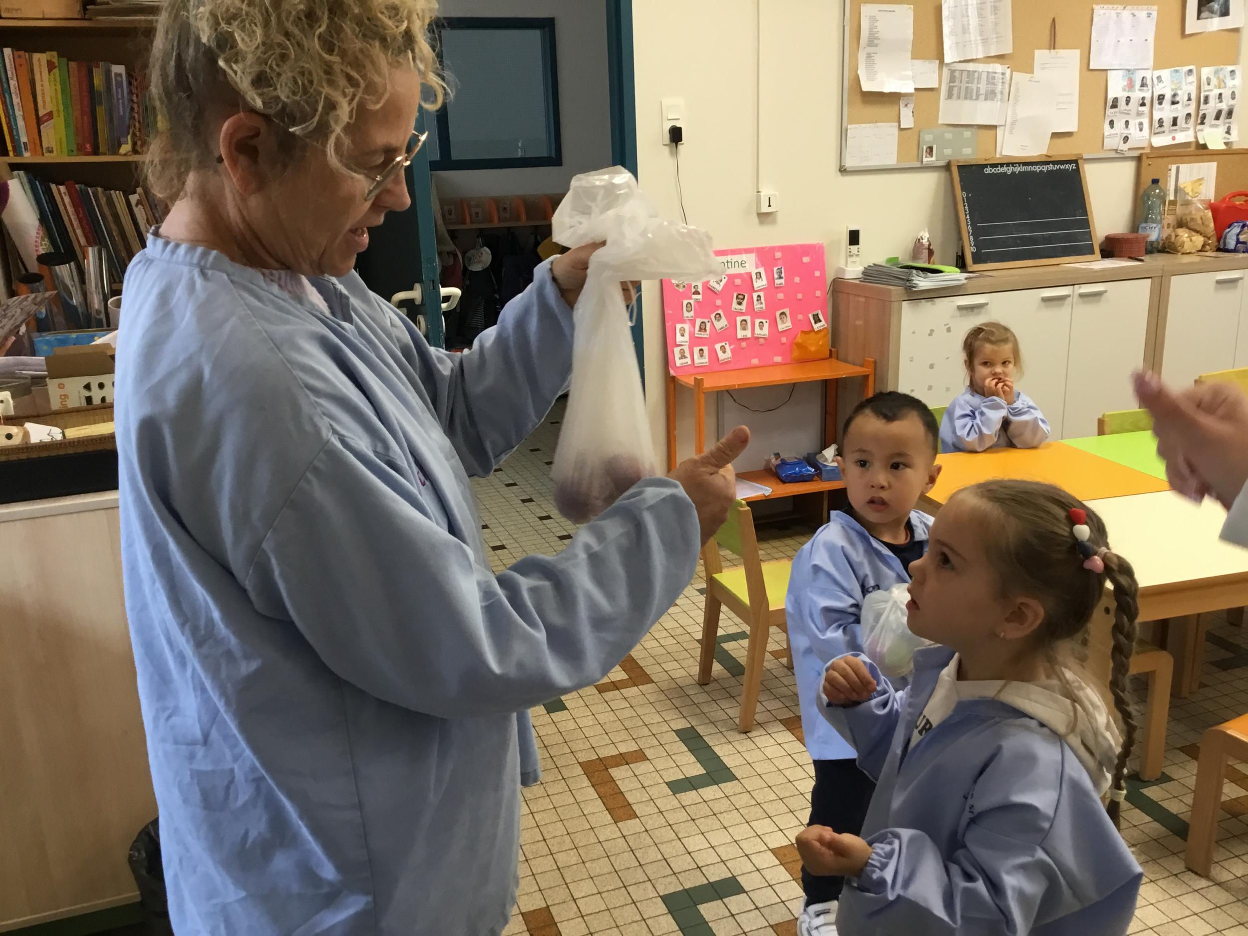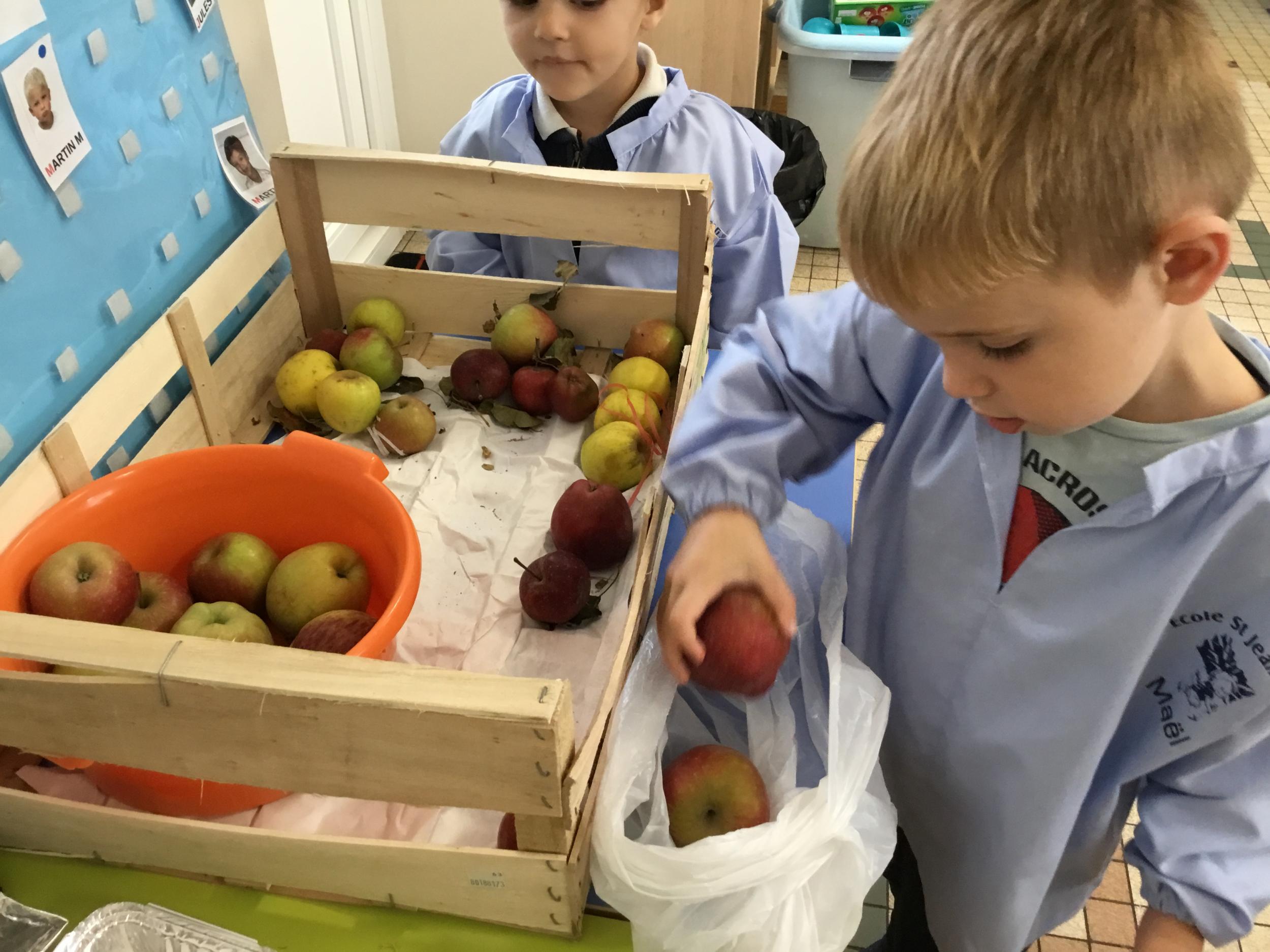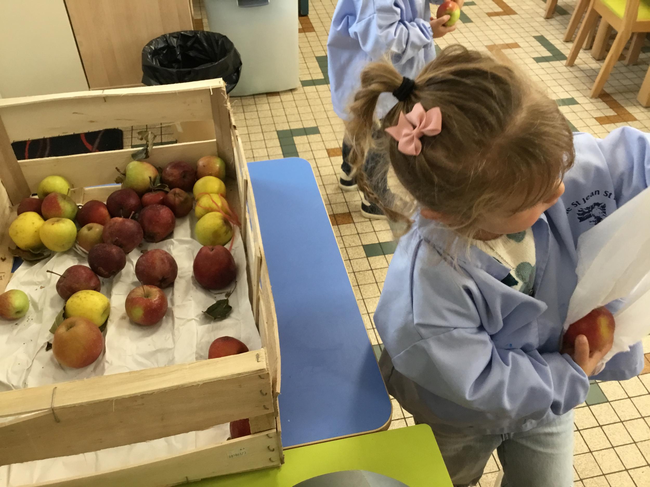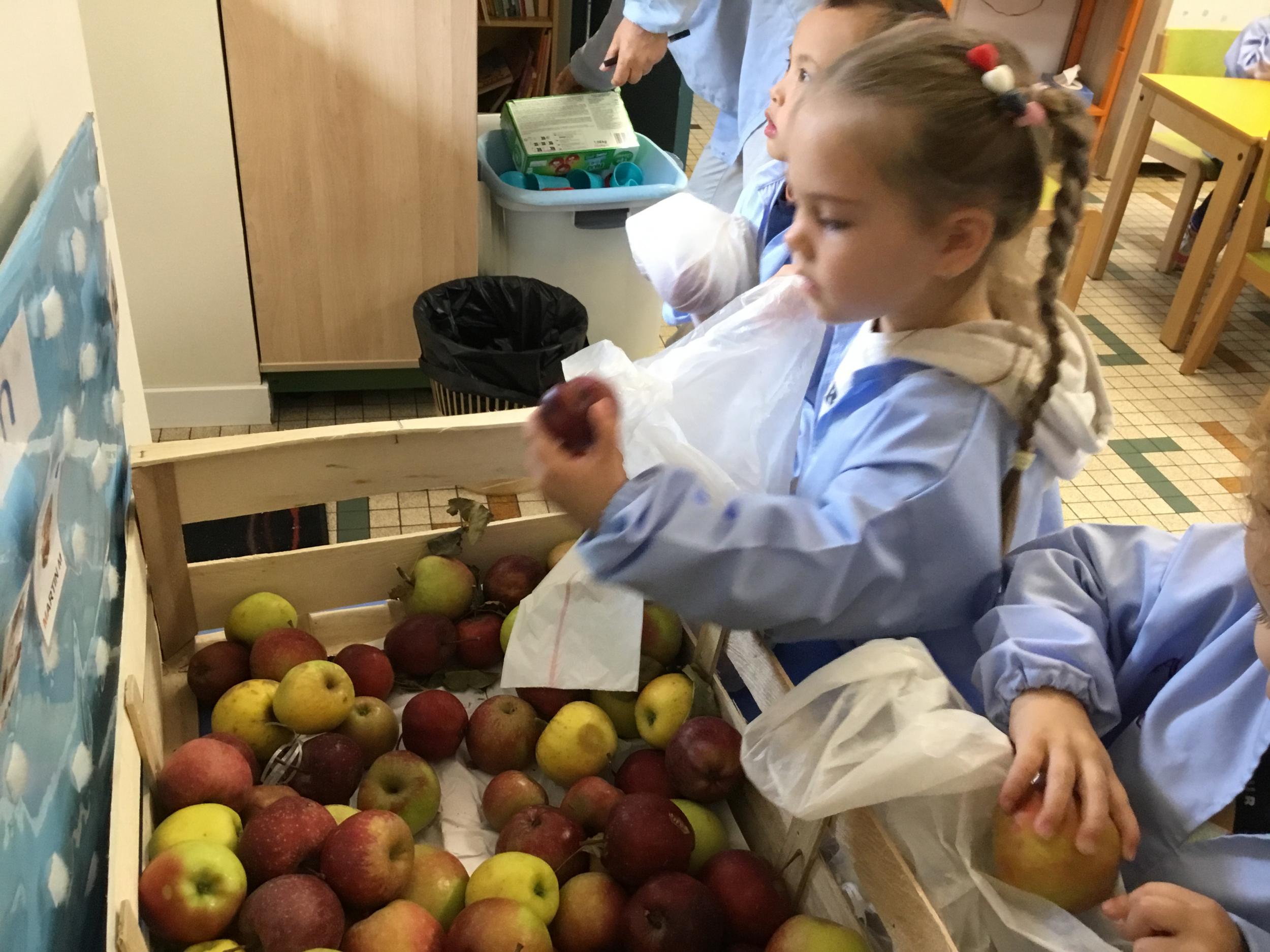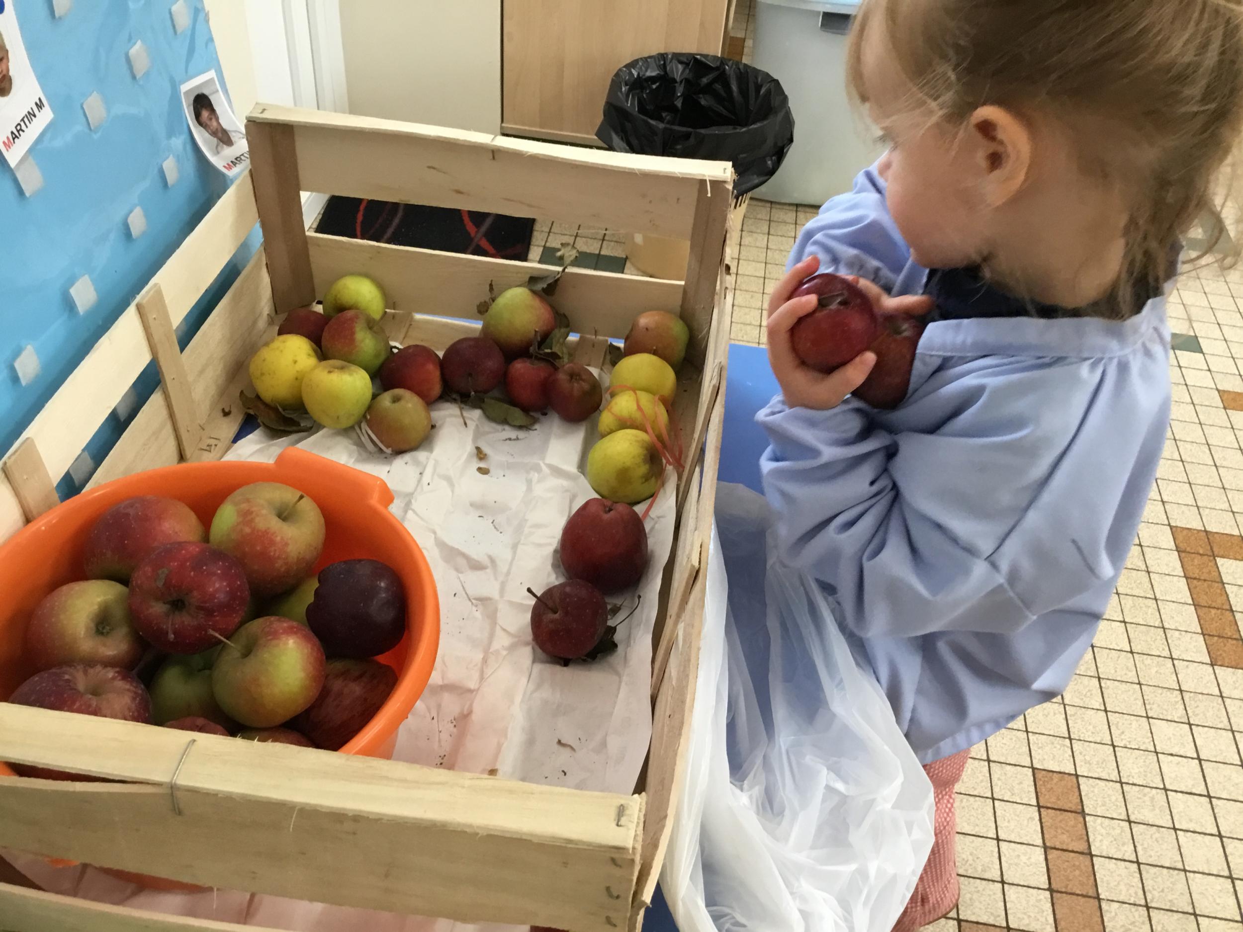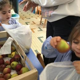 Pendant que Domi , raconte une histoire à un petit groupe, les autres ont compté le nombre de pommes dont chacun avait besoin.