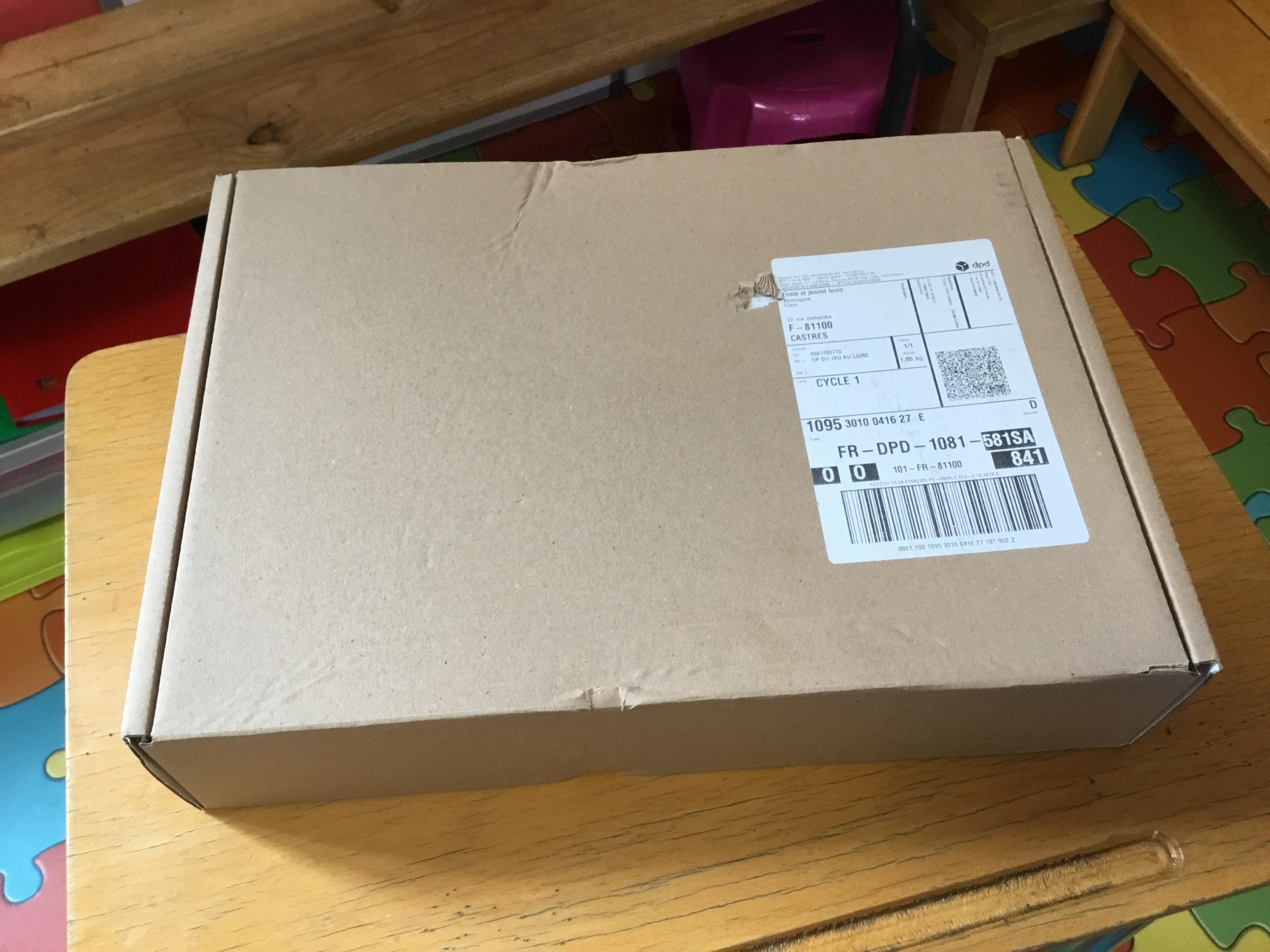 C'est la maison d'édition de l'École des Loisirs qui nous envoyait du matériel, parce que maîtresse Bérengère nous avait inscrit à un concours de jeux de société!