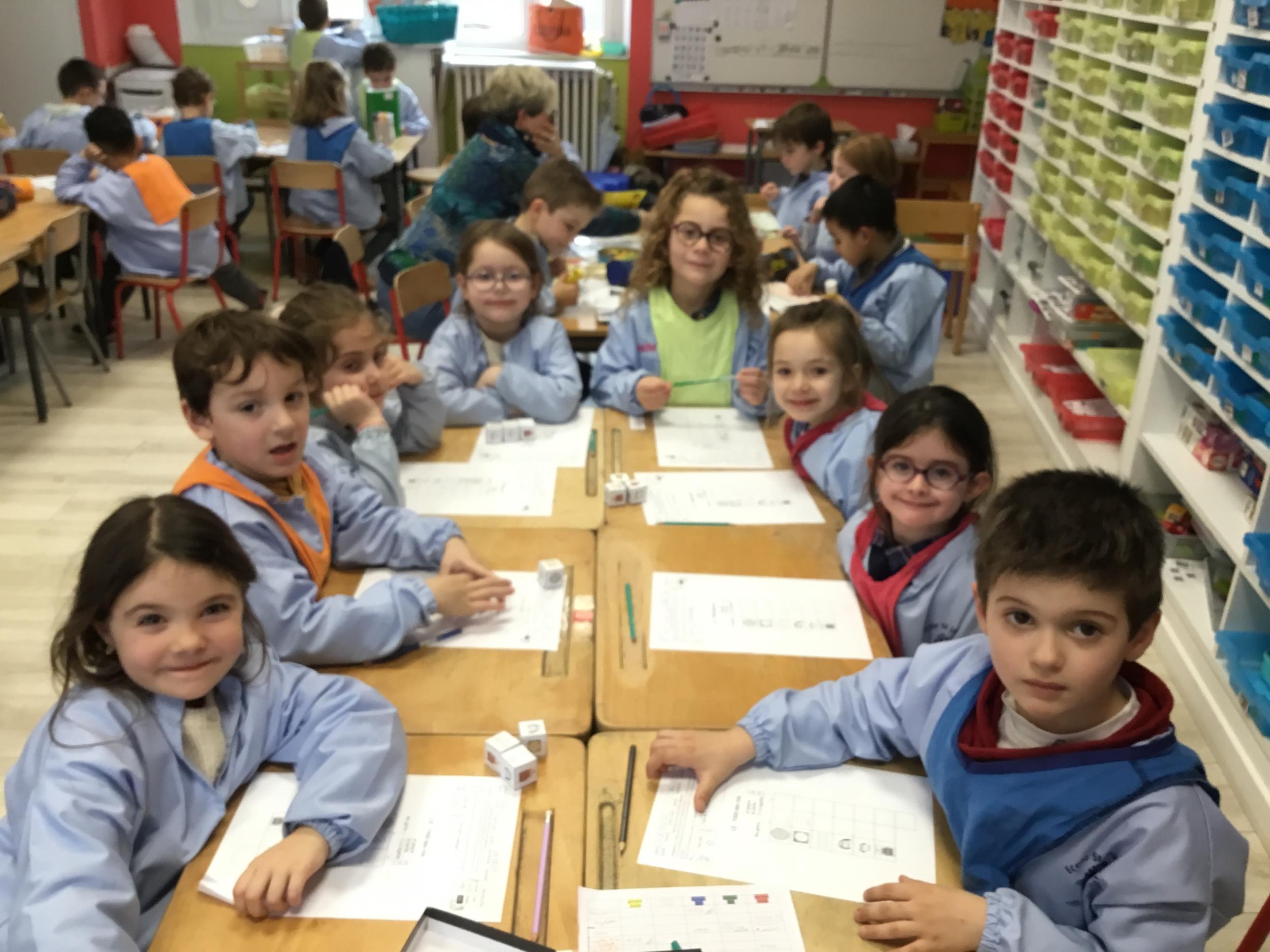 Ainsi, ils travaillaient la compétence de numération :"Mobiliser des symboles analogiques, (constellations, doigts), verbaux (mots-nombres) ou écrits en chiffres, pour communiquer des informations orales et écrites sur une quantité, jusqu’à 10 au moins."