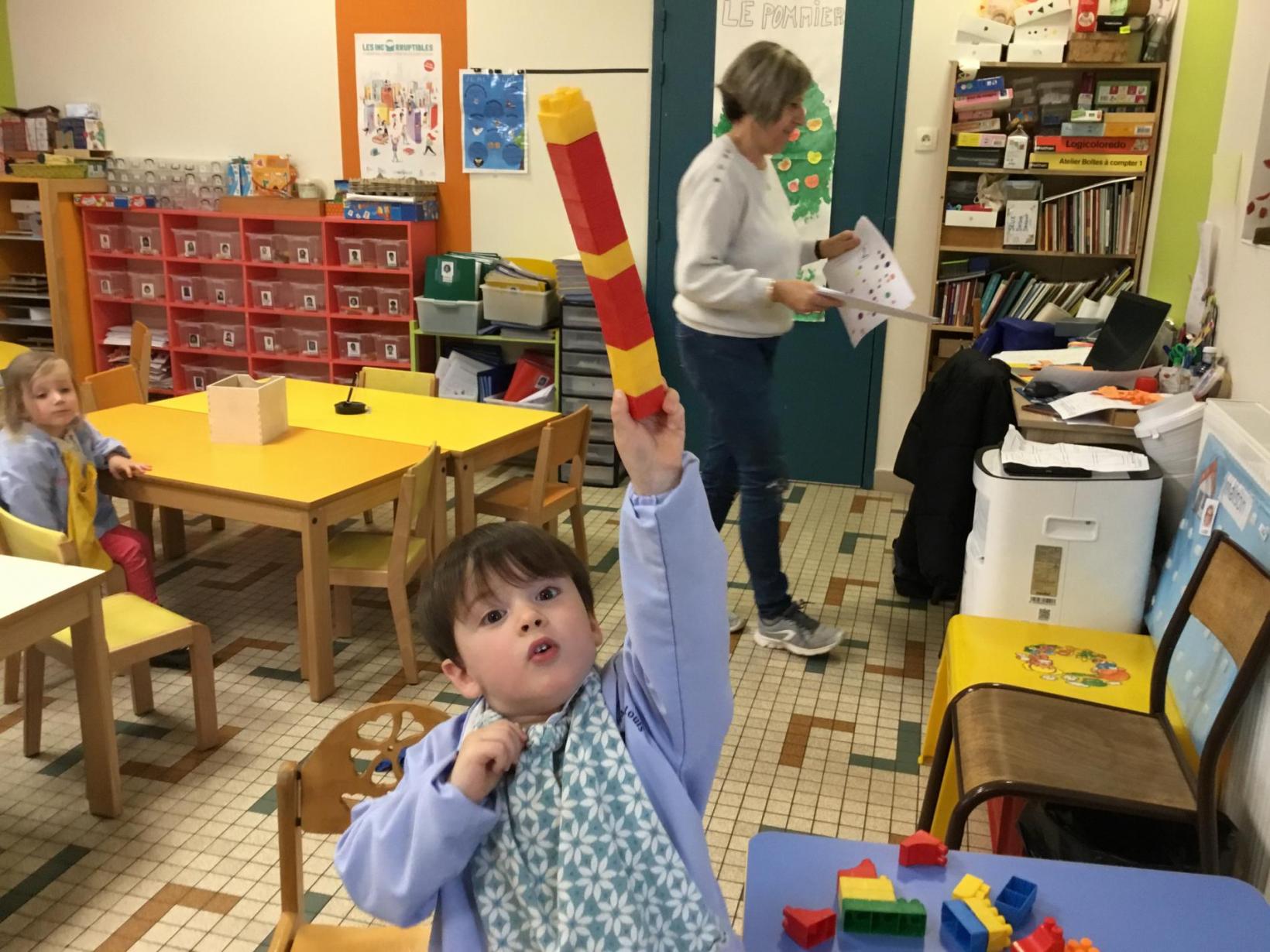 03/05/2024 Les plus petits s’approprient le matériel de la classe. Ils ont utilisé les ardoises, les jetons, les ciseaux …. Sur les photos ci dessous, ils construisent une tour , la plus haute possible