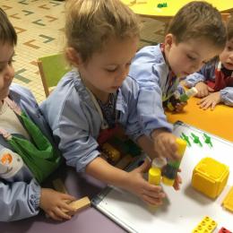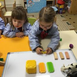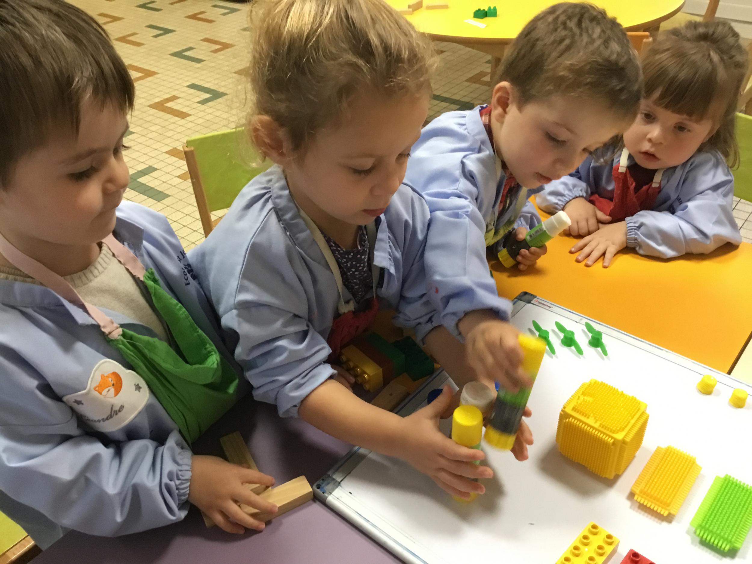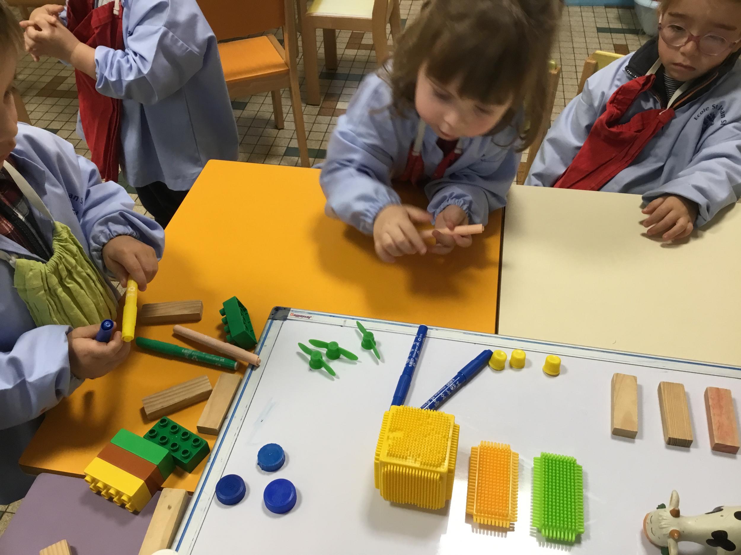 Nous commençons à apprendre à construire le nombre pour exprimer les quantités. Pour cela la maîtresse a proposé à chaque élève de construire une collection d objets qui ressemble à celle qu elle propose ( collection de 2 ou 3 objets)