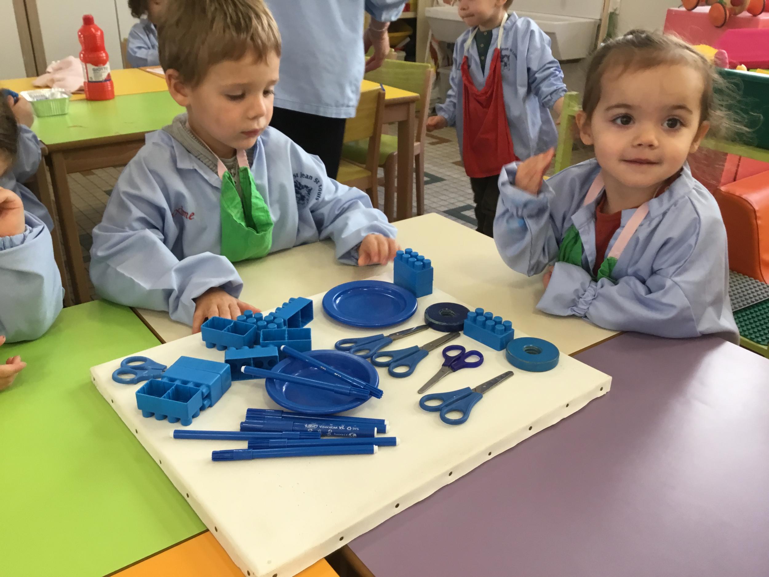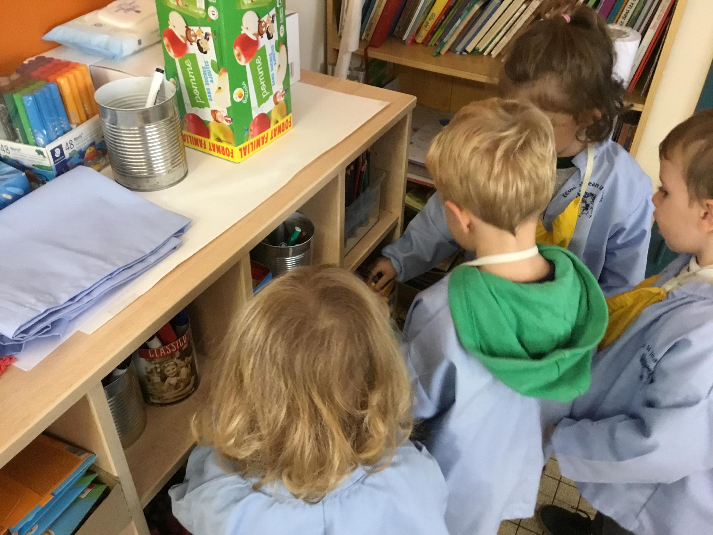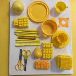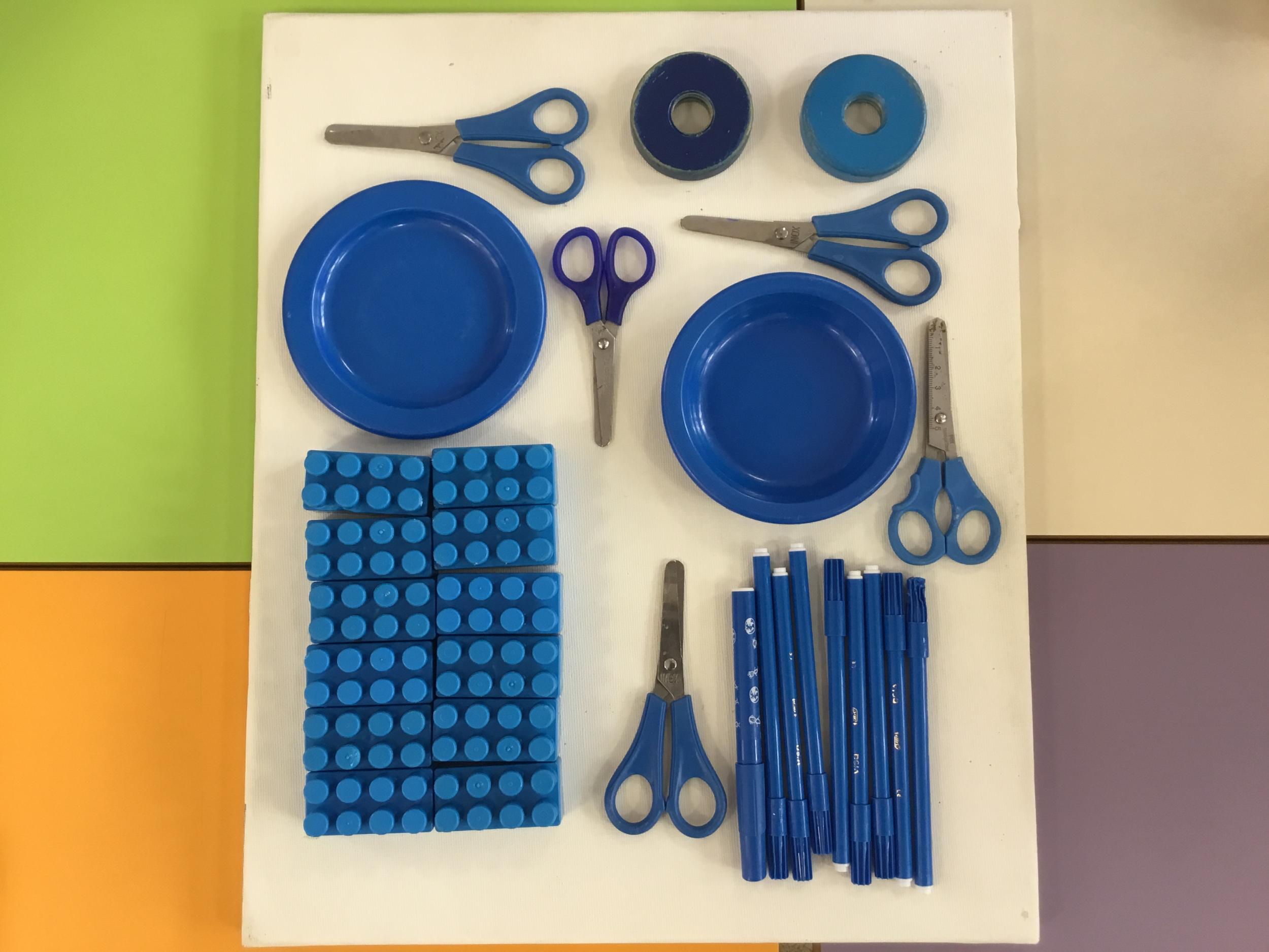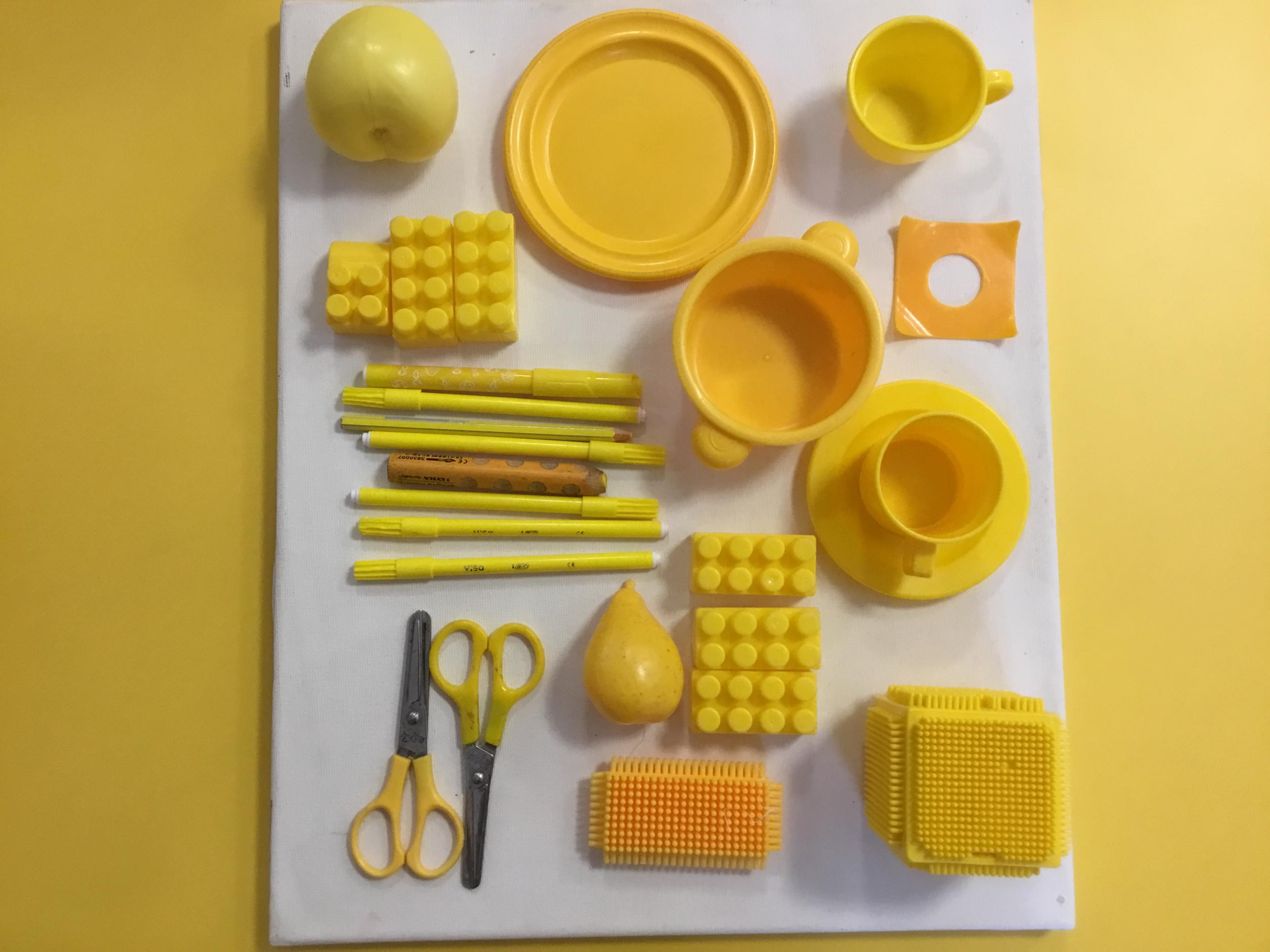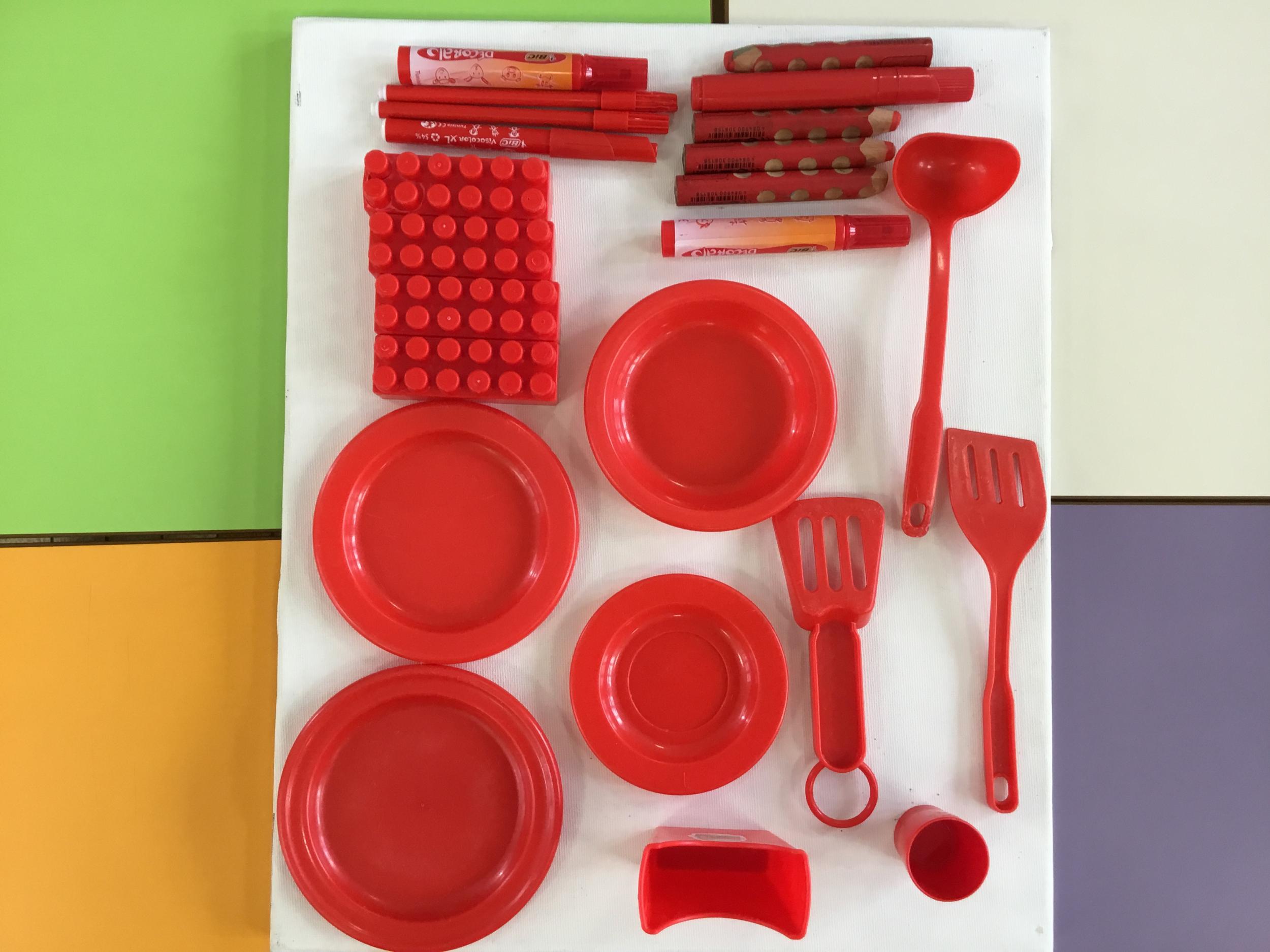 En atelier d’apprentissage, les élèves ont cherché des objets de la même couleur pour réaliser leur propre accumulation.