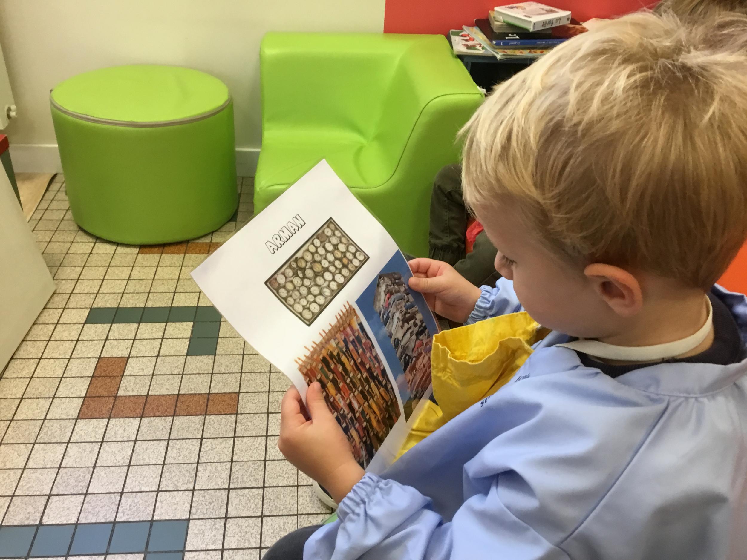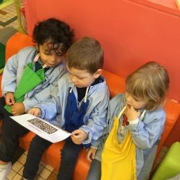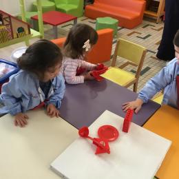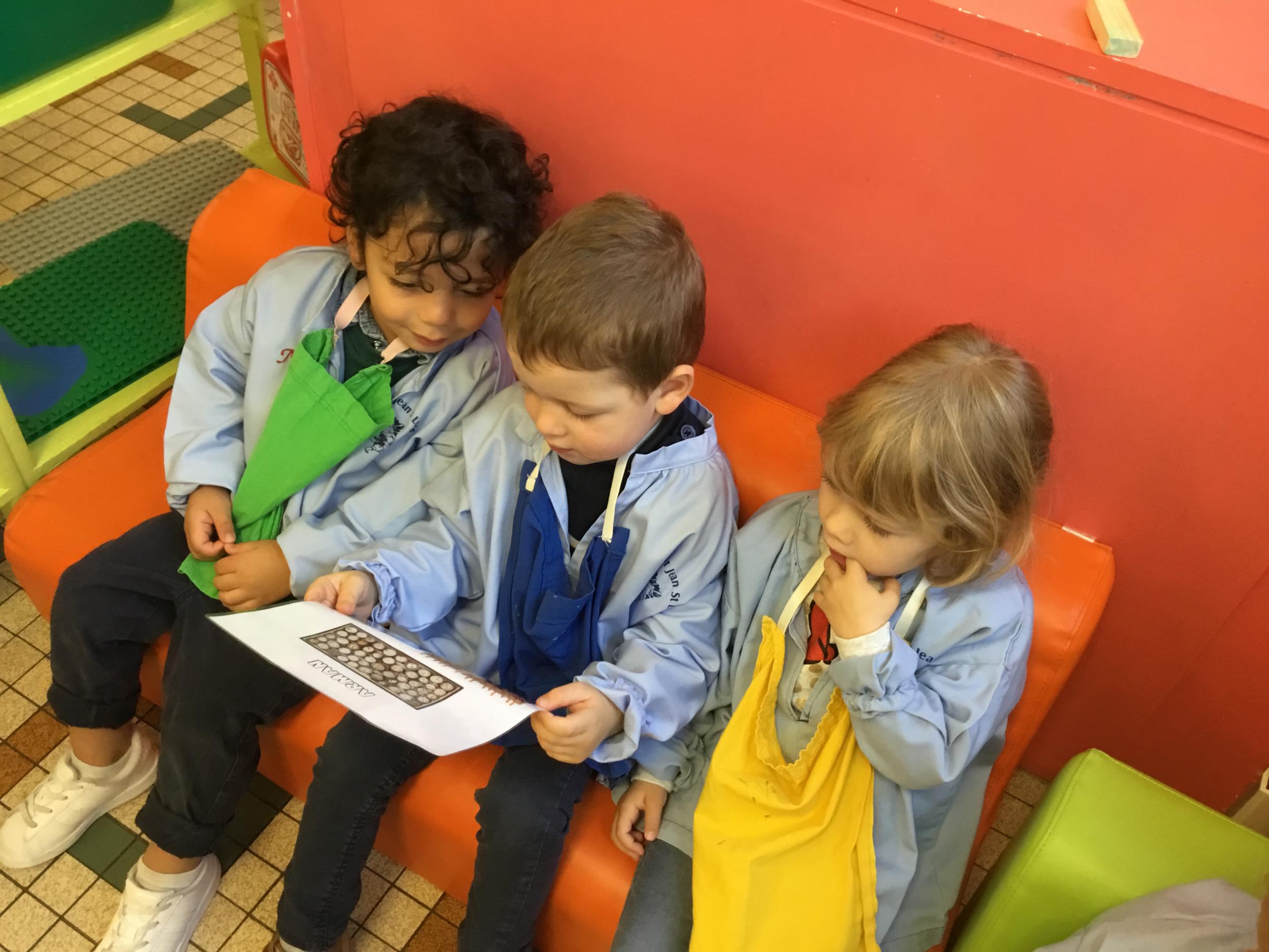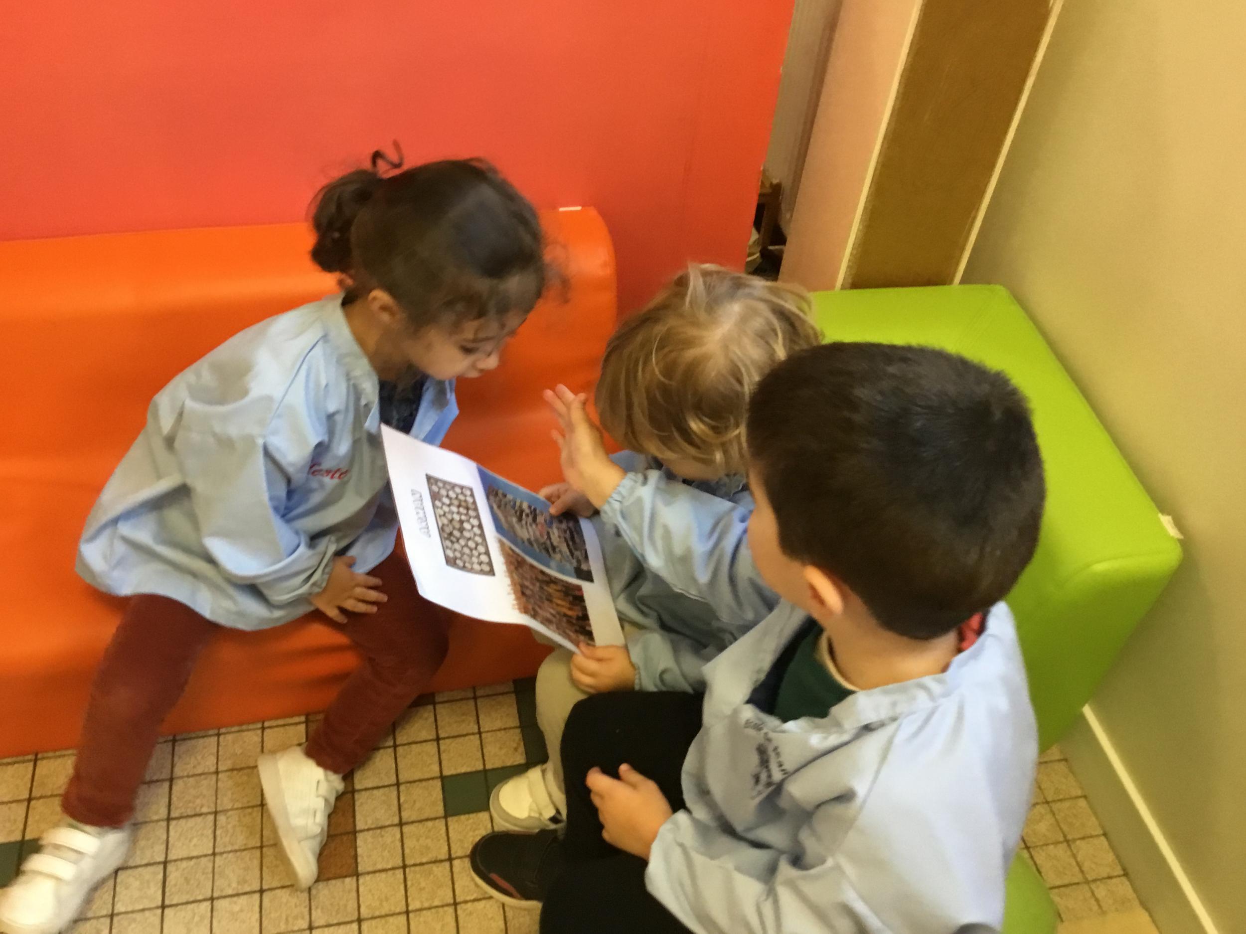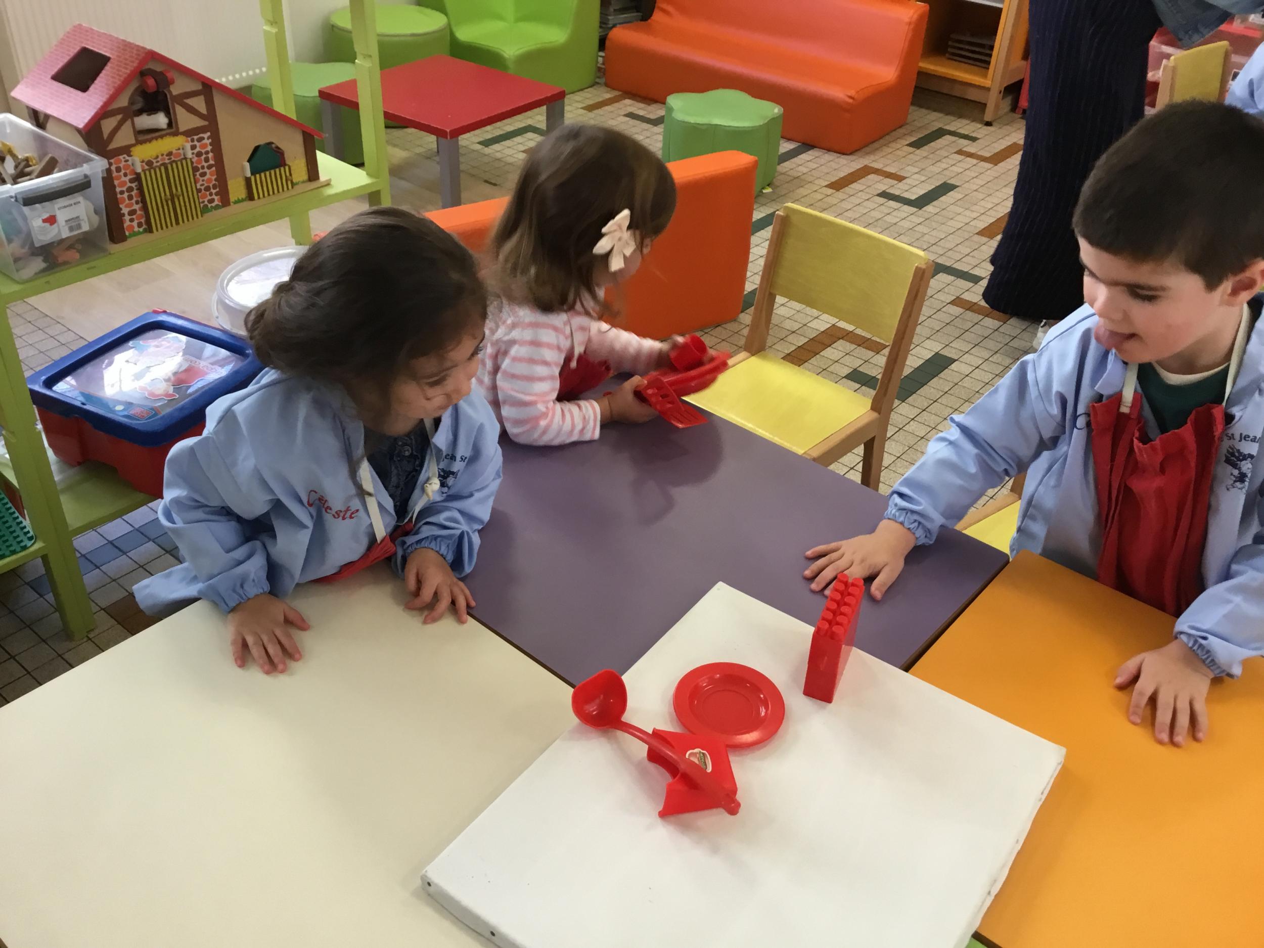 En atelier d’apprentissage, les élèves ont cherché des objets de la même couleur pour réaliser leur propre accumulation.