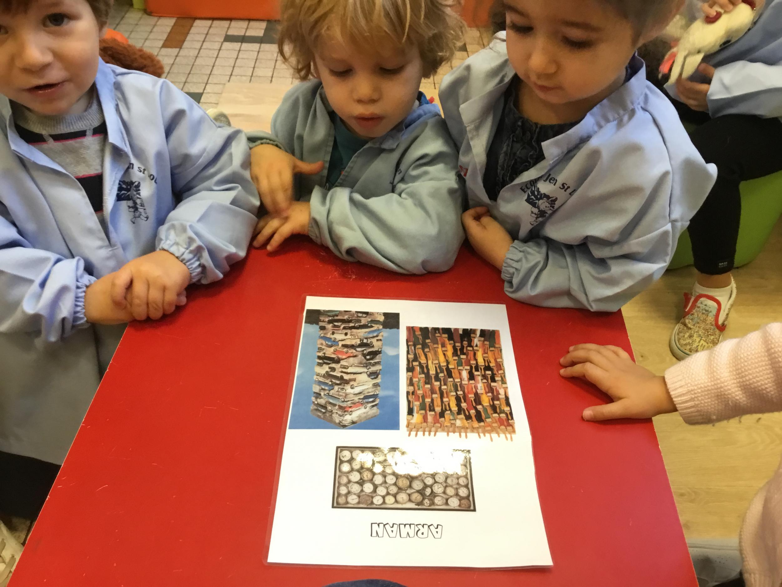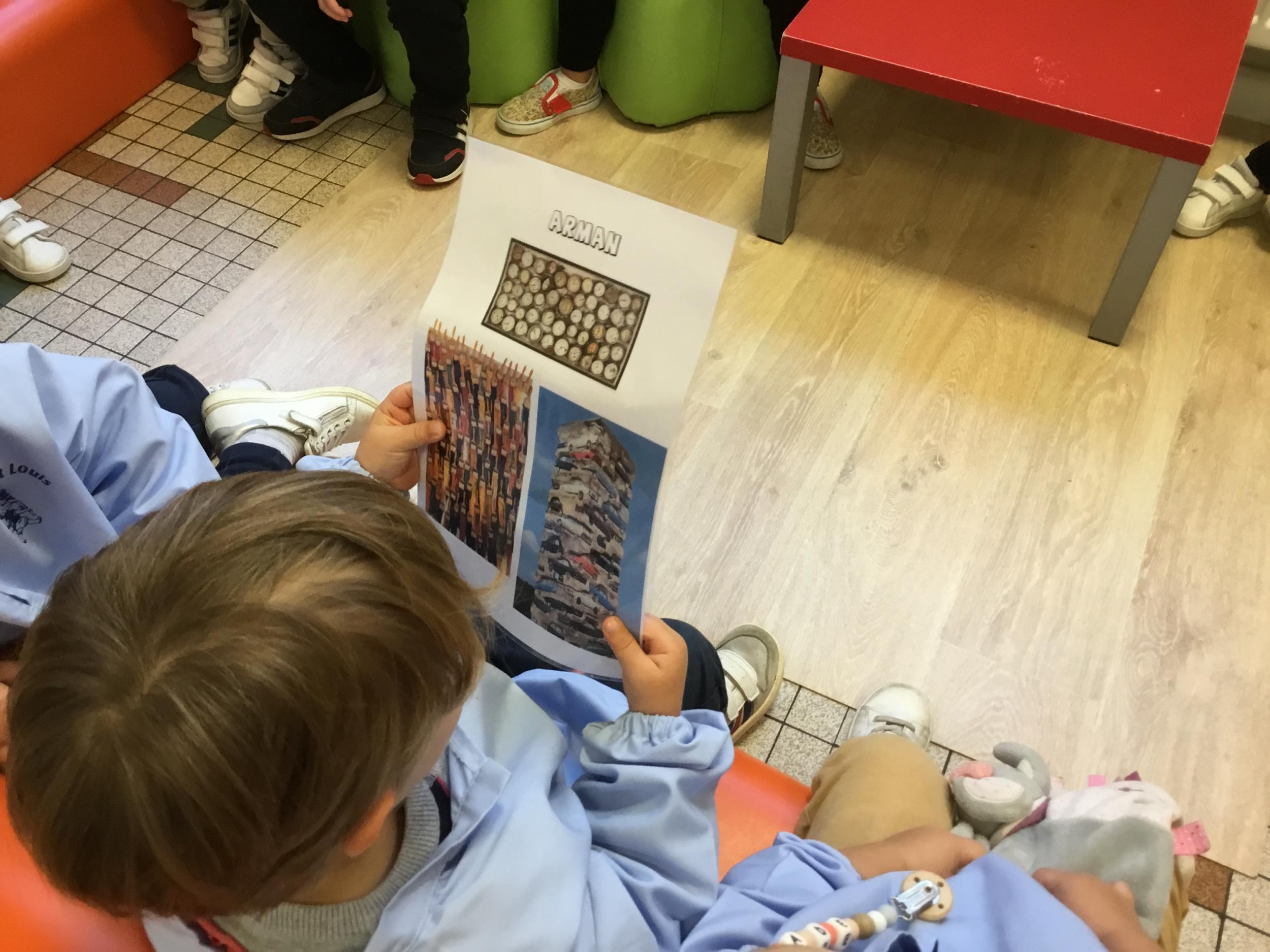 Les élèves ont découvert un nouvel artiste qui réalise des accumulations d’objets: Arman. Nous continuons ainsi à travailler sur notre projet autour des couleurs.