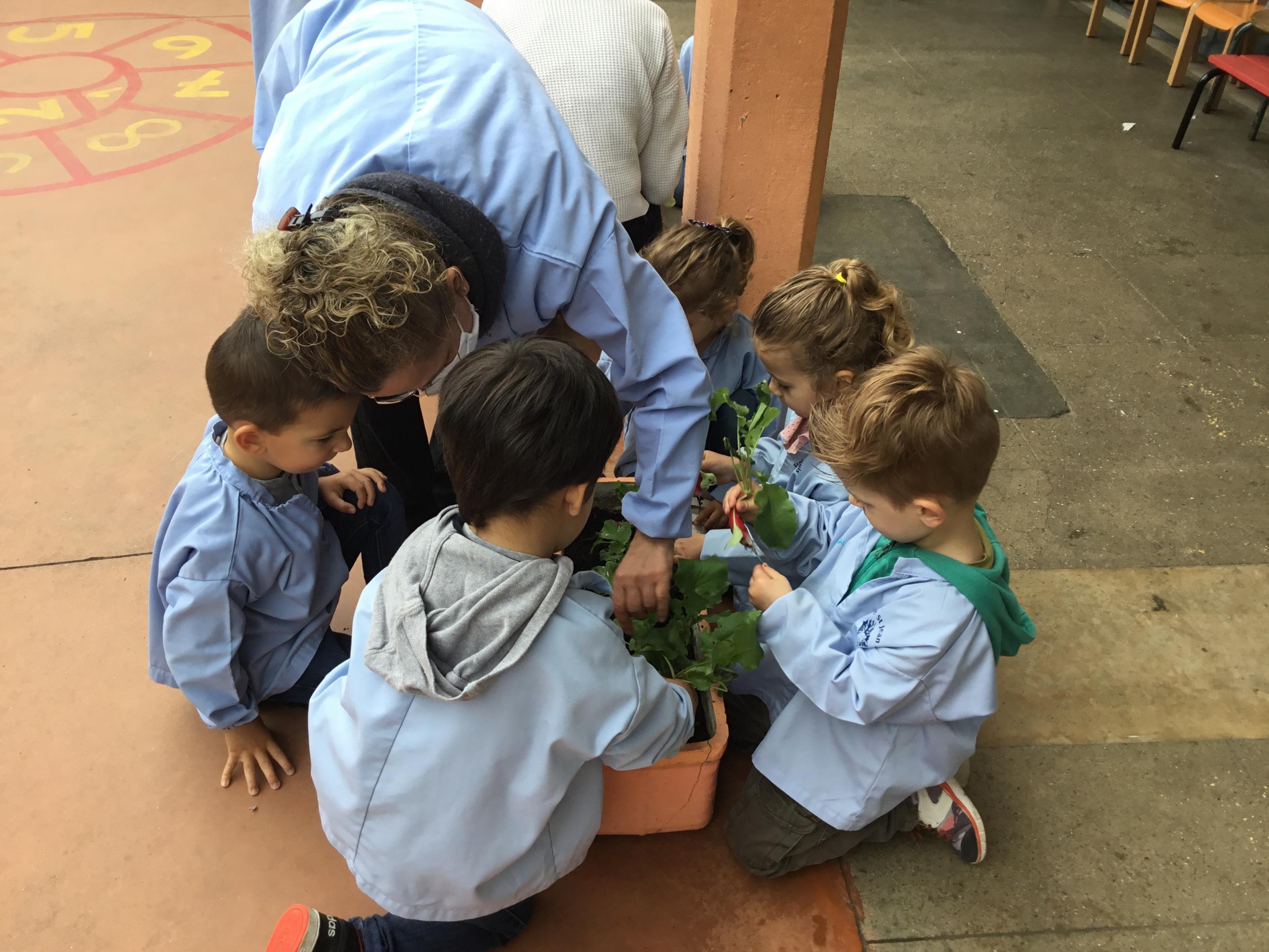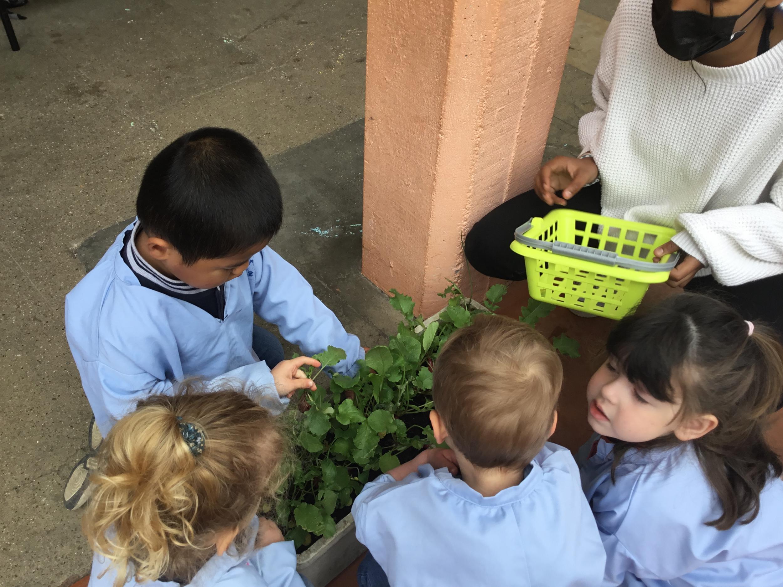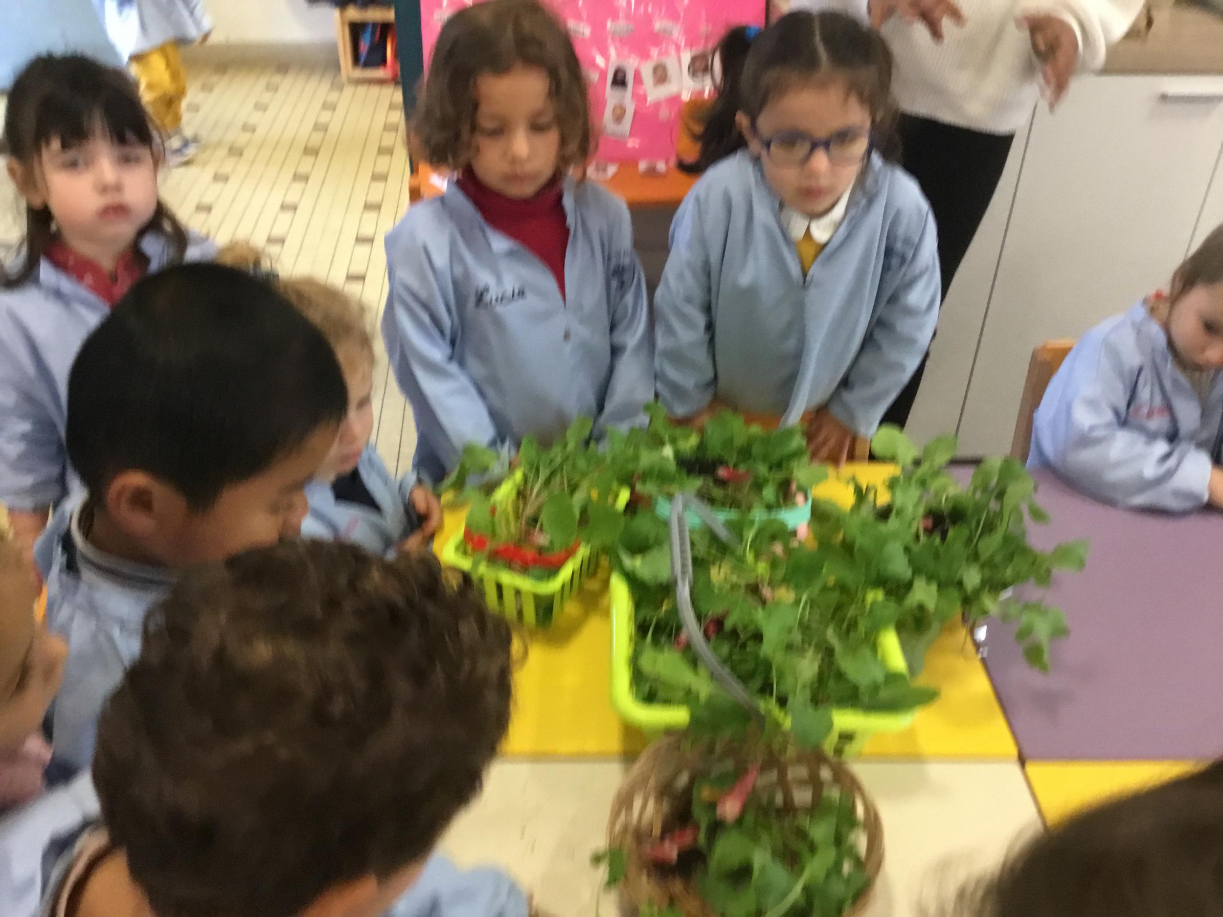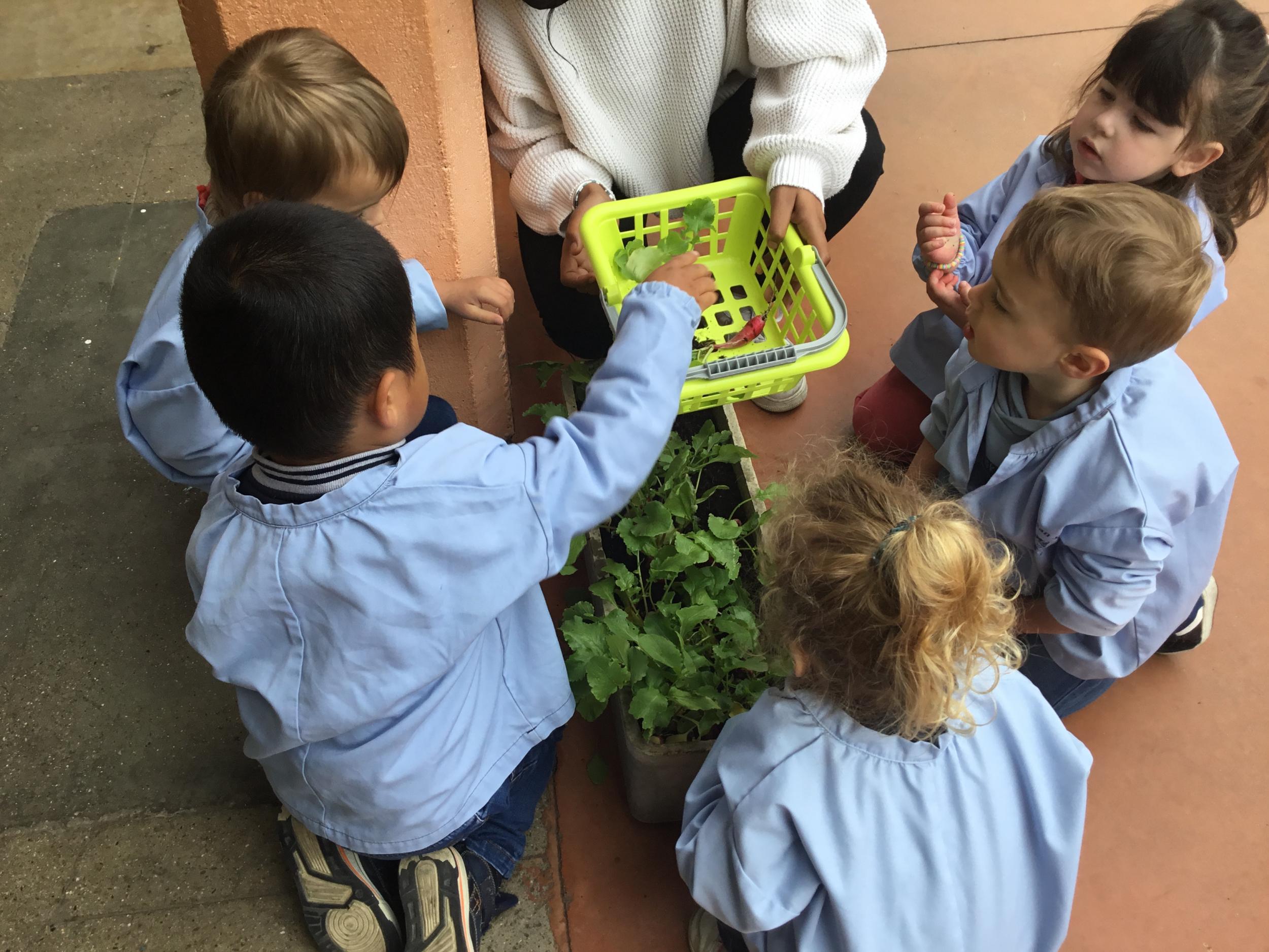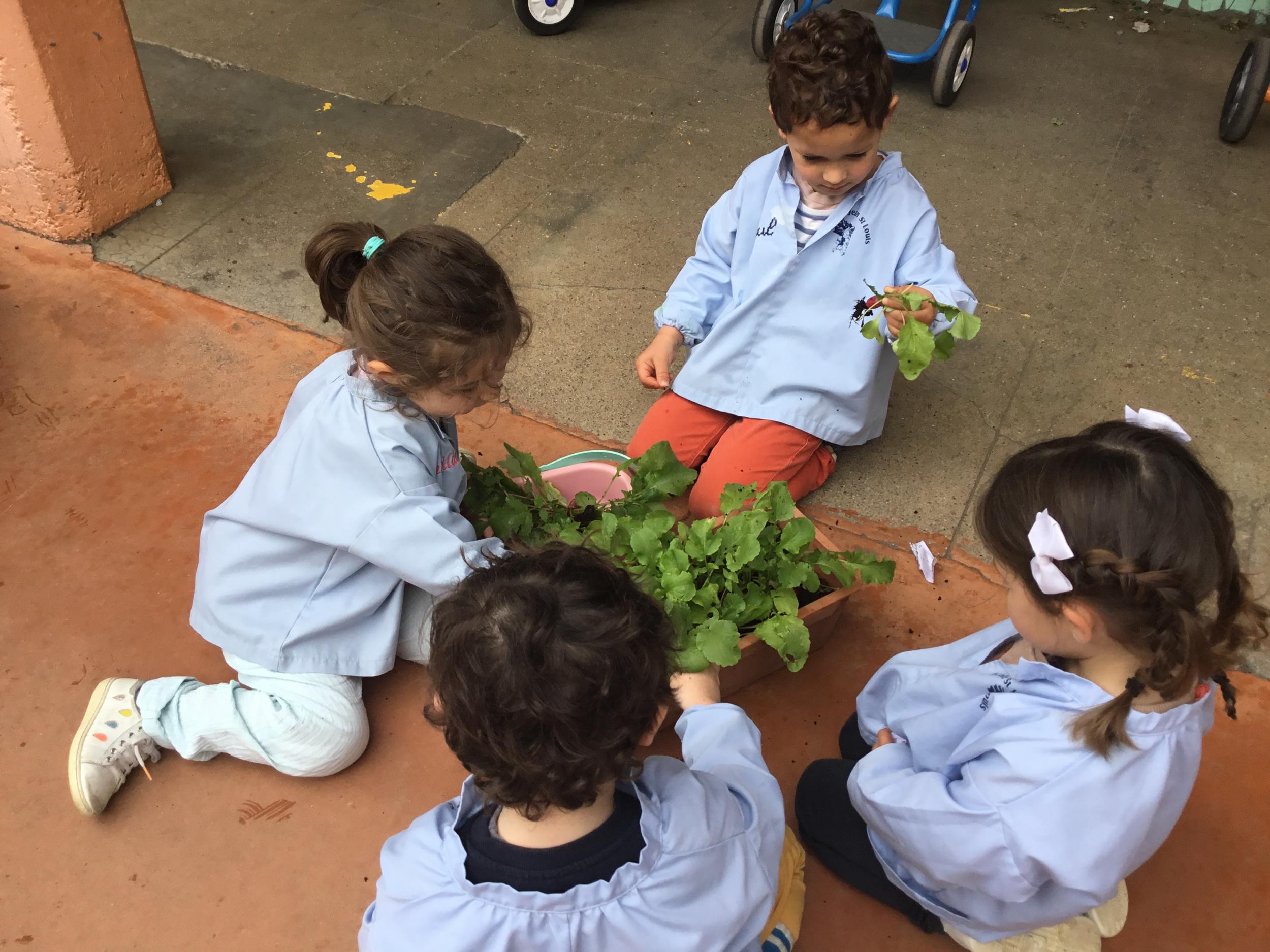 Il y a quelques semaines, les élèves de petite section ont semé des radis. Il était grand temps de les récolter.
