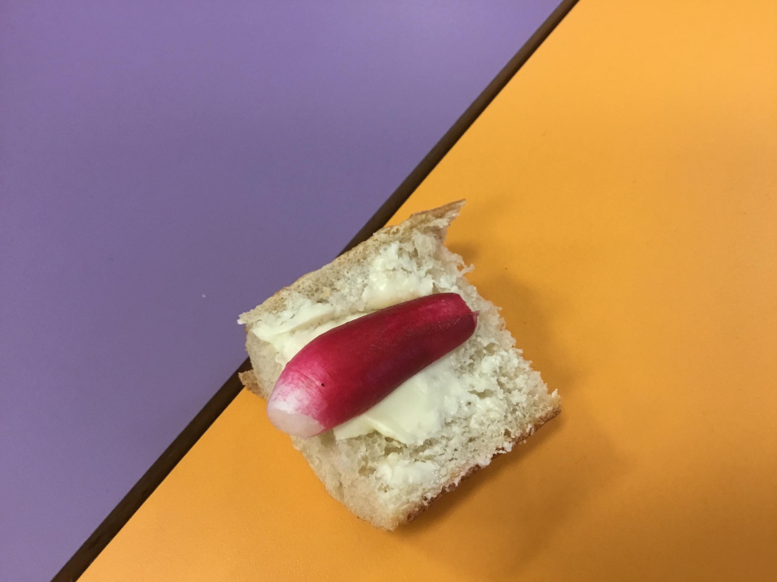 Après les avoir soigneusement lavés, les radis ont été dégustés avec des tartines de pain beurrées.