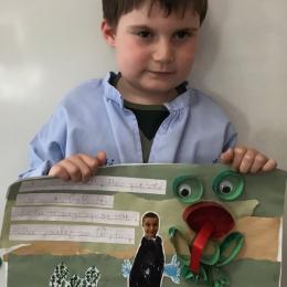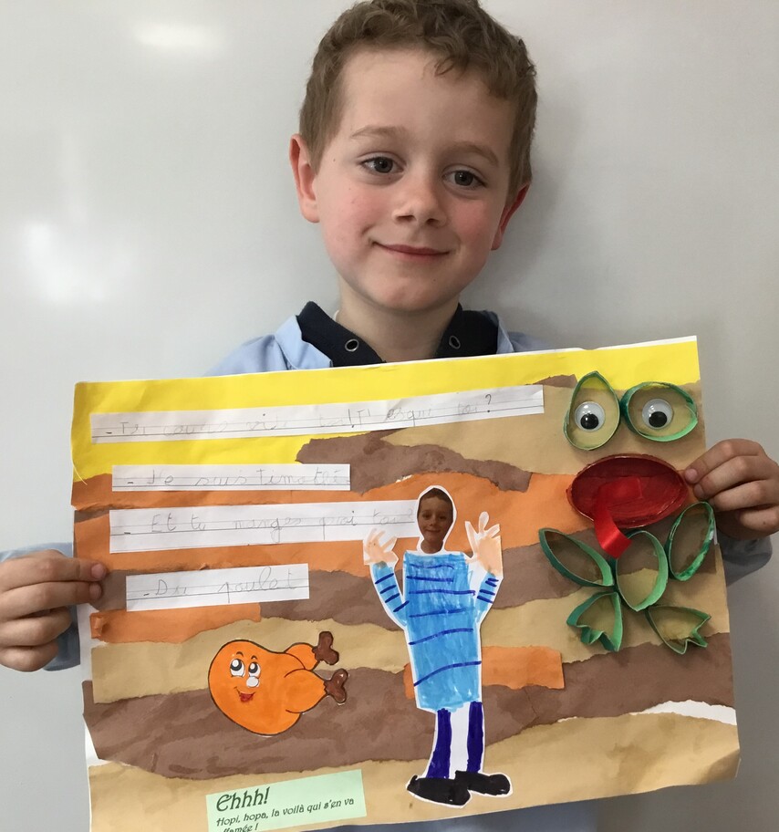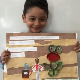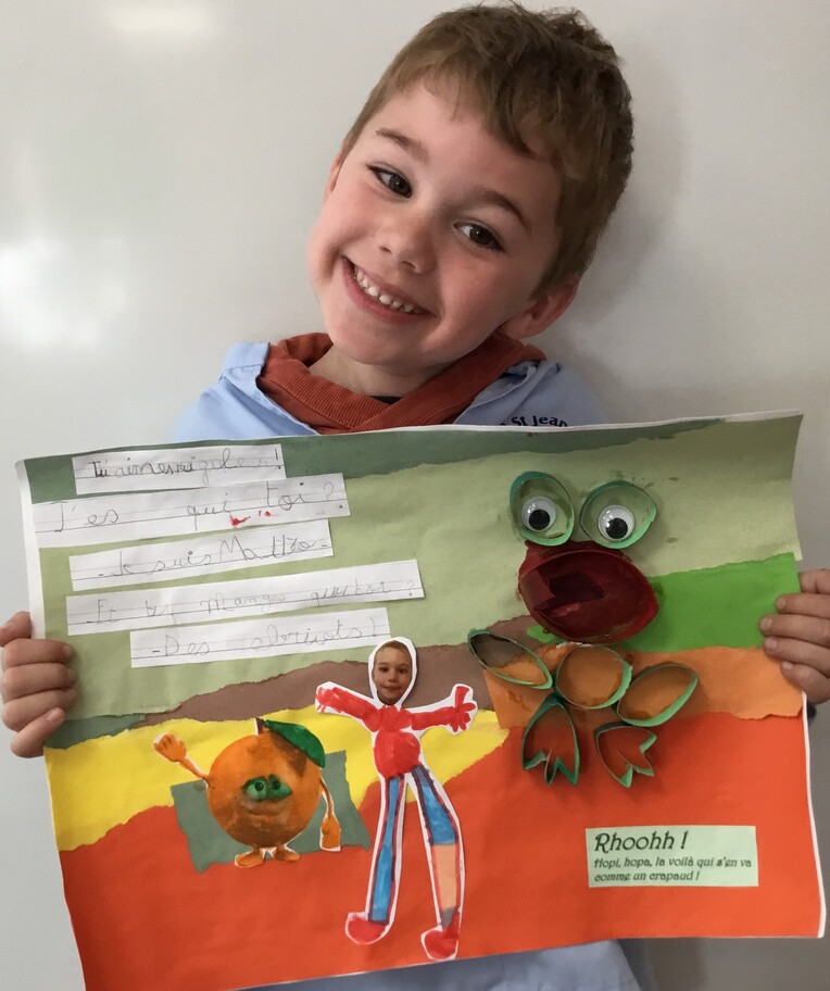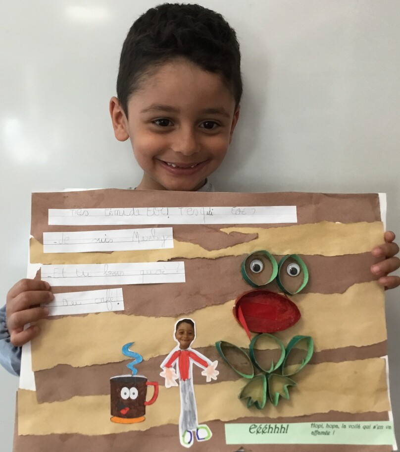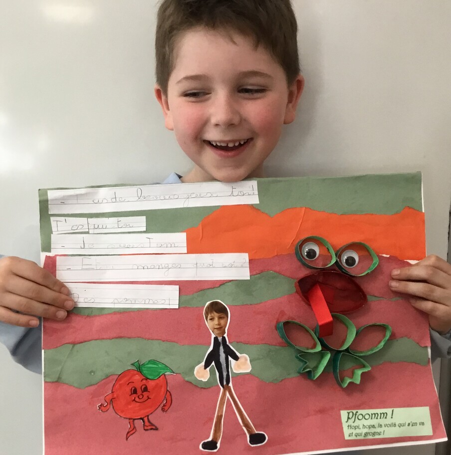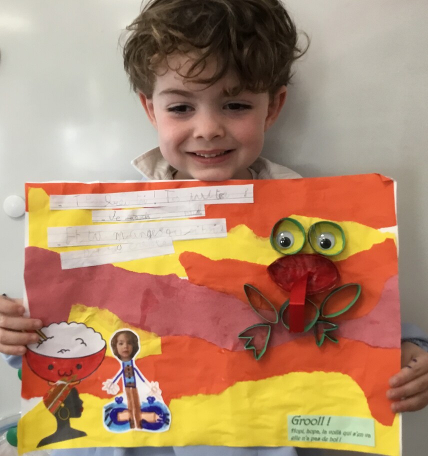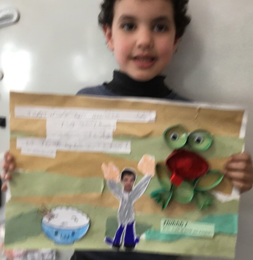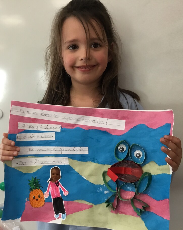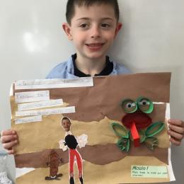 Il y eu un grand travail d'écriture car chacun a recopié le petit dialogue entre soi et la grenouille en écriture cursive! Beaucoup d'efforts pour de beaux résultats, bravo à chacun!