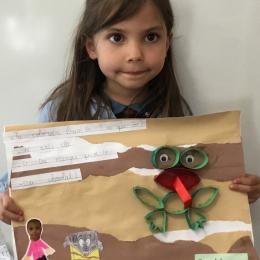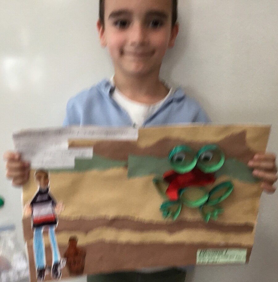 Puis, pour donner du relief à la production, ils ont représenté la grenouille en volume à l'aide d'anneaux de cartons peints et pliés.