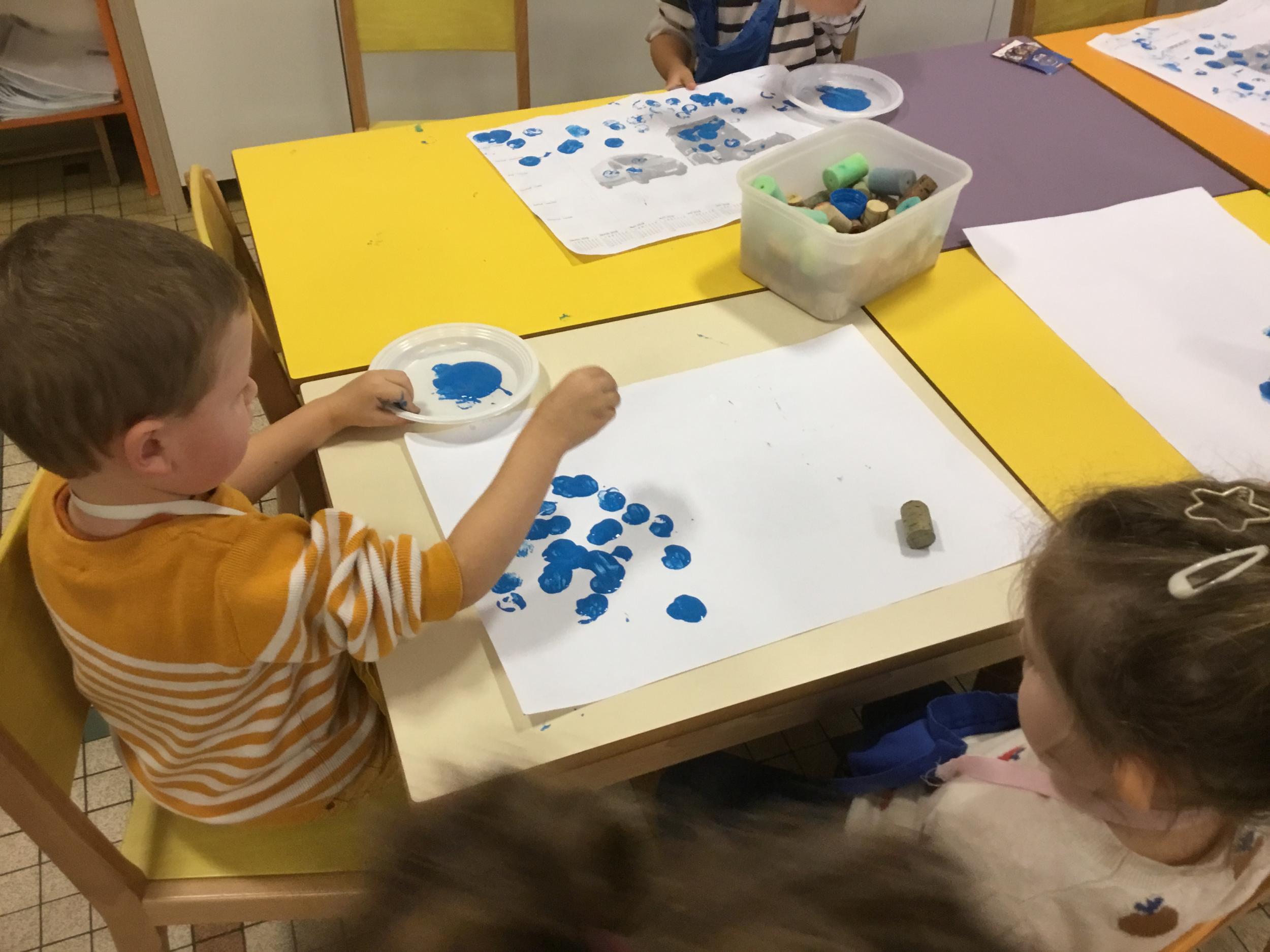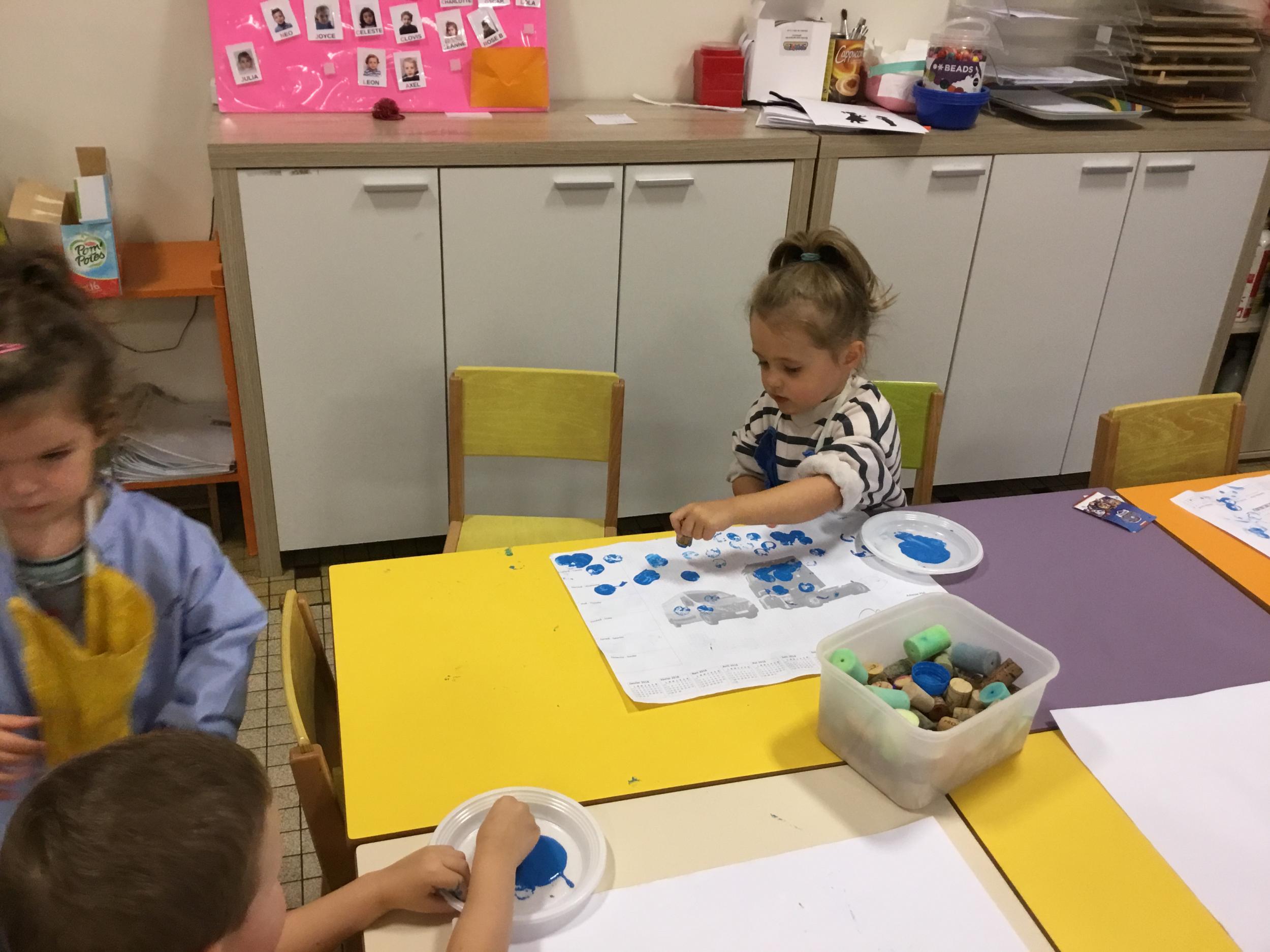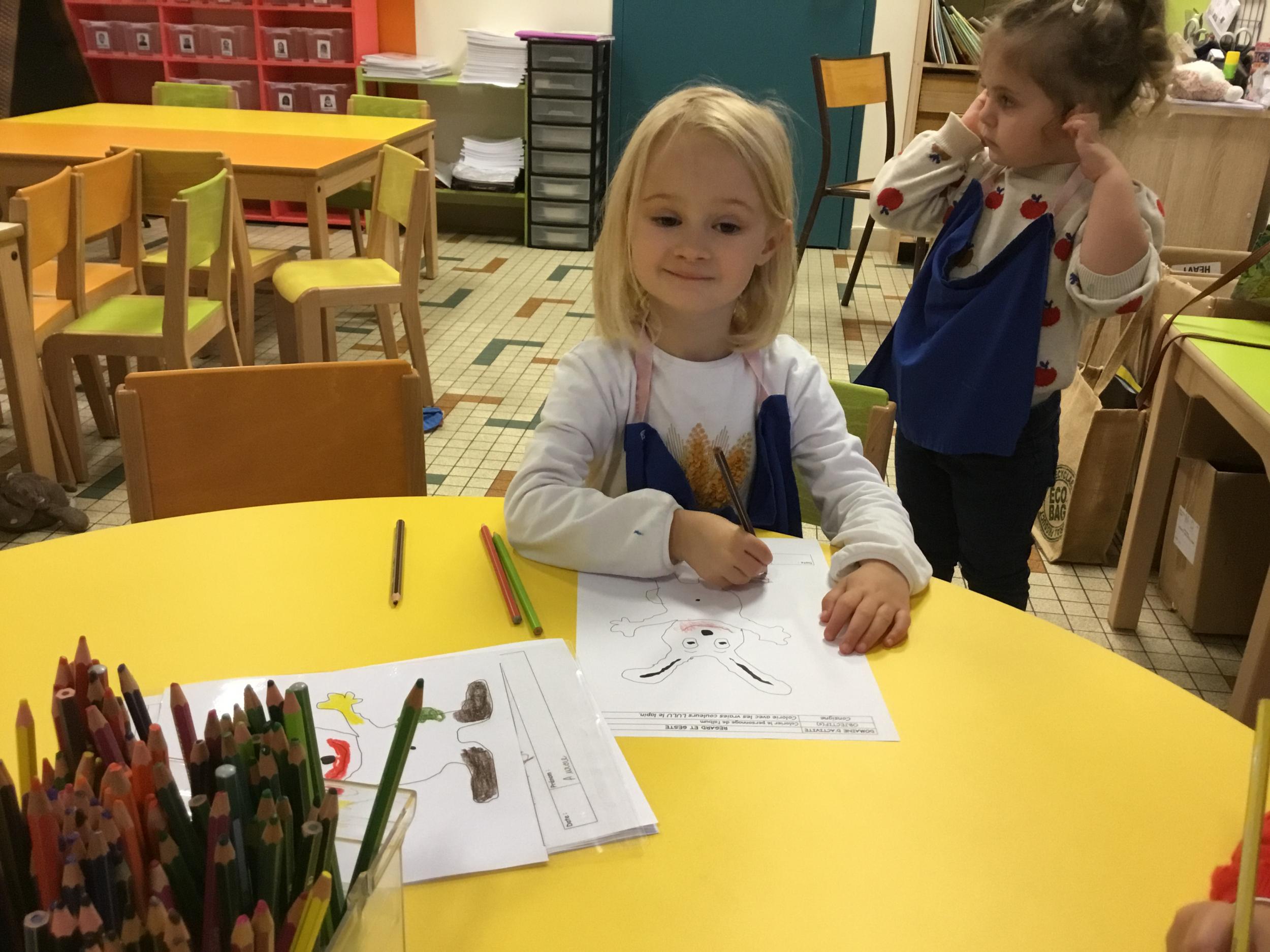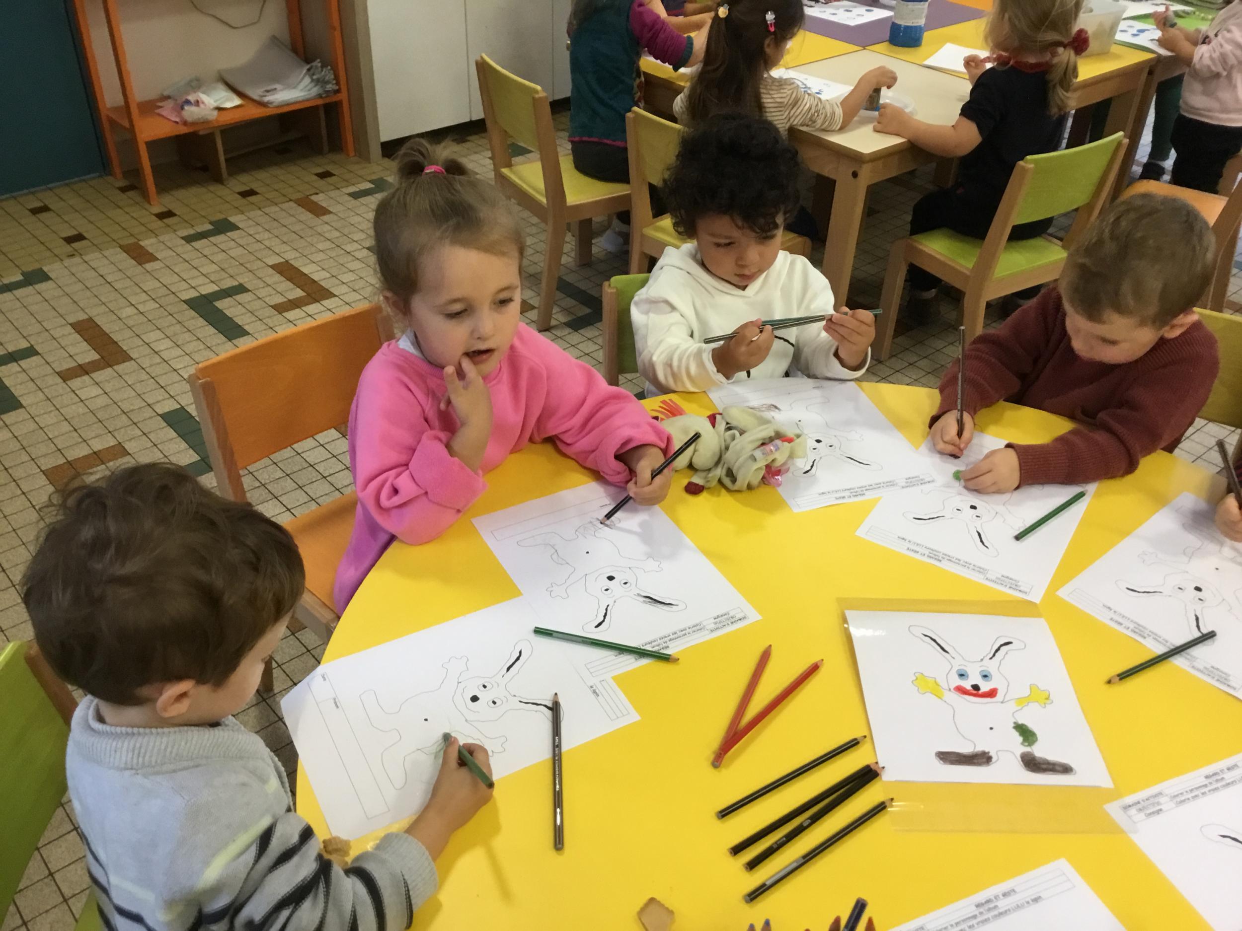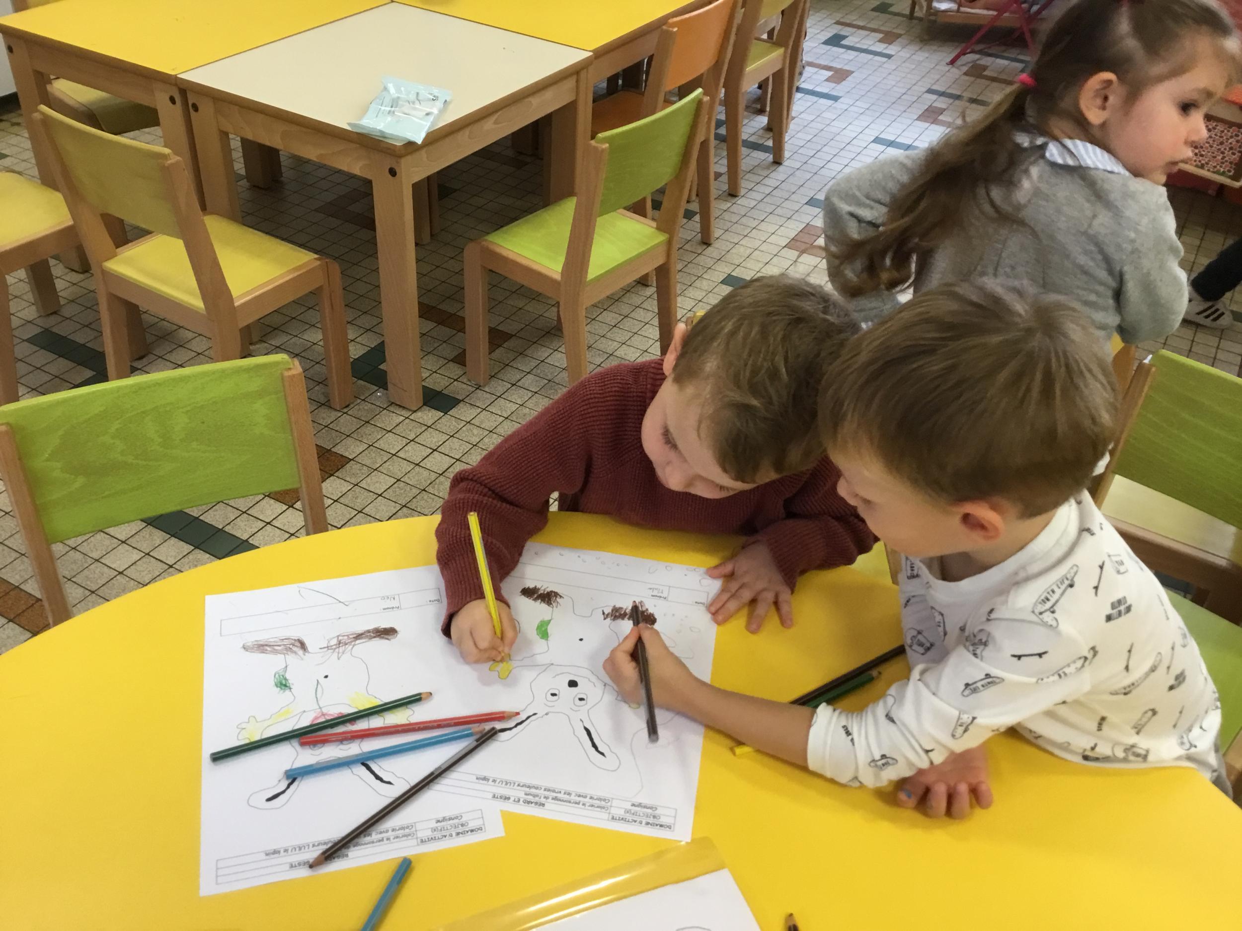 Petite et moyenne section 03/10/2021 Les élèves commencent à travailler sur les arts et la couleur à partir d’un premier album « Toutes les couleurs ». Écouter l’histoire et remettre les images de l’album dans l’ordre. Colorier Lucien en respectant les couleurs de l’histoire Laisser une trace: le bouchon et le bleu Ateliers perles et pâte à modeler