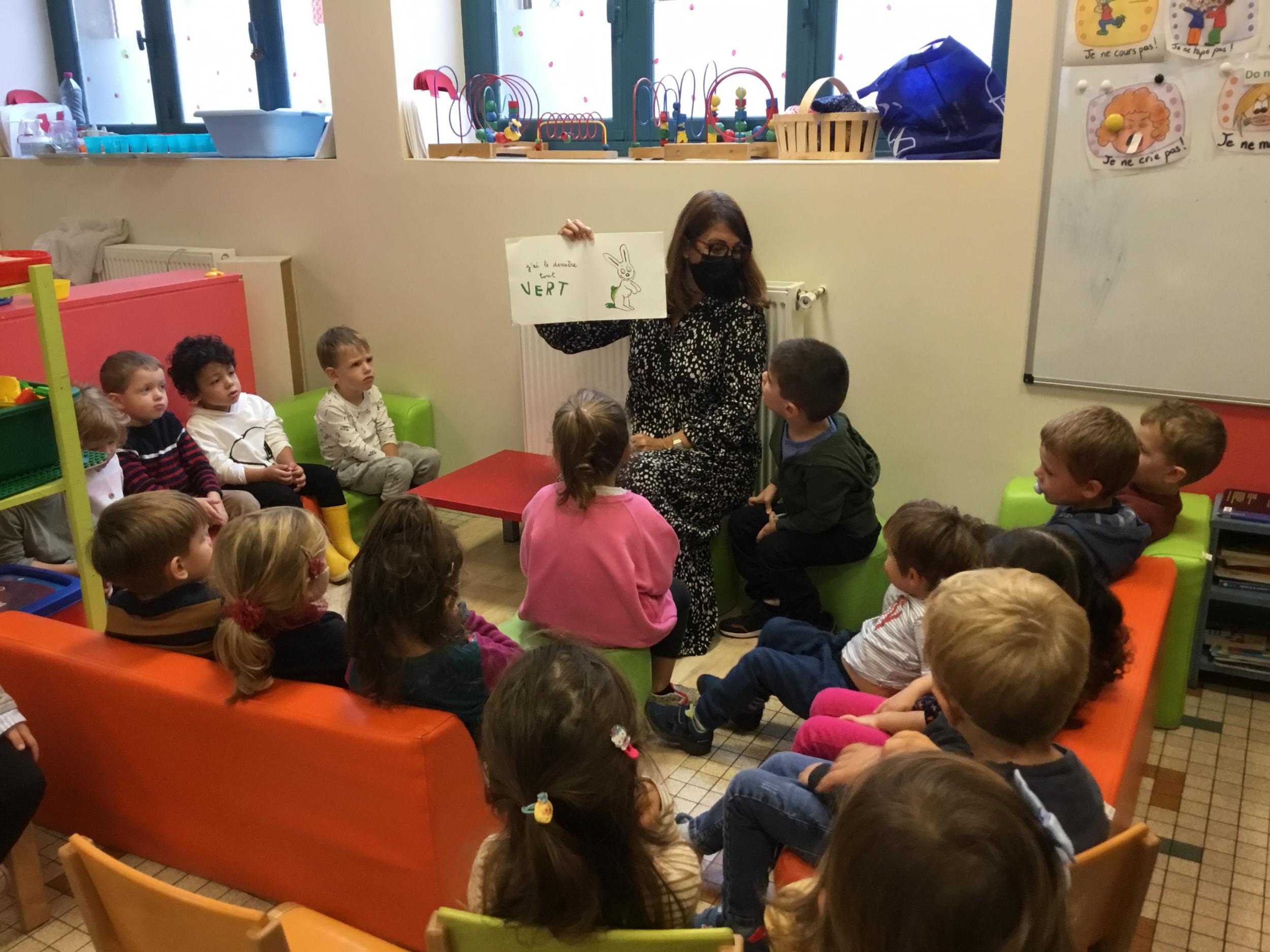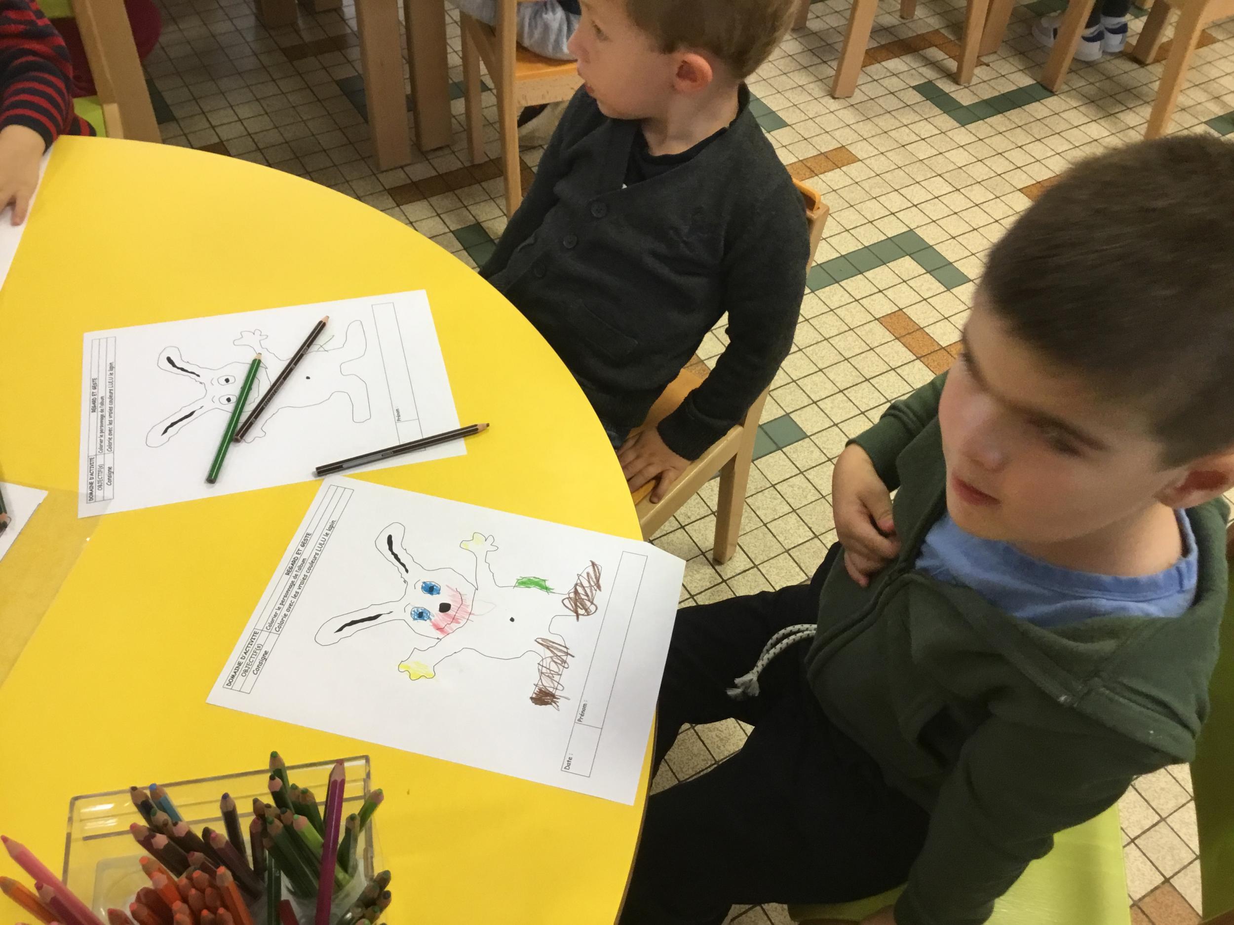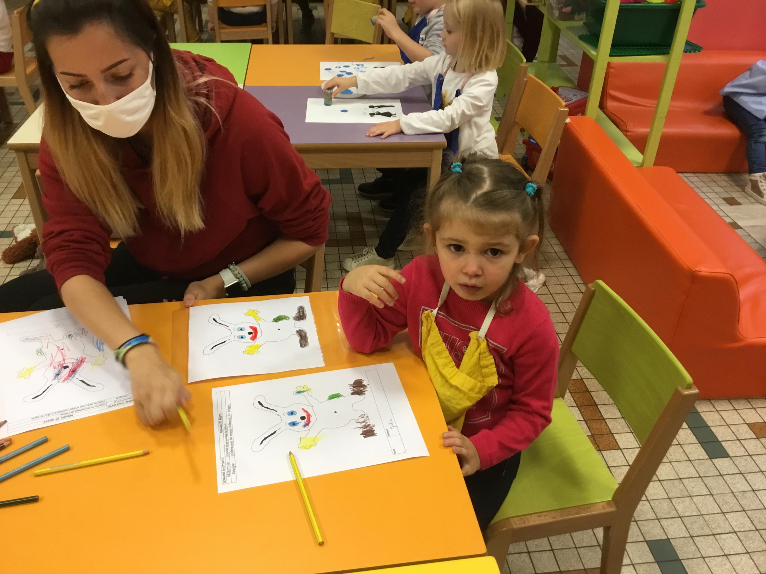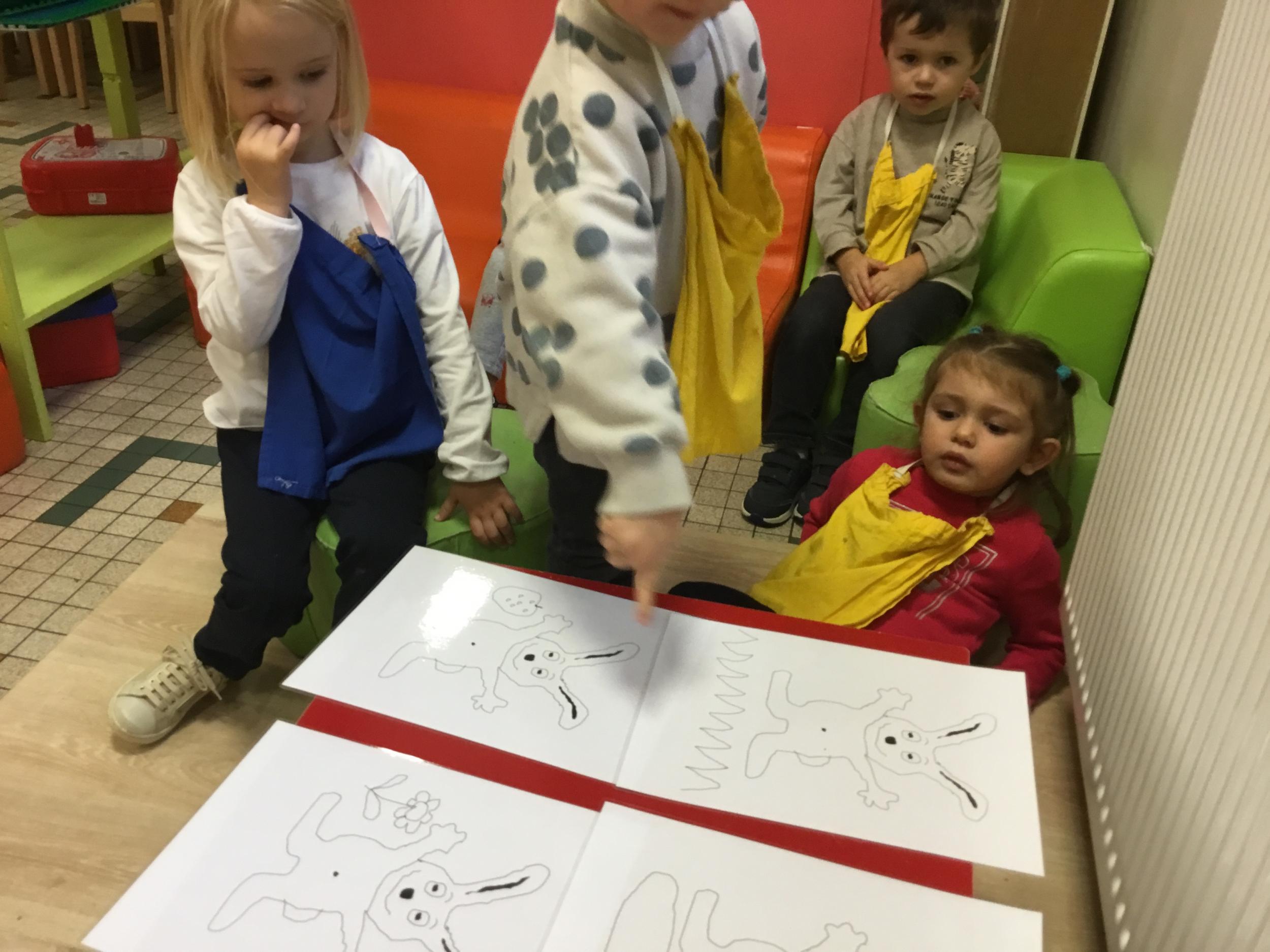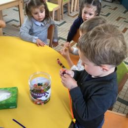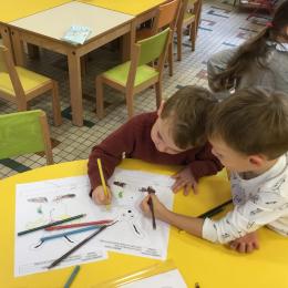Petite et moyenne section 03/10/2021 Les élèves commencent à travailler sur les arts et la couleur à partir d’un premier album « Toutes les couleurs ». Écouter l’histoire et remettre les images de l’album dans l’ordre. Colorier Lucien en respectant les couleurs de l’histoire Laisser une trace: le bouchon et le bleu Ateliers perles et pâte à modeler