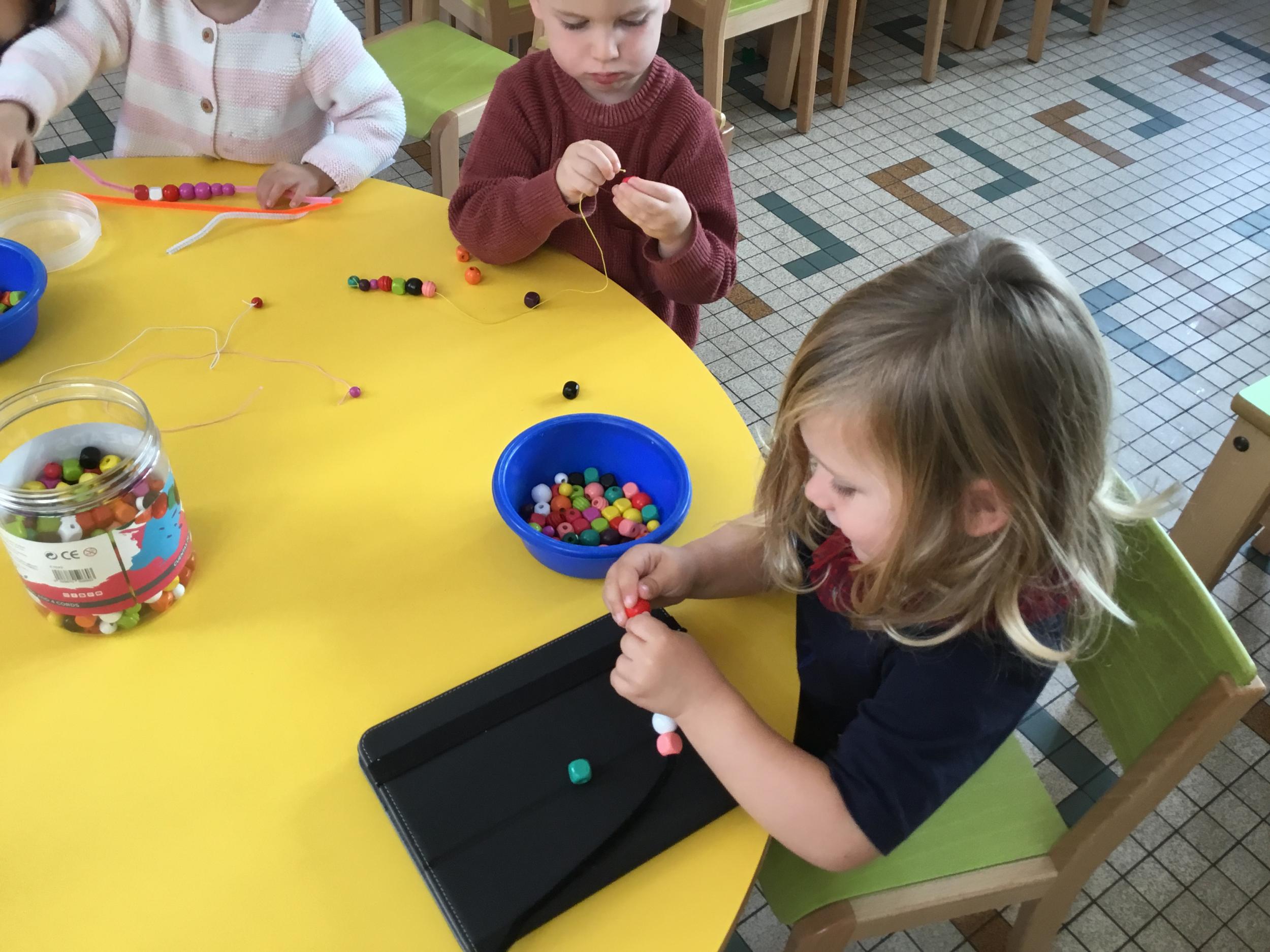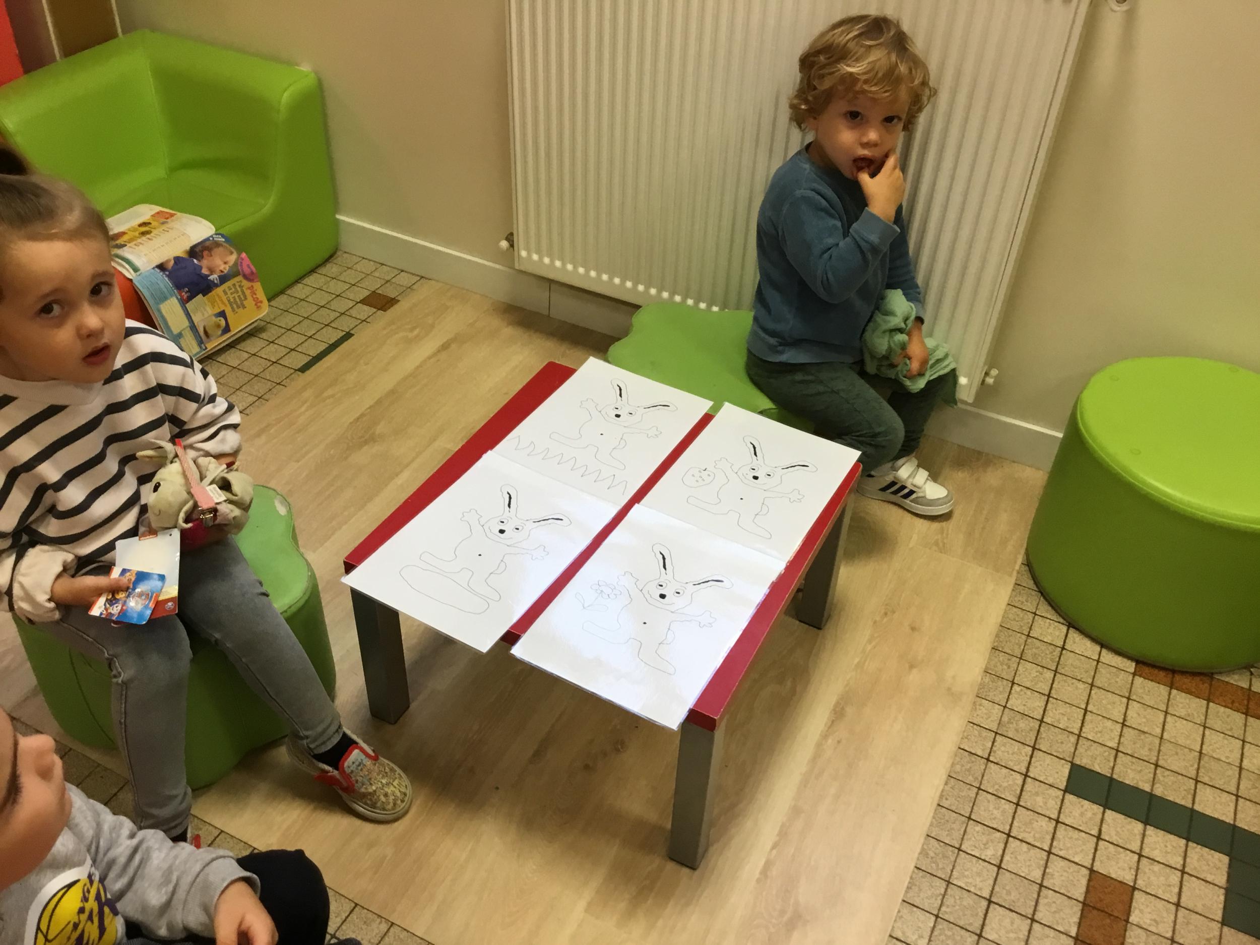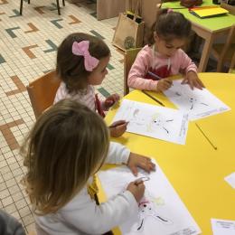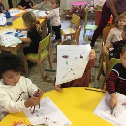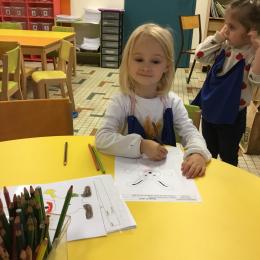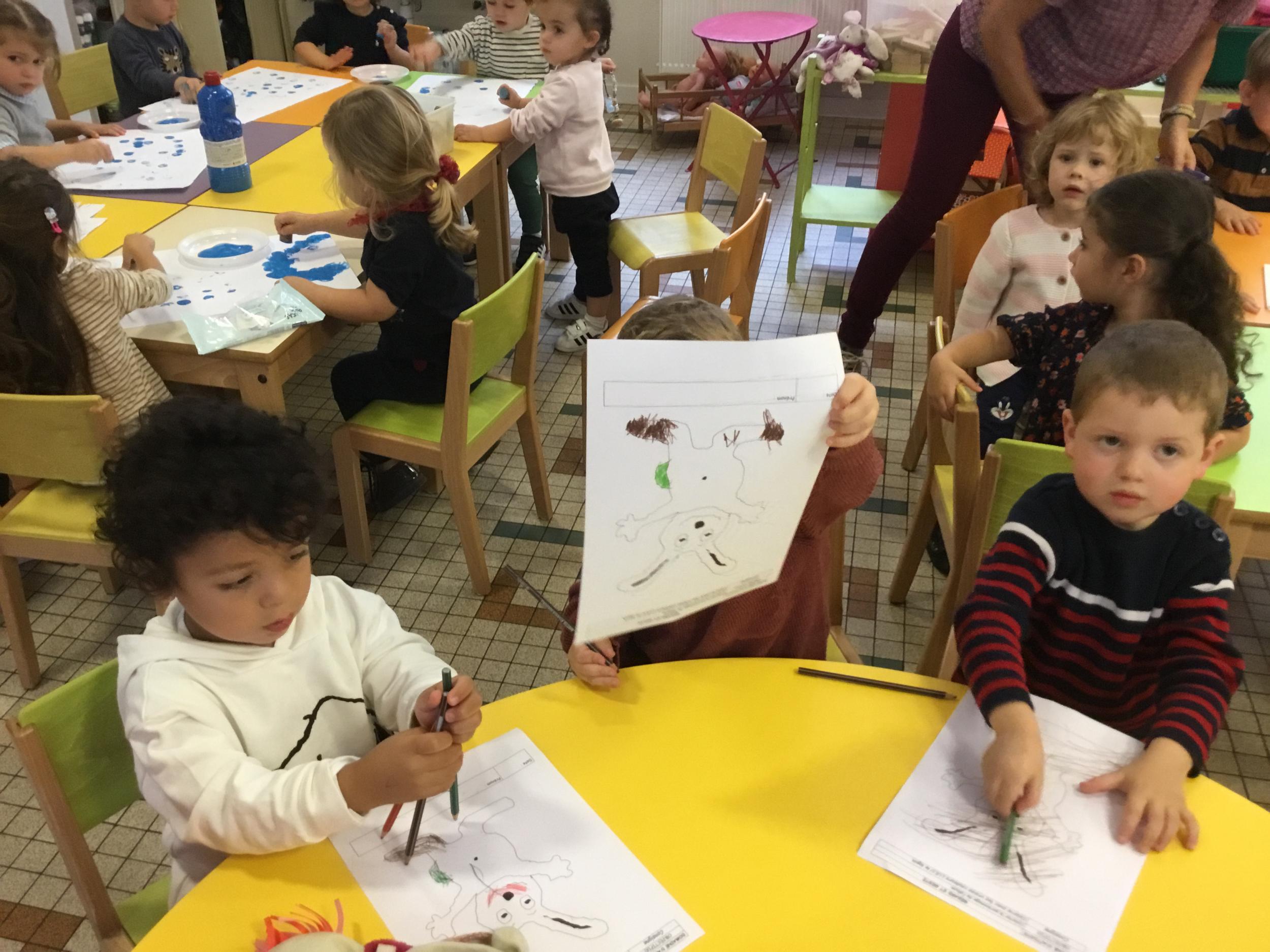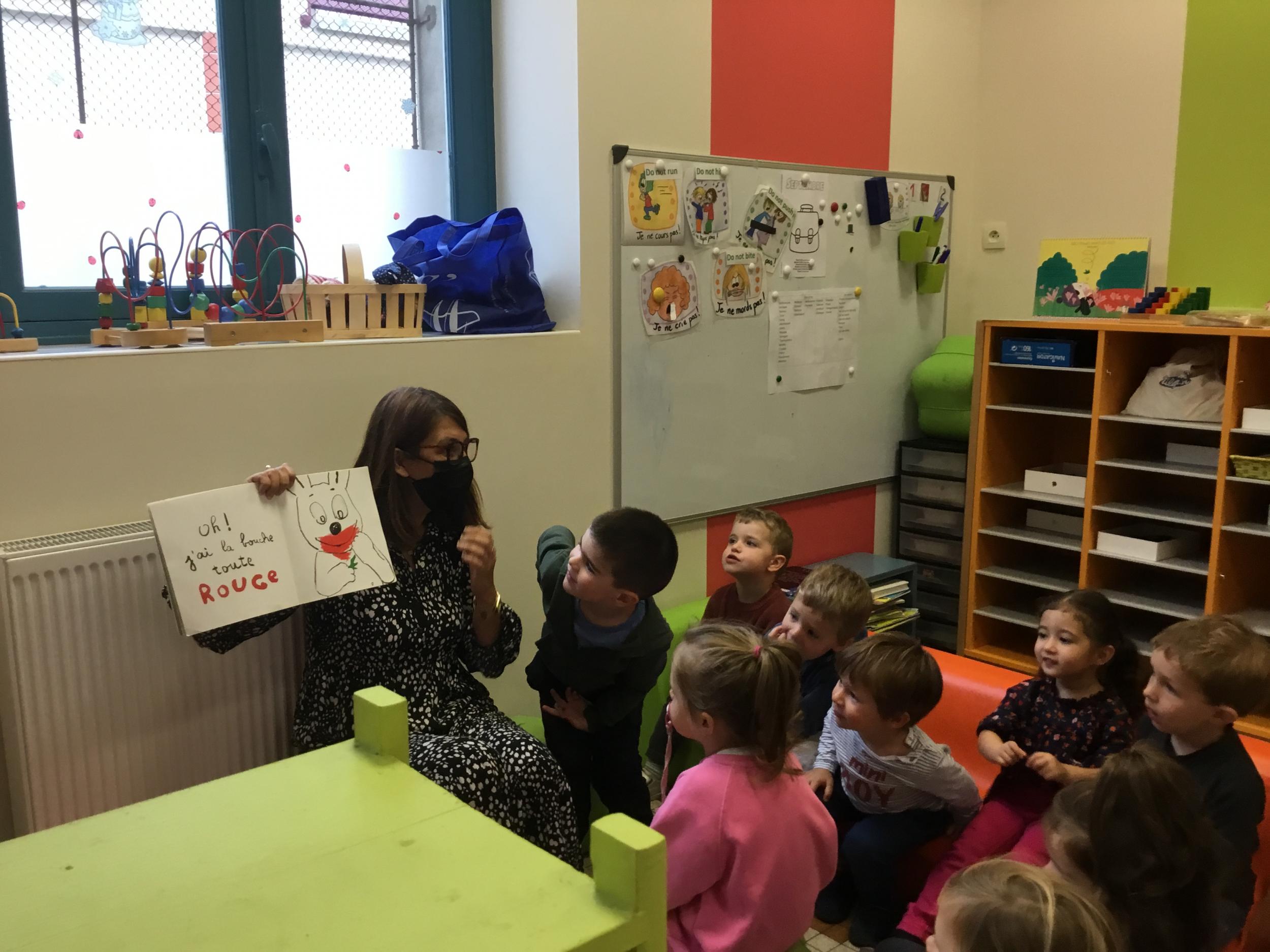 Petite et moyenne section 03/10/2021 Les élèves commencent à travailler sur les arts et la couleur à partir d’un premier album « Toutes les couleurs ». Écouter l’histoire et remettre les images de l’album dans l’ordre. Colorier Lucien en respectant les couleurs de l’histoire Laisser une trace: le bouchon et le bleu Ateliers perles et pâte à modeler
