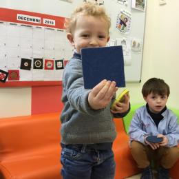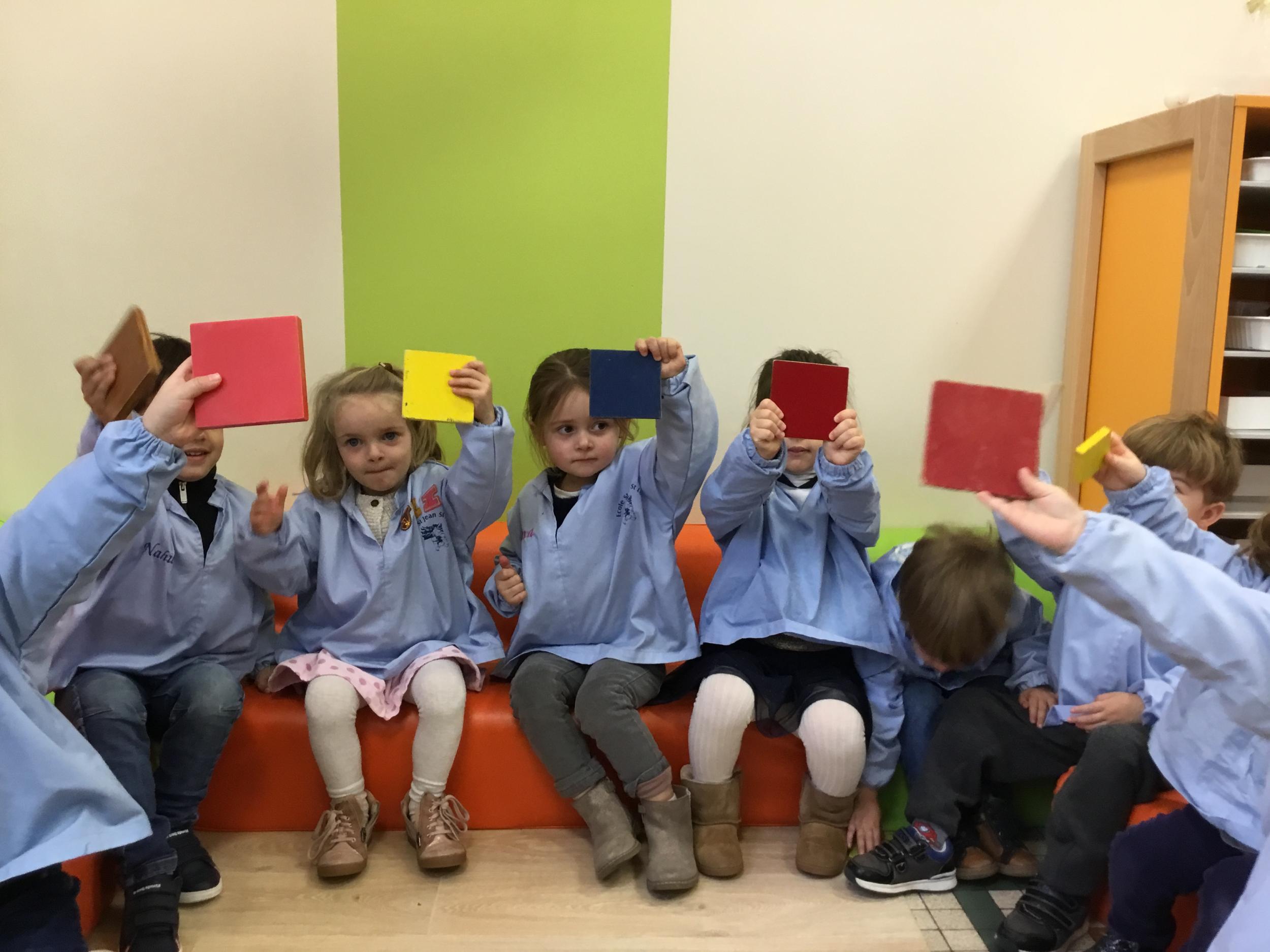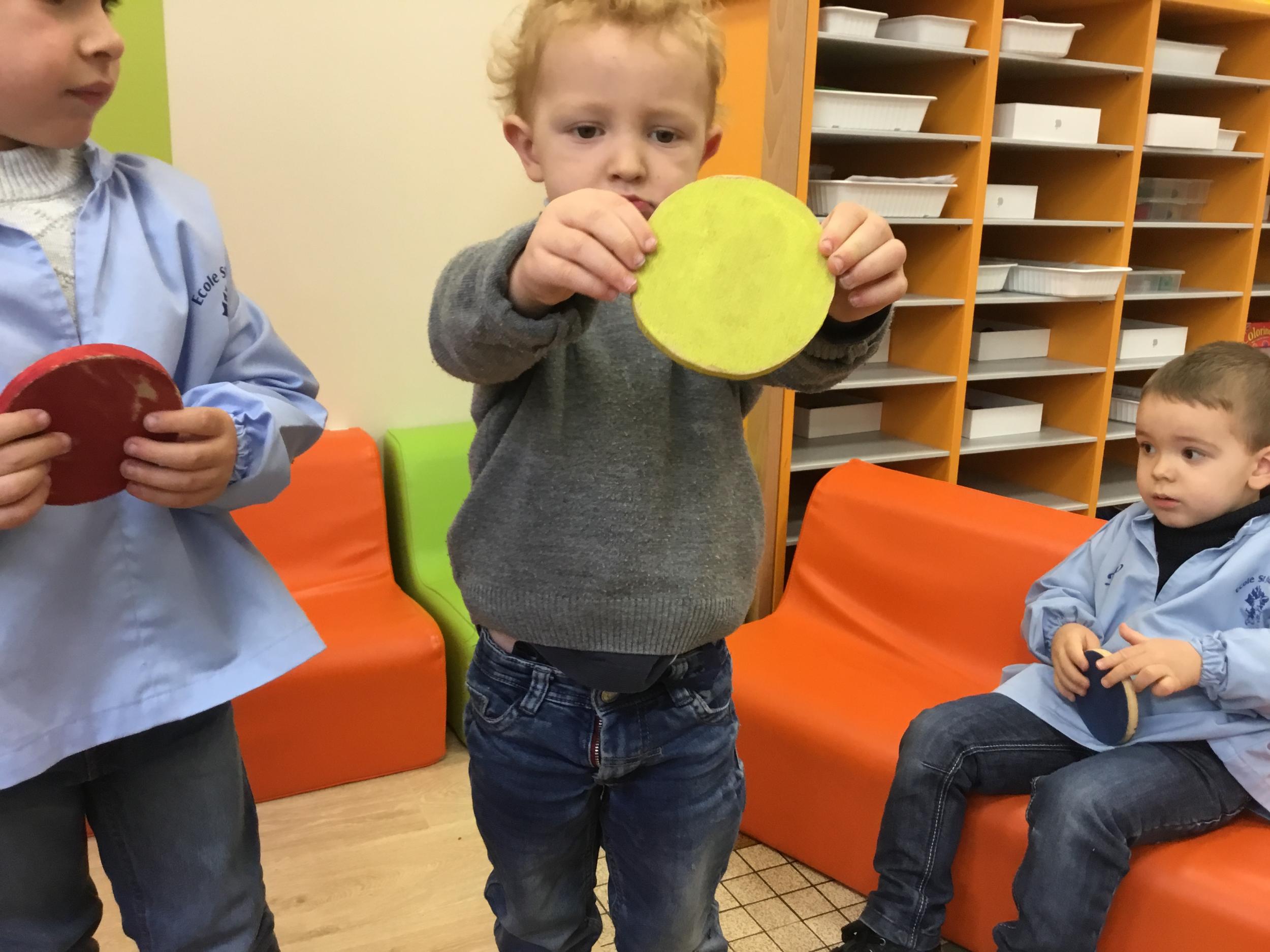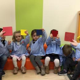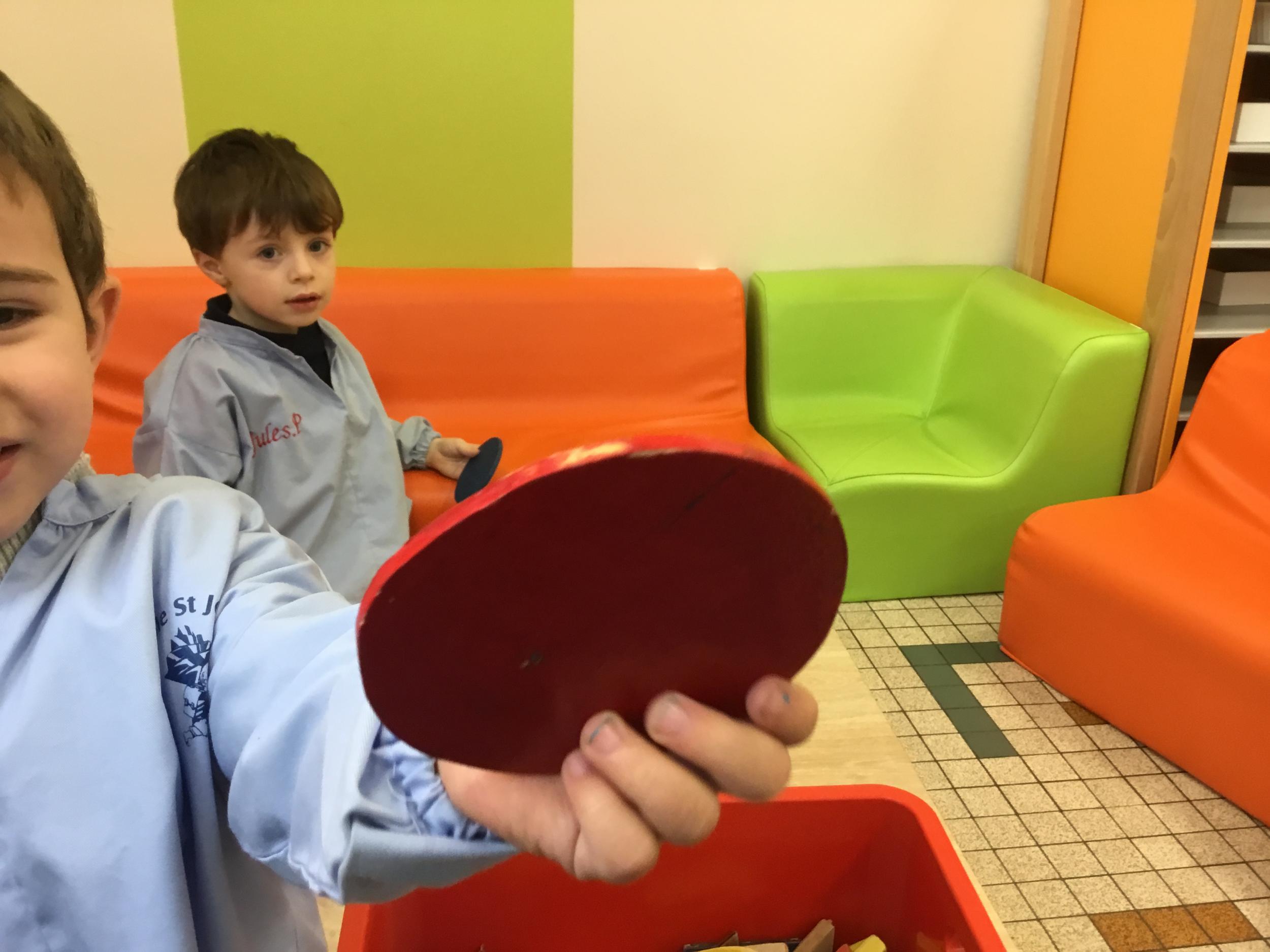 Cette période les élèves travaillent sur le thème des formes géométriques. Il s’agit de les reconnaître et les nommer. Le thème a été abordé de différentes manières.