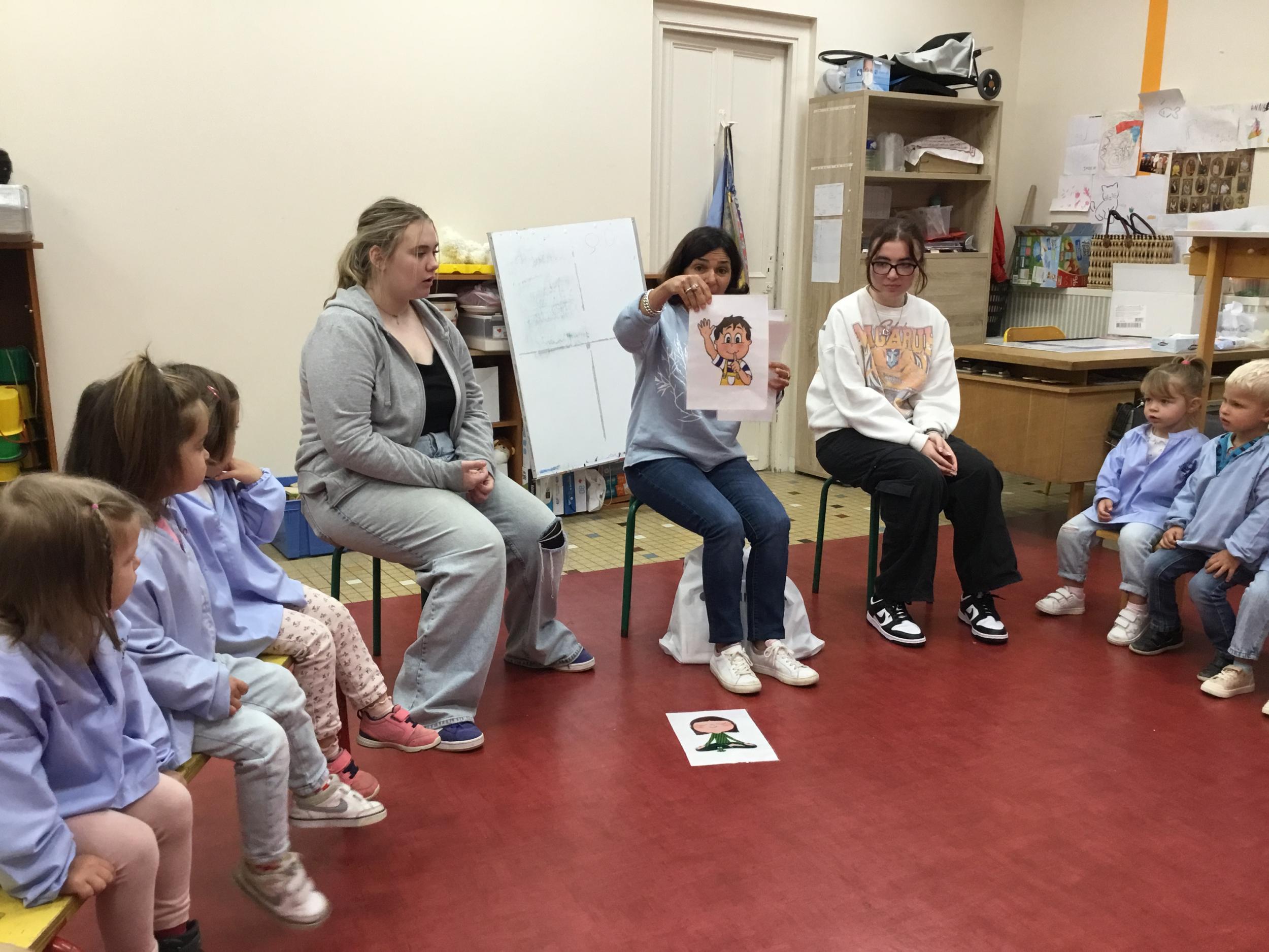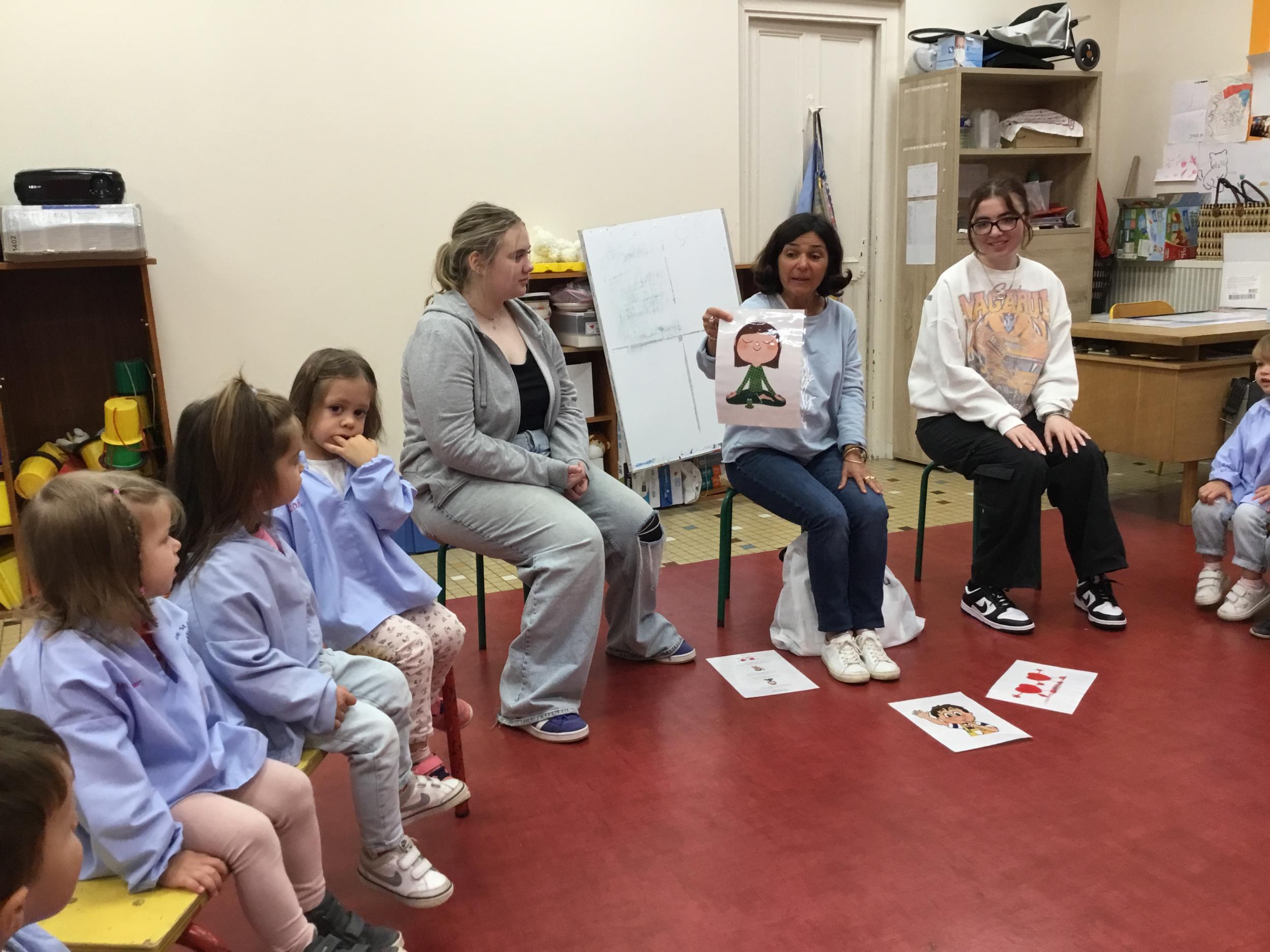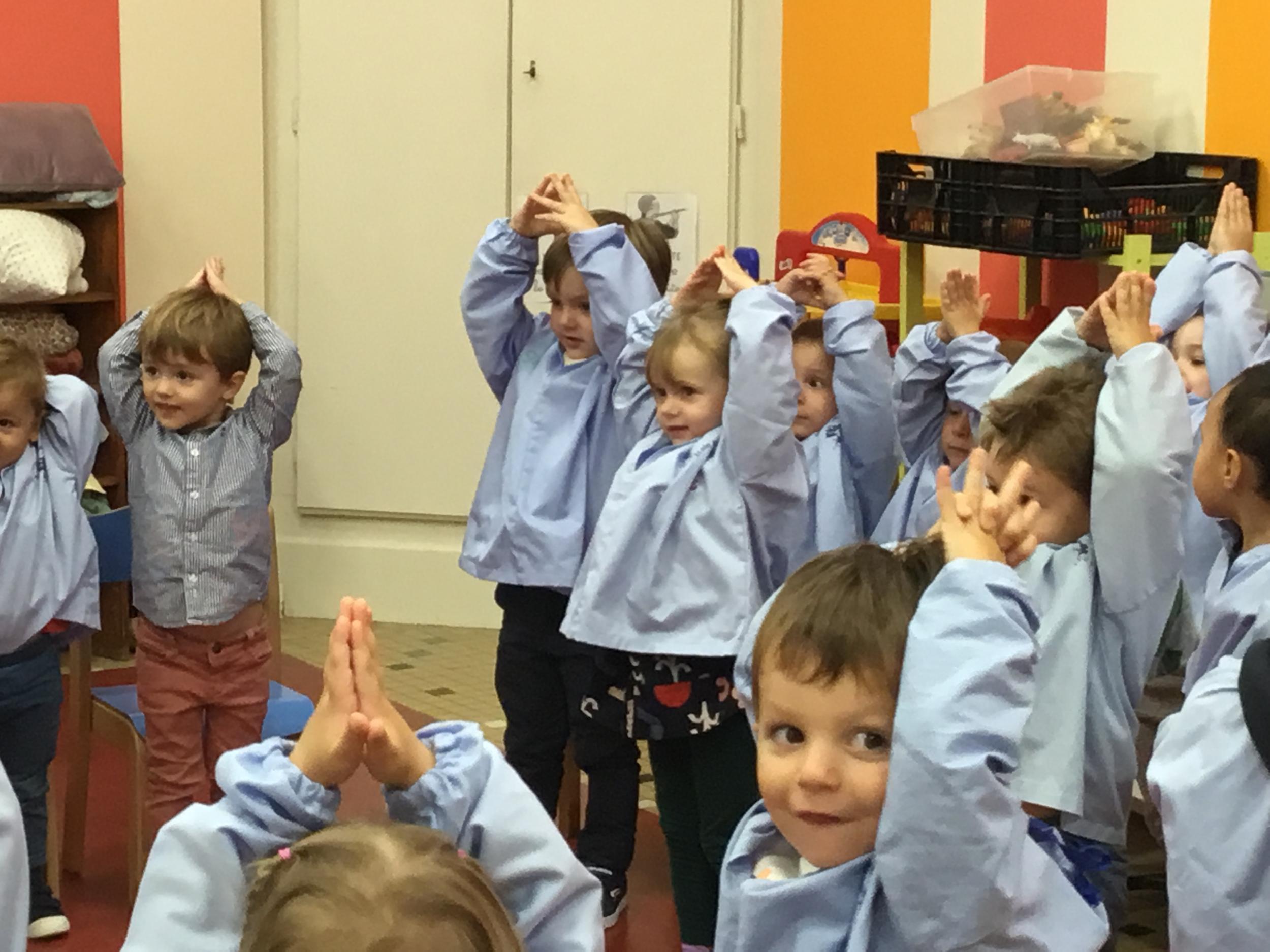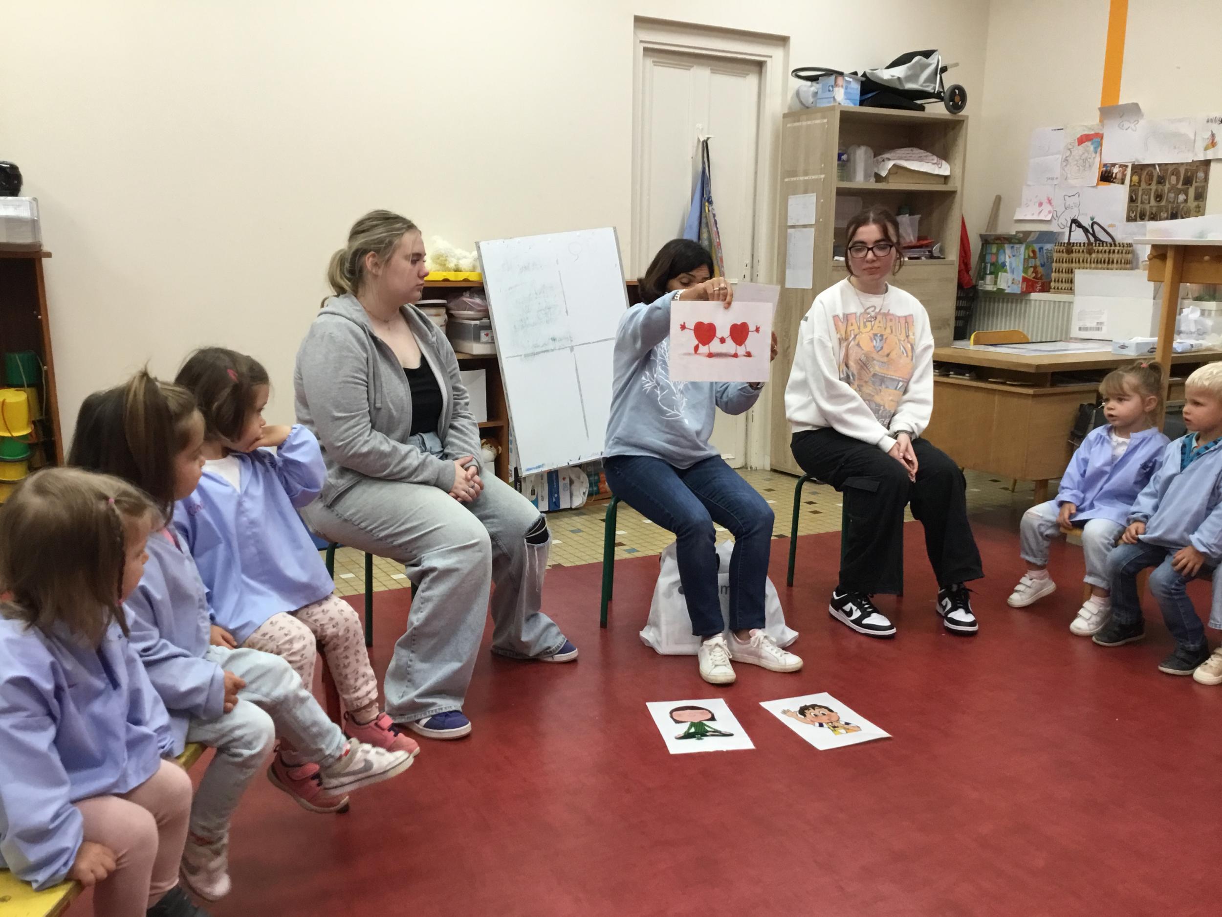 Nous avons appris la chanson de Gigi et Loulou, un rituel qui introduit chaque séance d’éducation à la relation.