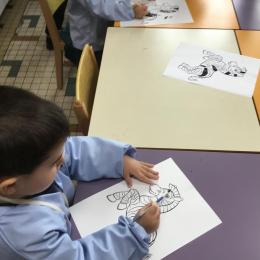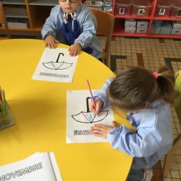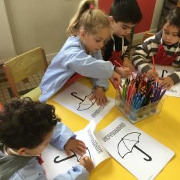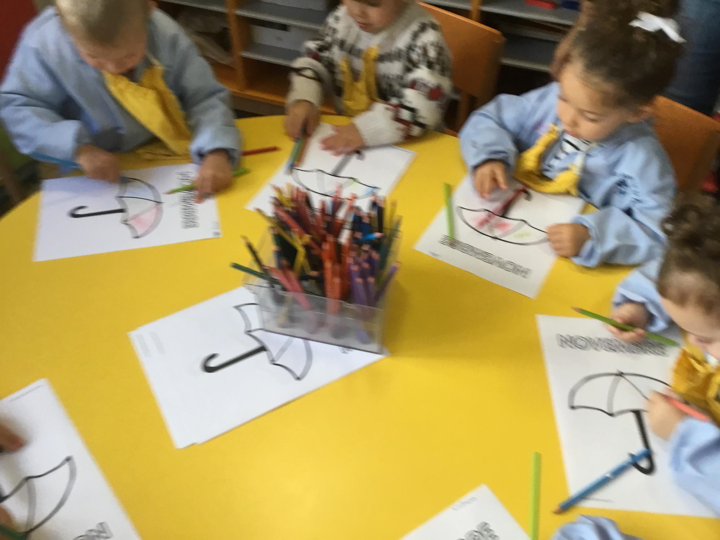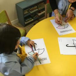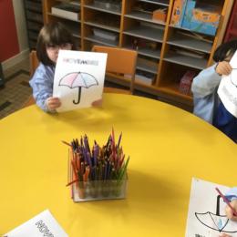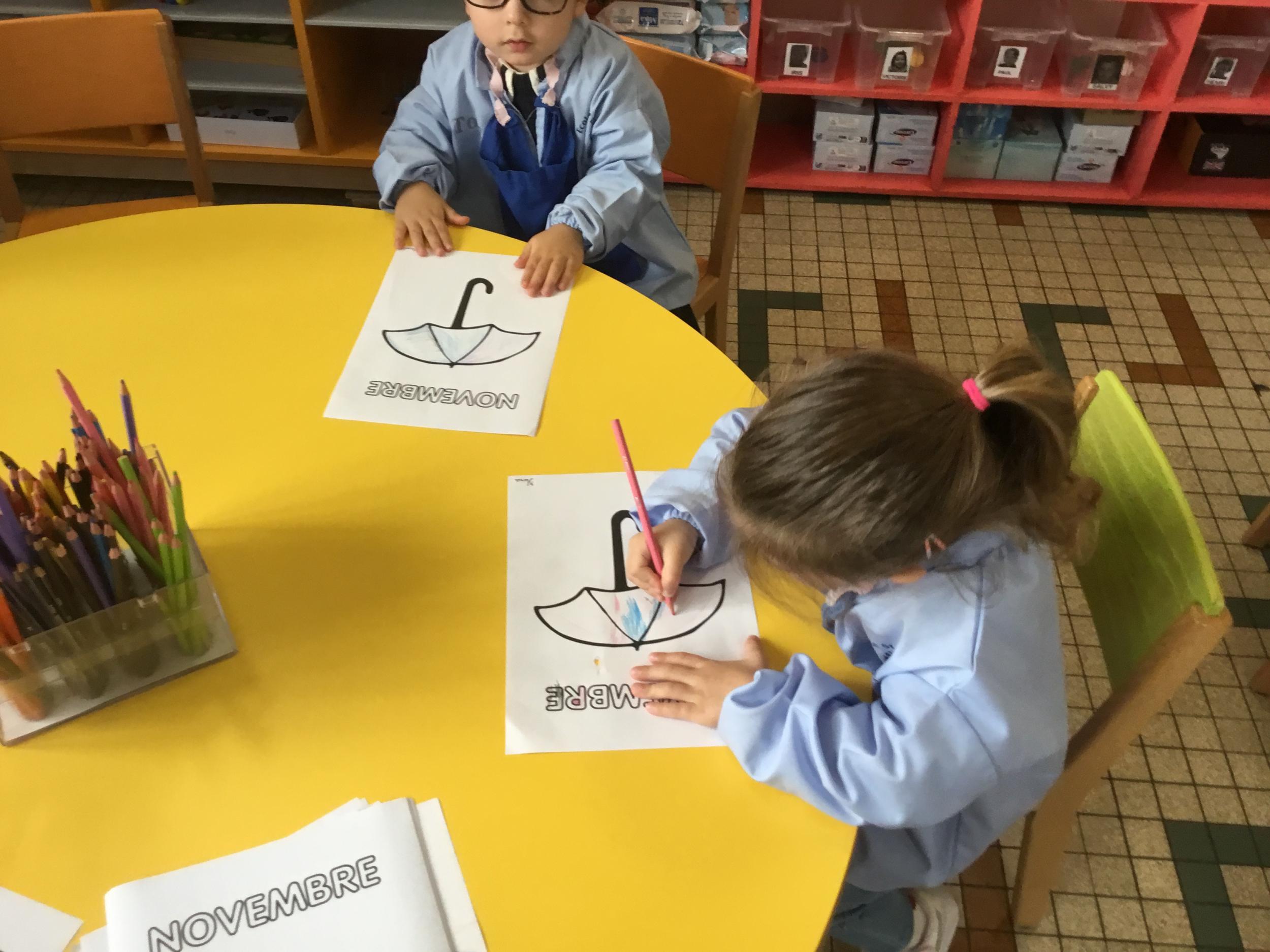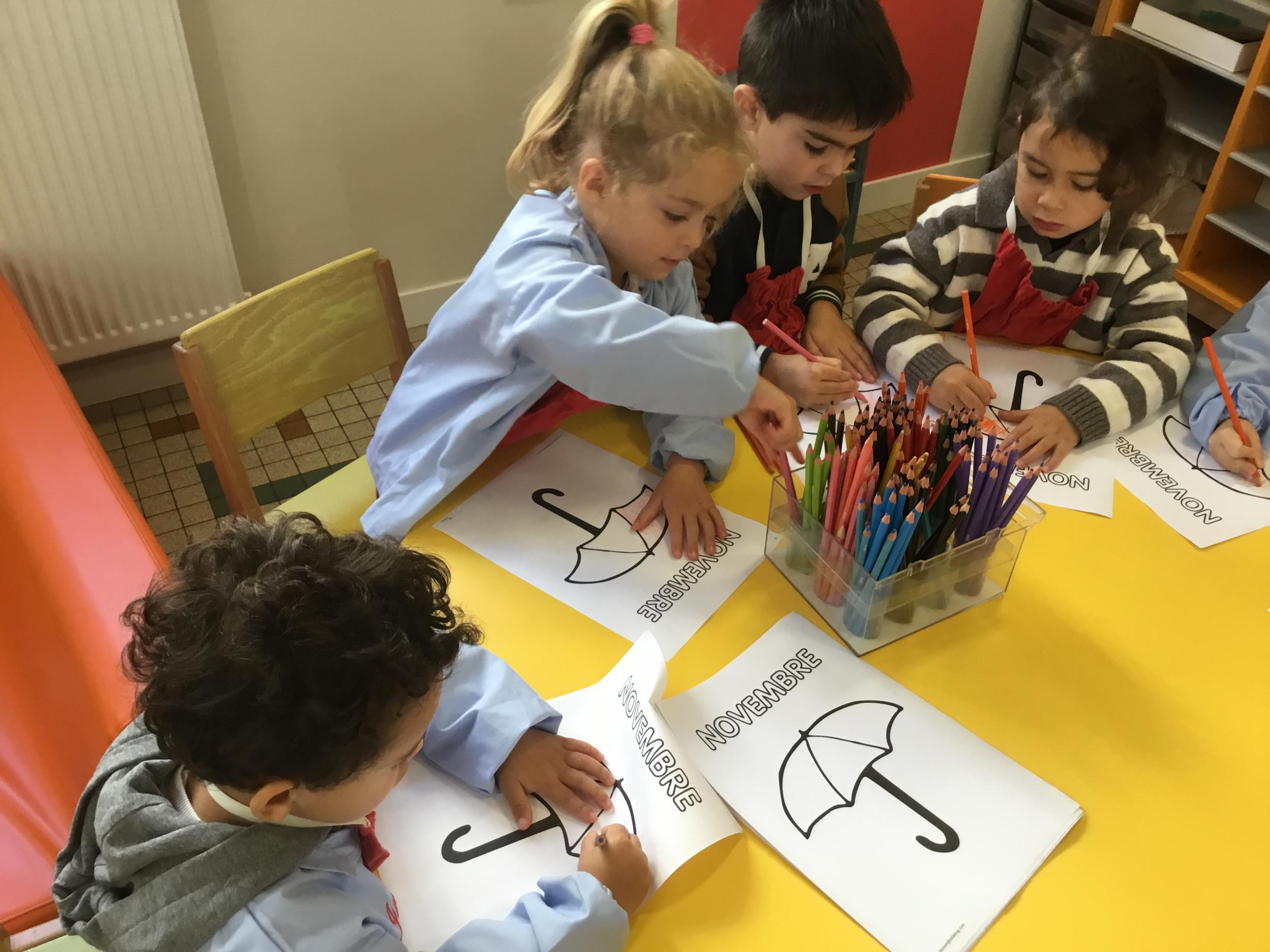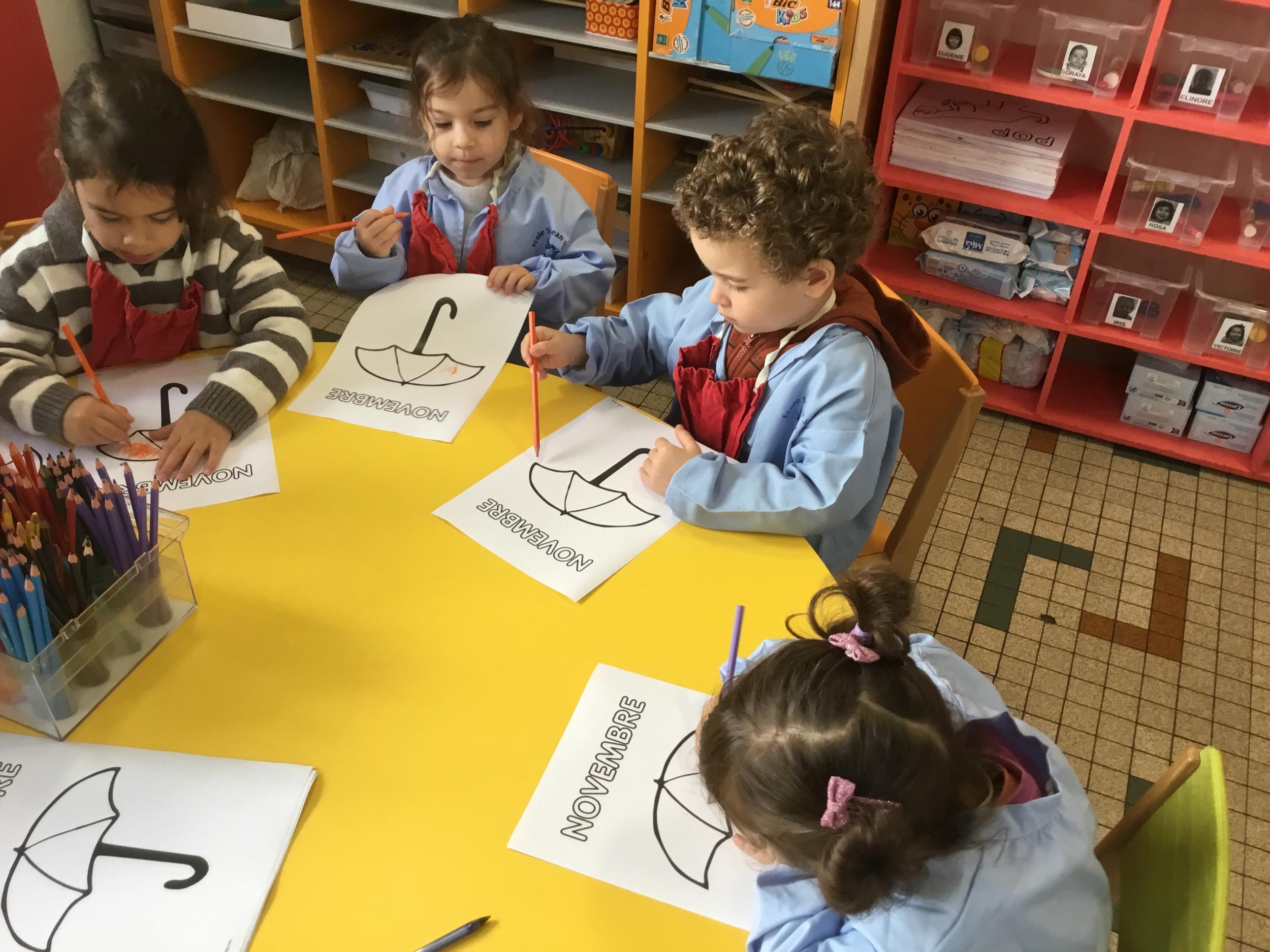La fiche du mois de novembre: colorier le parapluie de trois couleurs différentes