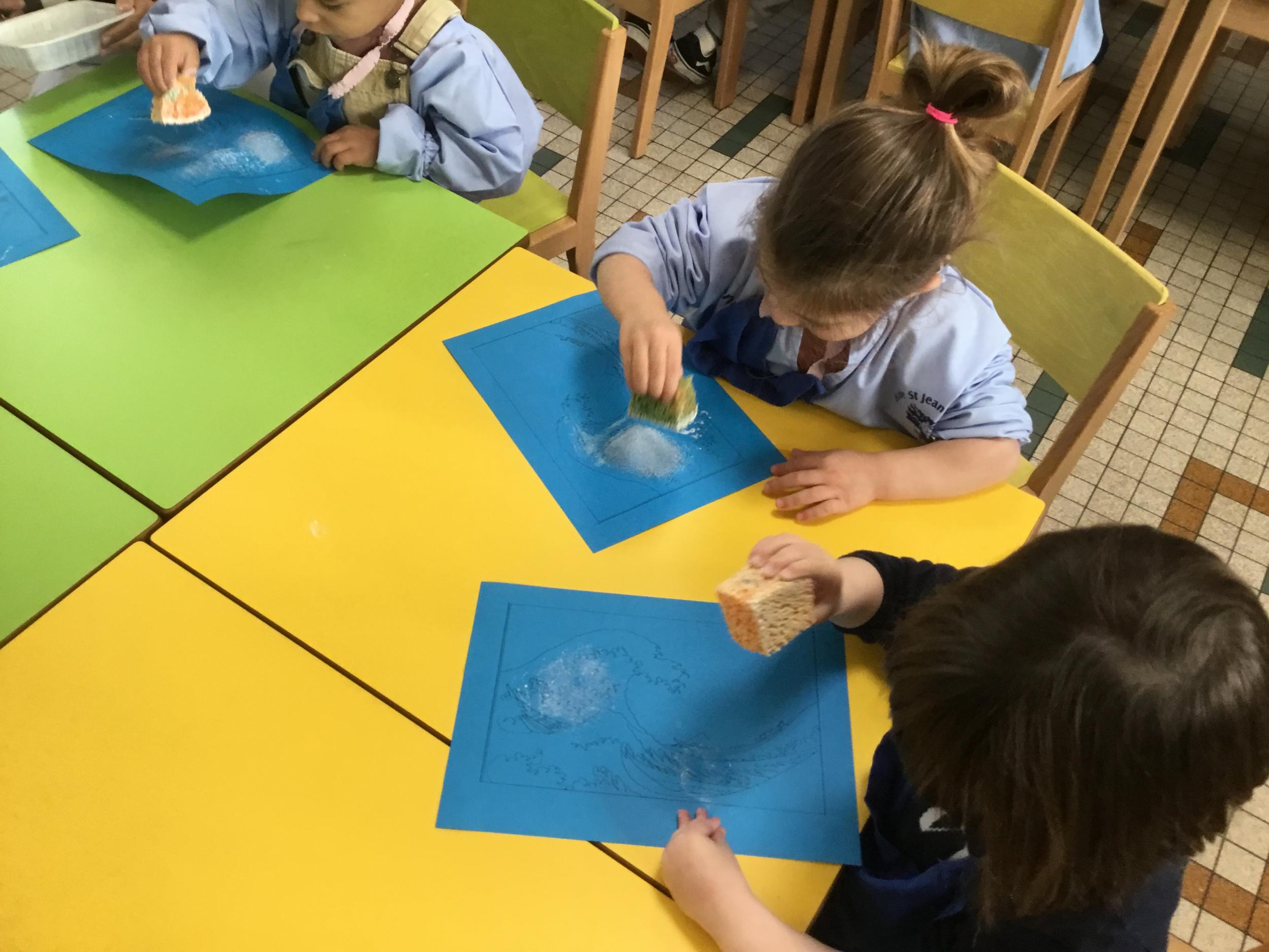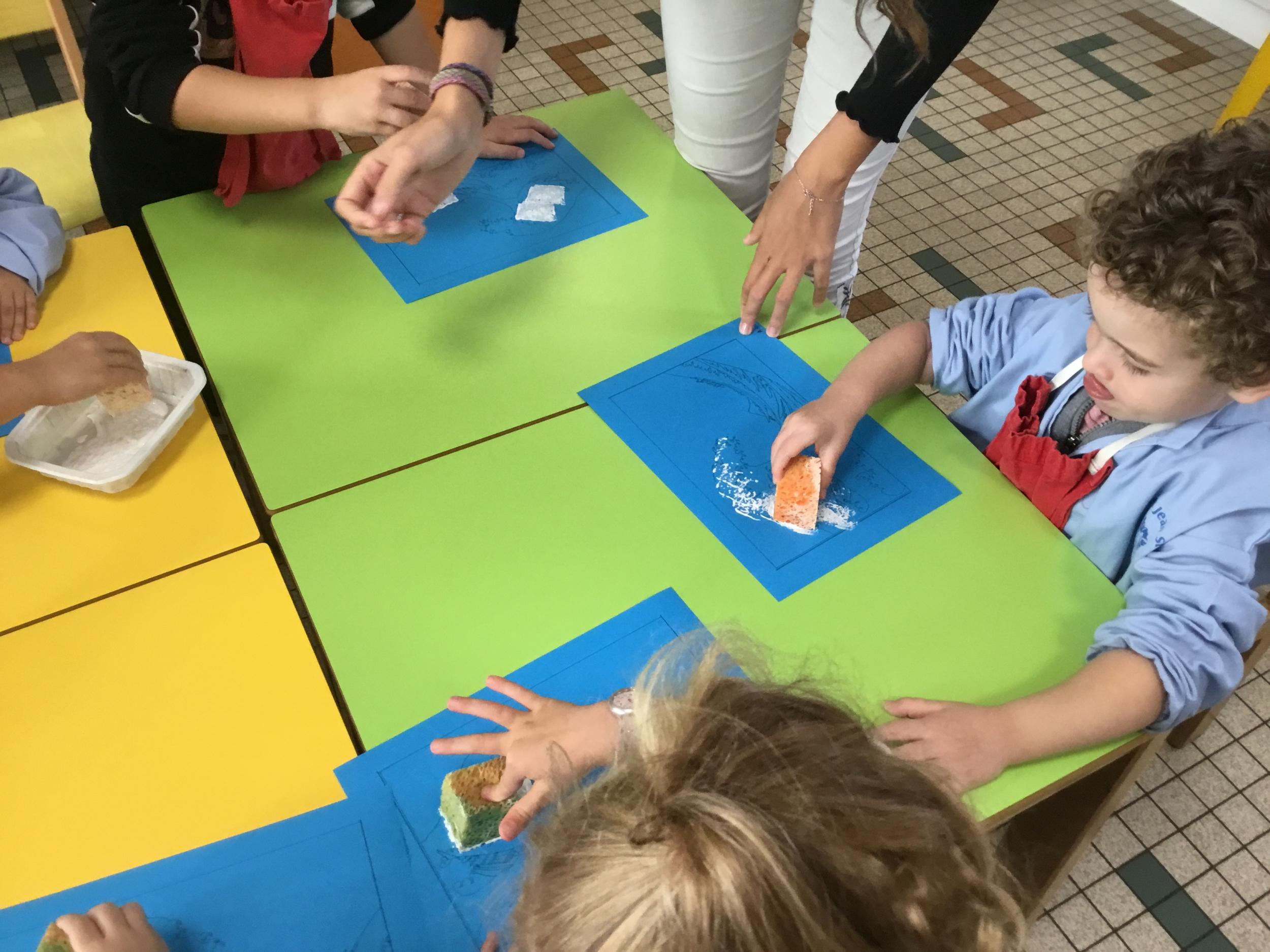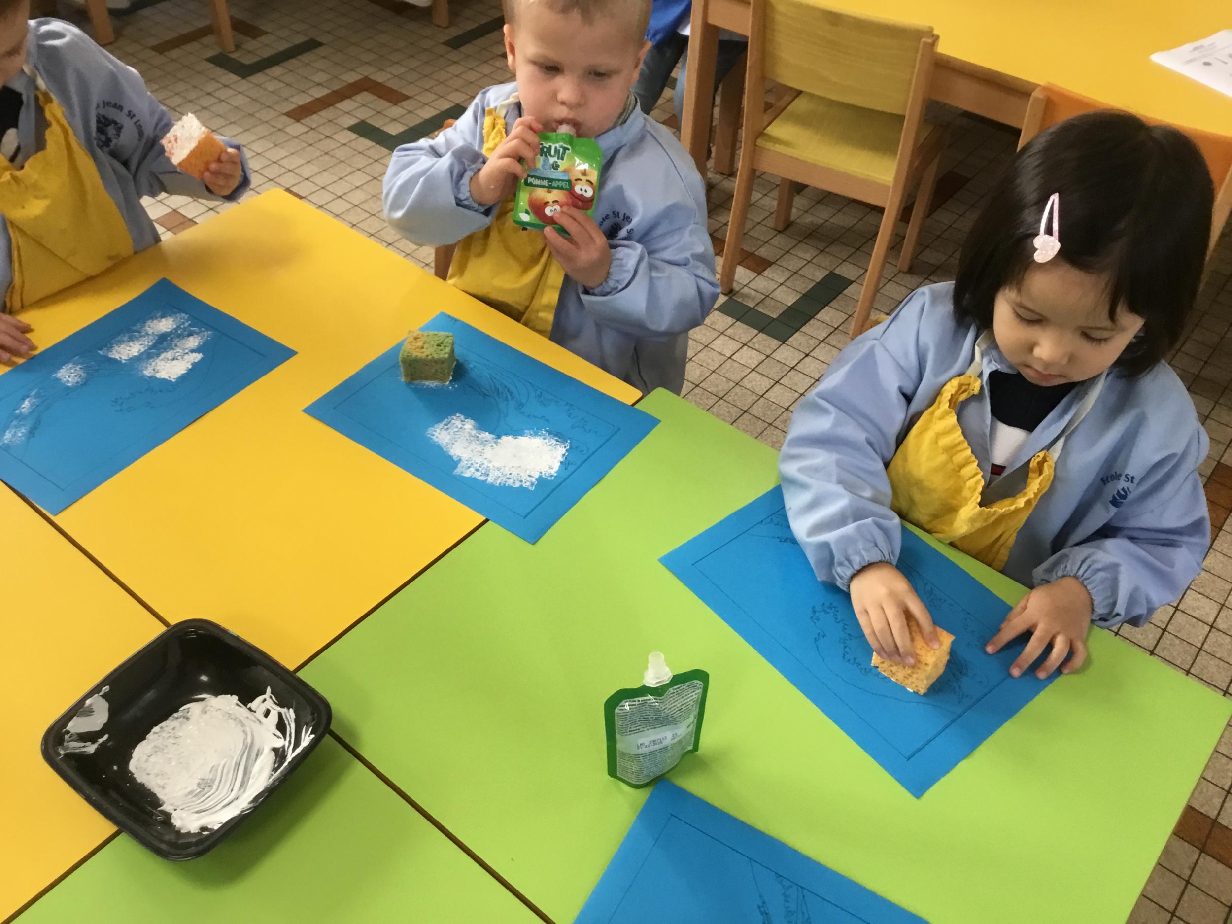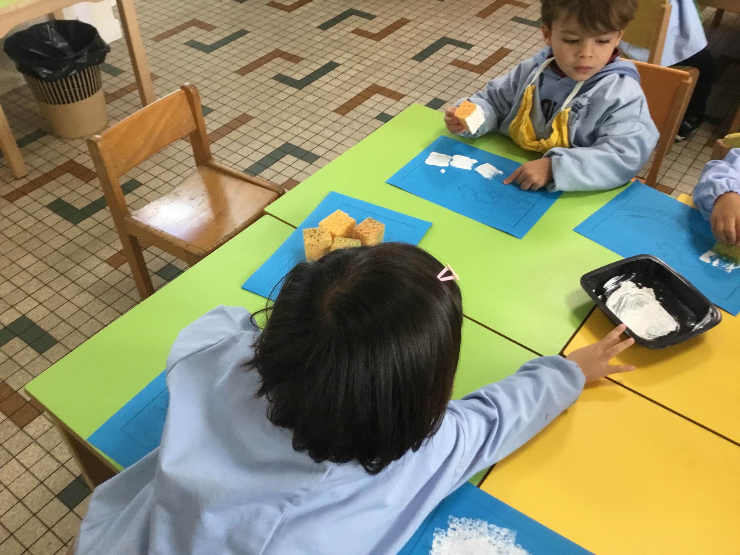 Cette semaine s’achève le travail autour des traces avec deux nouveaux outils: le pinceau et l’éponge.