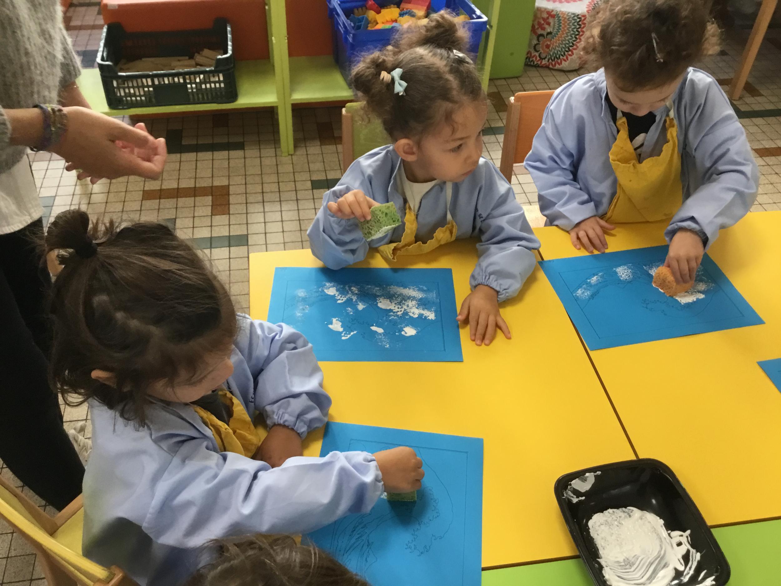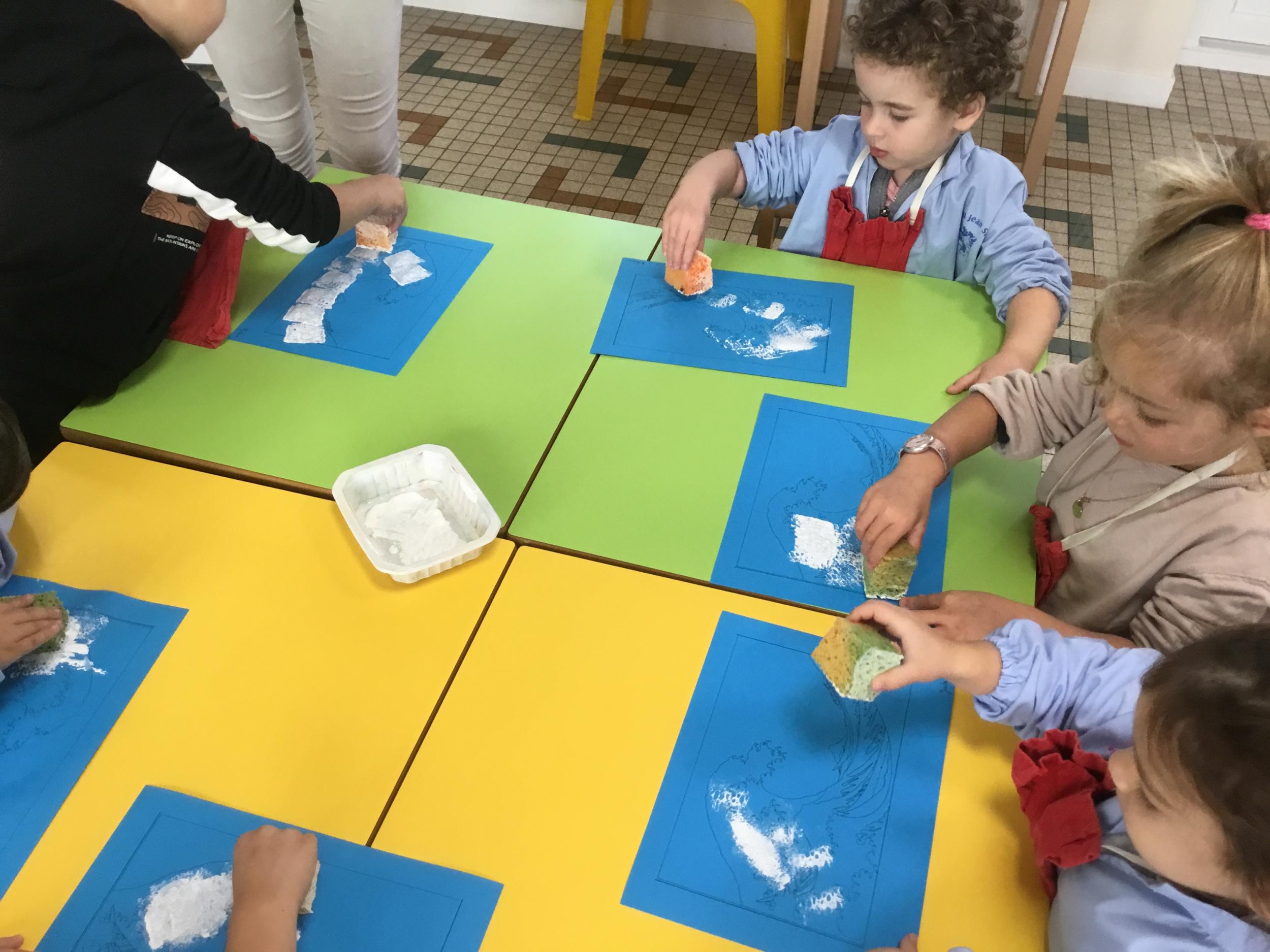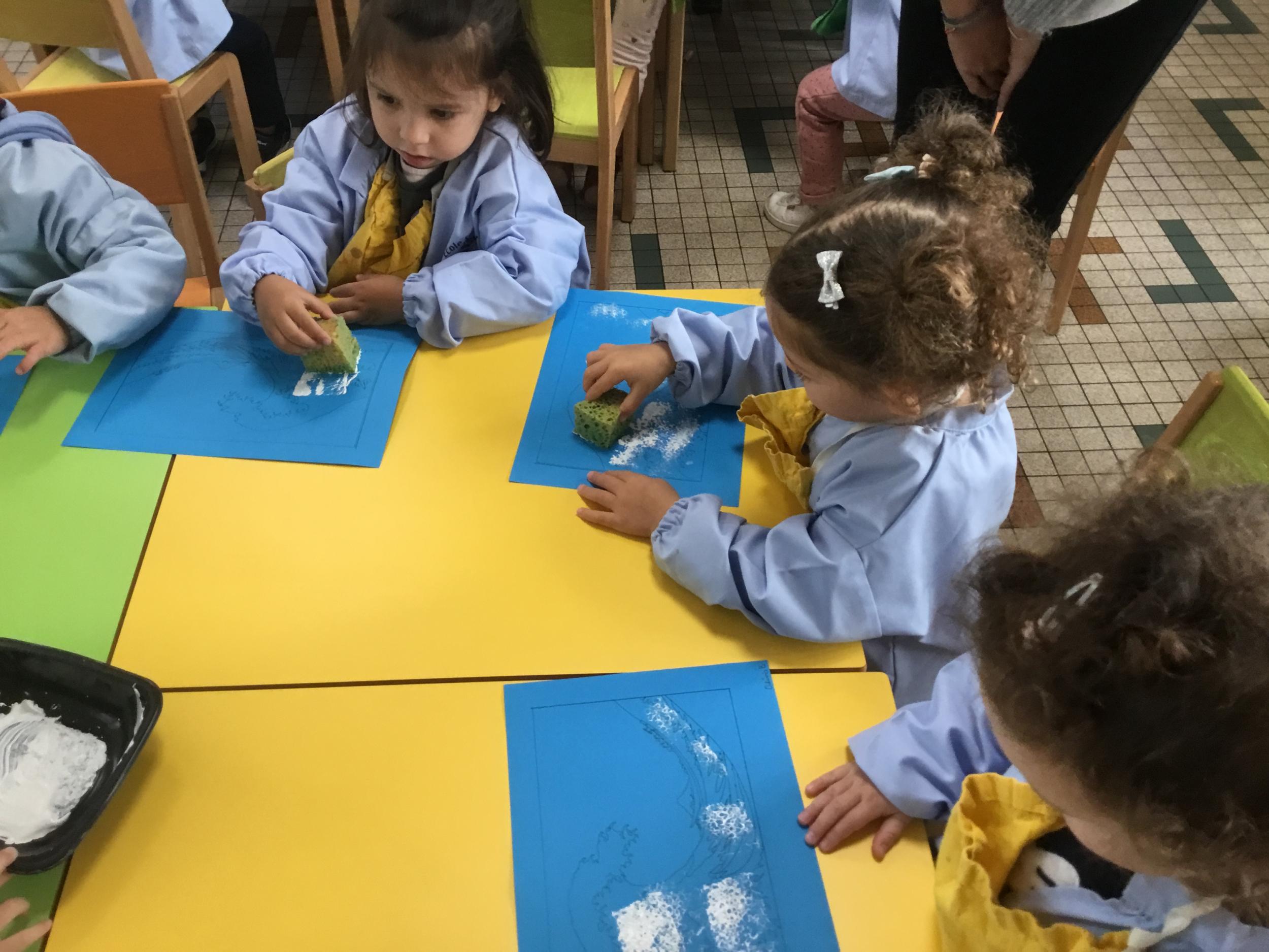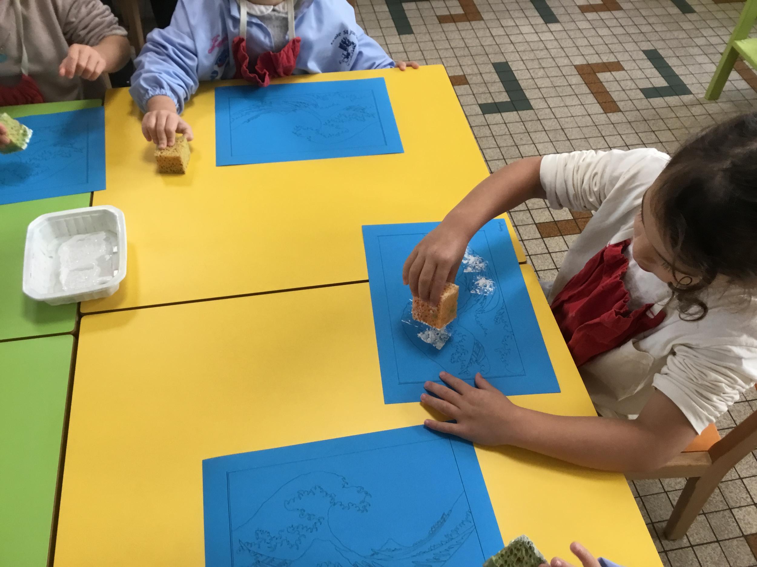 Cette semaine s’achève le travail autour des traces avec deux nouveaux outils: le pinceau et l’éponge.