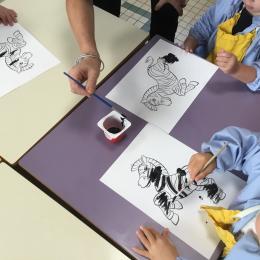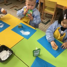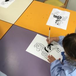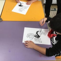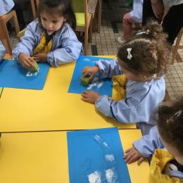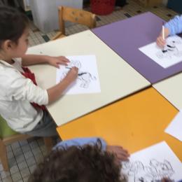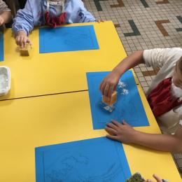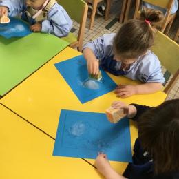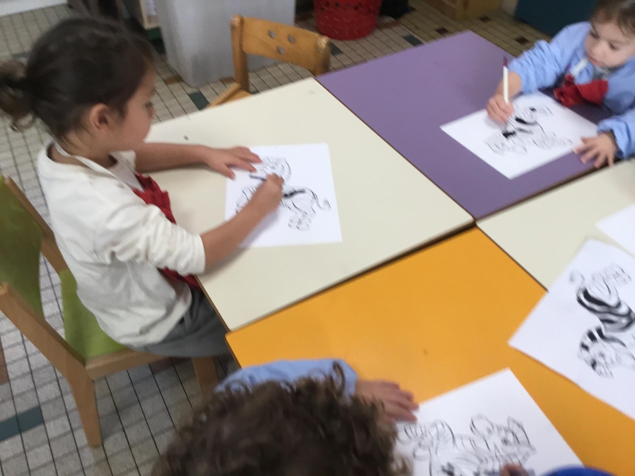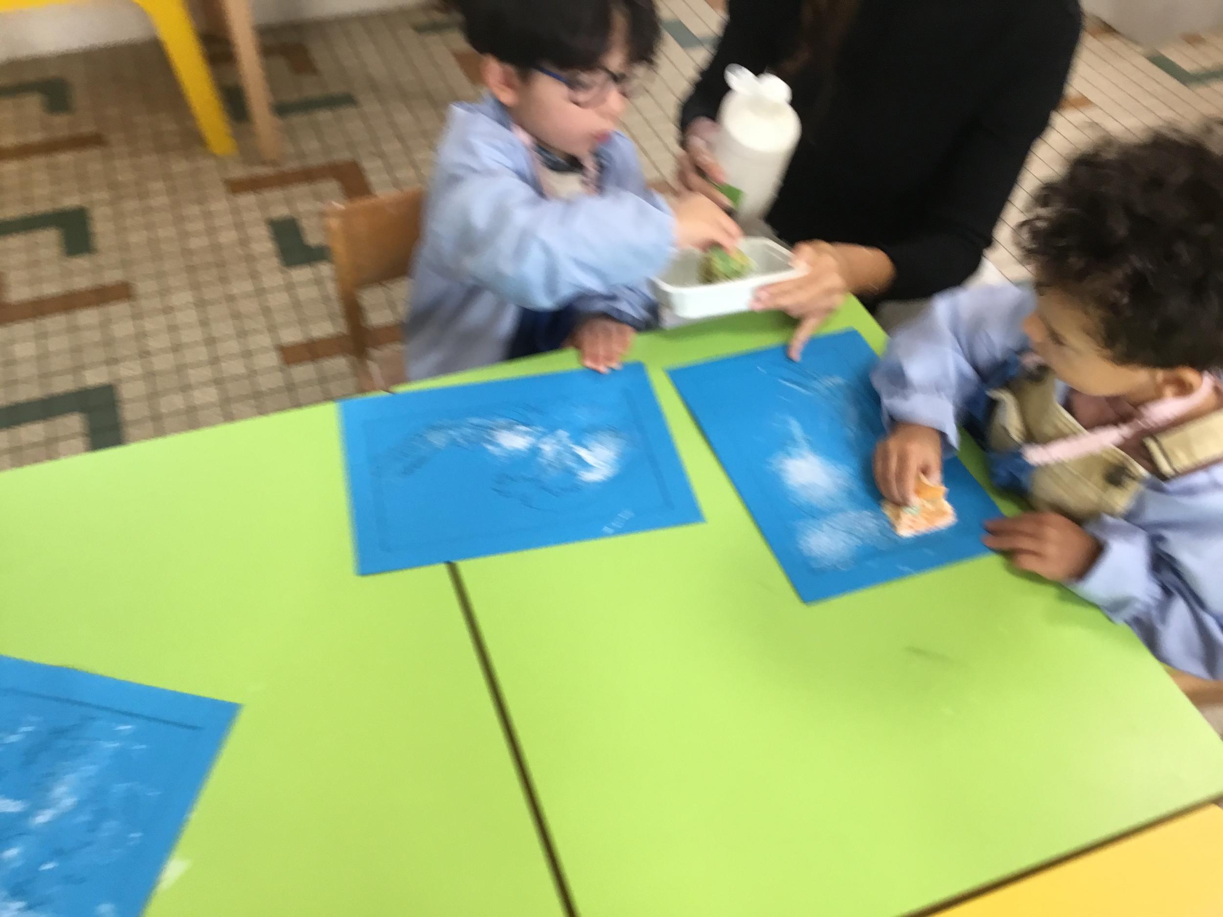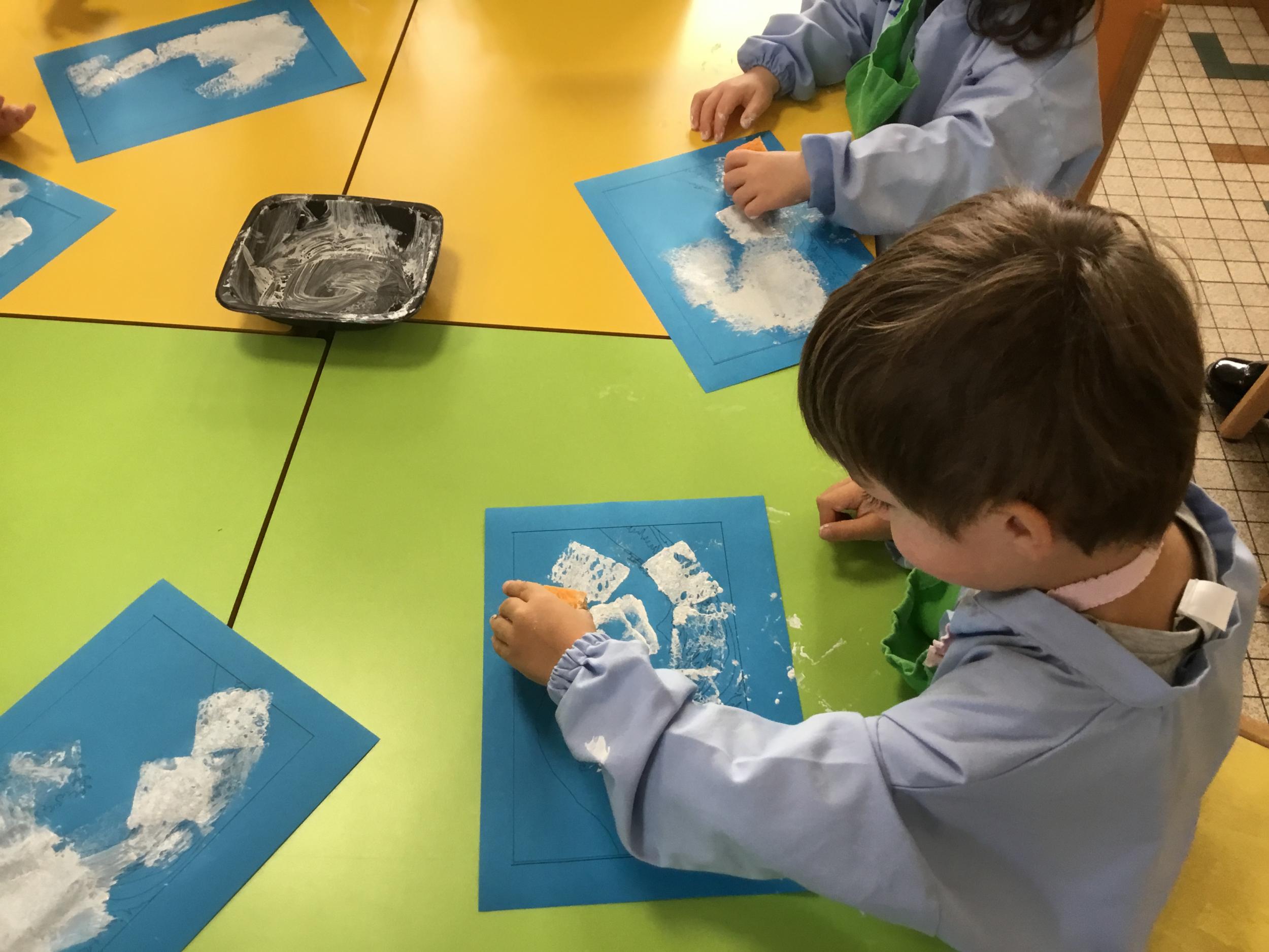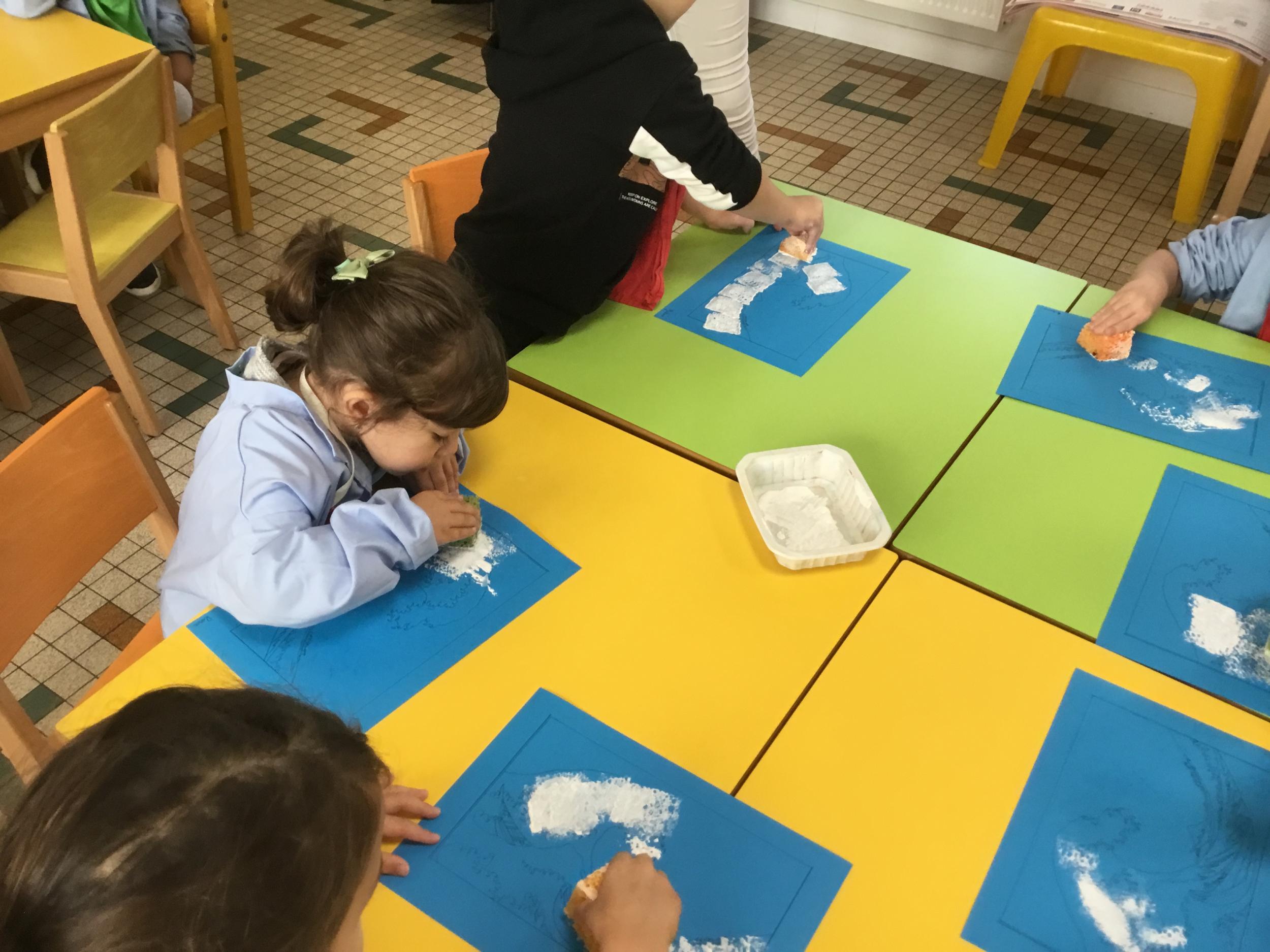Cette semaine s’achève le travail autour des traces avec deux nouveaux outils: le pinceau et l’éponge.