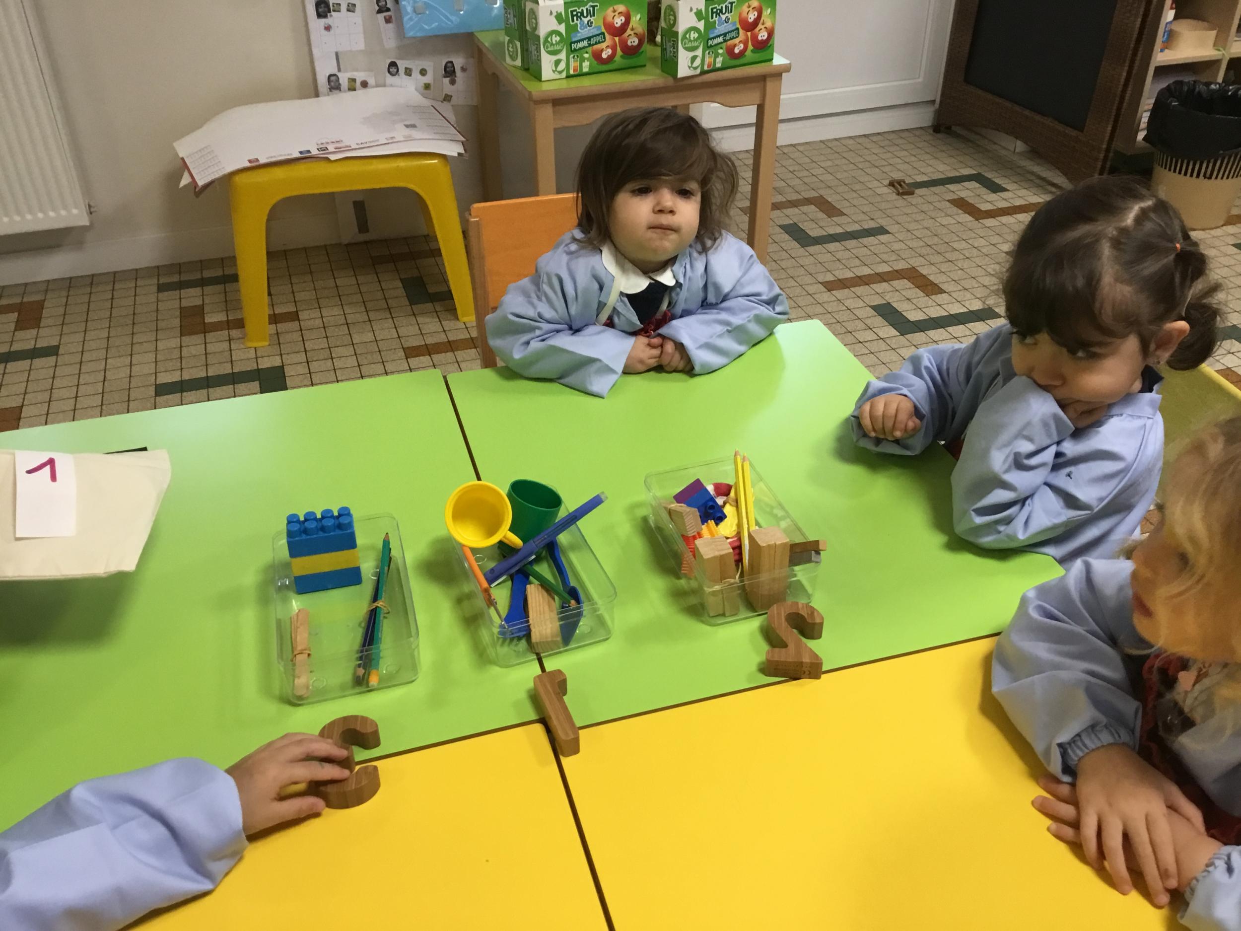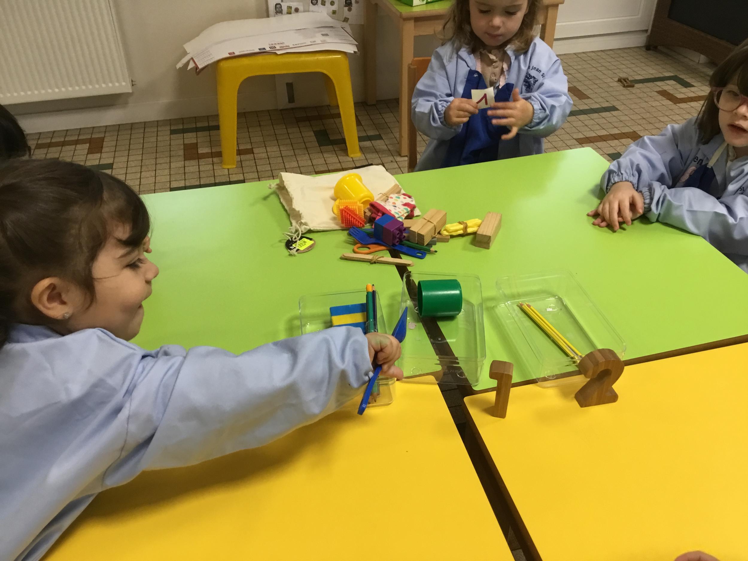 Le jeu a été ensuite de ranger chaque objet dans sa boîte . La boîte des 1, la boîte des 2, la boîte des 3 .