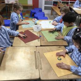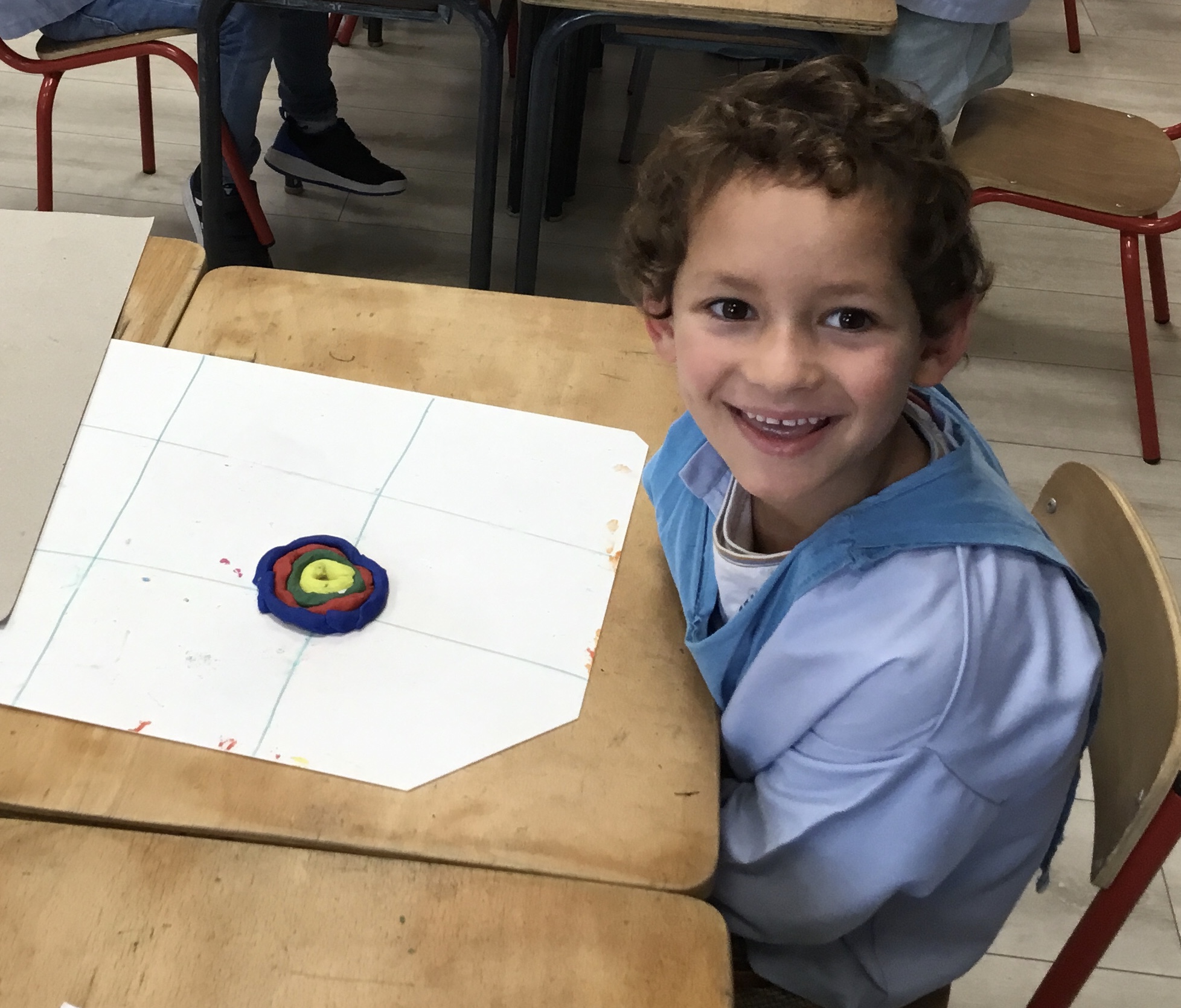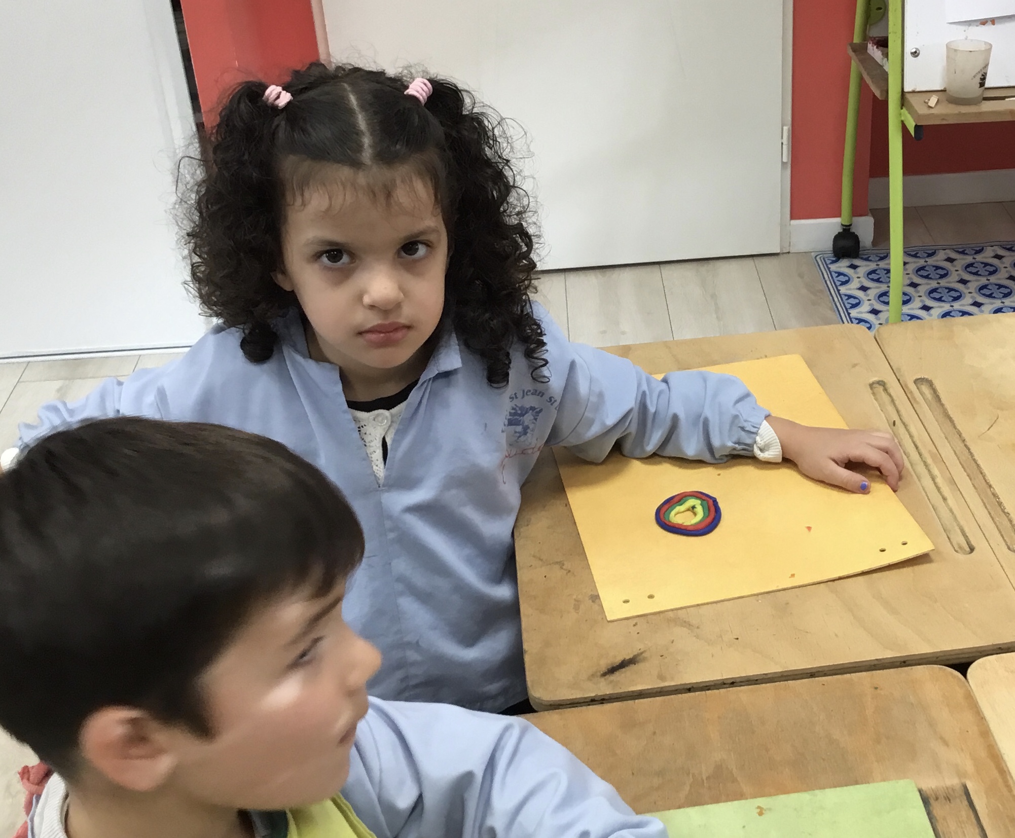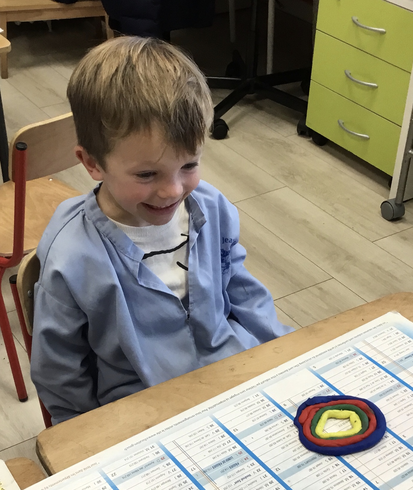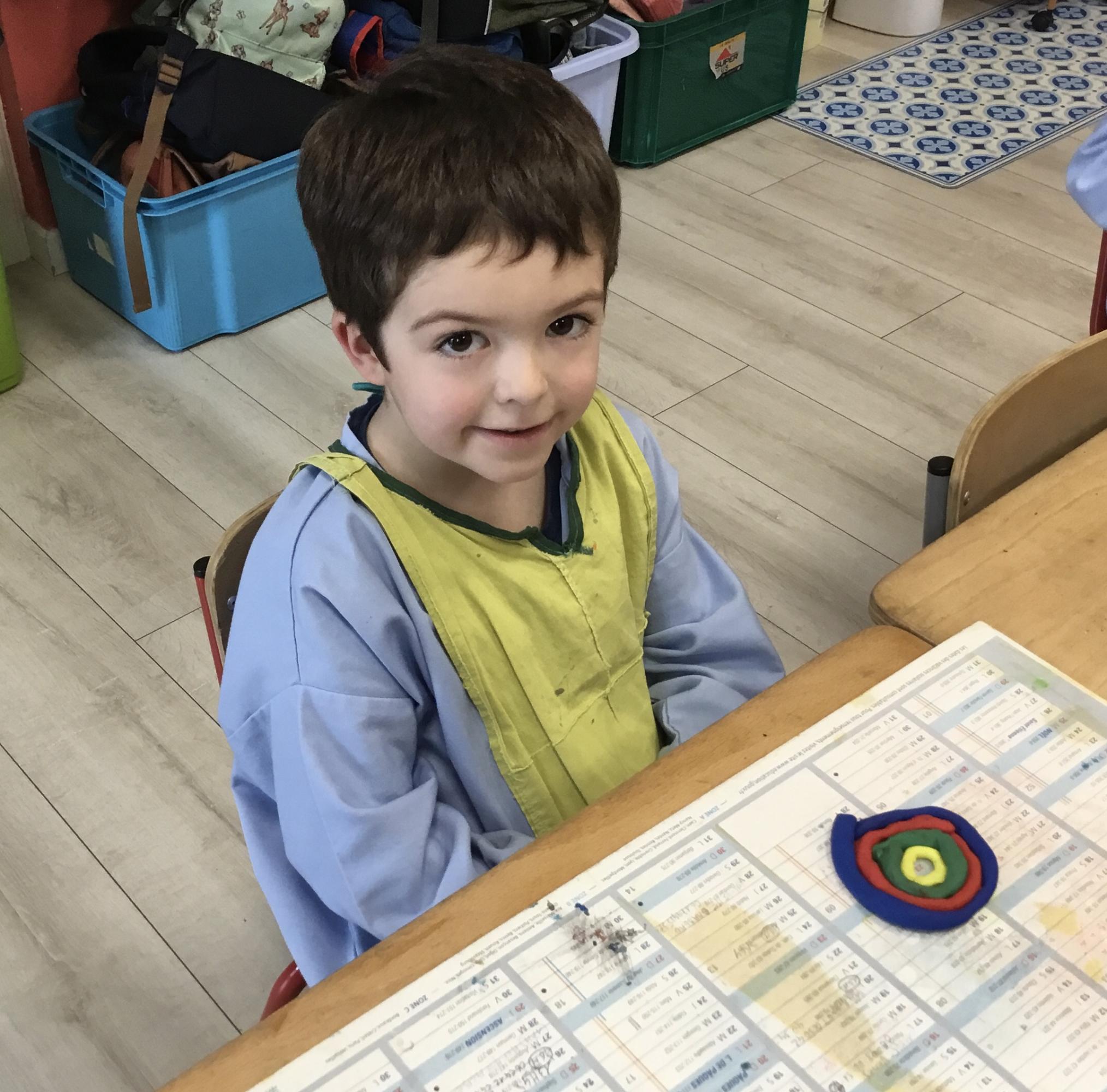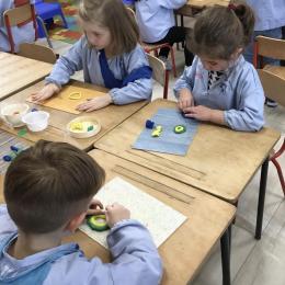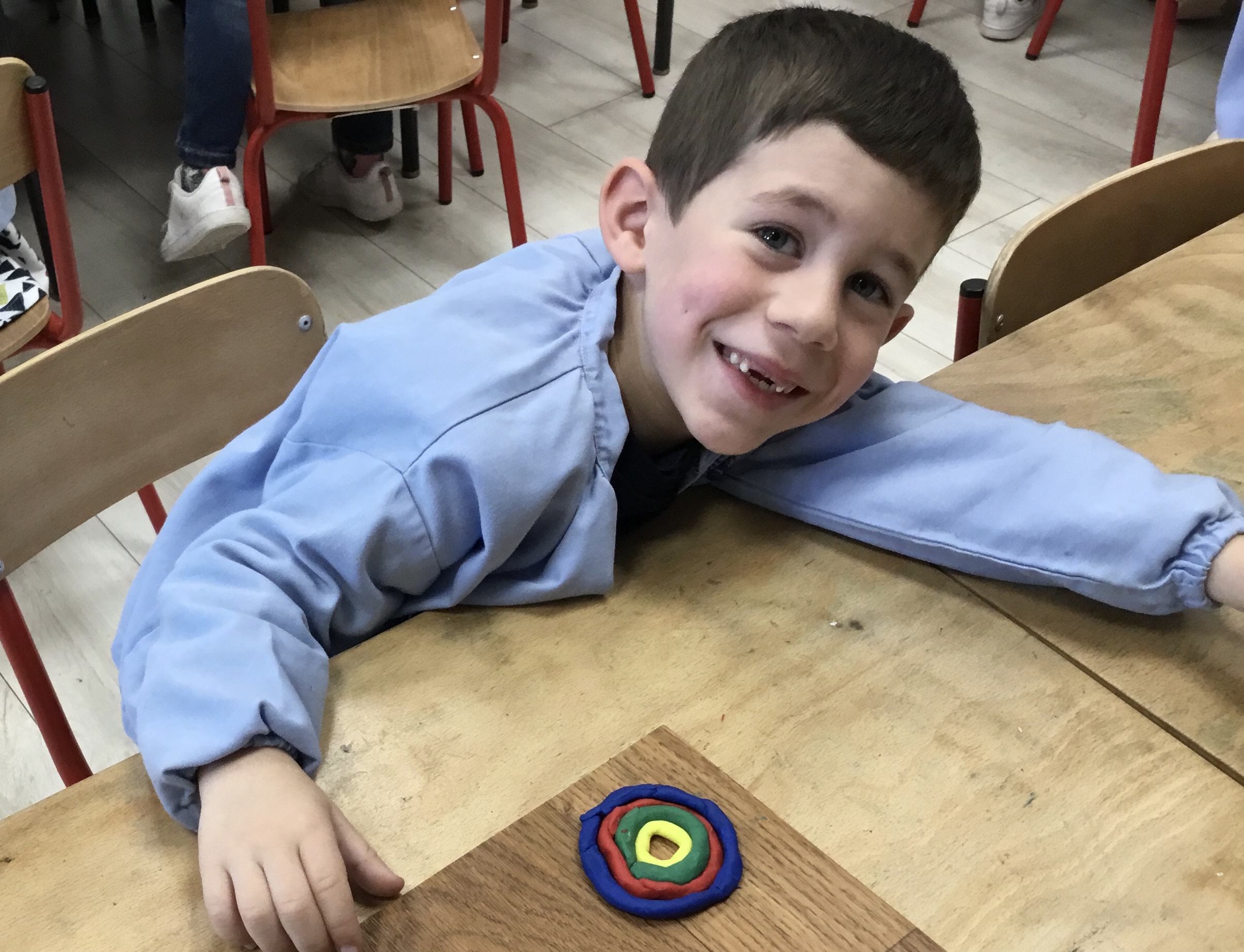 Après l’apprentissage d’une comptine, « des ronds bien rangés »,les élèves ont représenté avec de la pâte à modeler ce qu’ils ont appris.