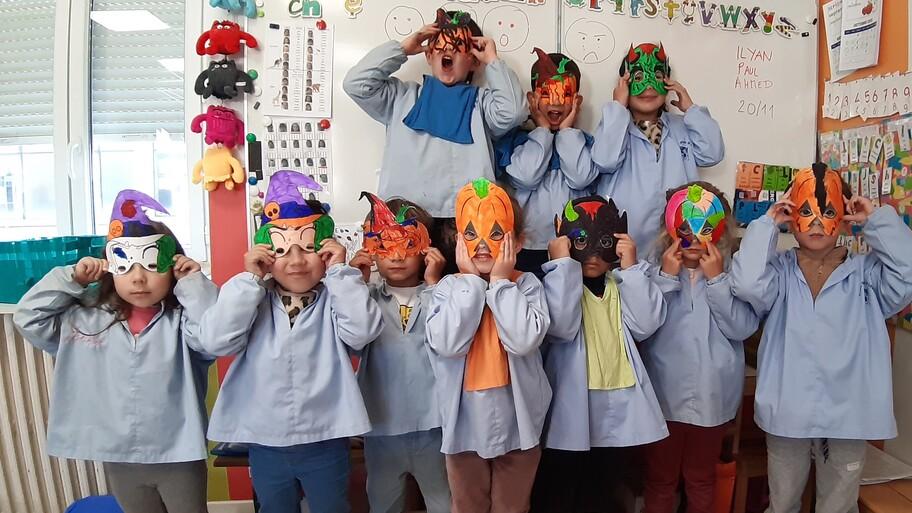 Après avoir travaillé en anglais autour de l'album "trick or treat?" et étudié le vocabulaire de la sorcière et de ses amis, les élèves ont réalisé un masque en choisissant parmi plusieurs modèles. Ils étaient très fiers de nous les montrer en classe !
