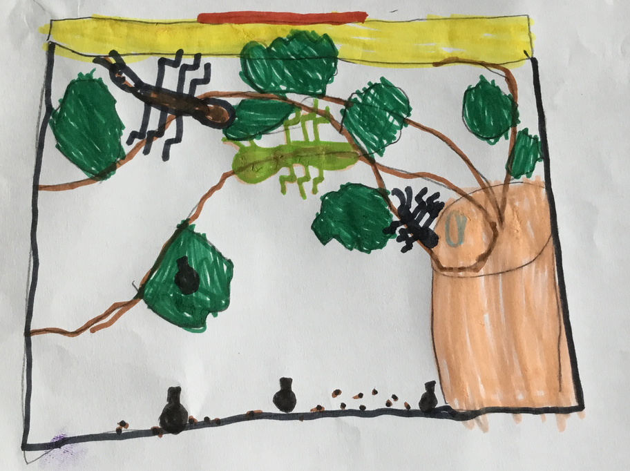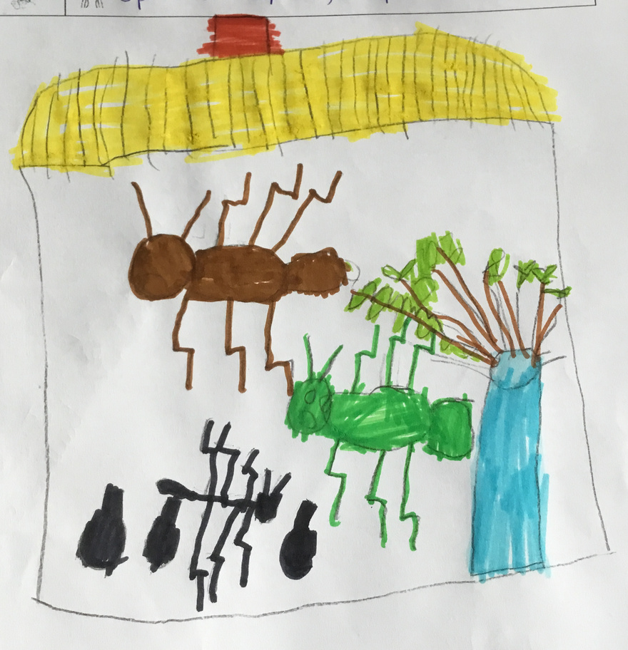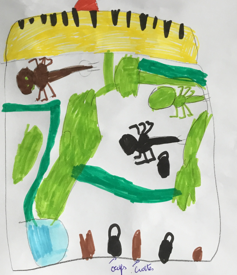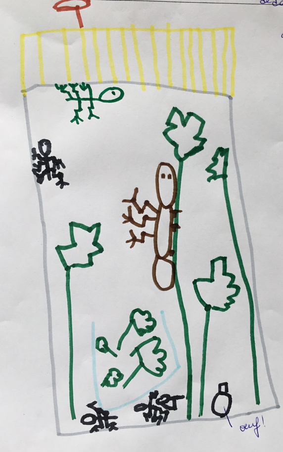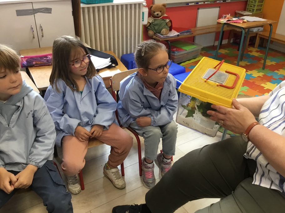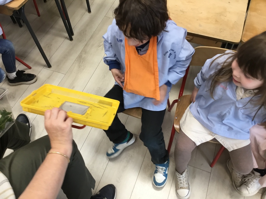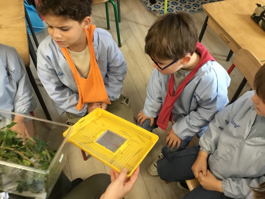 Les élèves ont pu observer l'intérieur de la boîte (un vivarium, ou terrarium) puis expliquer tout ce qu'ils avaient constatés. Ils ont ensuite dessiné la boîte et son contenu, faisant preuve d'un bel esprit d'observation.