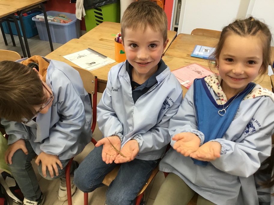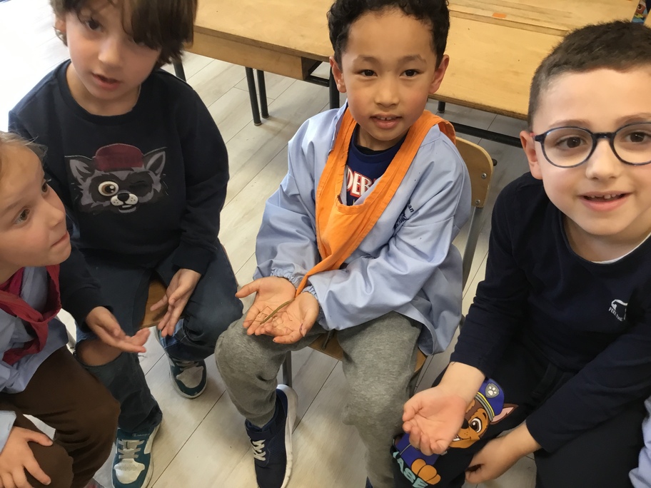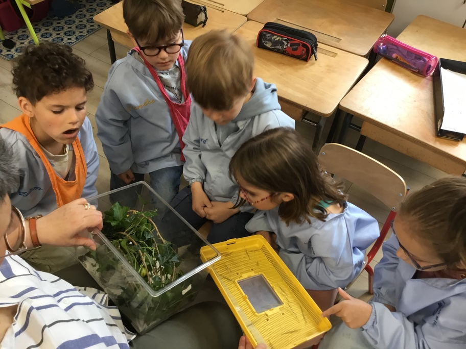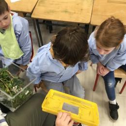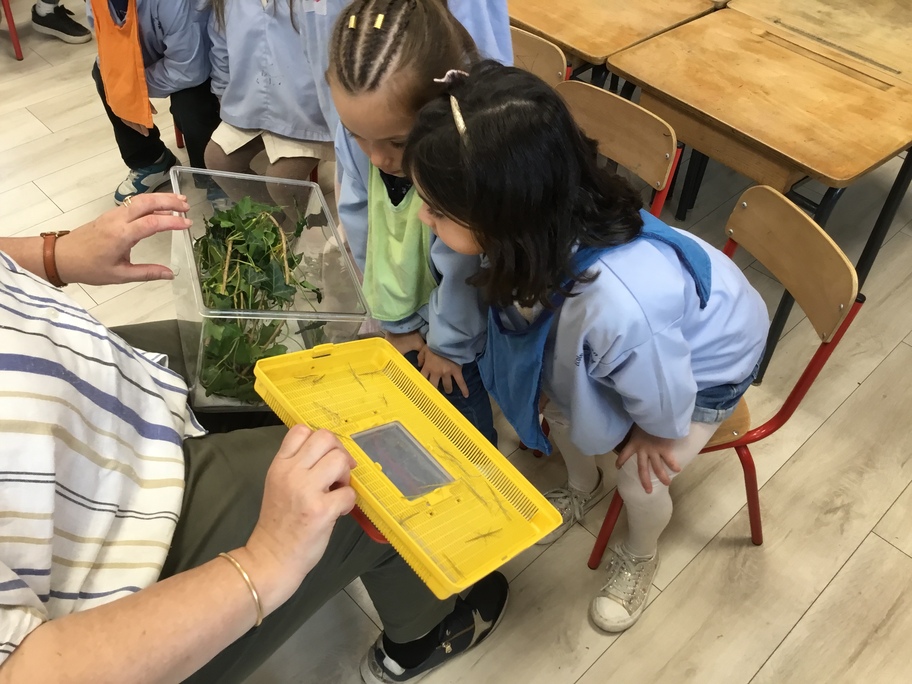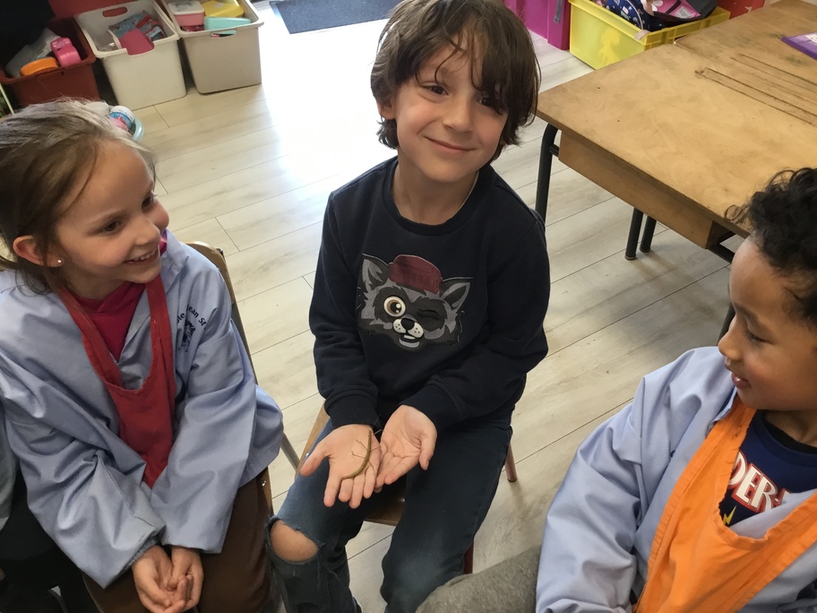 Depuis la rentrée des dernières vacances, les élèves ont des nouveaux "amis" en classe. Une drôle de boîte transparente au couvercle jaune a été installée sur un meuble. A l'intérieur, des feuilles, des points noirs sur un papier absorbant, des drôles de bâtons verts ou marrons qui parfois se mettent à bouger...