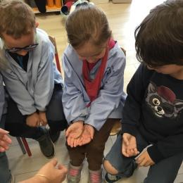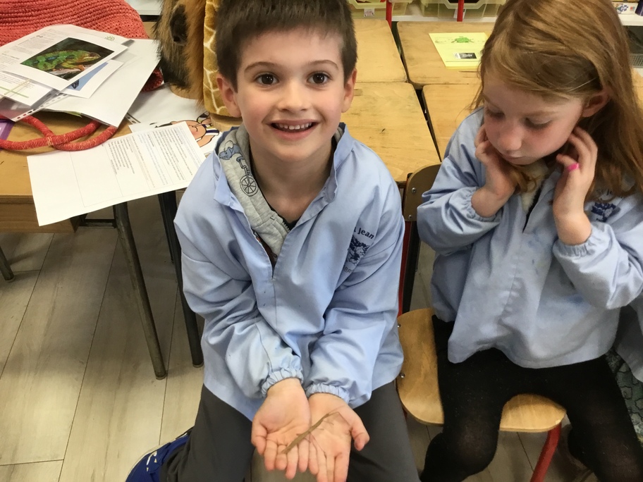 Lors de la dernière séance (il y en aura encore après le pont de l'ascension durant lequel ils sont rentrés chez maîtresse pour ne pas rester seuls en classe), les élèves qui le désiraient ont pu en avoir un dans les mains et se rendre compte que ça ne faisait que des chatouilles!
