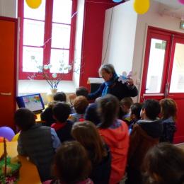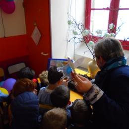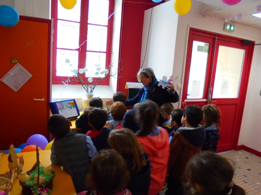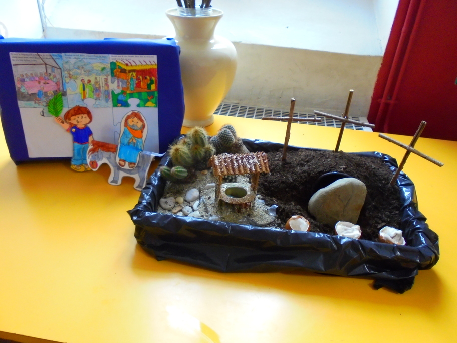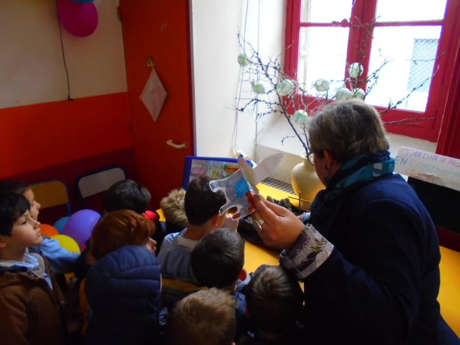 Anne, animatrice en pastorale pour les classes primaires, nous a même demandé d'en faire un de plus pour compléter le jardin de Pâques qu'elle réalisait avec les autres classes ! Elle nous a ensuite expliqué ce qu'elle avait fait avec eux et qui est exposé dans le hall.
