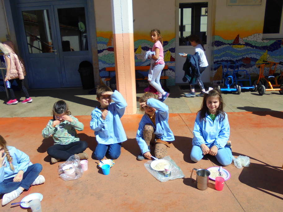 Pour terminer cette belle période si riche de préparation à Pâques, nous avons participé au bol de riz, profitant d'un beau soleil pour nous installer dans la cour et partager ensemble ce beau moment !