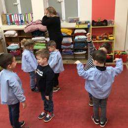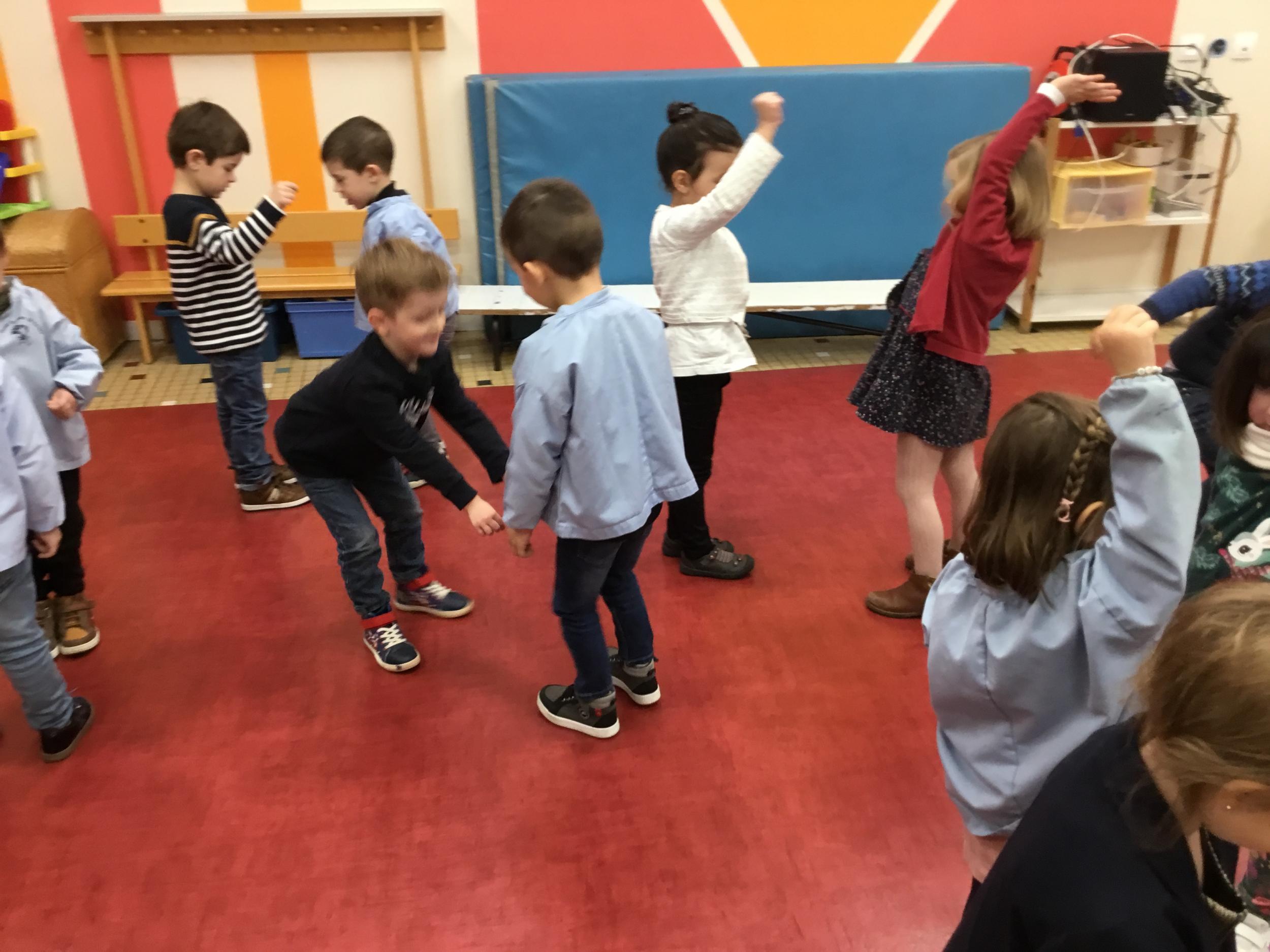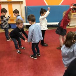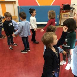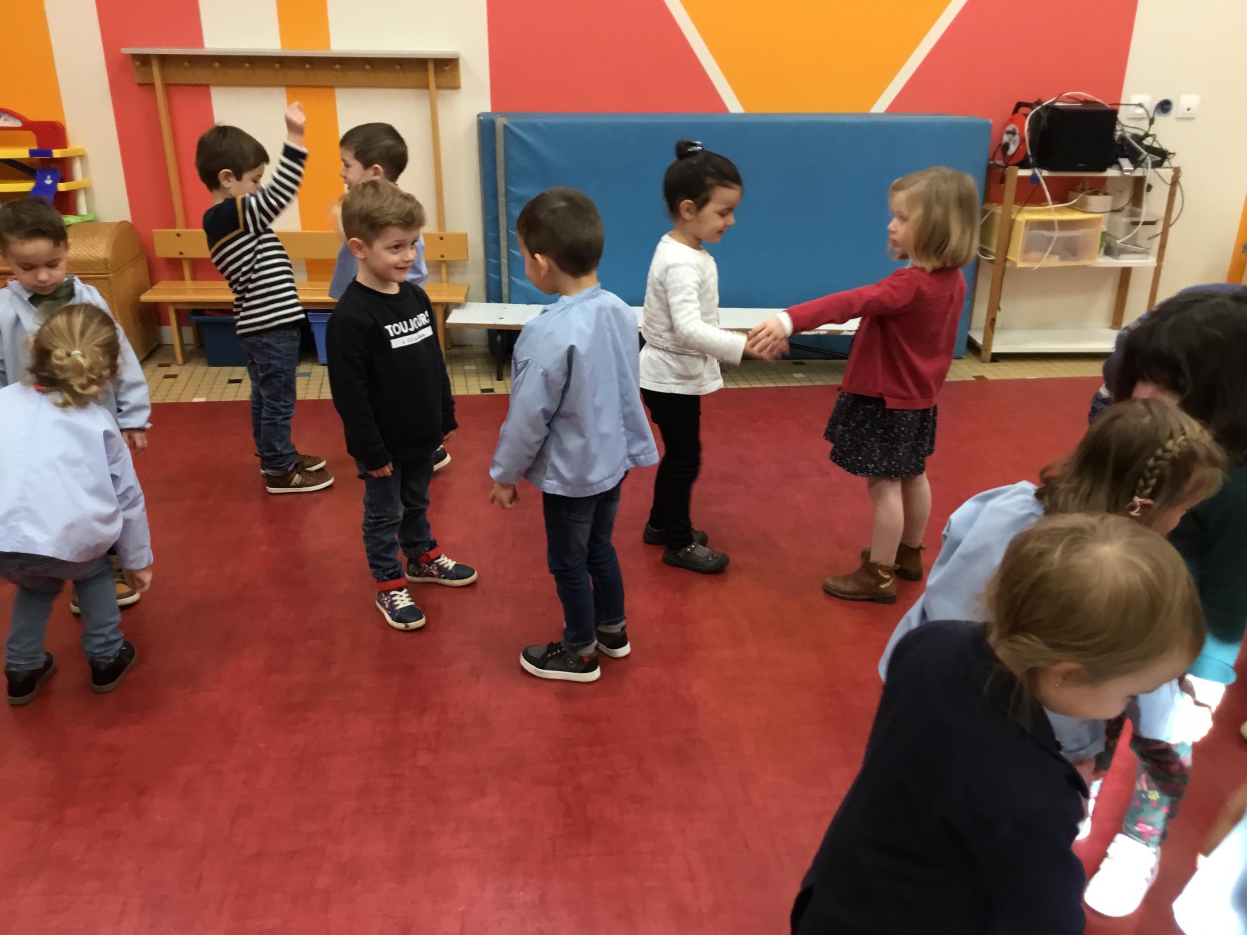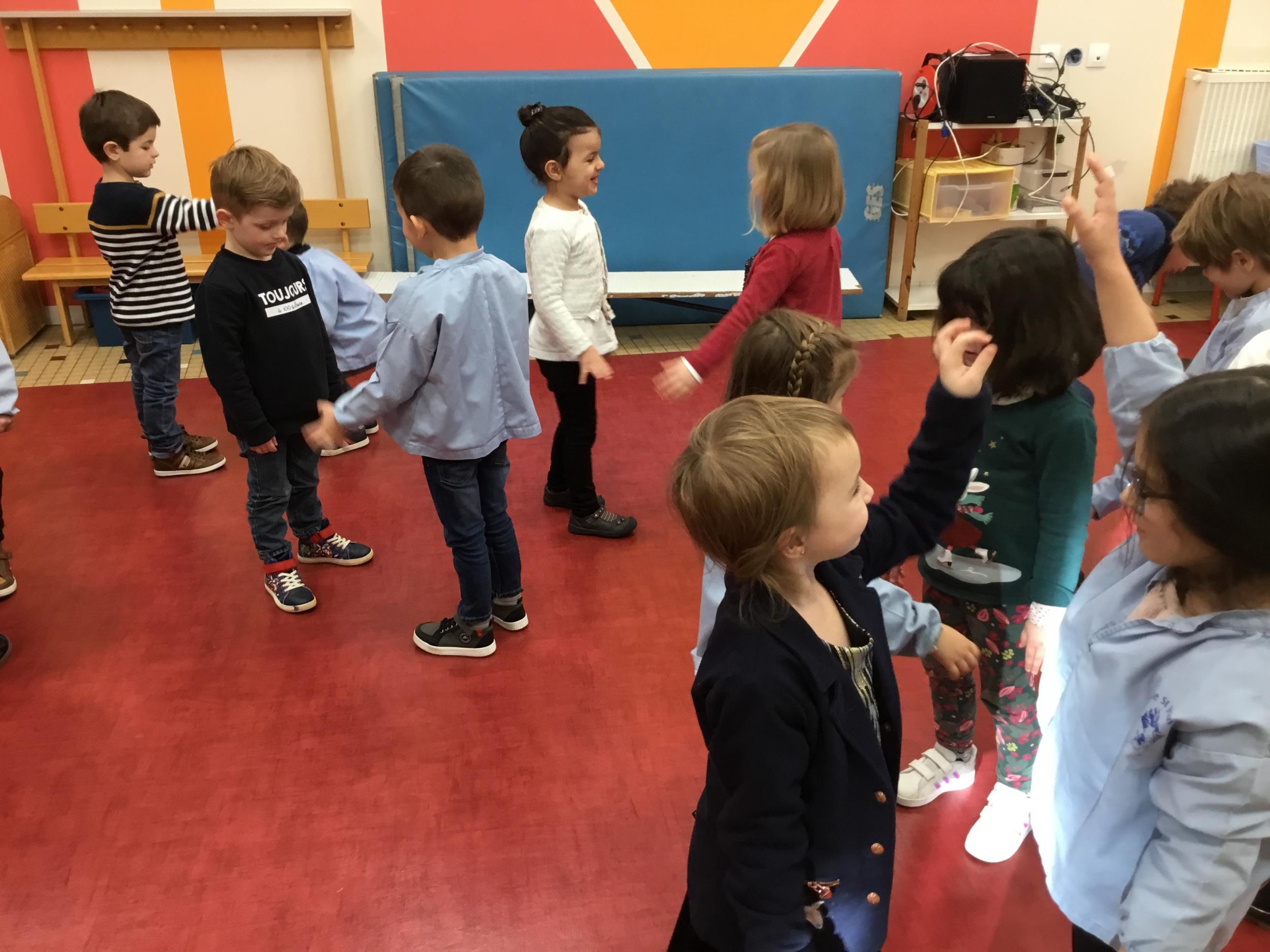 Les enfants jouent au jeu du marionnettiste. Ils se mettent en binôme, l’un fait le rôle de la marionnette et l’autre du marionnettiste. On imagine des ficelles accrochées aux poignets et aux pieds des élèves dans le rôle de la marionnette . Ils se laissent guider par le marionnettiste qui leur fait lever les bras ou les pieds en tirant sur la ficelle.Ce jeu oblige les enfants à prendre en compte l’autre . Il permet une relation attentive entre les enfants. Puis on permute et on change les rôles.