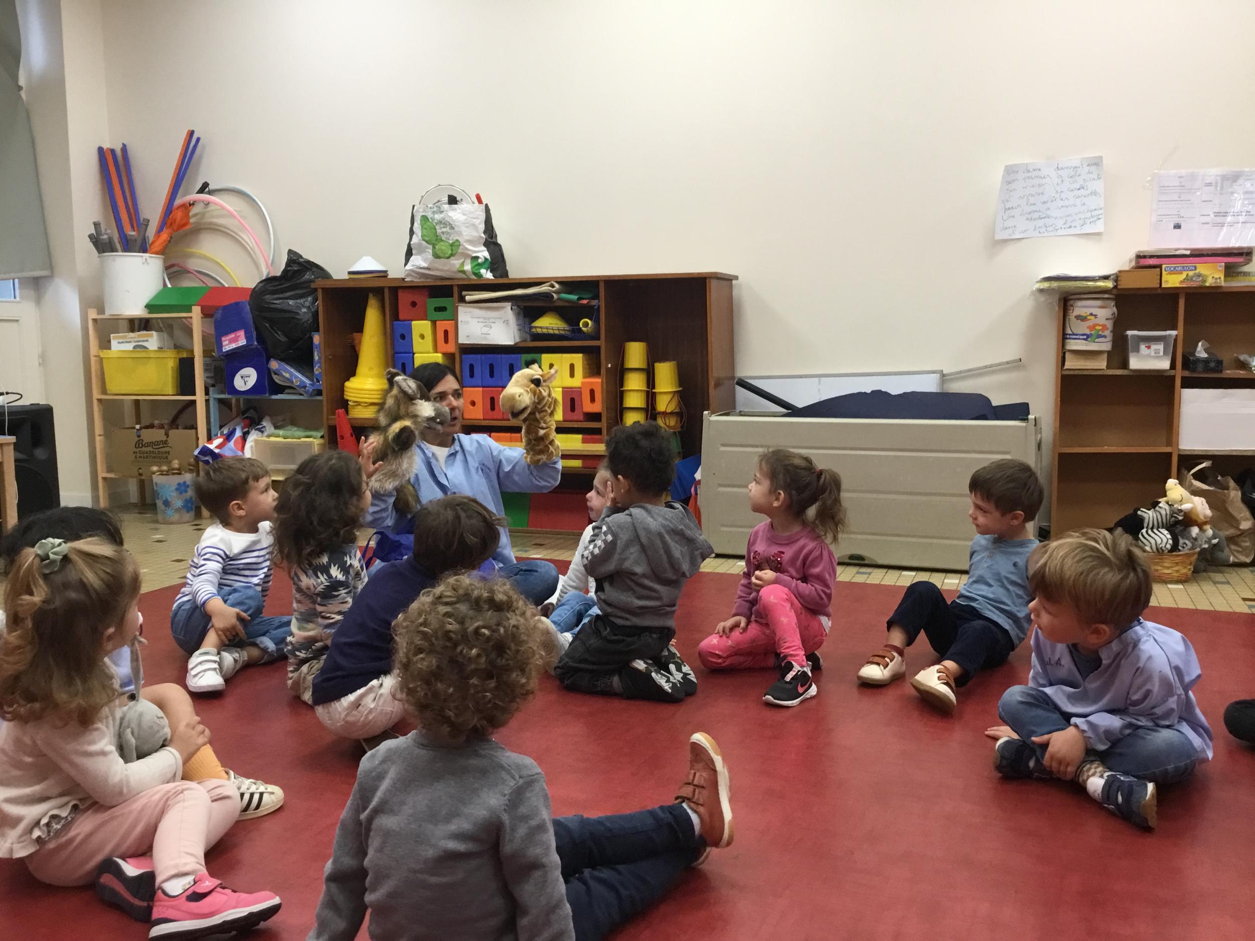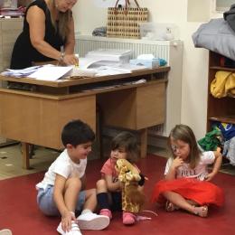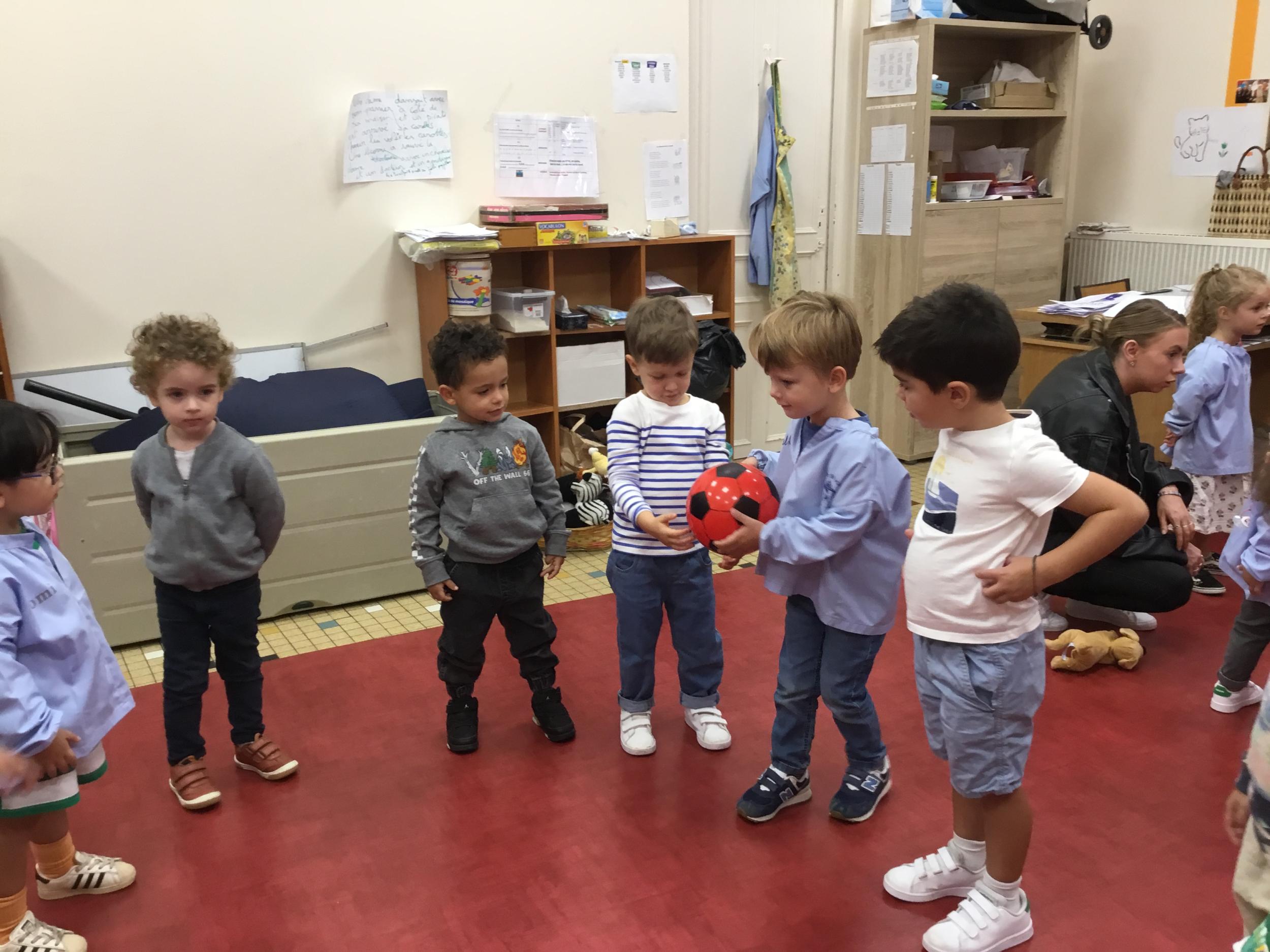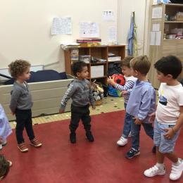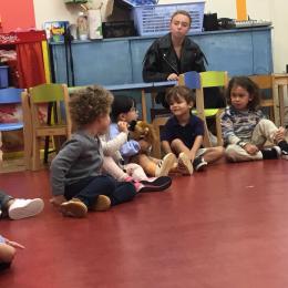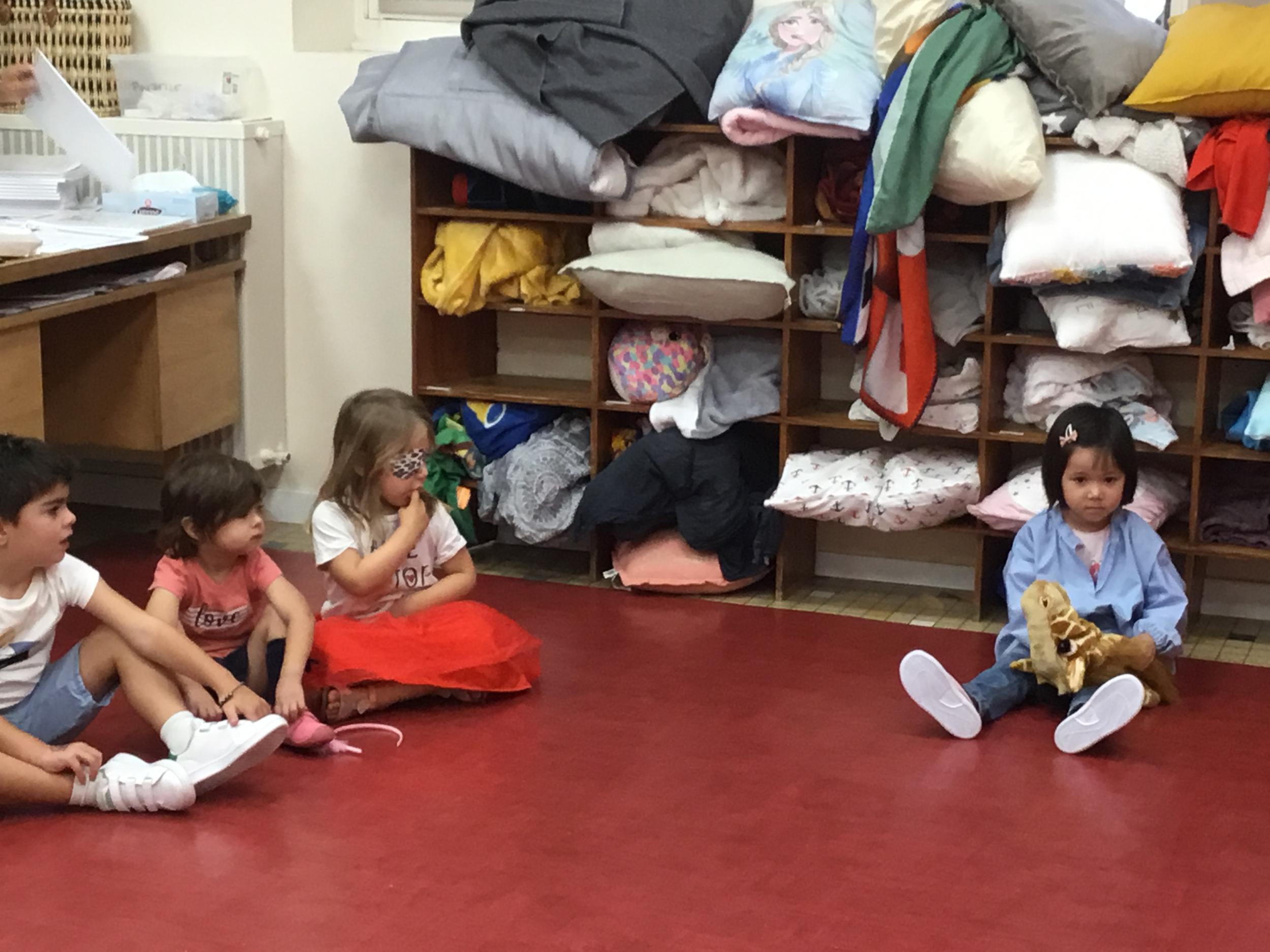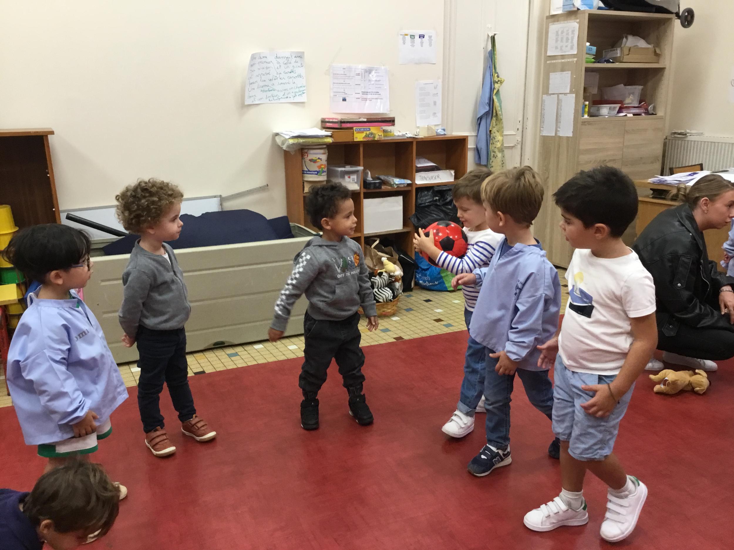 Chaque enfant a pris Gigi dans ses bras pour lui dire son prénom, puis Gigi est passée de bras en bras , en étant bien attentif à regarder son voisin en lui donnant la peluche.