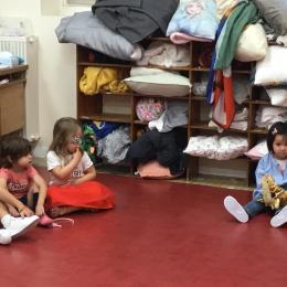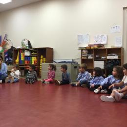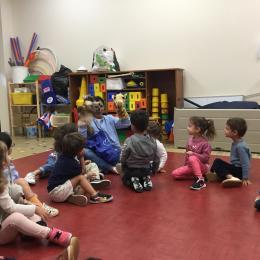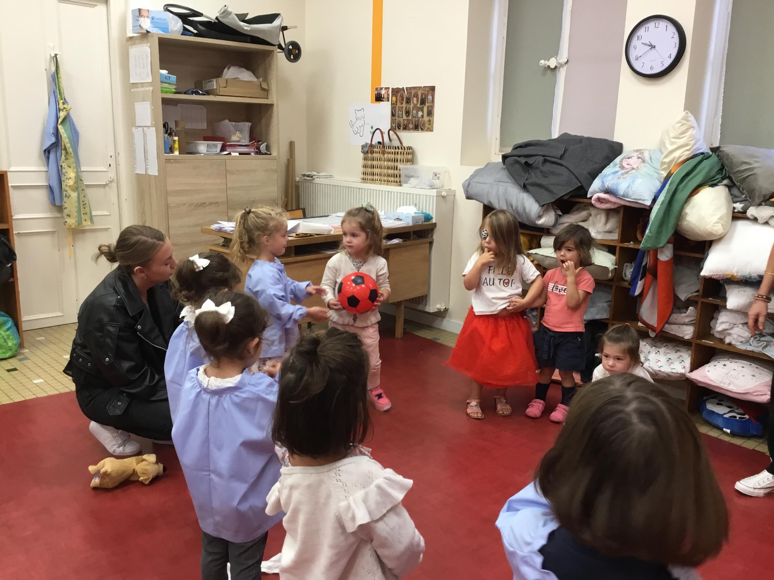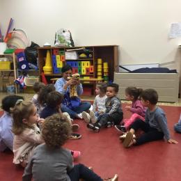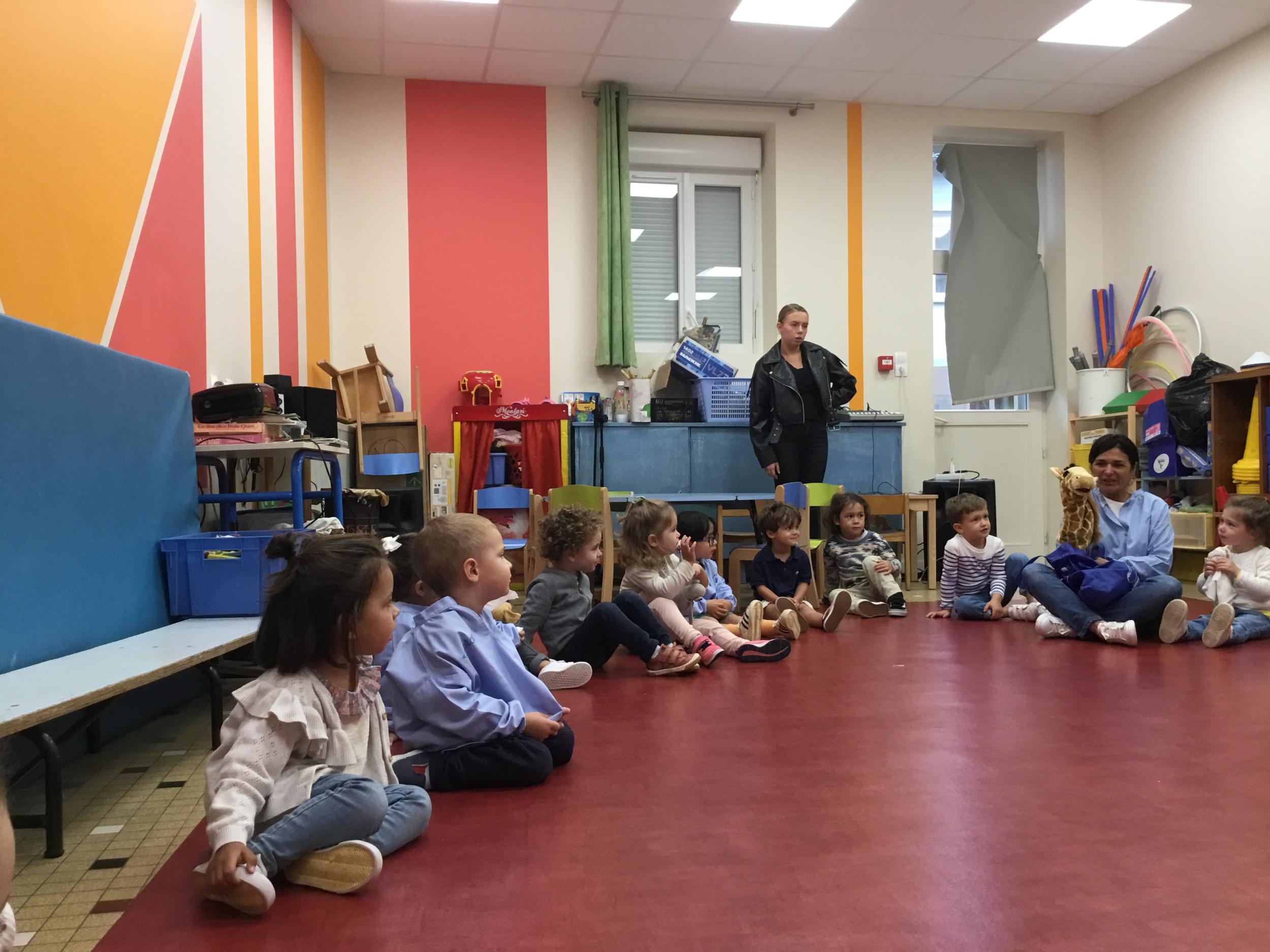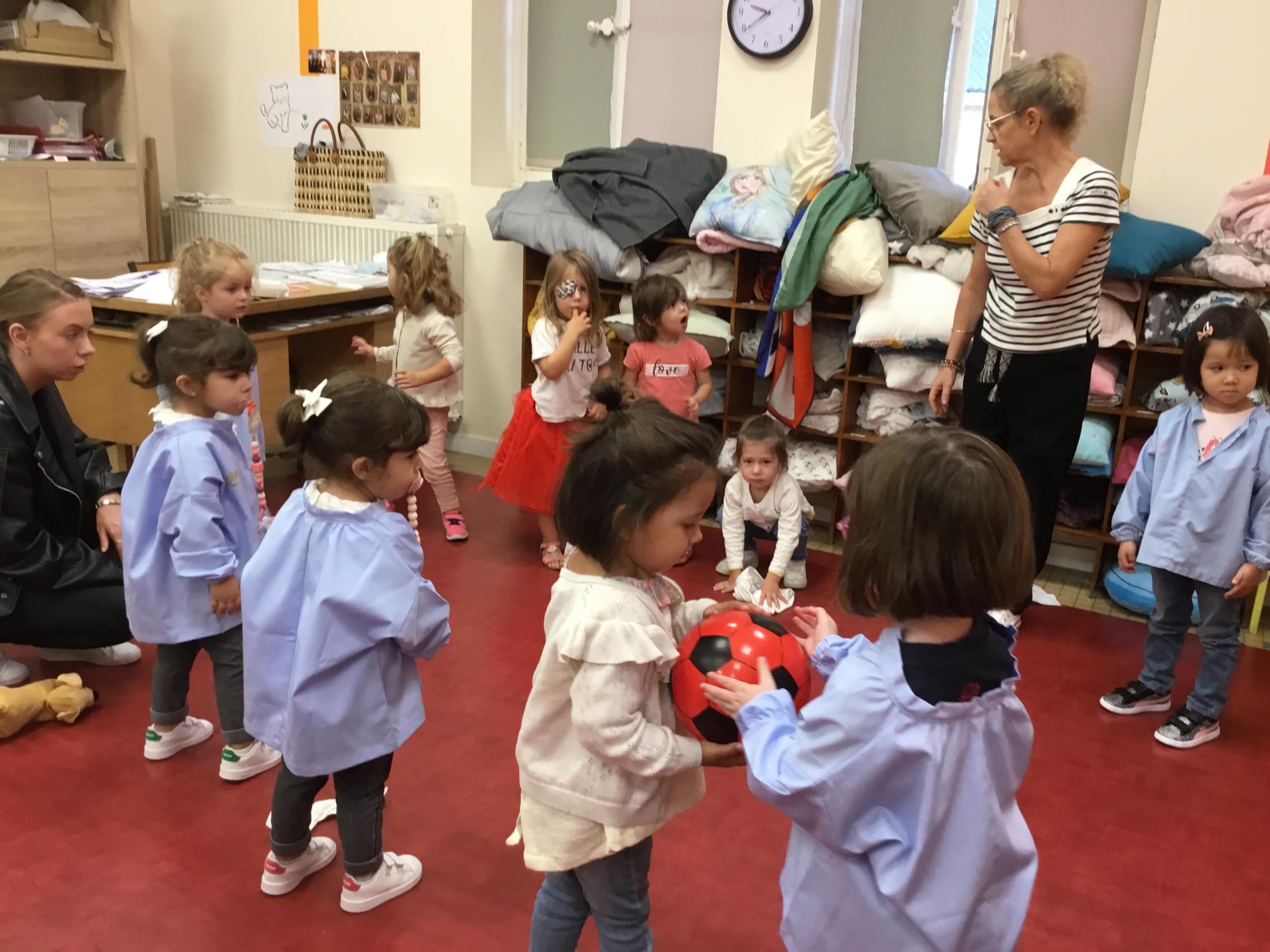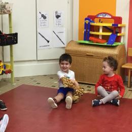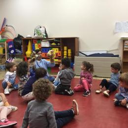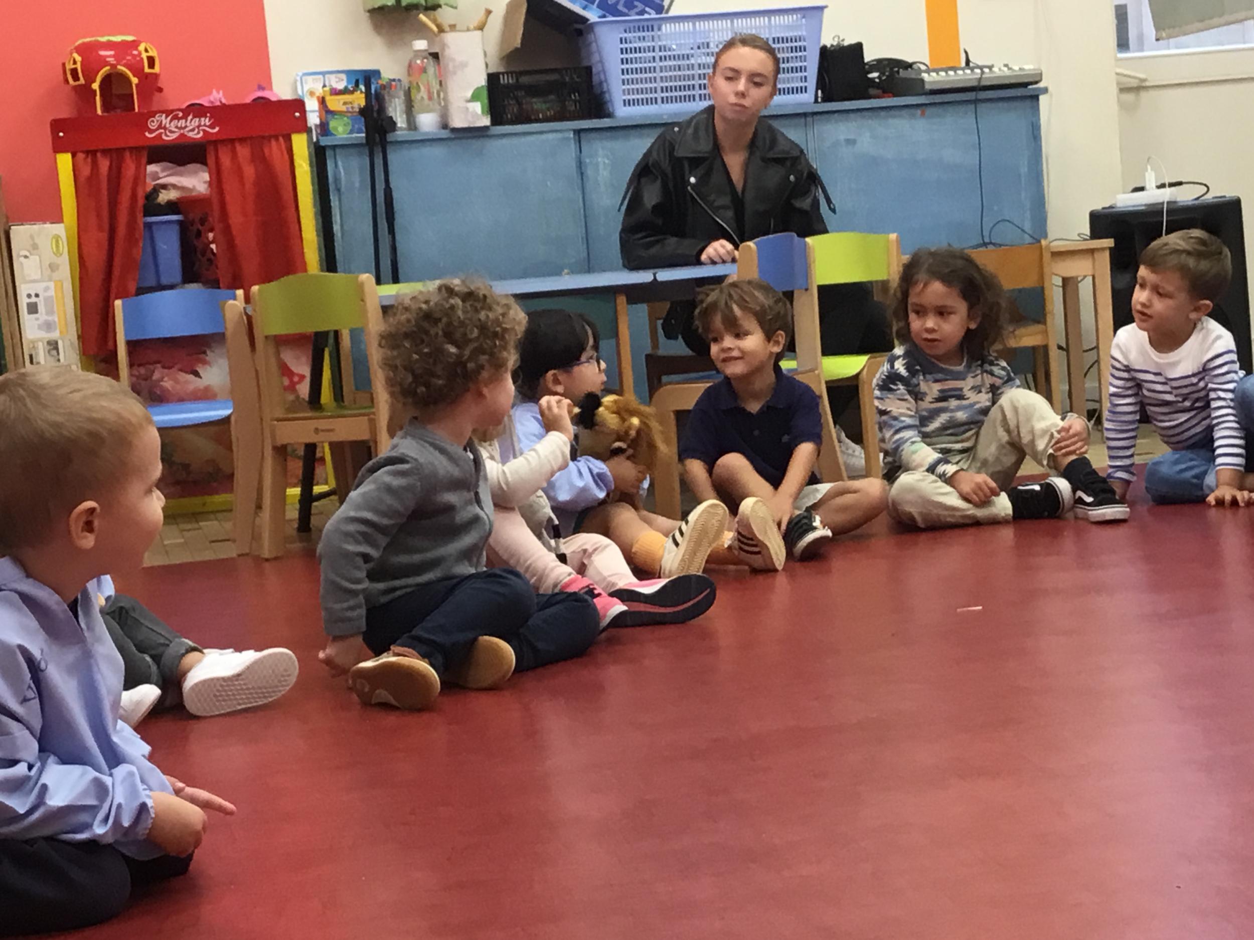 Chaque enfant a pris Gigi dans ses bras pour lui dire son prénom, puis Gigi est passée de bras en bras , en étant bien attentif à regarder son voisin en lui donnant la peluche.