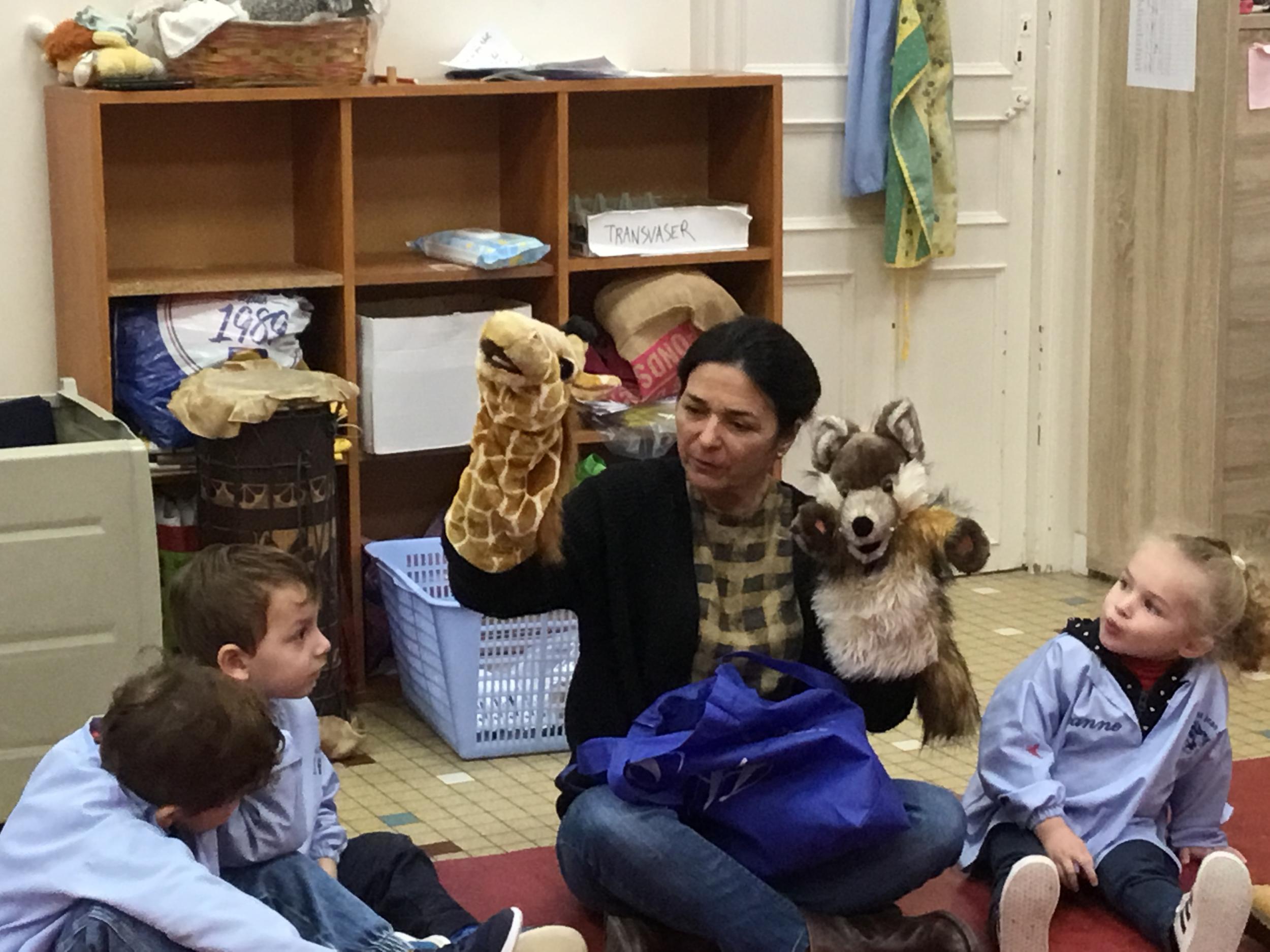 jiji est la girafe qui dit « Stop arrête quand elle n’est pas d’accord » Loulou quant à lui préfère râler, se cacher, ou taper … C est un petit loup plein de peurs…. Jiji lui montre le chemin et lui propose des solutions pour entrer en relation avec les autres de façon apaisée.