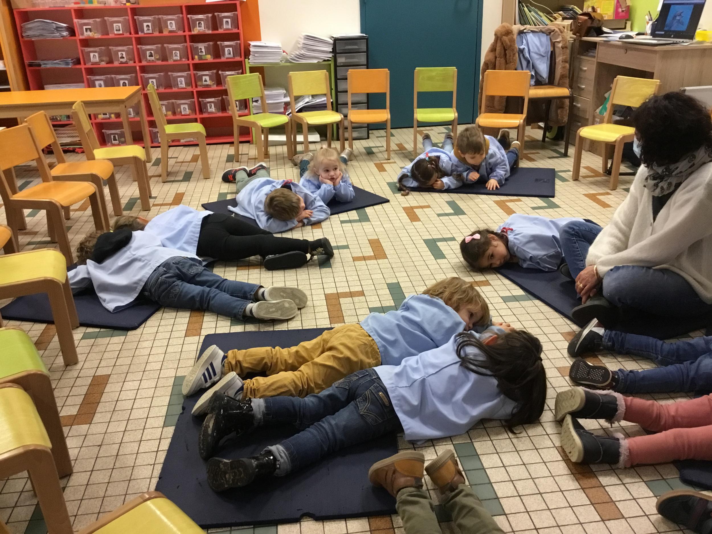Petite et moyenne section 10/12/2021 Découvrir différentes façons de se calmer. La maîtresse propose aux enfants d’expérimenter différentes façons de retrouver la paix intérieure .