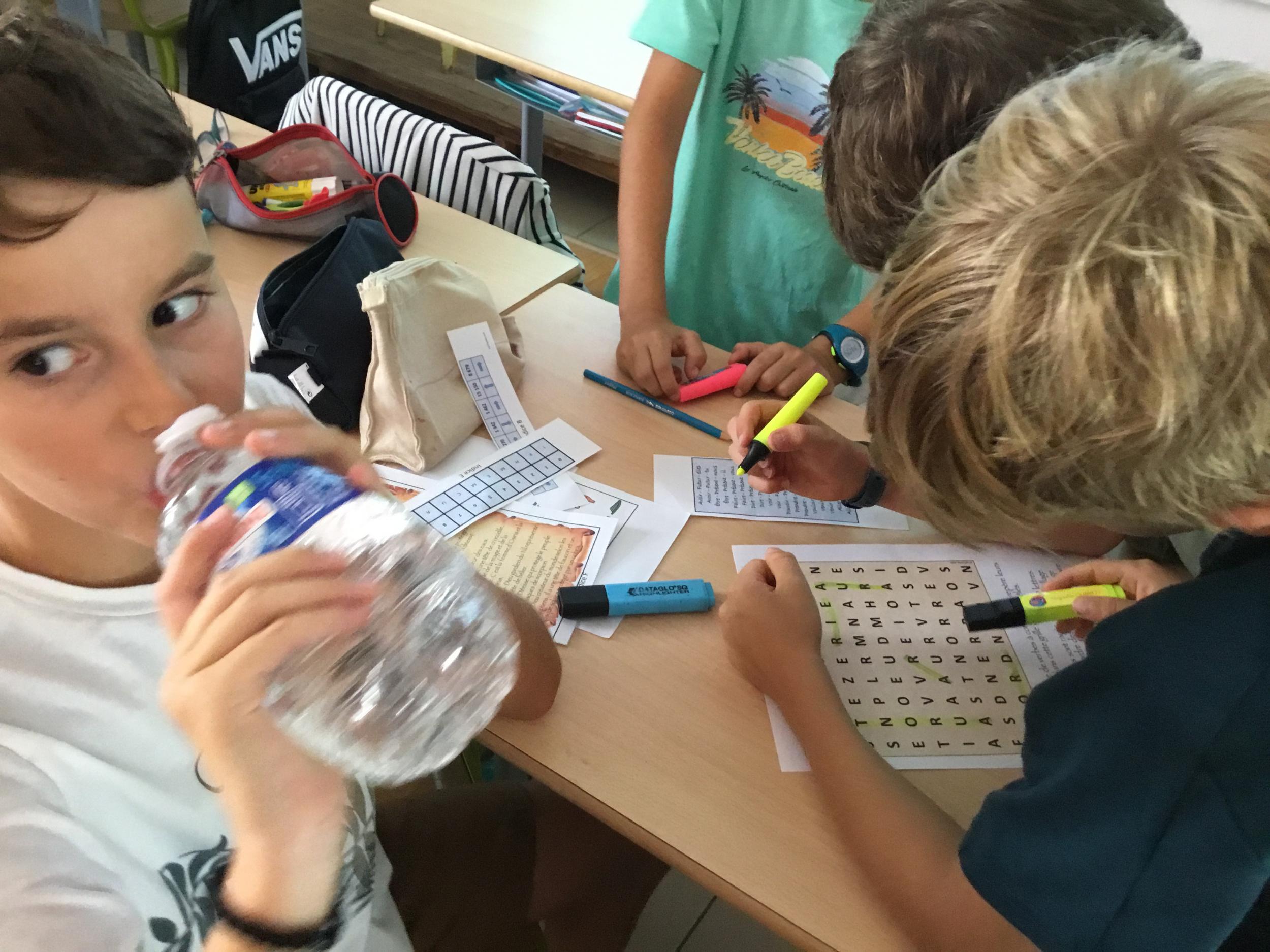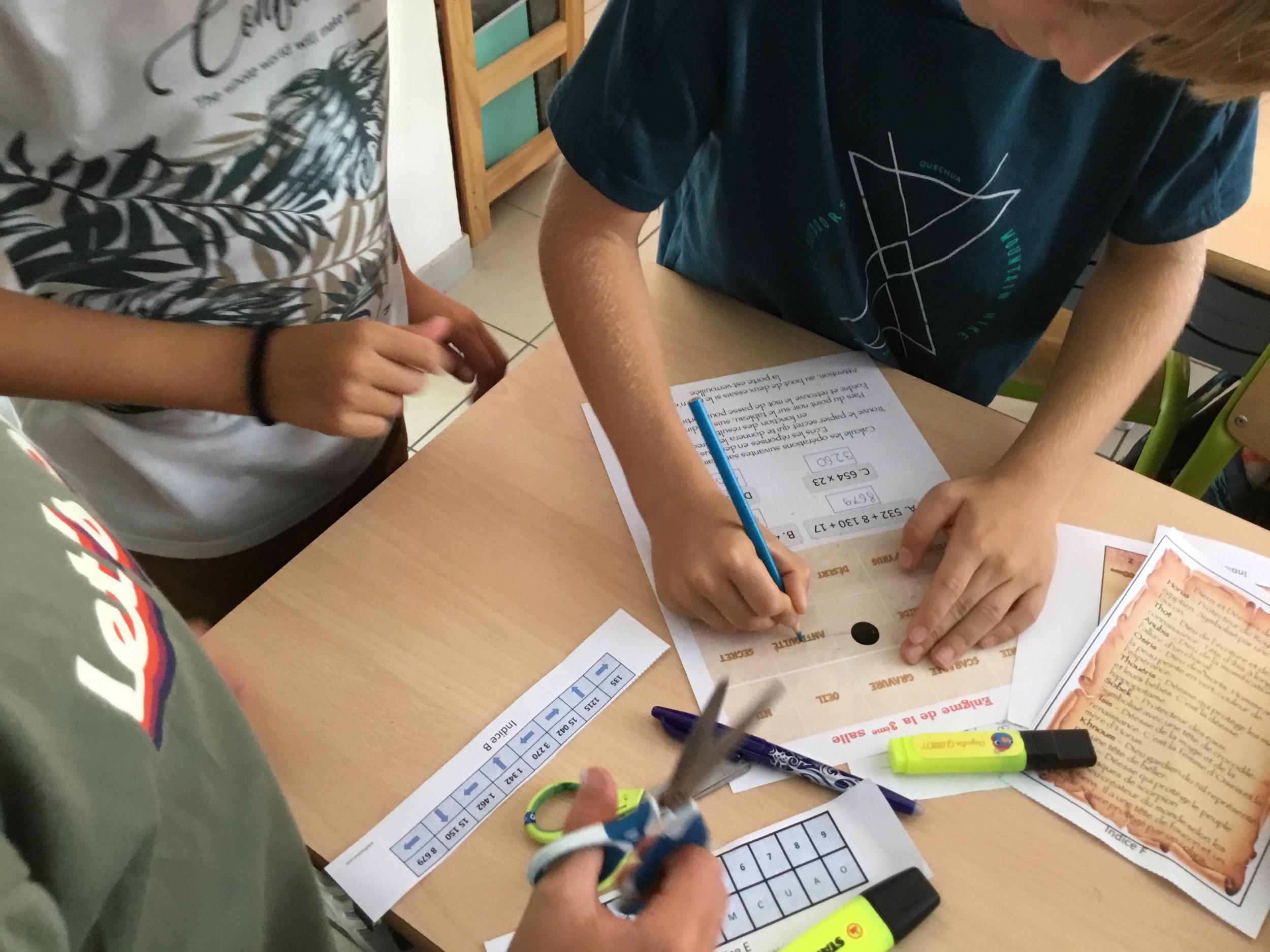 le jeu s’est déroulé en équipe. Chaque groupe à l’aide d’énigmes et d’indices à tenté de délivrer Lucas. Un moyen ludique de se replonger dans la conjugaison, le calcul et la compréhension de texte.