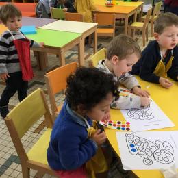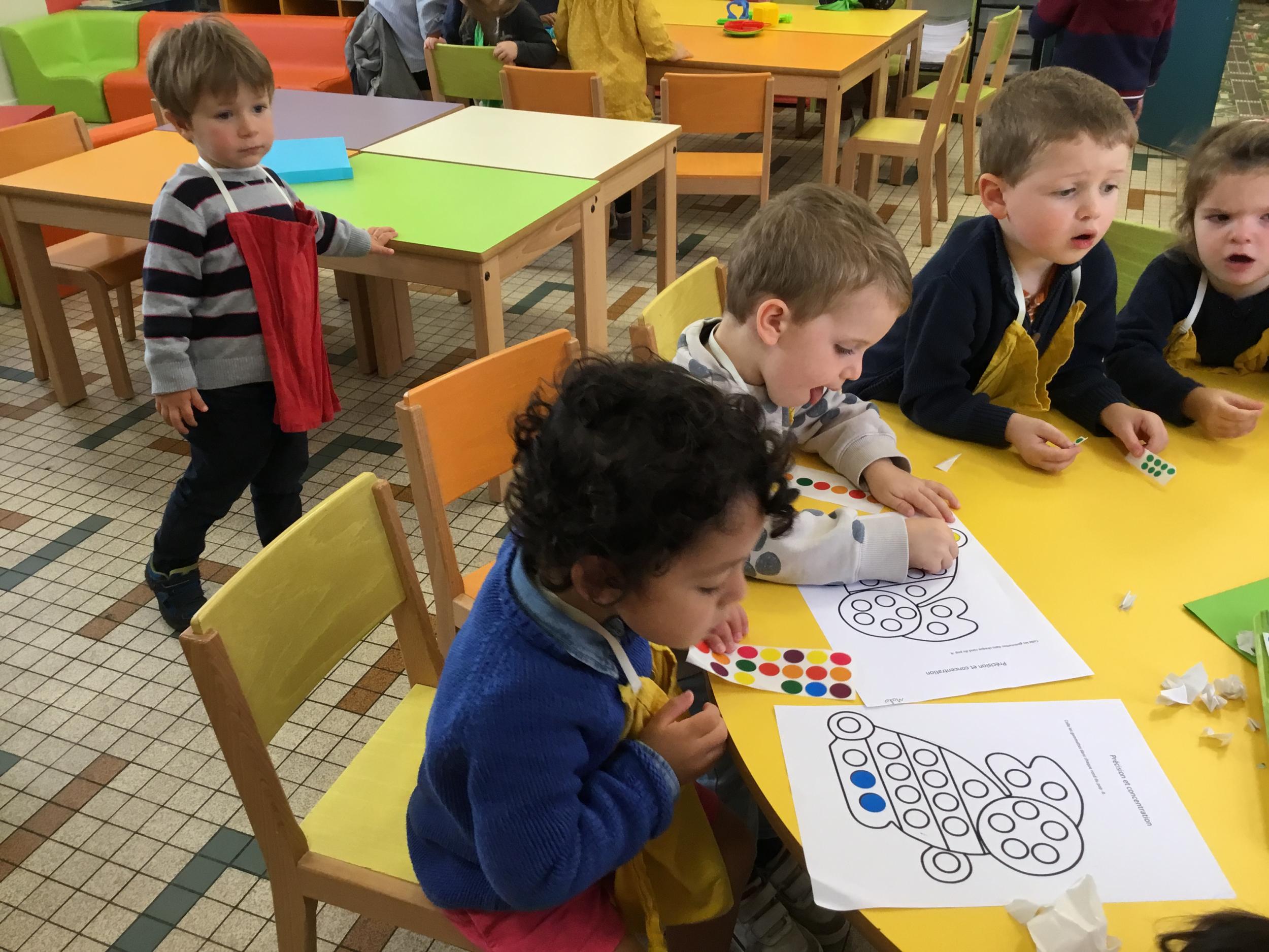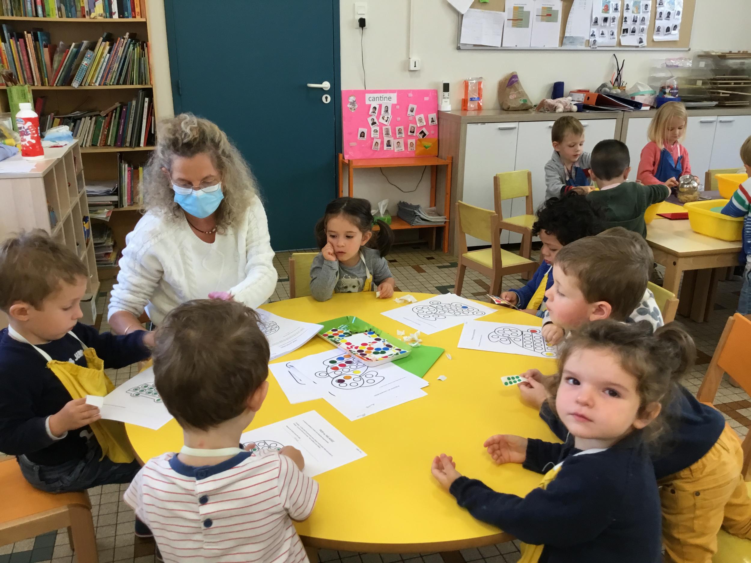 Pour s’entraîner à évaluer une quantité, la maîtresse à donné à chaque élève un plaque de gommettes. Certains en avaient trop pour compléter leur pop -it , d’autres pas assez ! La maîtresse posait la question à chaque élève et notait sa réponse. Puis chaque enfant vérifiait son hypothèse en collant toutes les gommettes distribuées. A la fin du travail, la maîtresse reposait la question. Un exercice qui s’est avéré encore difficile et à retravailler .