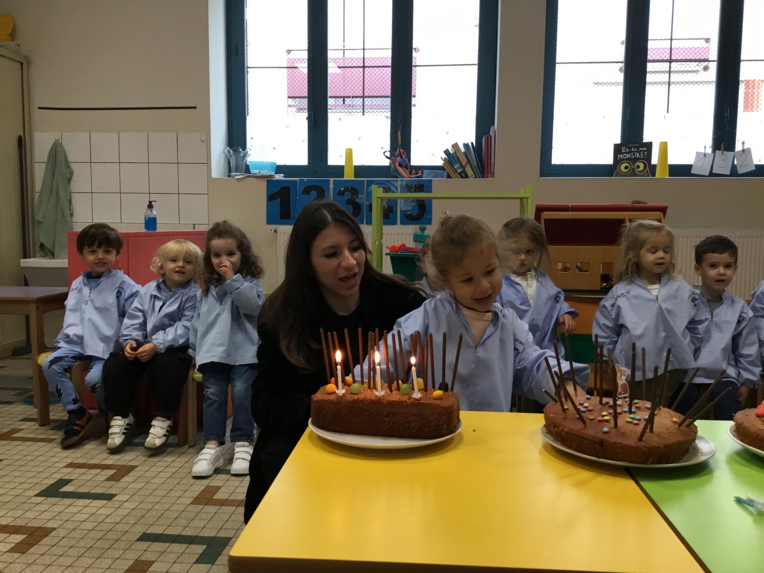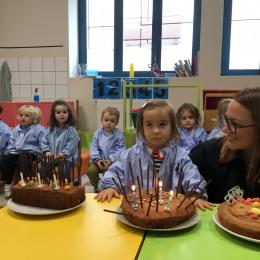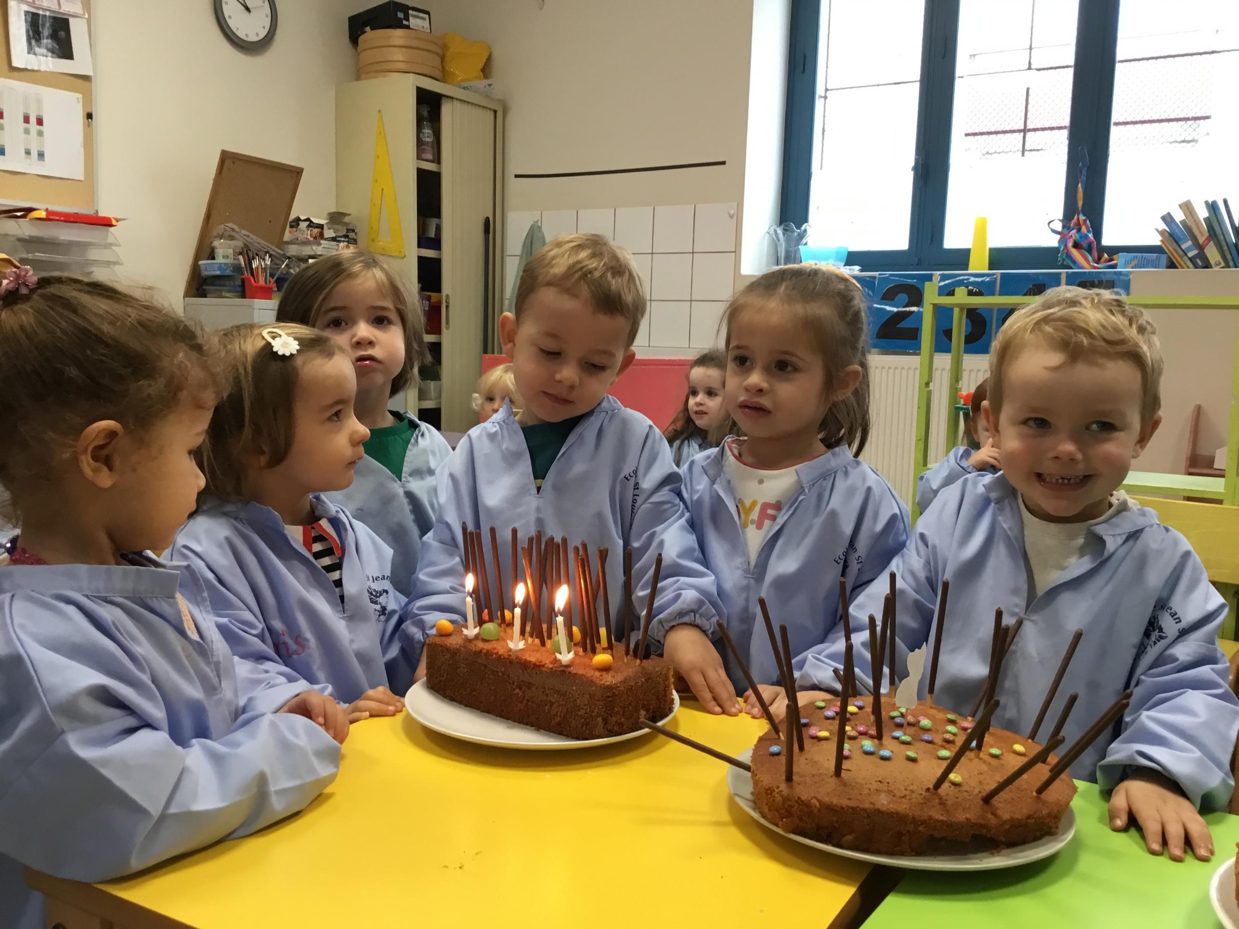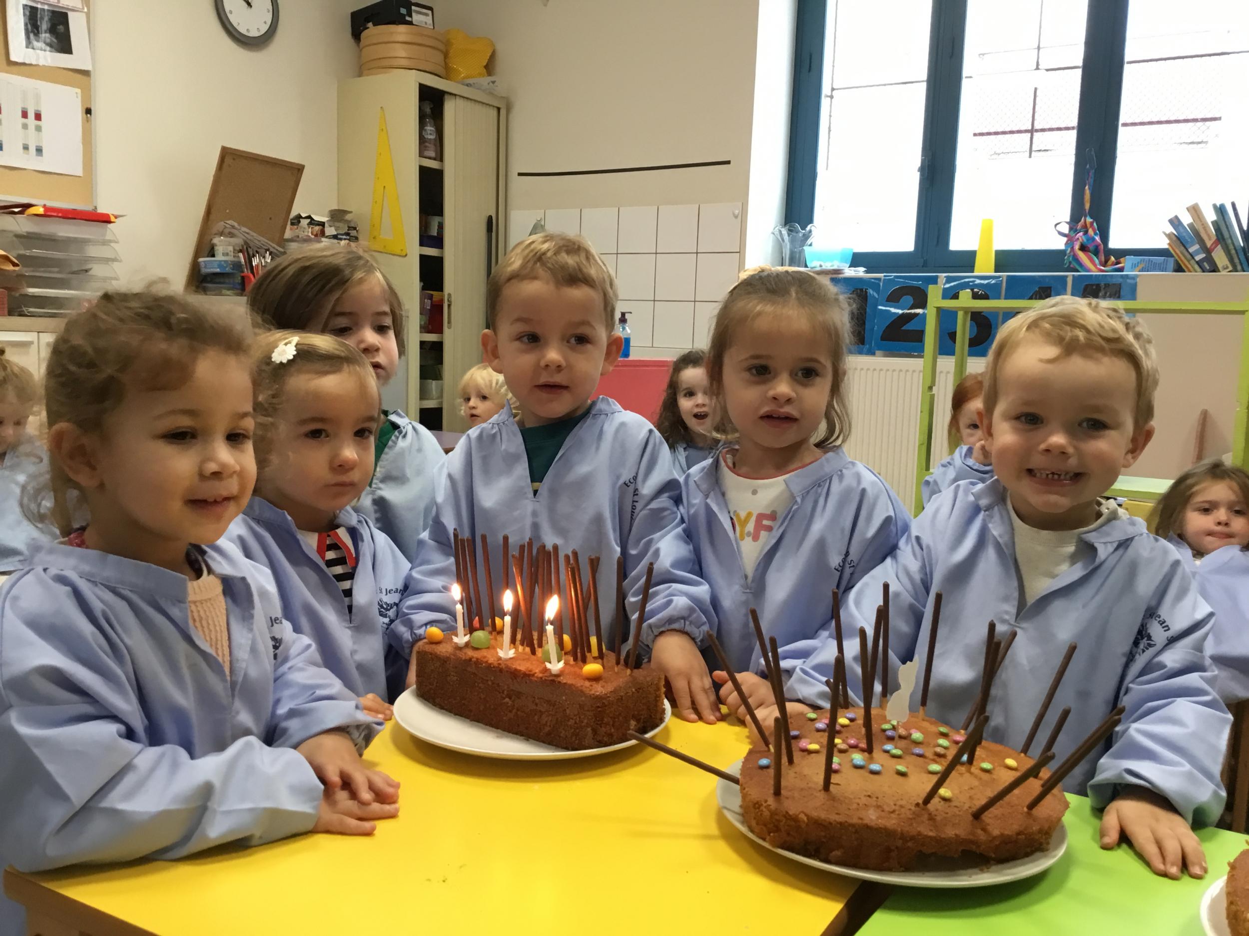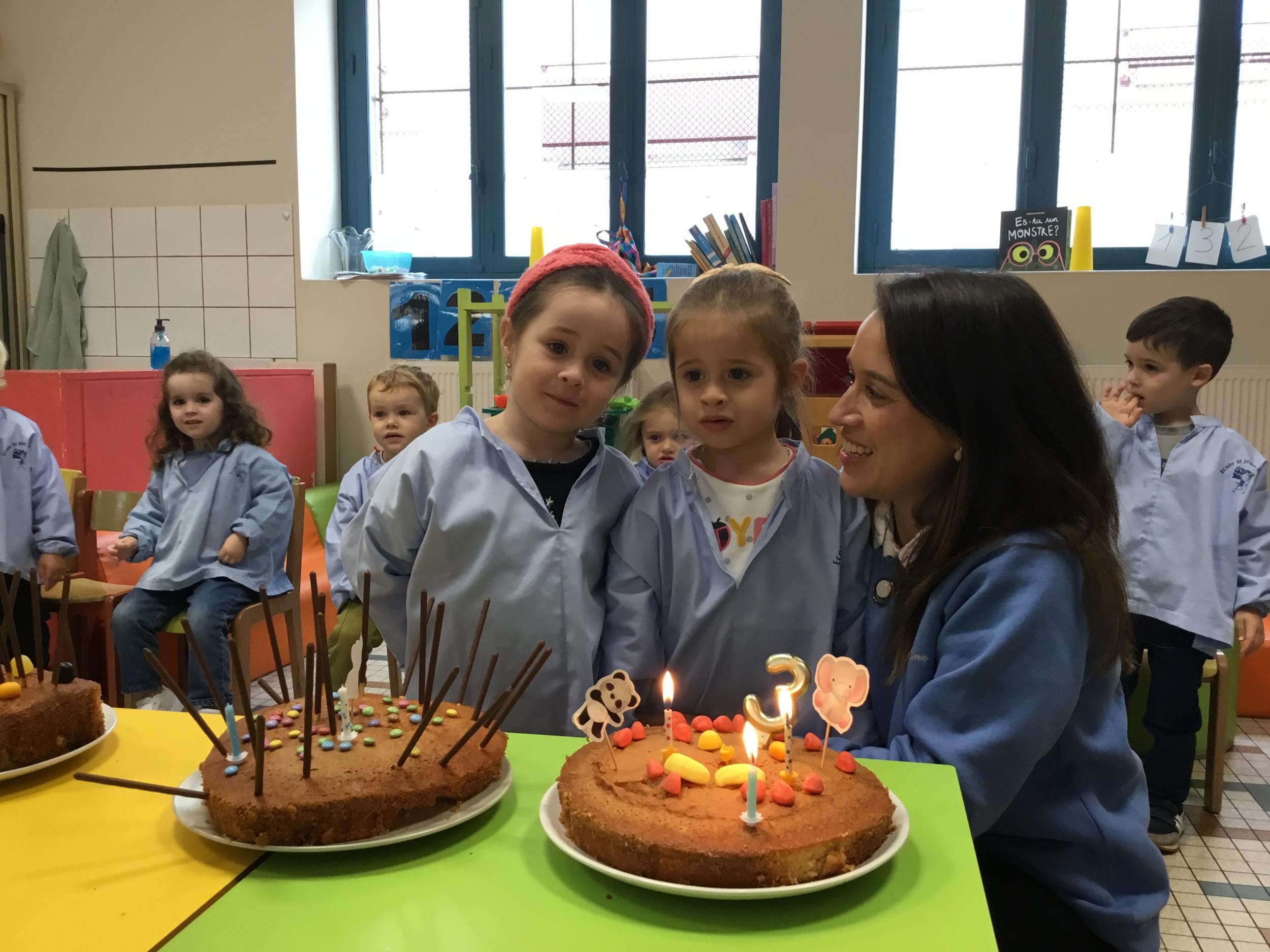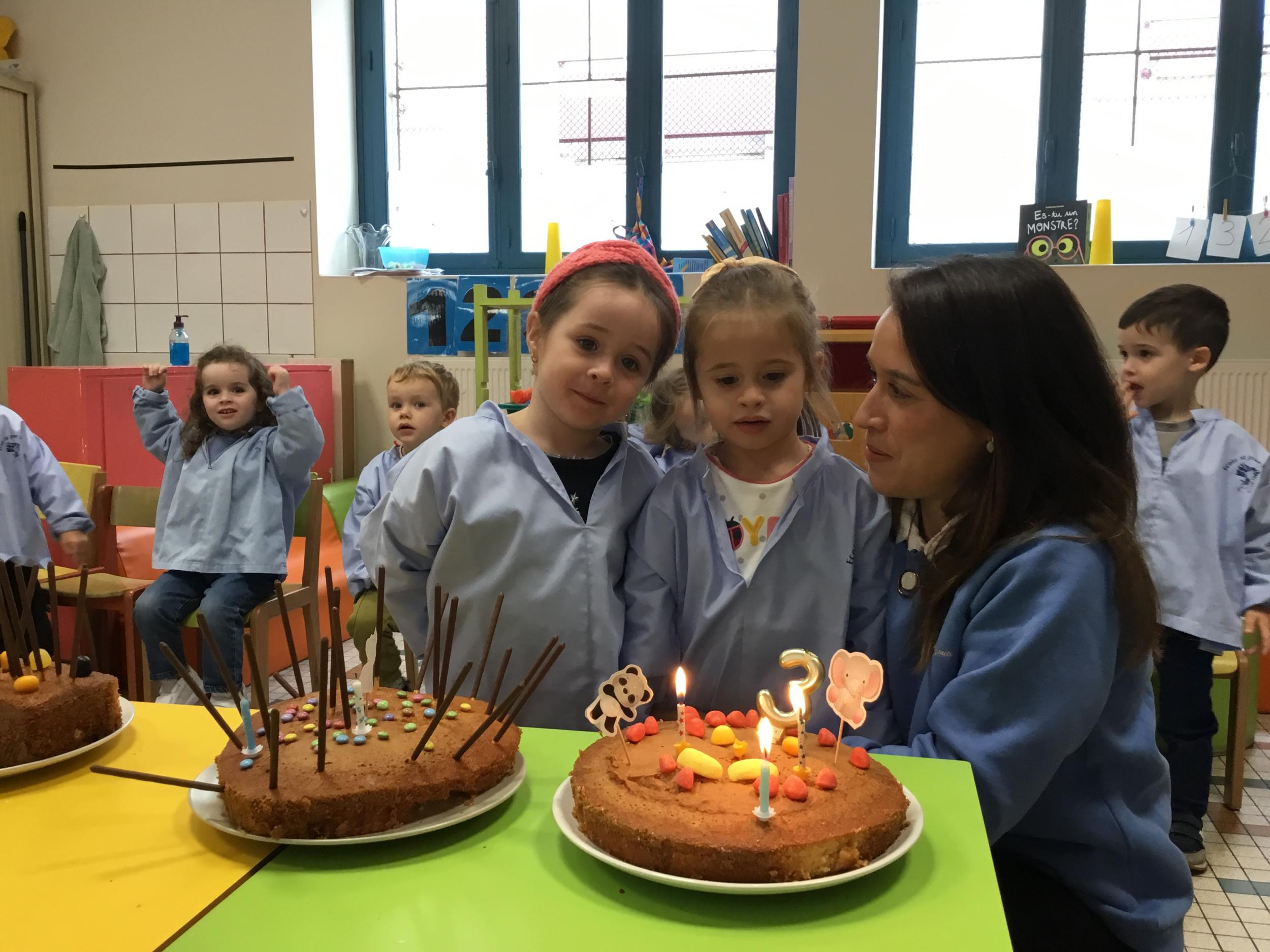 Tous les mois nous fêtons les anniversaires . Nous faisons des gâteaux le jeudi et un vendredi / mois, nous invitons les parents des enfants qui fêtent leur anniversaire pour chanter ensemble et faire la fête.
