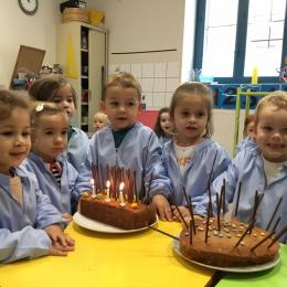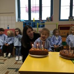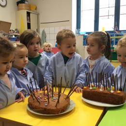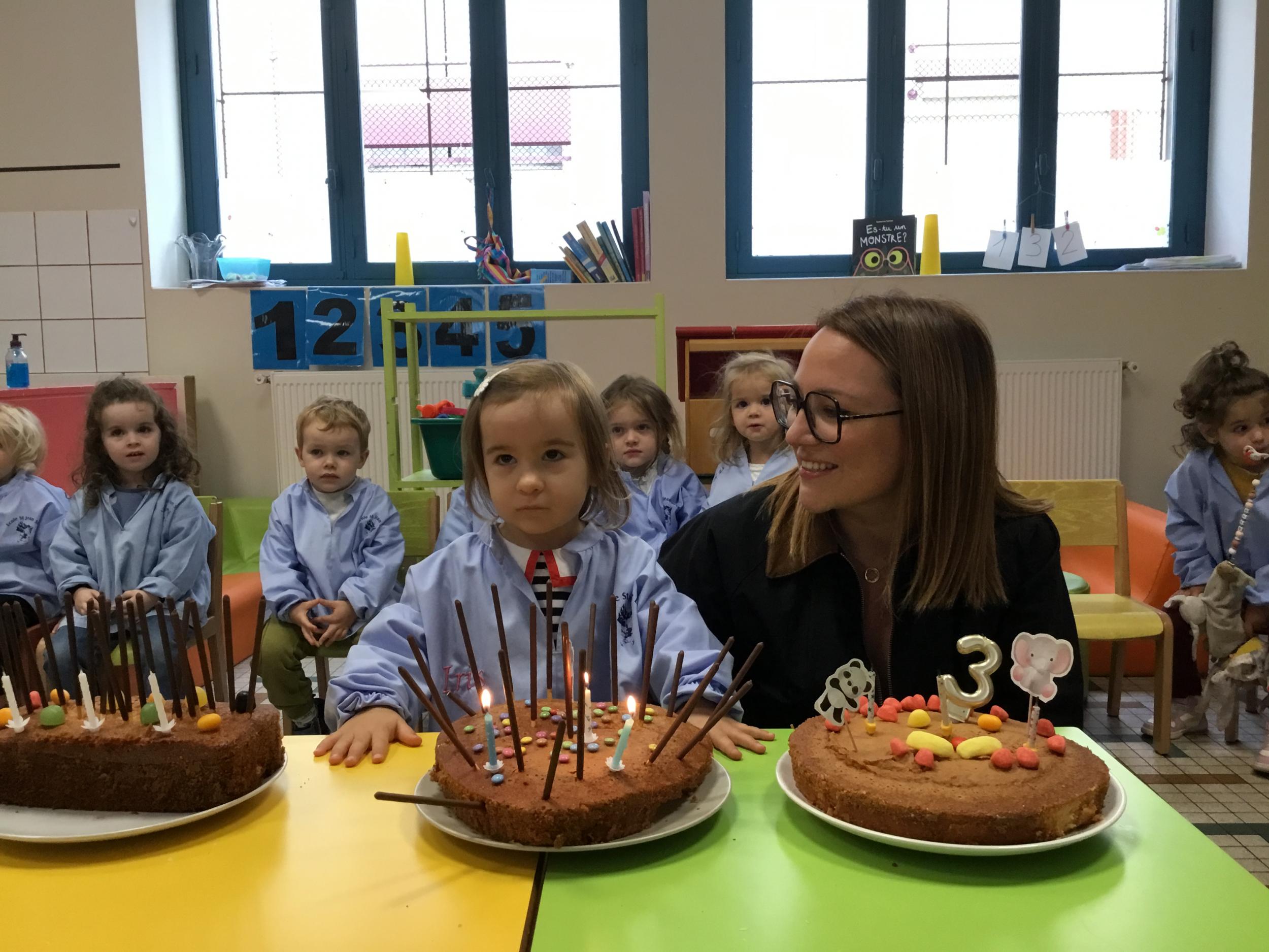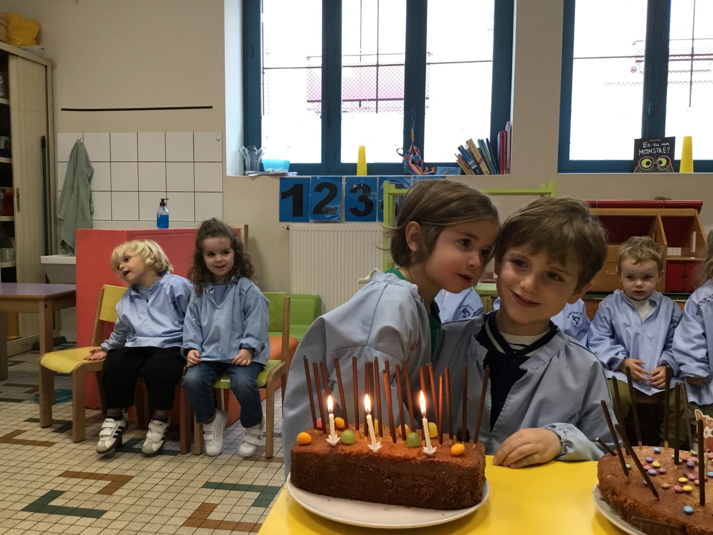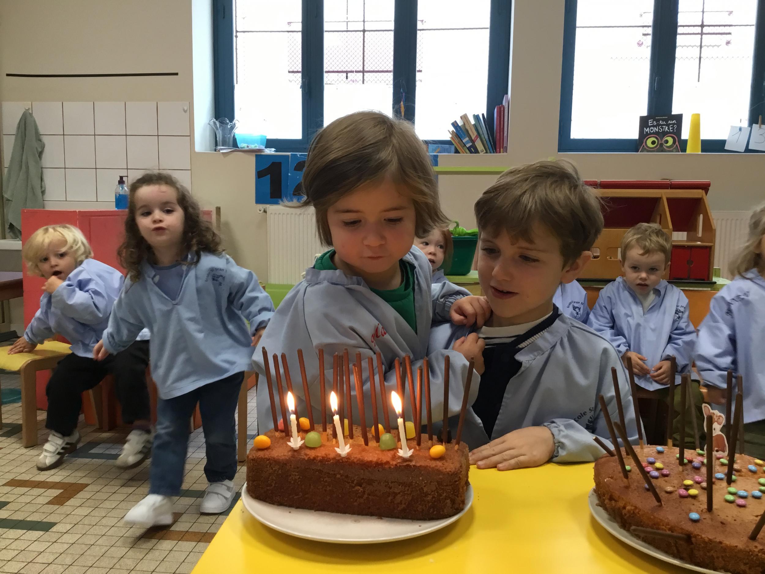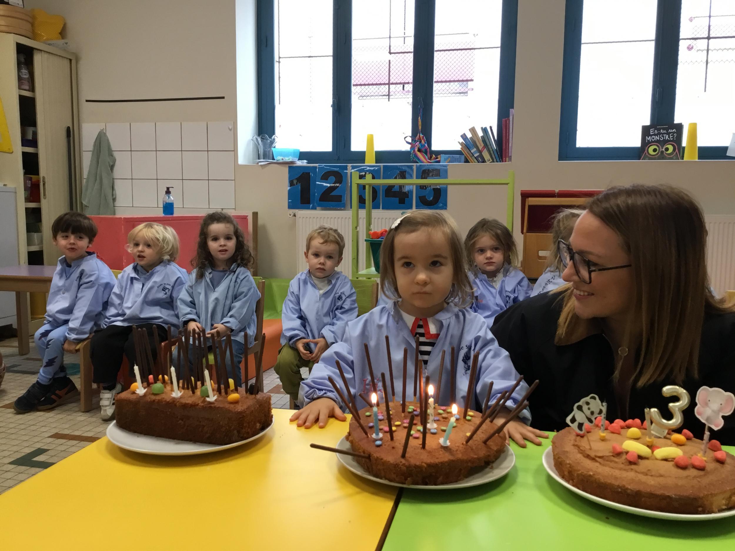 Tous les mois nous fêtons les anniversaires . Nous faisons des gâteaux le jeudi et un vendredi / mois, nous invitons les parents des enfants qui fêtent leur anniversaire pour chanter ensemble et faire la fête.
