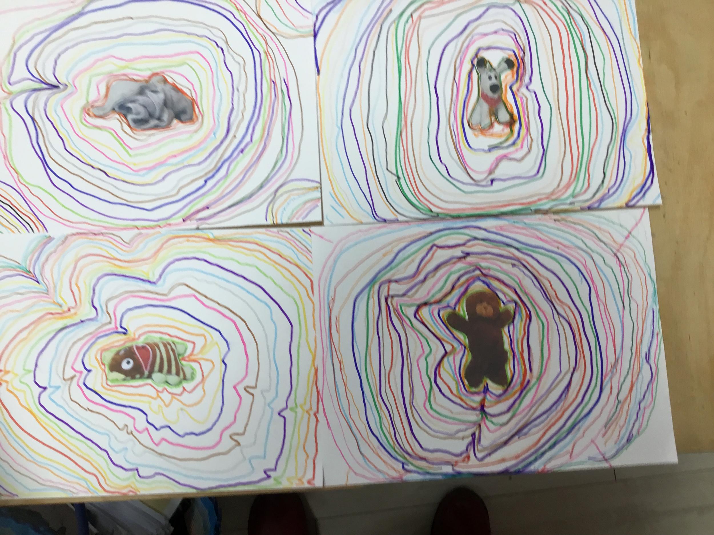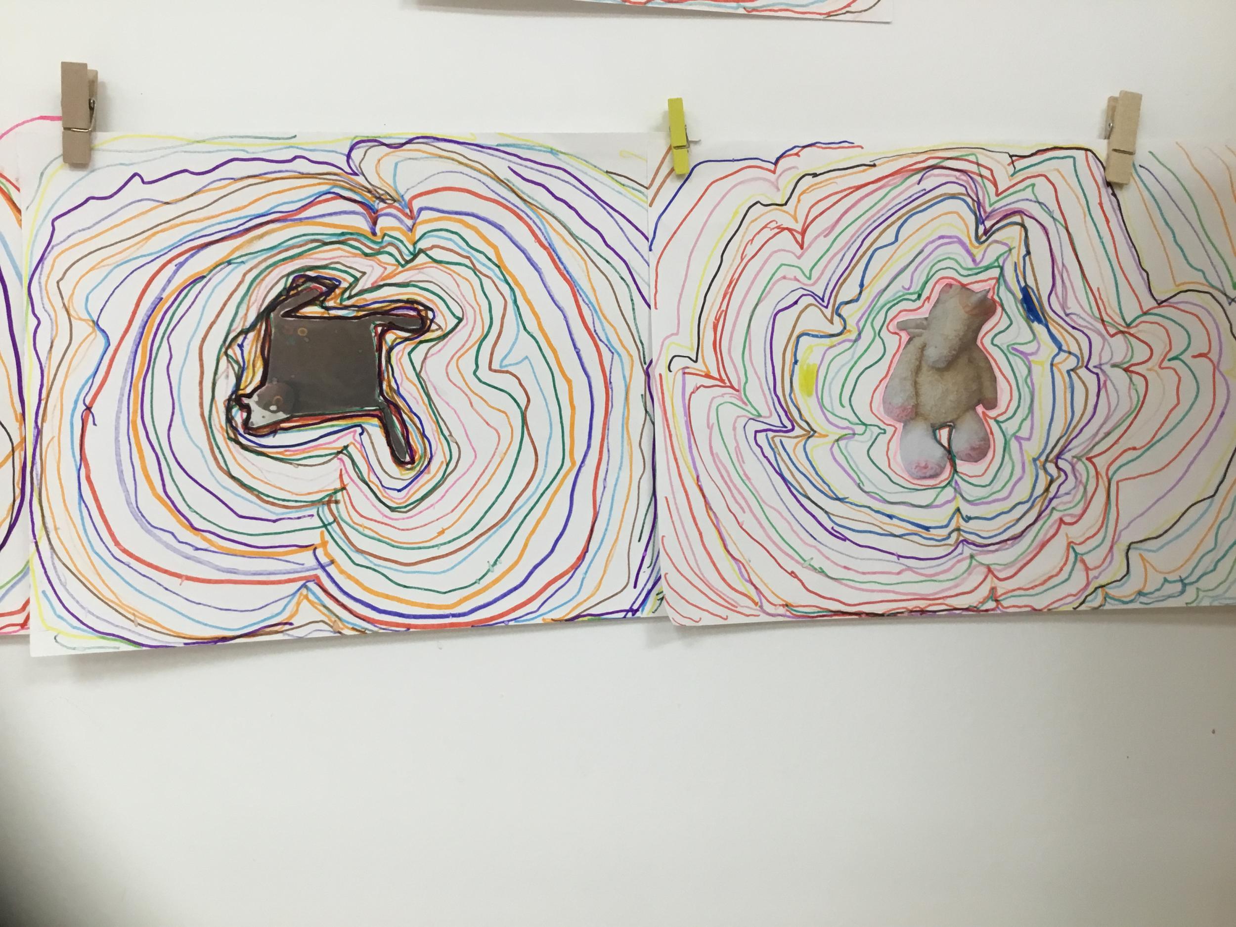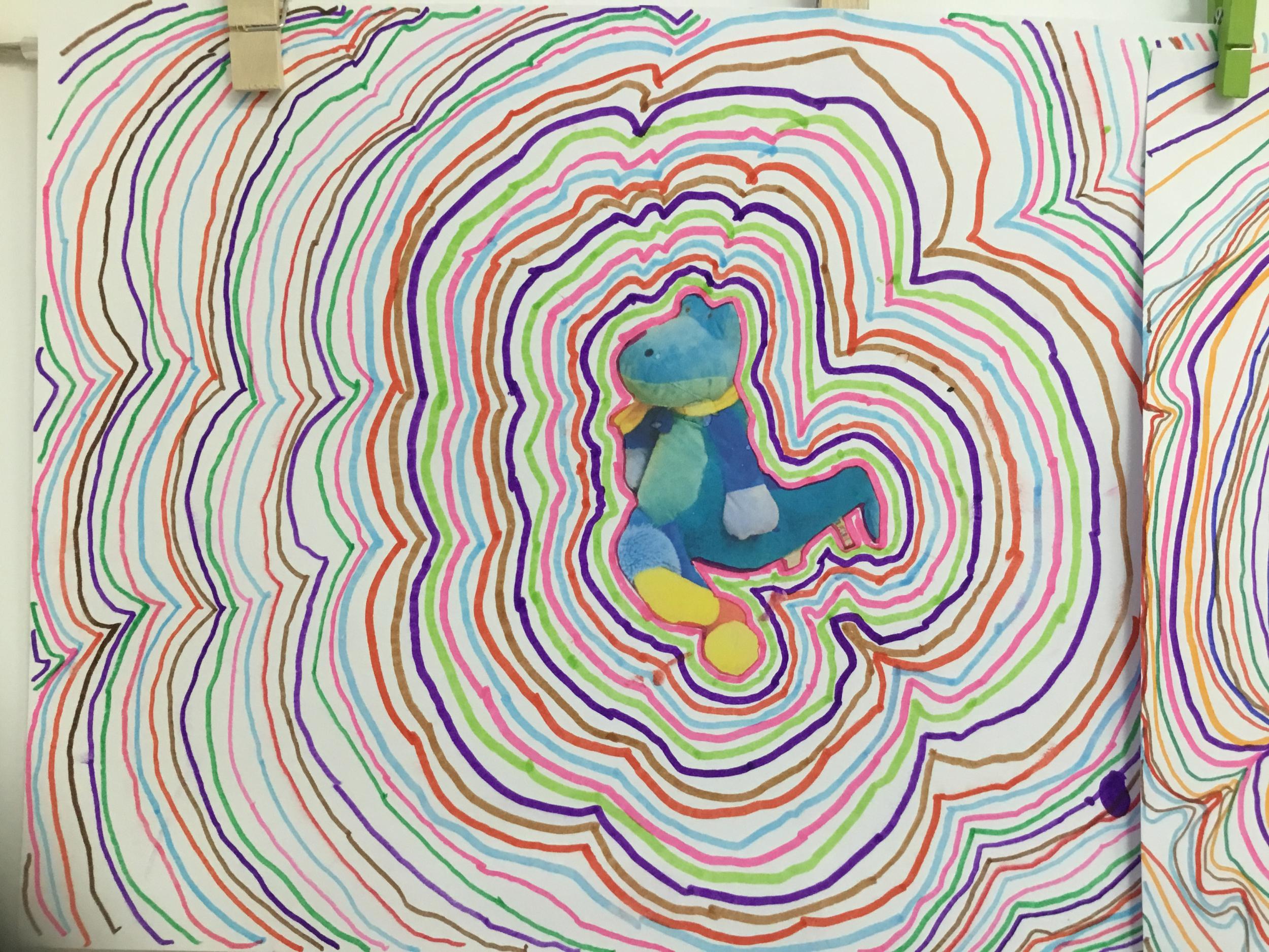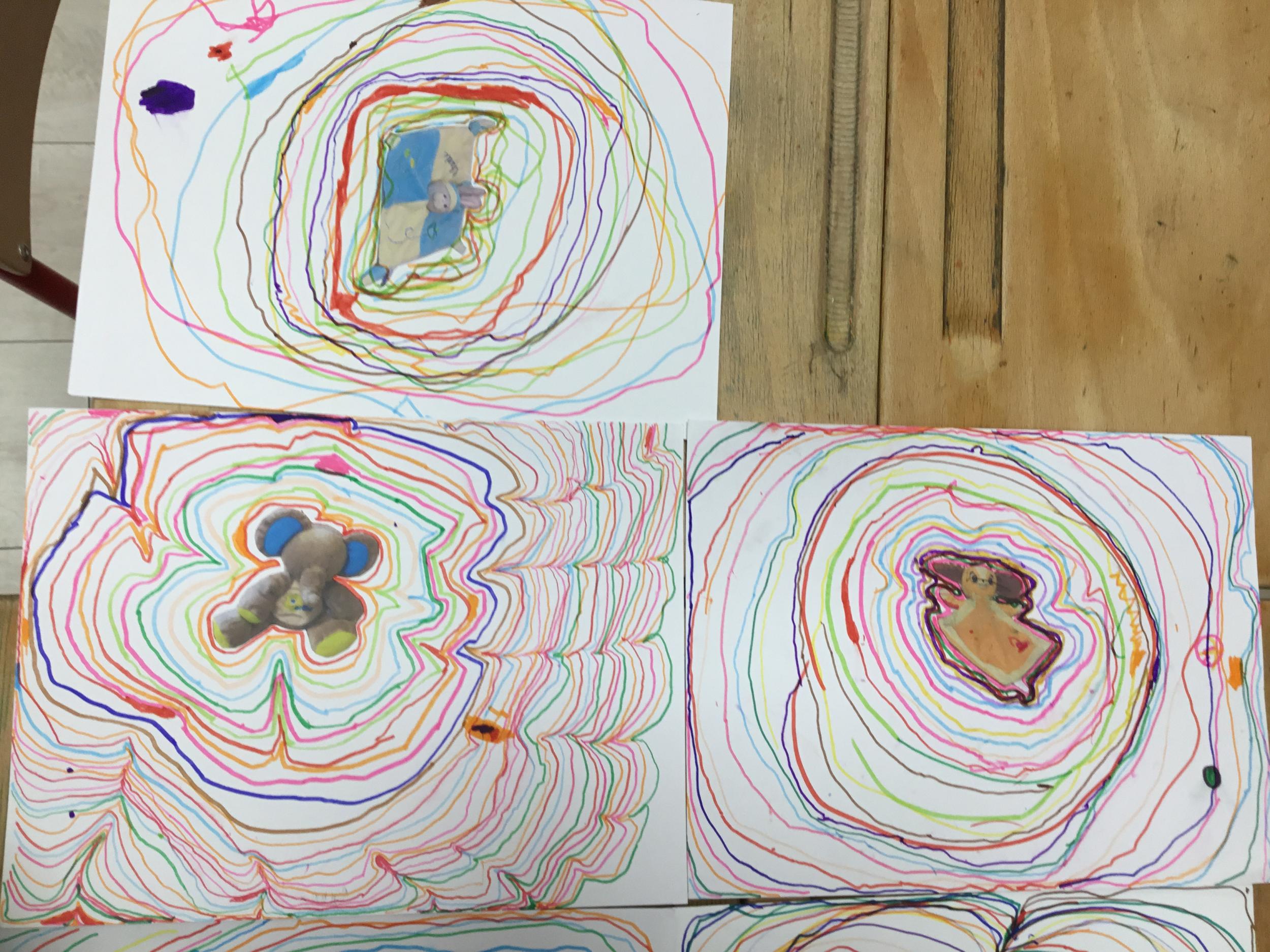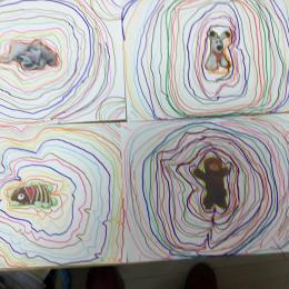 Ils devaient tracer les contours de celui -ci en restant au plus près de la forme de base en changeant de couleur à chaque fois.