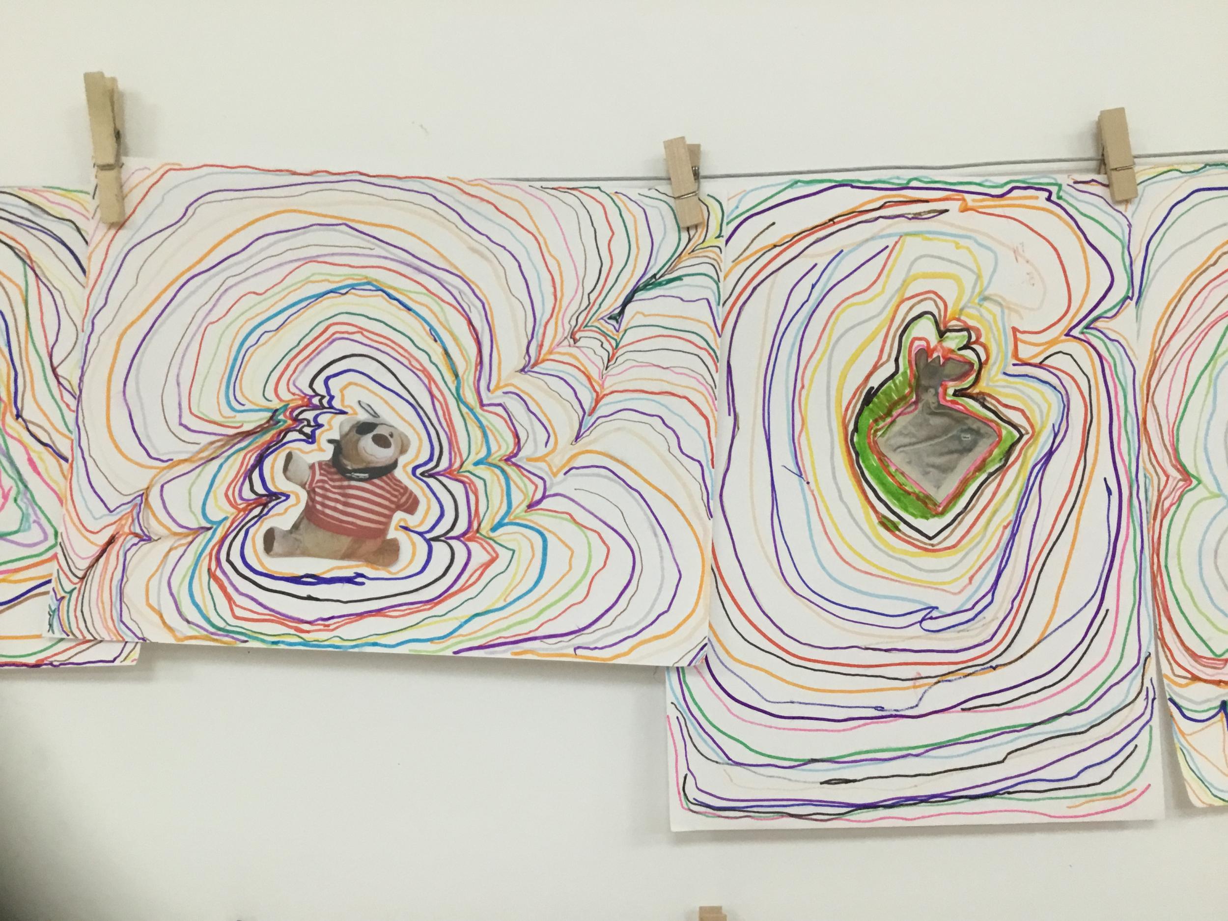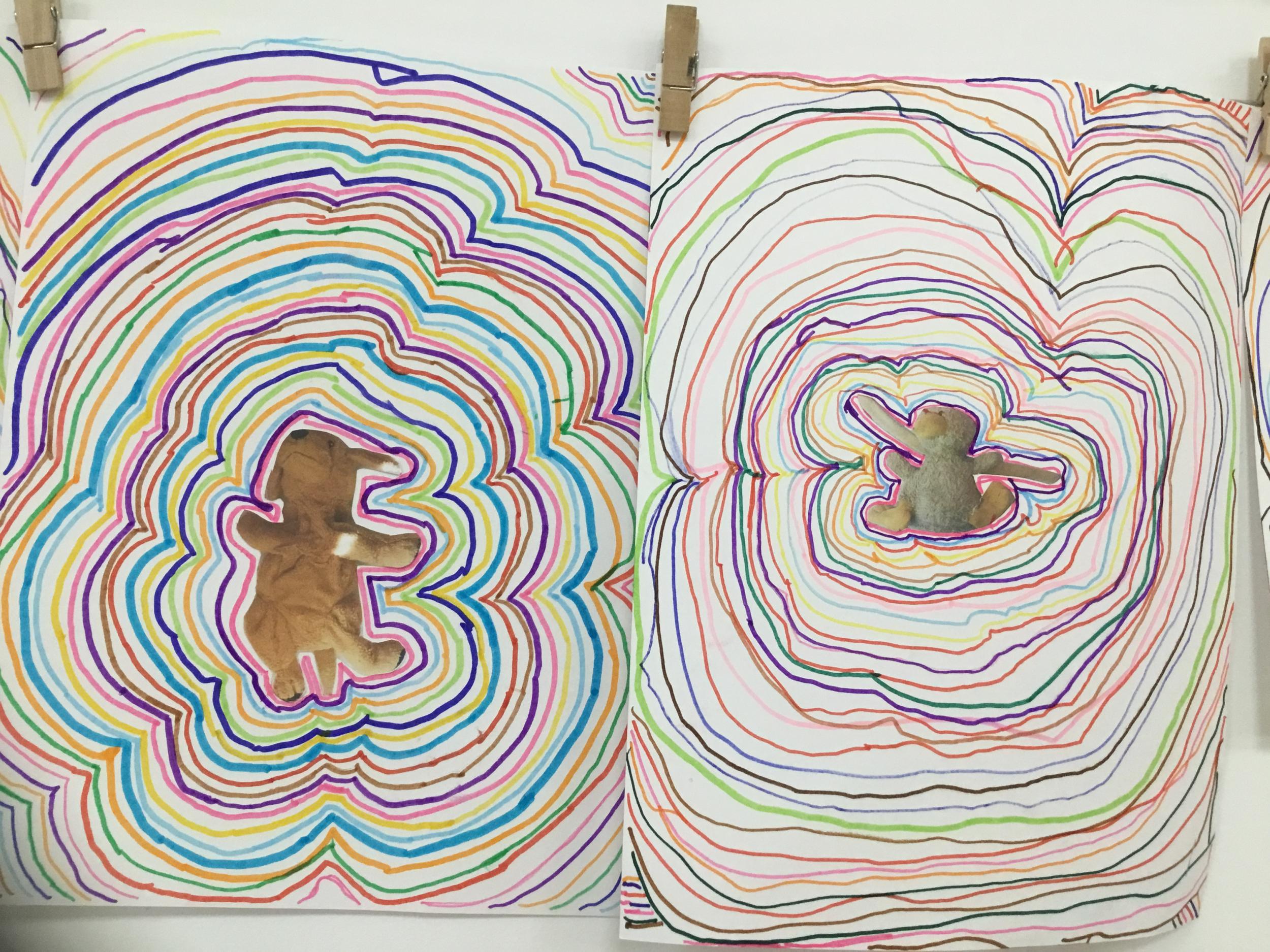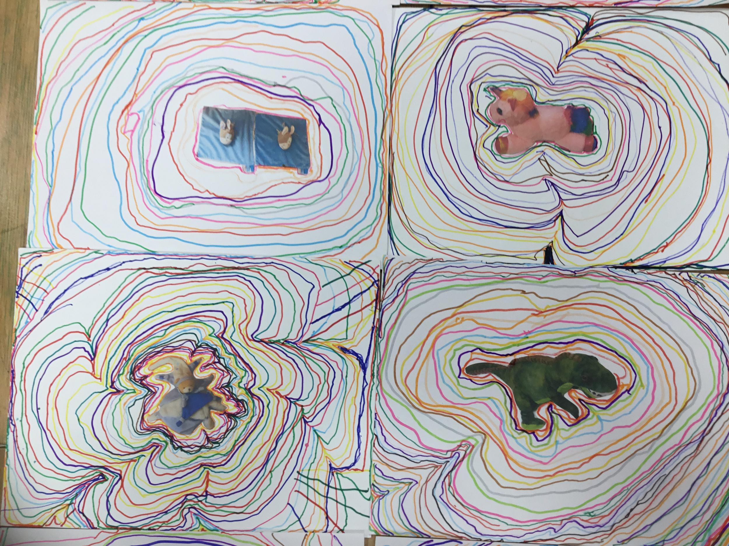 Ils devaient tracer les contours de celui -ci en restant au plus près de la forme de base en changeant de couleur à chaque fois.