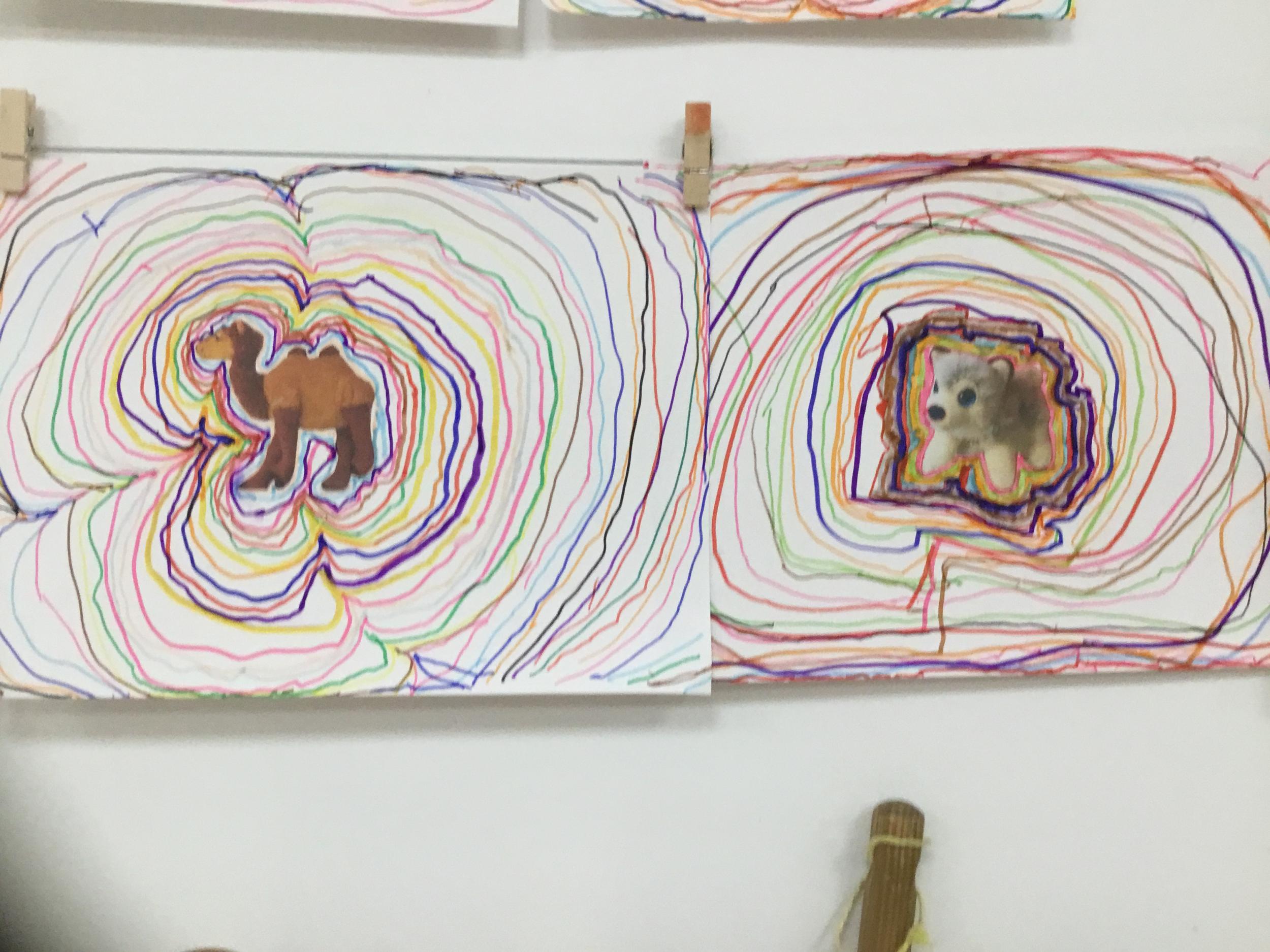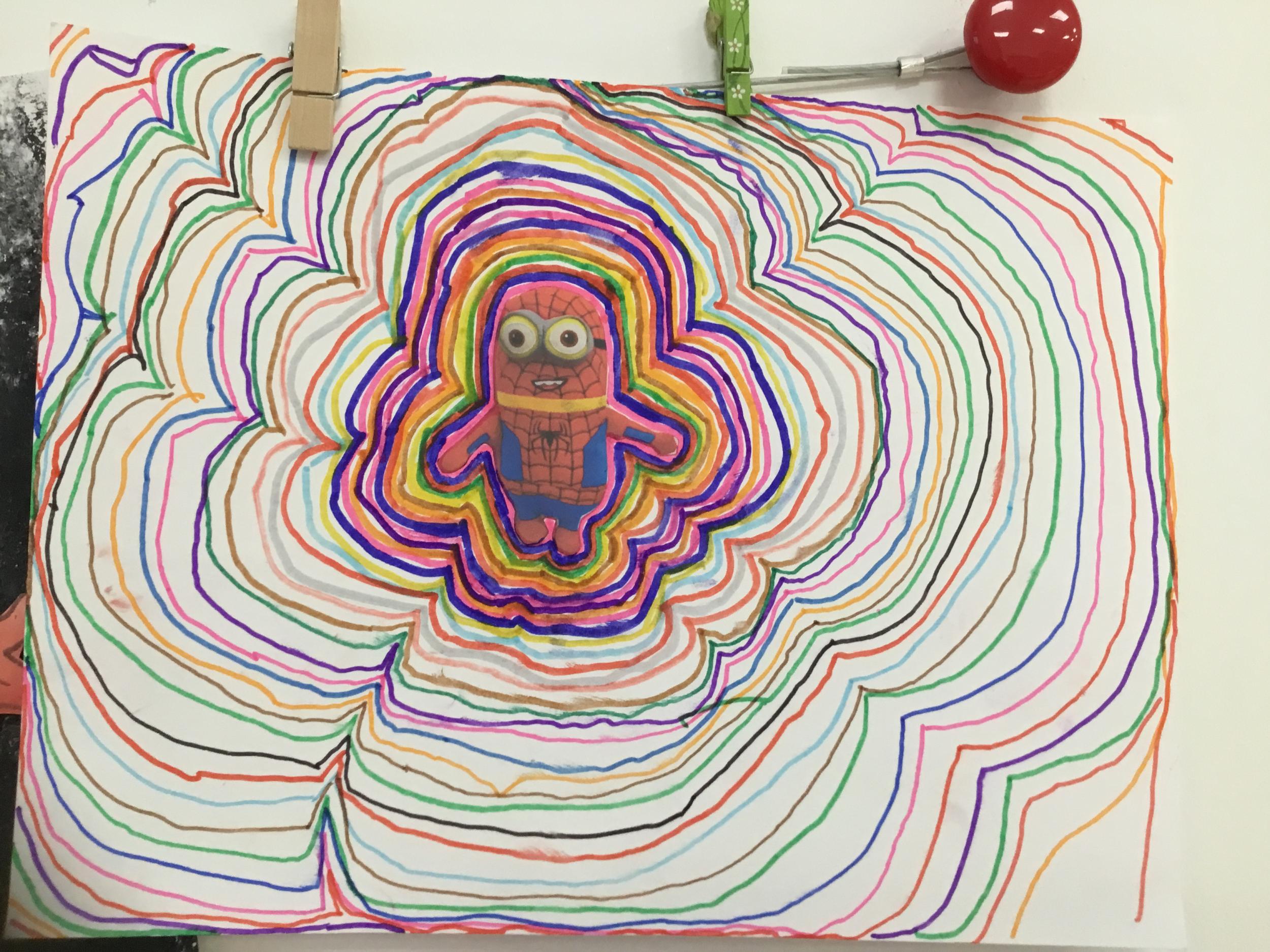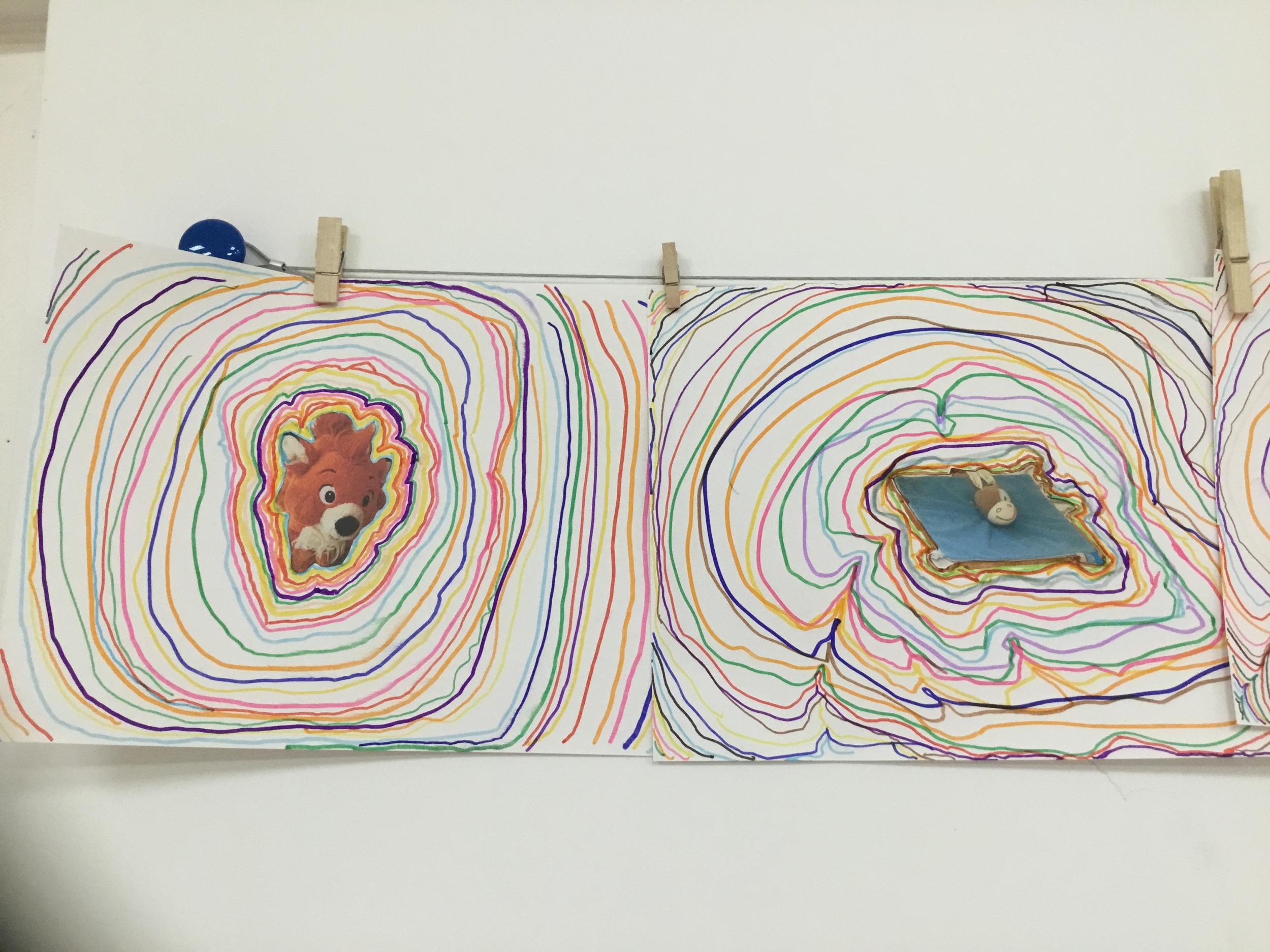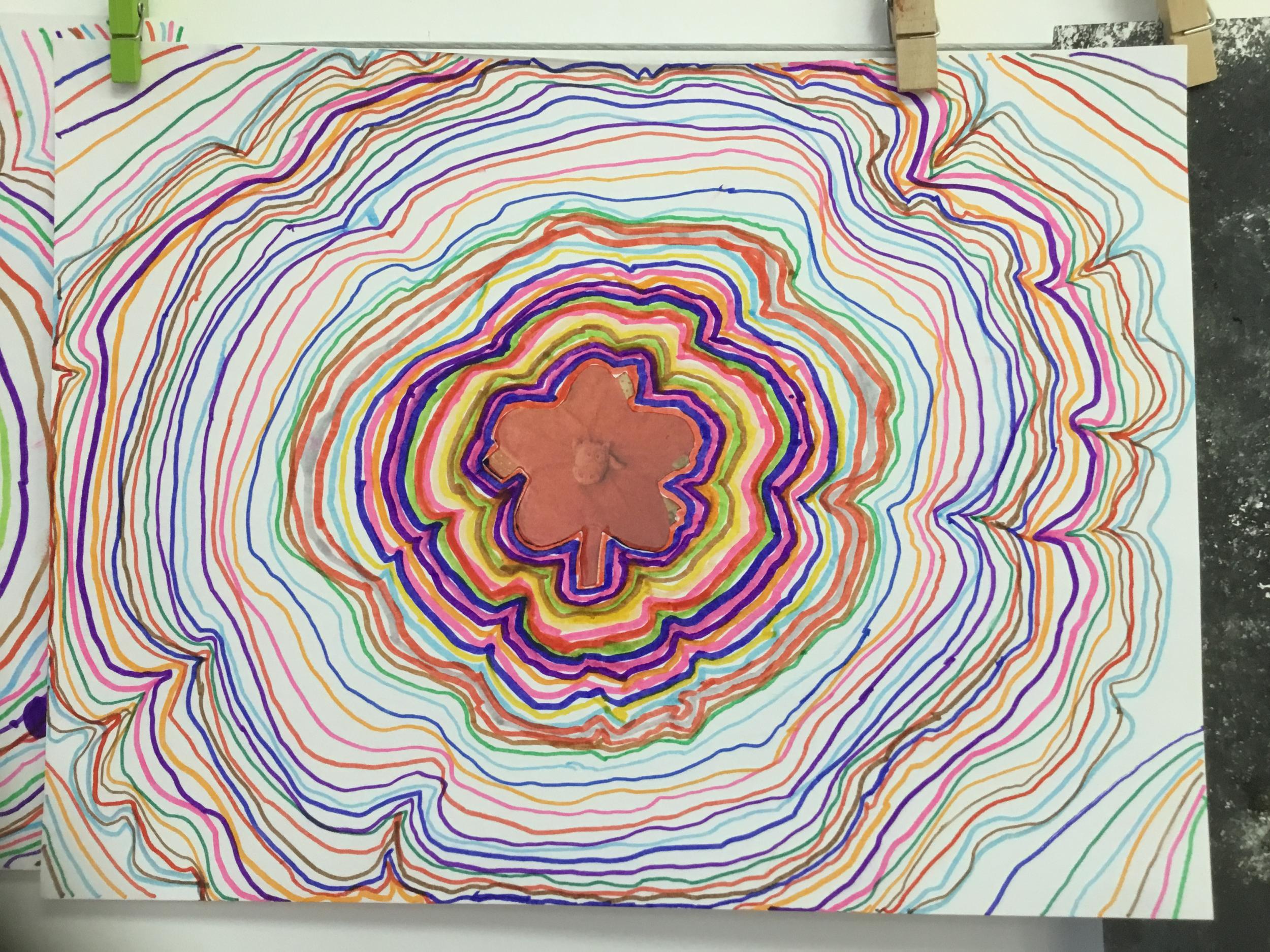 Ils devaient tracer les contours de celui -ci en restant au plus près de la forme de base en changeant de couleur à chaque fois.
