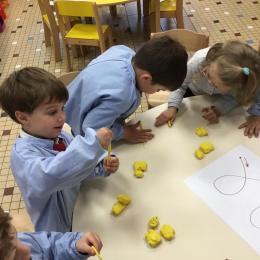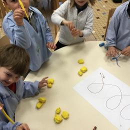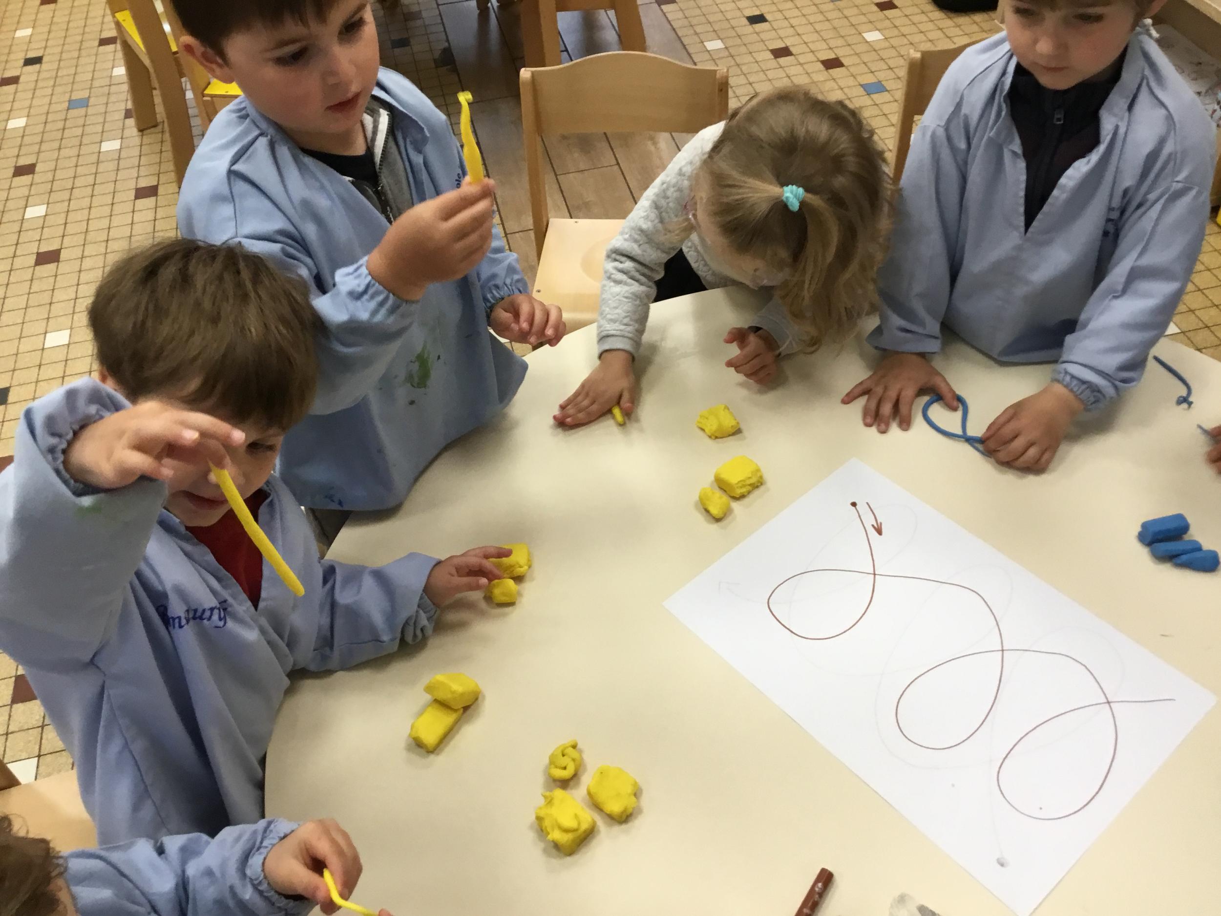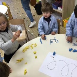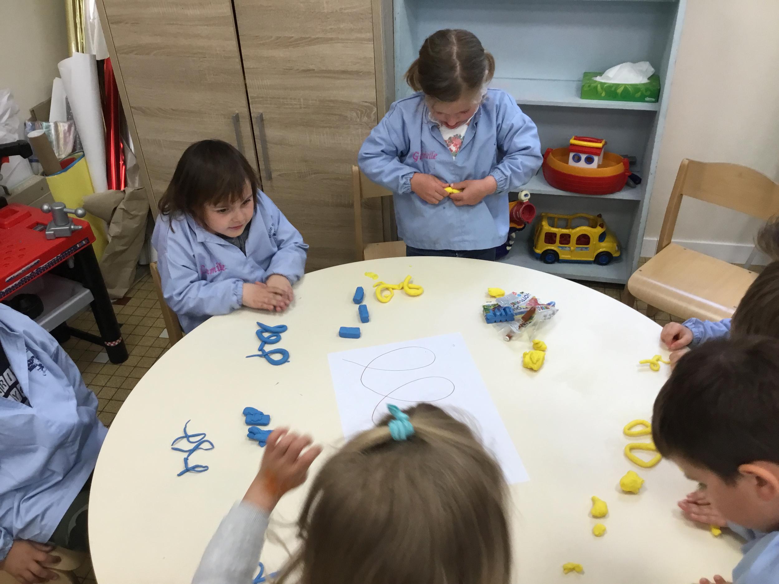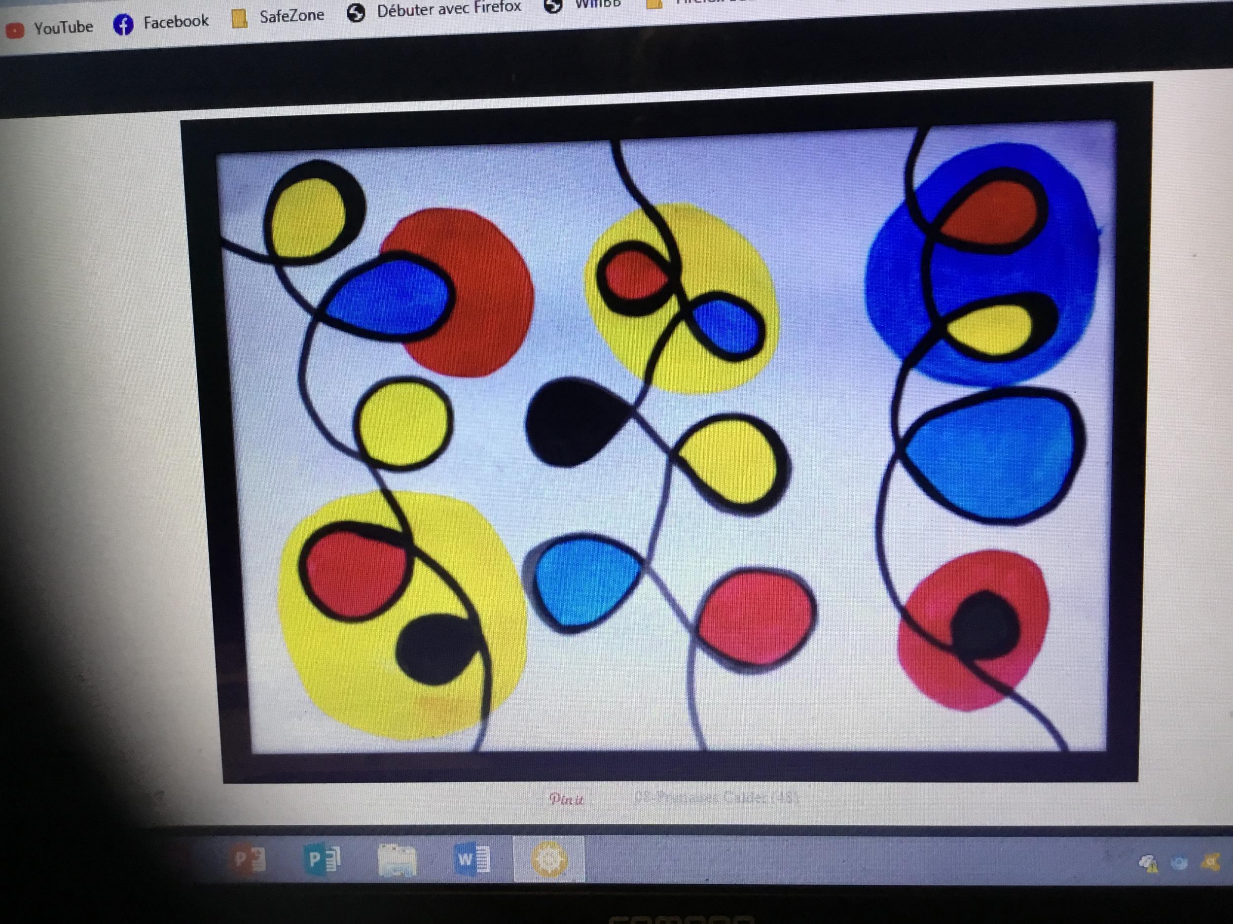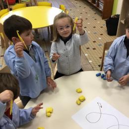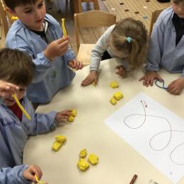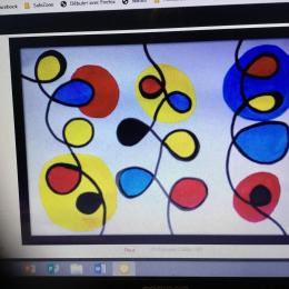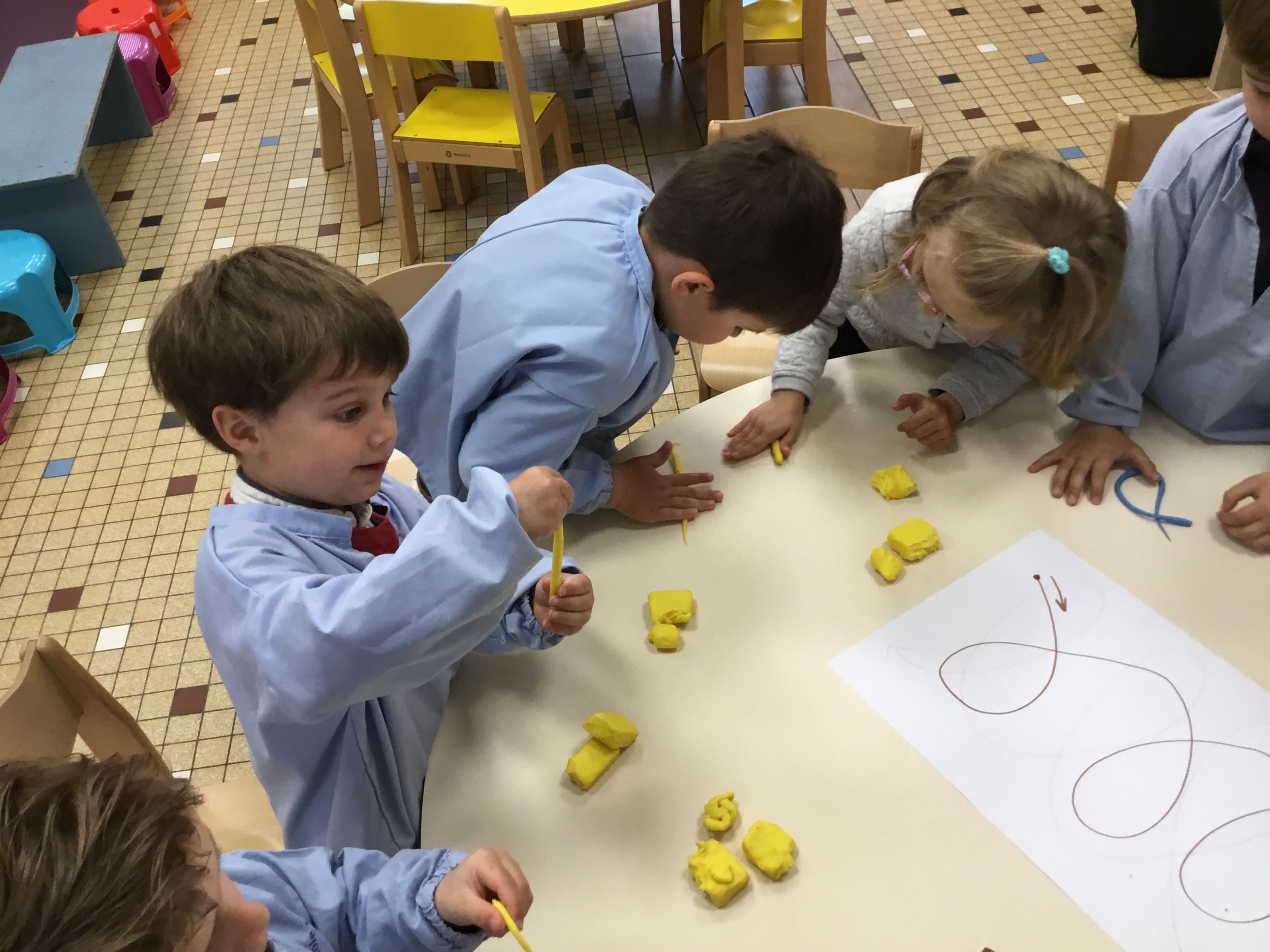 Petite et moyenne section 19/05/2021 En graphisme , les élèves apprennent à faire des boucles en pâte à modeler dans le sens d’écriture. Puis ils peignent des boucles à la manière d’Alexander Calder après avoir observé son tableau .