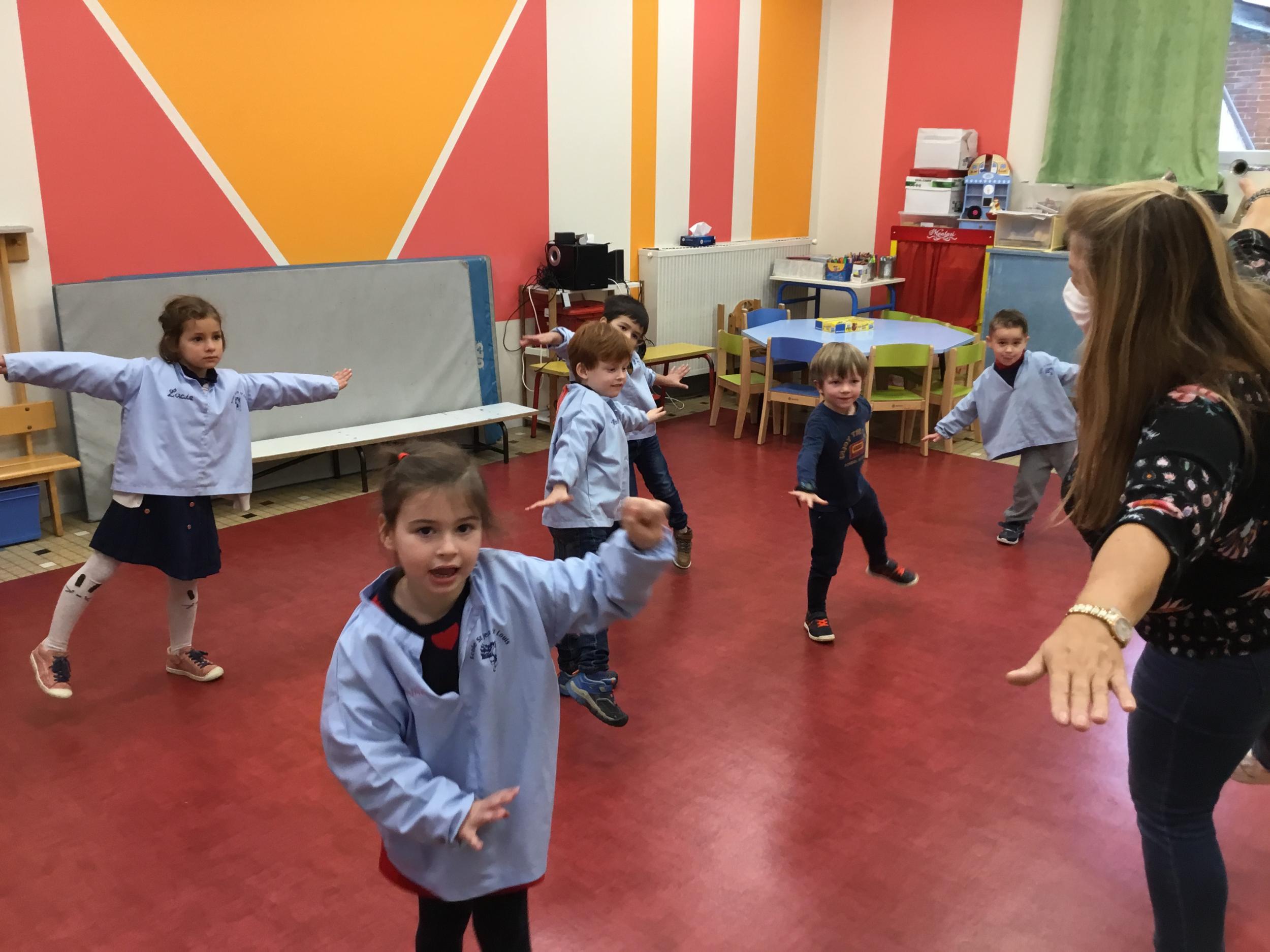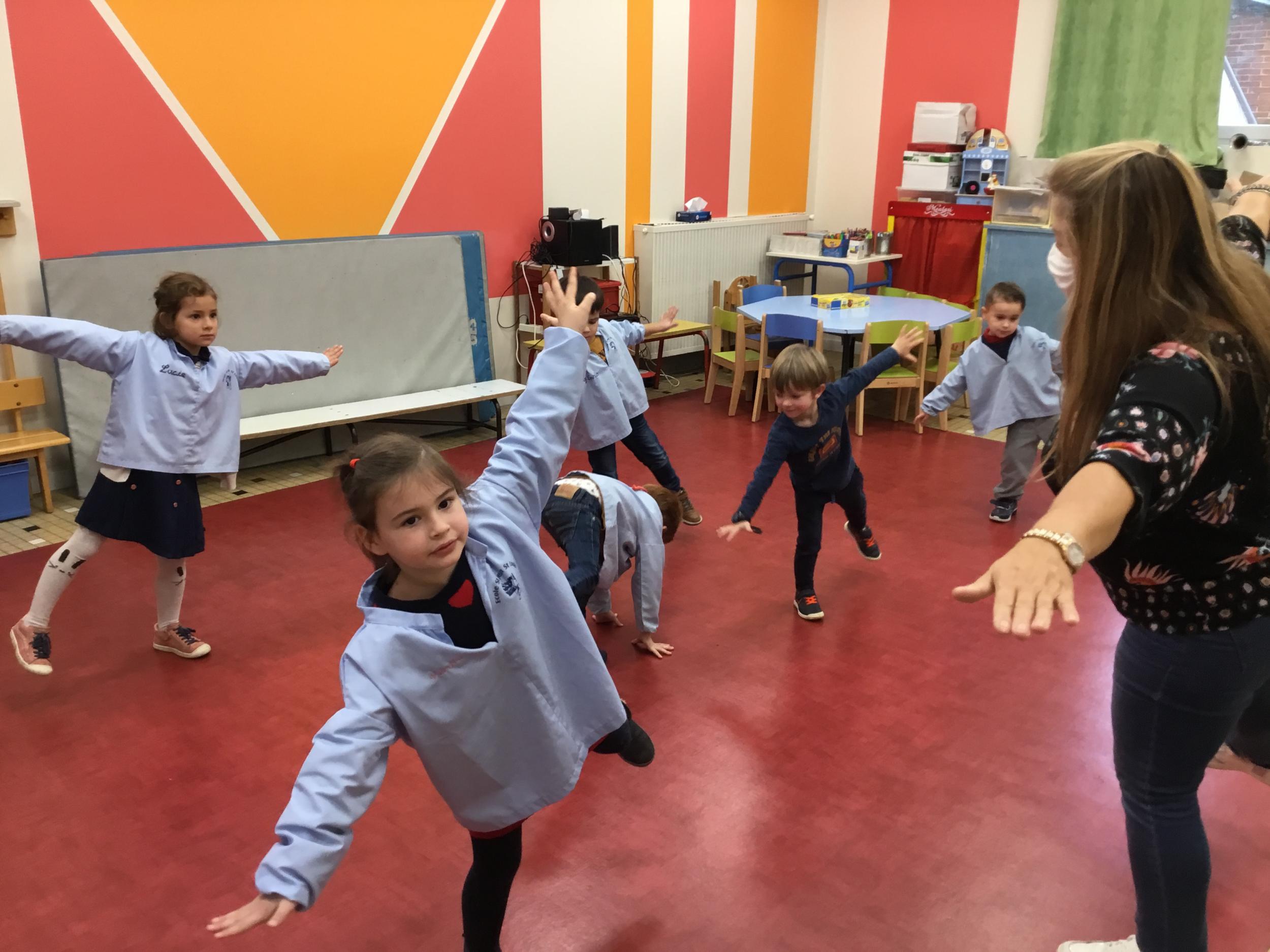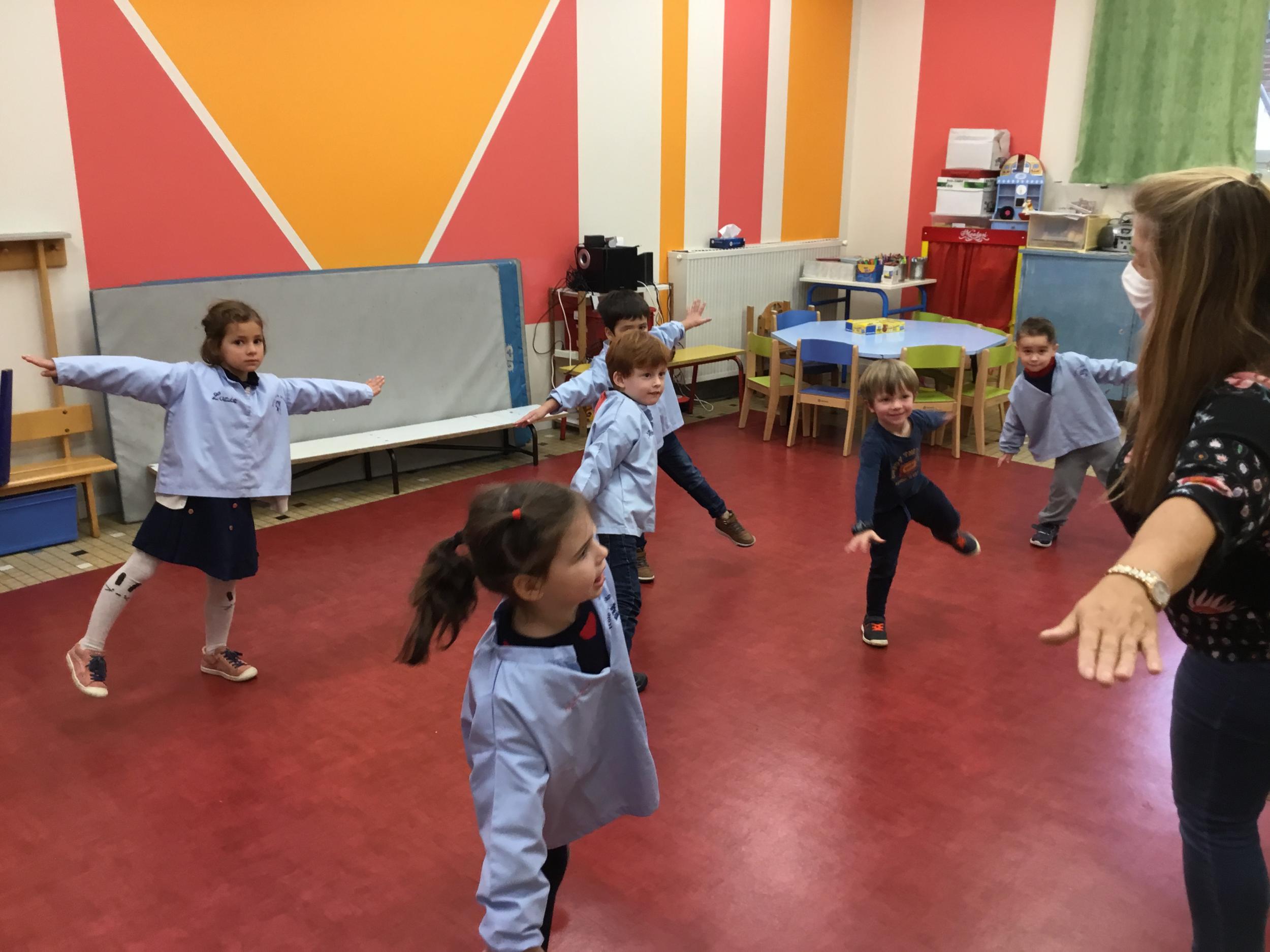 Petite et moyenne section 15/11/2021 Pour apprendre à tracer des traits obliques, il faut d’abord s’approprier cette notion avec son corps. Ainsi , les élèves apprennent à se pencher et jouent avec l’équilibre en psychomotricité .