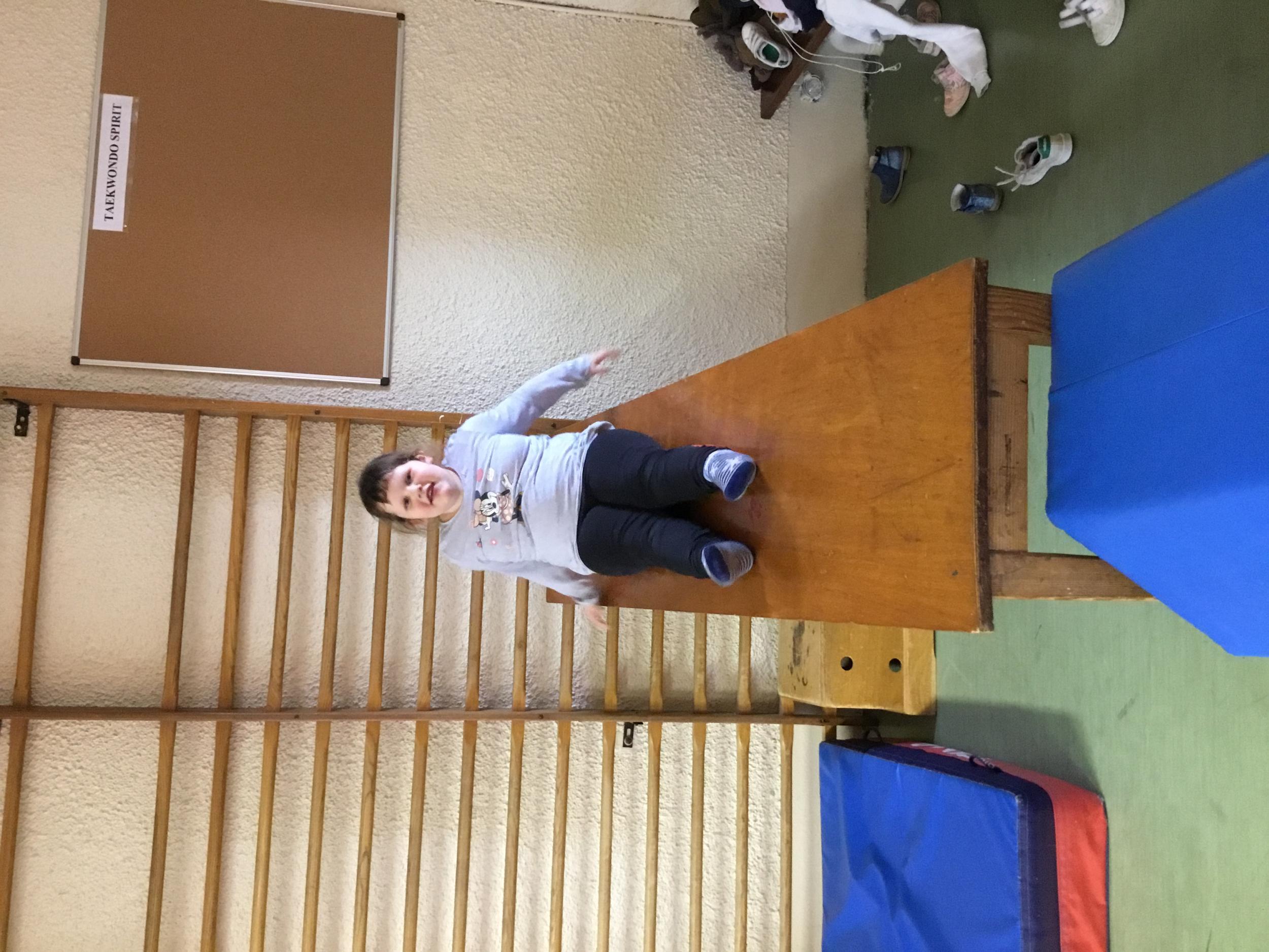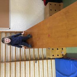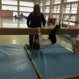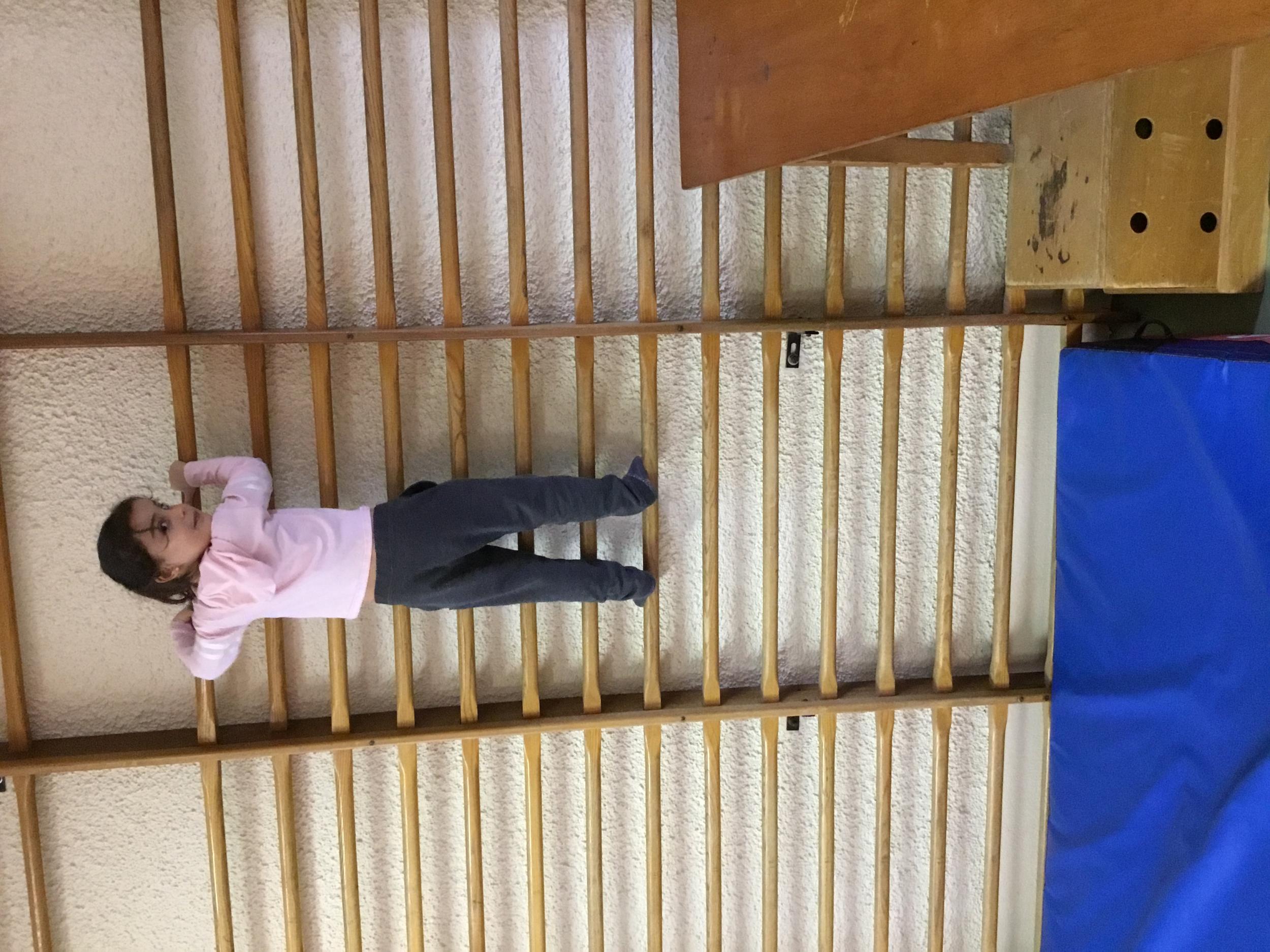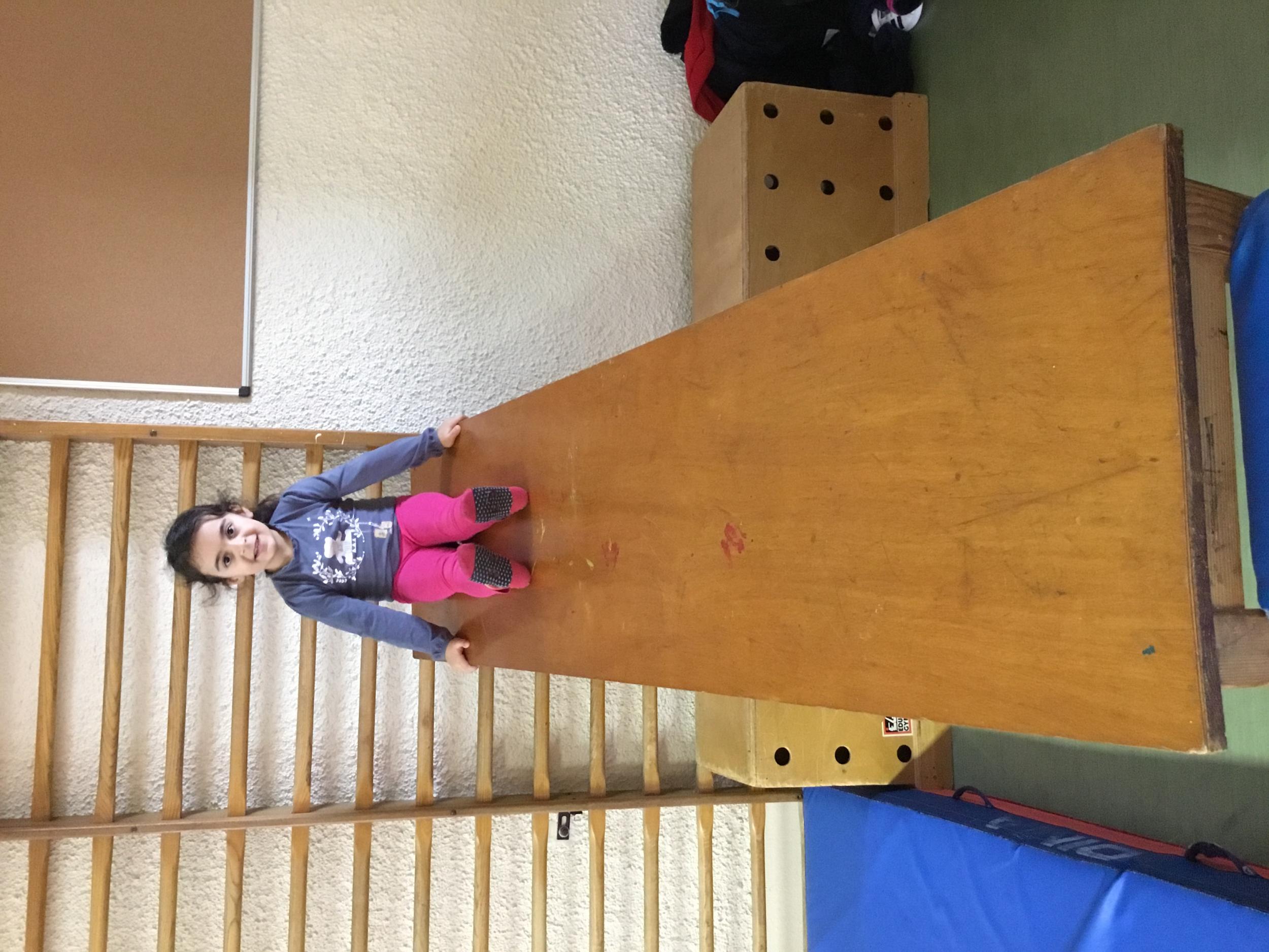 A la salle de sport, profitant du matériel, les élèves ont vaincu leur peur en grimpant sur les espaliers aussi haut qu'ils le pouvaient! Ensuite ils glissaient sur un plan incliné puis se déplaçaient sur un gros matelas.