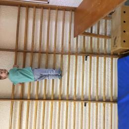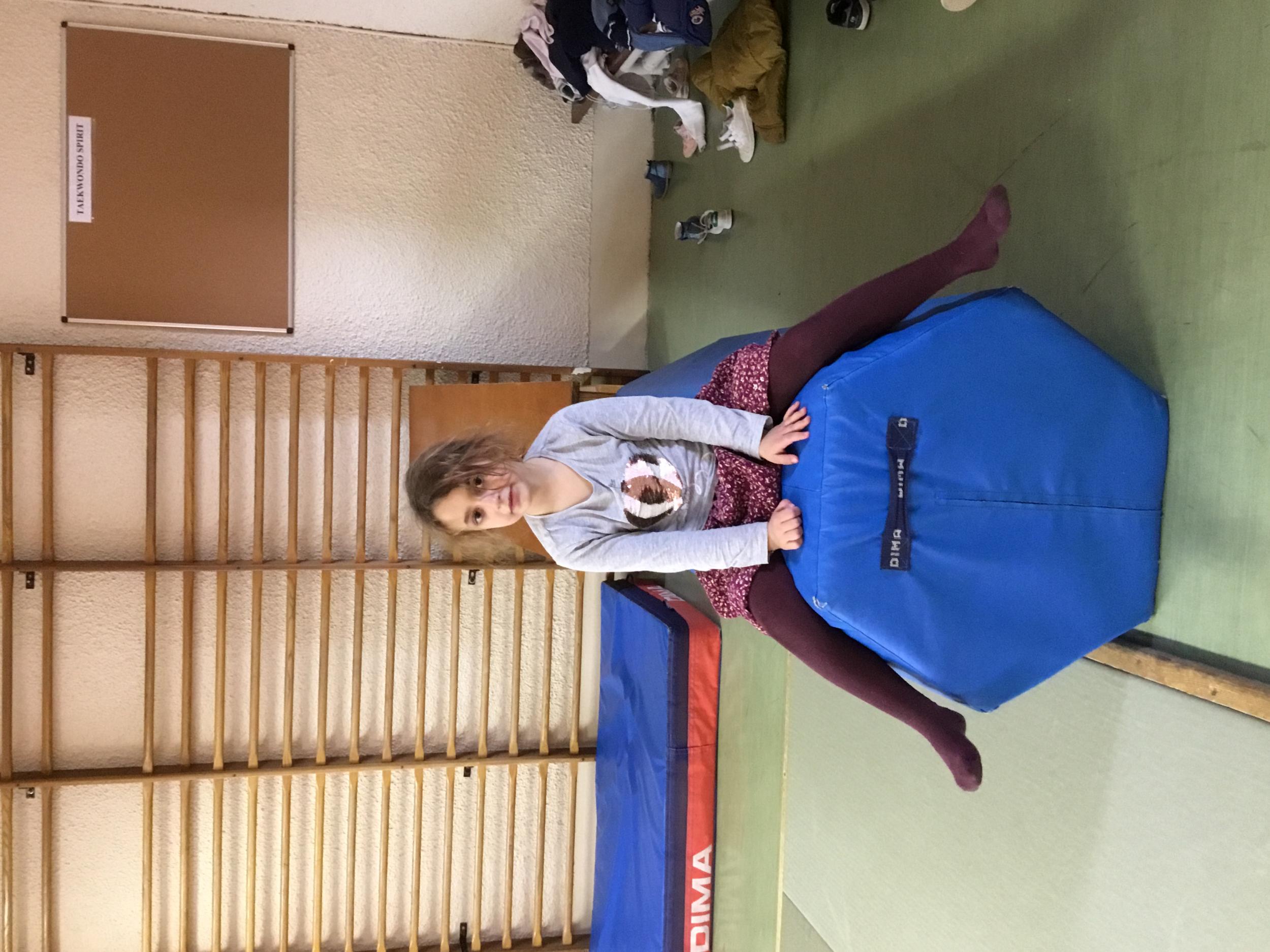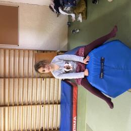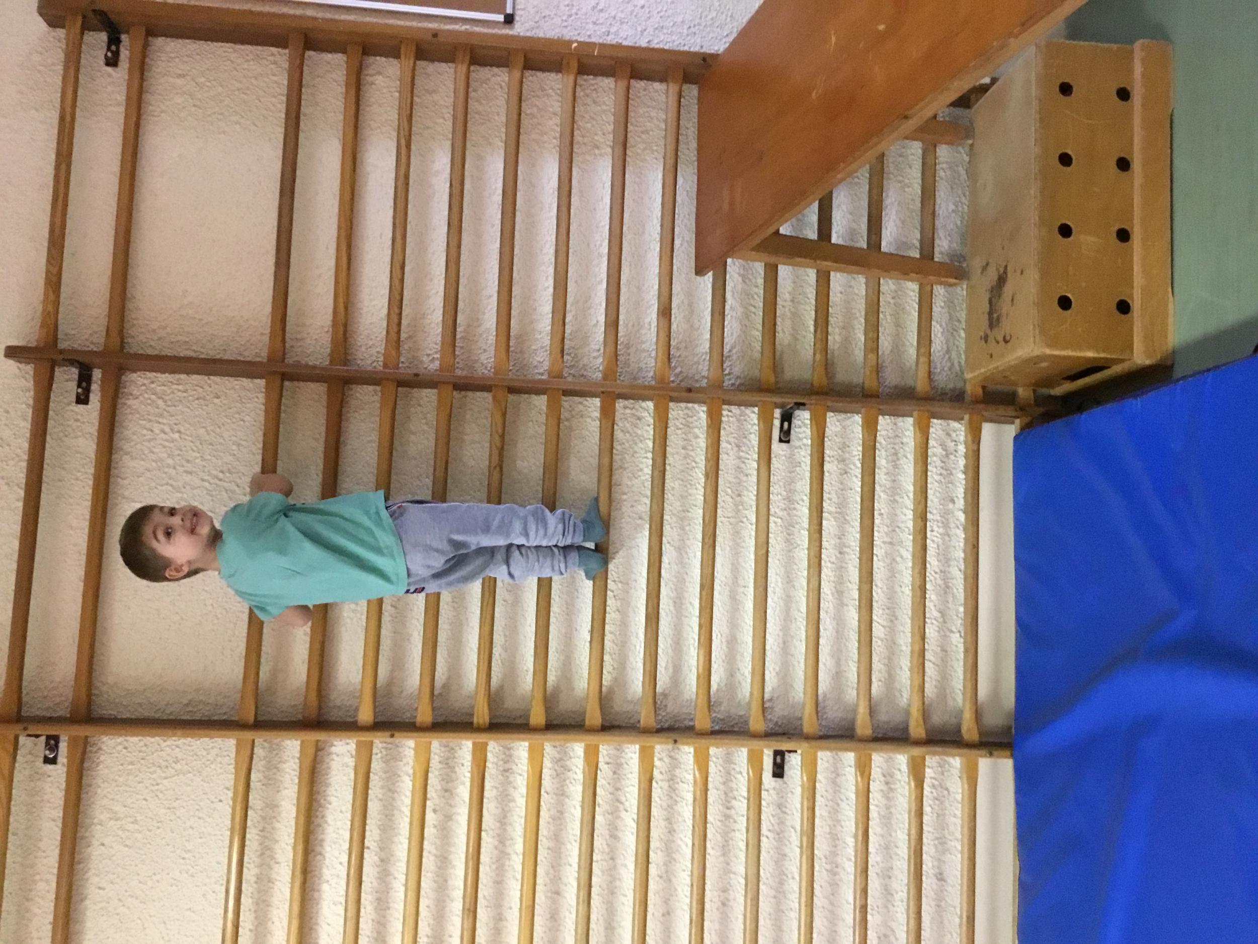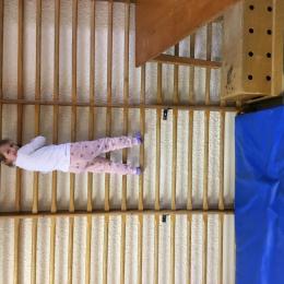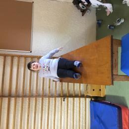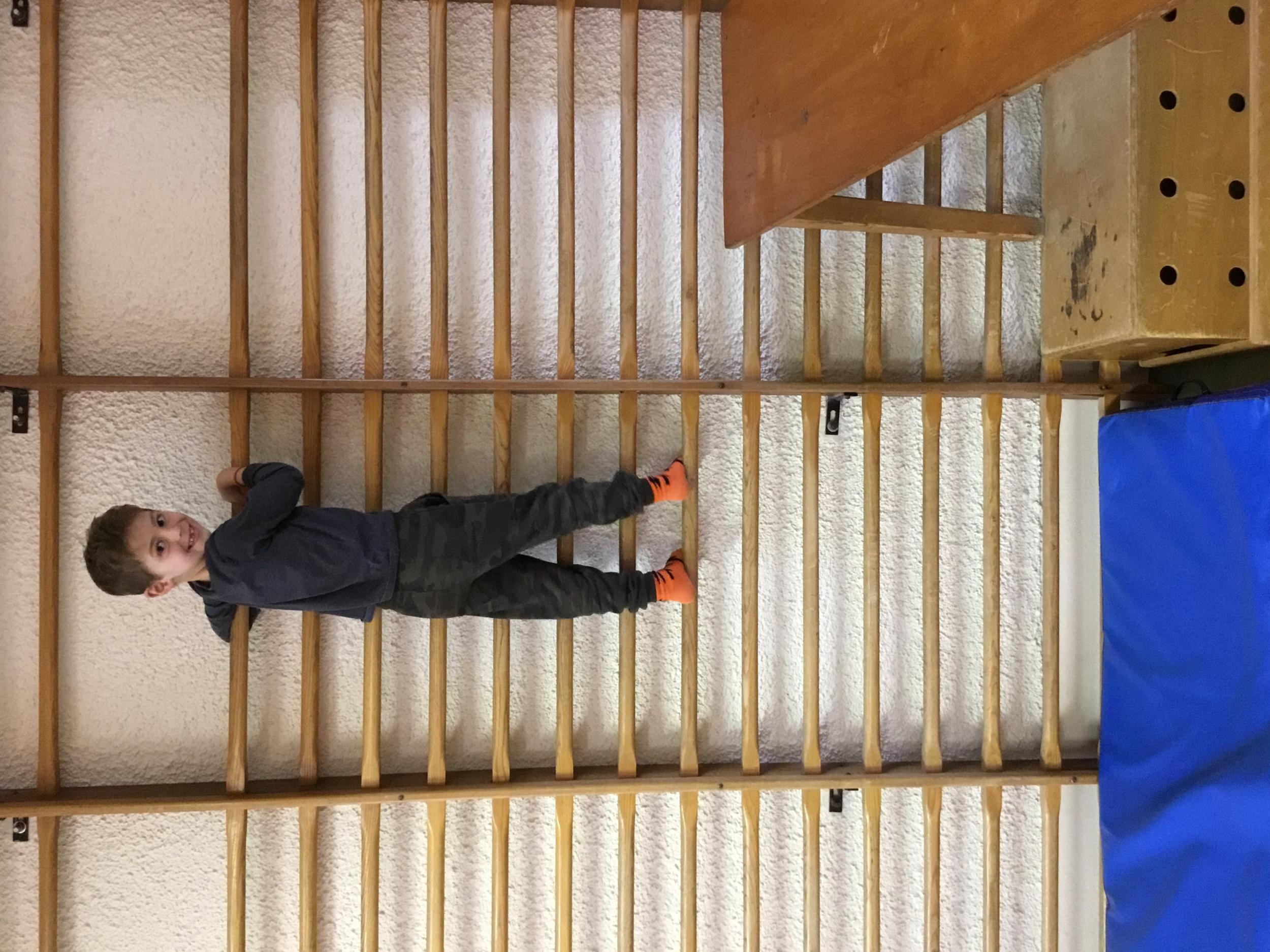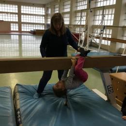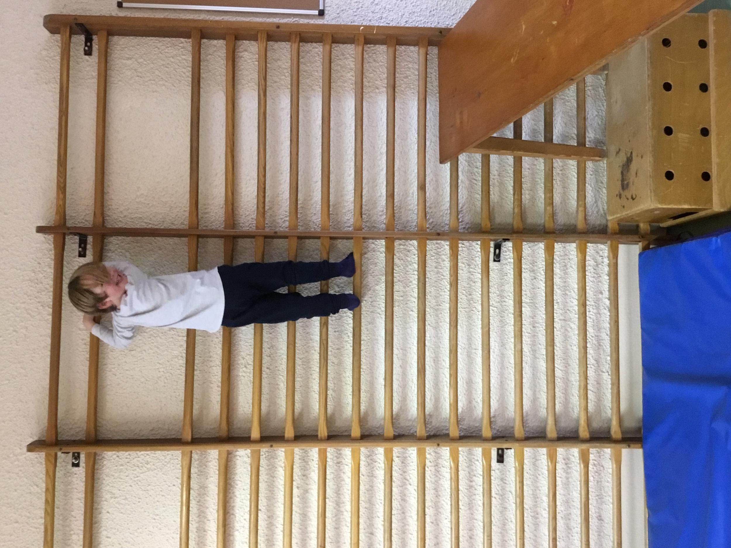 A la salle de sport, profitant du matériel, les élèves ont vaincu leur peur en grimpant sur les espaliers aussi haut qu'ils le pouvaient! Ensuite ils glissaient sur un plan incliné puis se déplaçaient sur un gros matelas.