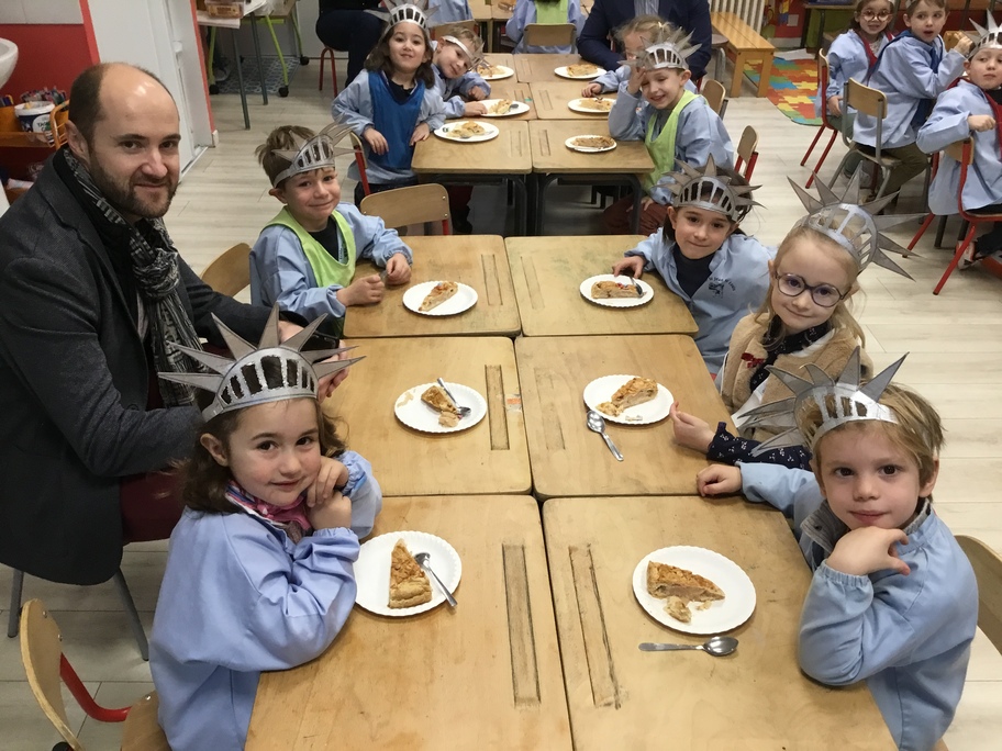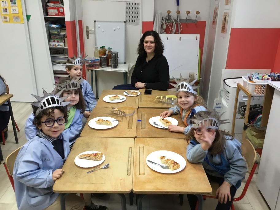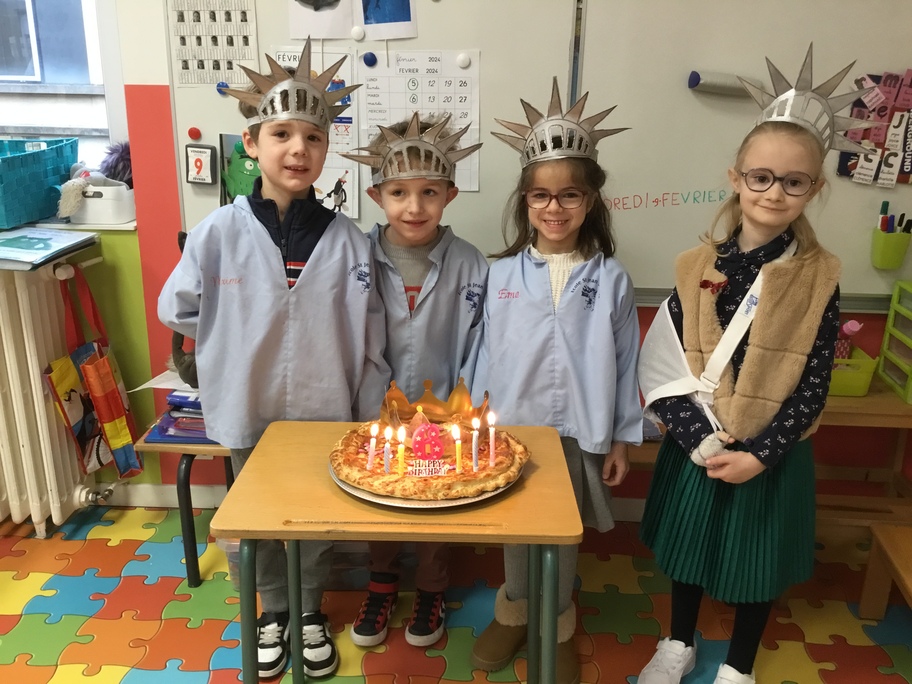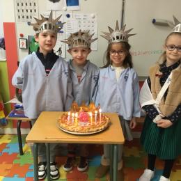 Pour fêter les anniversaires de janvier et février tout en restant dans notre thème de New-York, les élèves ont fabriqué des couronnes comme celle de la statue de la liberté. Ils ont peint en brillant, découpé, poinçonné des trous du devant avant qu'elle ne soit ajustée à leur tête !