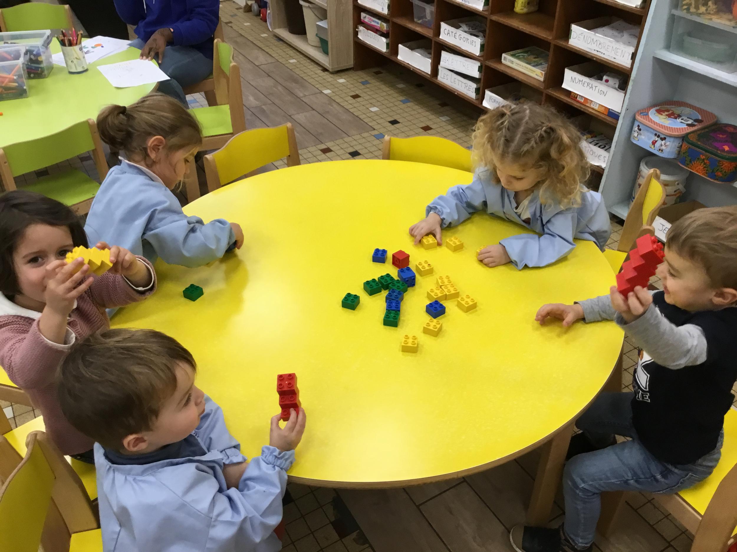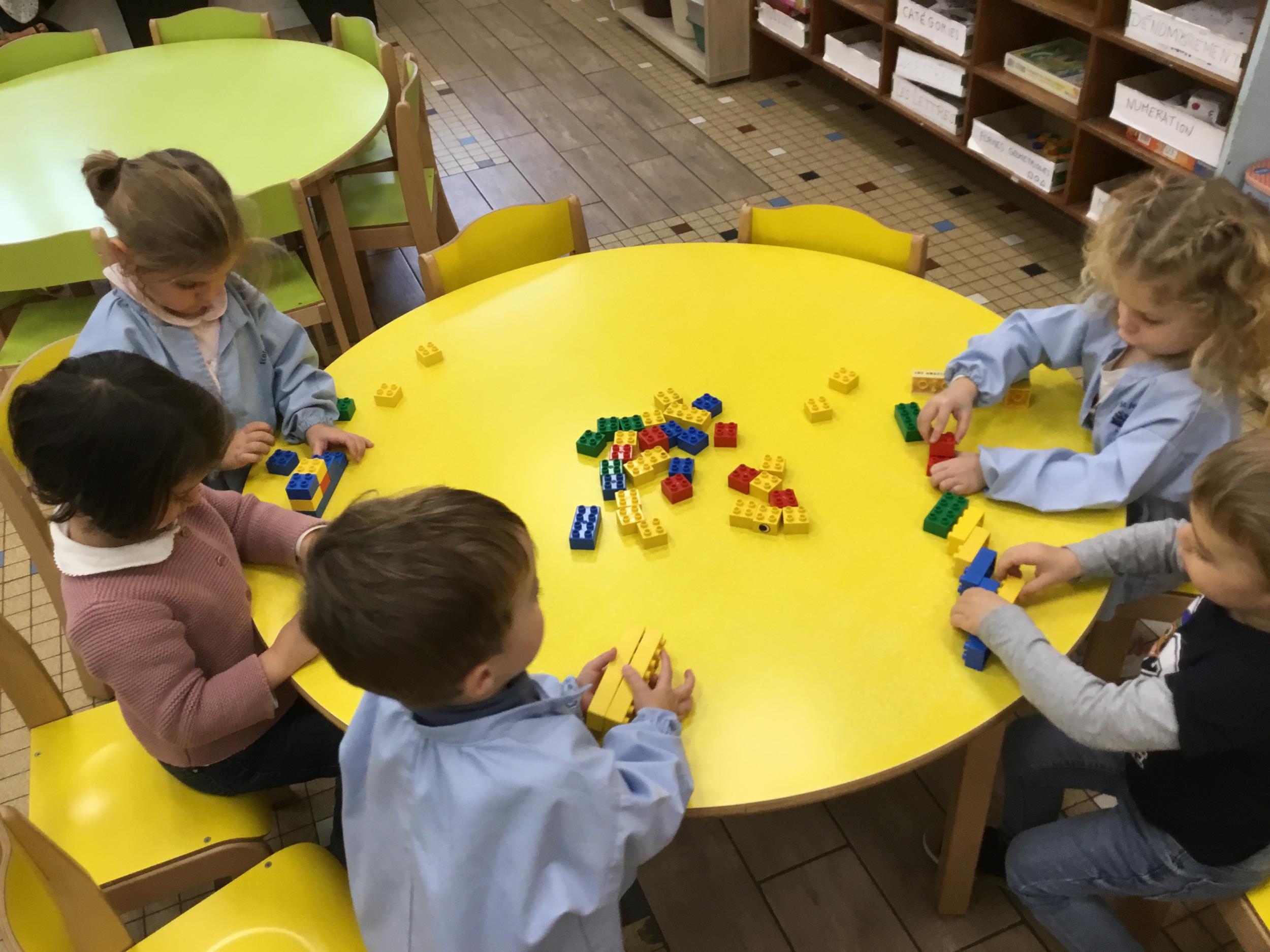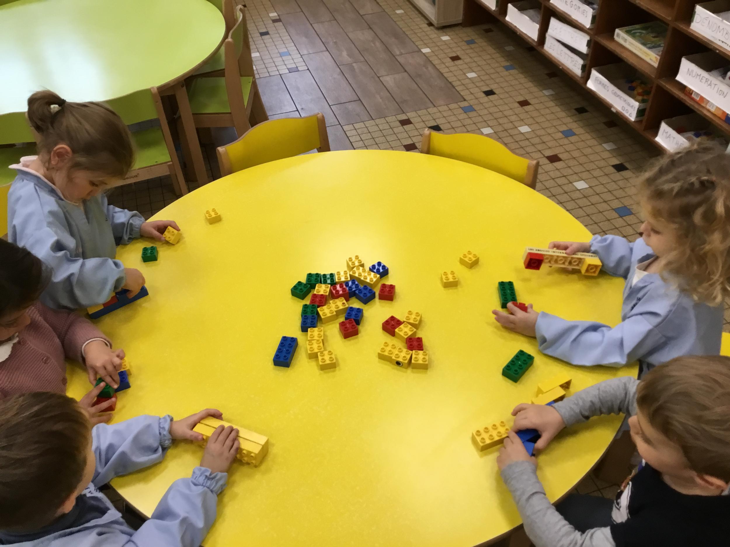 15/11/2021 Les Ps ont construit des tours de cubes : la famille des tours de 2 cubes, celle des 3 cubes et celle des 4 cubes. On a comparé ensuite les tours construites.On a aussi fabriqué des escaliers de 3 marches et des ponts avec les legos.